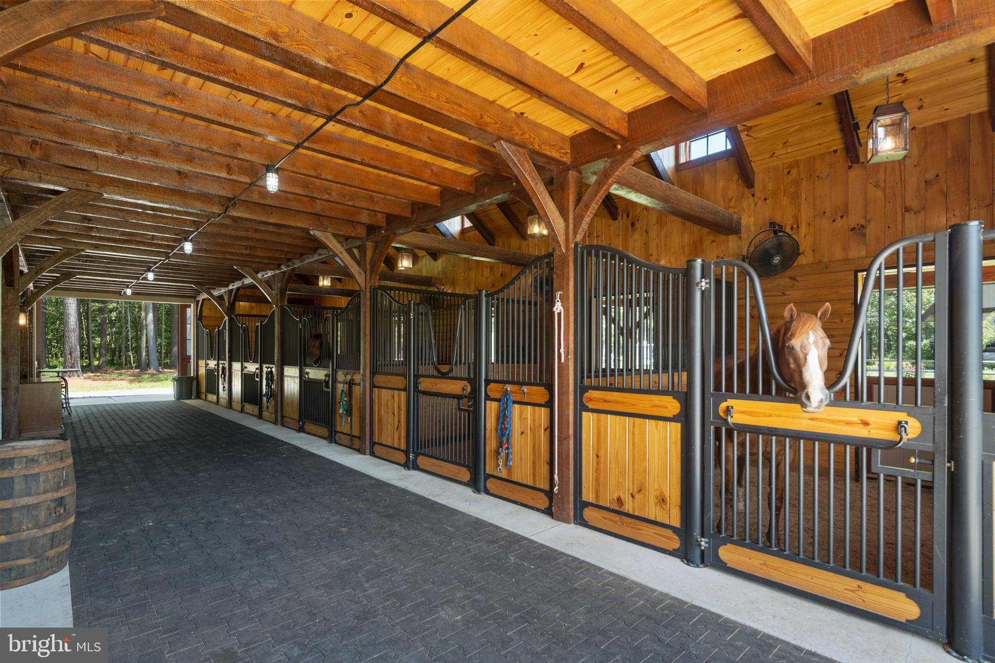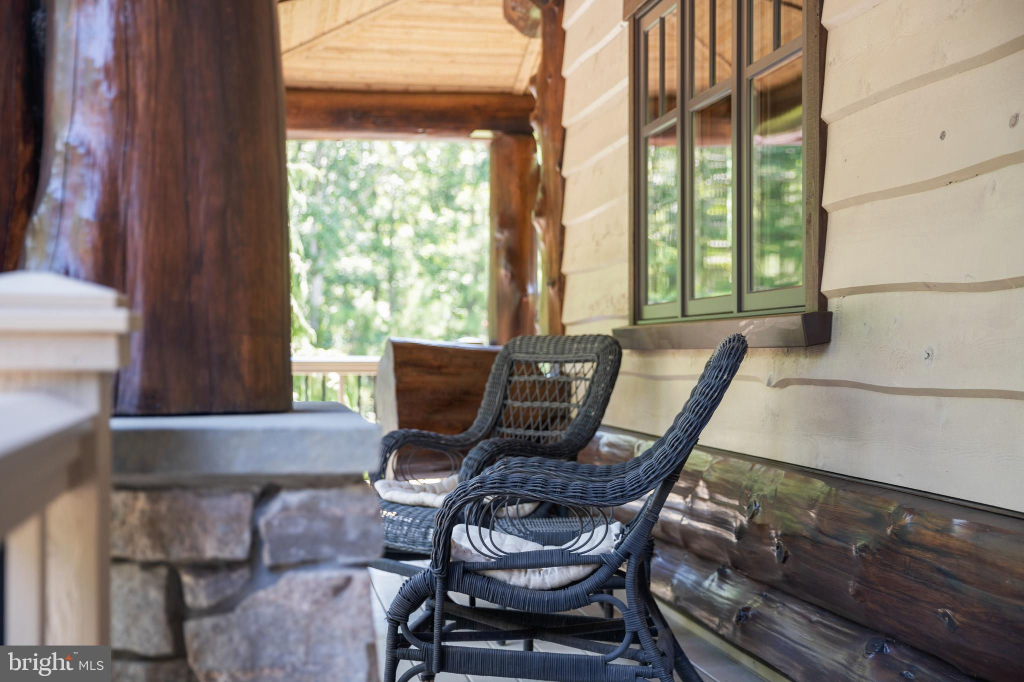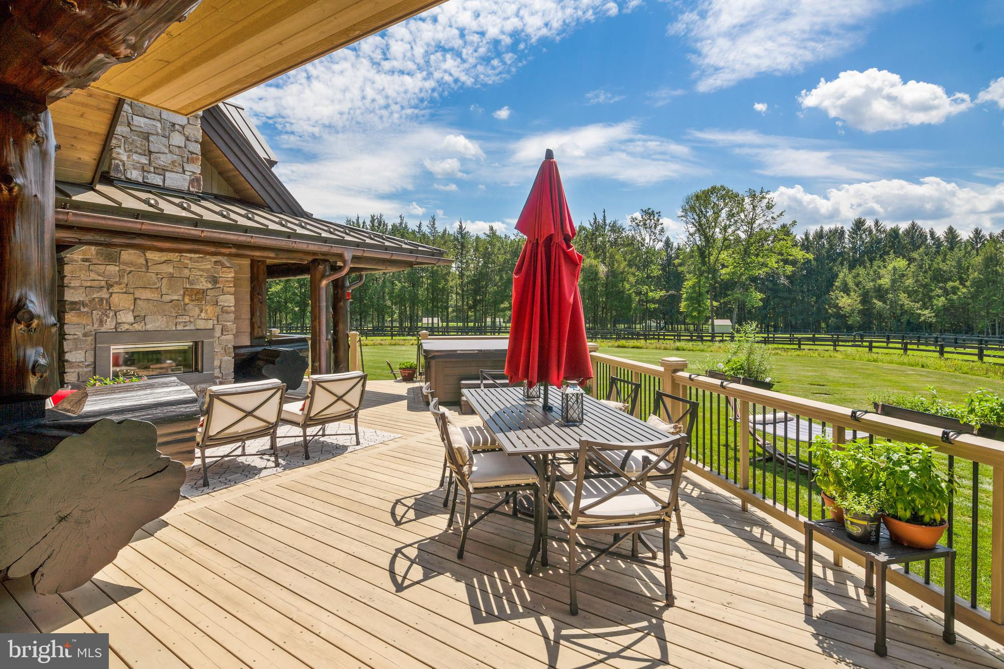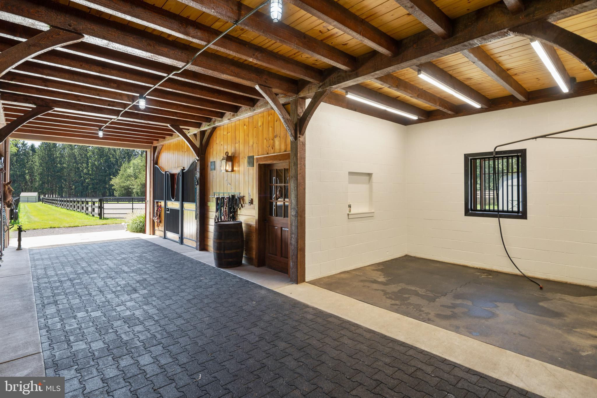 Extraordinary, one-of-a-kind, handcrafted, hybrid-fusion log home that was custom built with Western Red Cedar logs from British Columbia. Low taxes. This pristine and private retreat is unparalleled in architecture and quality craftsmanship with cedar timbers, decking and siding with standing seam metal roof systems, copper gutters and snow guards. Stone foundation and chimneys with blue stone caps. Handmade, Amish-built, solid doors with Ashley Norton hardware throughout. The meandering drive leads to your own slice of heaven, set back on 31 acres of pure tranquility. Whether you're looking for a country retreat or an equestrian paradise, this property will be sure to suit all of your needs. A covered front porch and entryway flanked by gas lanterns invites you into a gorgeous reception area, paneled in 200-year-old reclaimed barn boards. The dramatic great room boasts an A-frame wall of windows, a floor-to-ceiling stone fireplace and English oak wood floors. Rich in natural elements, textures inherent in the logs, the house provides great scale and livability with an open-concept floor plan for daily living and entertaining. The gourmet kitchen features subway tile, Blue Star gas range with a custom-made ventilation hood, pot filler, leathered granite countertops, Quartz-topped island, Thermador refrigeration, farmhouse sink, cabinetry by StarMark and a walk-in pantry. Fantastic integration of indoor and outdoor spaces that flow seamlessly. Access a lovely veranda from the main entertaining area to enjoy the outdoor stone, wood-burning fireplace and hot tub as you overlook the expansive backyard and pastures. The first-floor main bedroom suite with French doors to a covered porch, an exquisite master bathroom with Carrara marble, an oversized seamless glass rainfall shower, polished nickel fixtures, cast iron footed soaking tub, double vanity and a walk-in closet with custom built-ins. The main level also offers a guest suite/home office with Hunter Douglas electric shades, access to the rear deck and an additional full bathroom. The laundry room is outfitted with storage, leathered granite countertops, tile backsplash, Shaws Original farmhouse sink; access to the front porch and oversized, climate controlled two-car garage with commercial-grade epoxy floors, custom cedar garage doors. A stunning stairwell with a custom hand-hammered wrought-iron railing leads to the upper level with a fabulous loft lounge area that overlooks the great room, three spacious bedrooms with custom closet organization systems and balconies. A full bathroom finished in polished hexagonal tile, tub/shower and marble top vanity. The finished lower level offers a second kitchen with Thermador steam oven, island with reclaimed barn boards and leathered granite. TV/media room w/ barn board walls. A gym with walkout access, a full bath with oversized steam shower, double vanity with marble top and tile backsplash. A second laundry room and storage. Lovely picturesque Amish built post & beam barn w/ standing-seam metal roof and copper gutters. Featuring 5 oversized stalls with rubber mats, fans, cameras to monitor horses, center aisle with pavers, wash stall, tack room with lockers, kitchenette with full-sized refrigerator, sink, dishwasher, stone countertops, epoxy floors. A guest suite and full bathroom with seamless glass shower. The upper level offers an expansive loft space for entertaining. All aluminum-clad casement windows throughout, vintage water hydrants, a separate well for barn, wi-fi irrigation, Sonos sound system, 100 Amp sub-panel. Round pen 60' , 5-6 turnouts, outdoor wash stall, wooded riding trails. 8 acres of fenced pastures w/ solar-powered electric fencing and water, riding ring 100' x 180' w/ irrigation system. Whole-house & barn generator. HVAC: 4 zones house, 1 zone barn. Smart switch exterior lighting. Exterior barn lights w/ timer. Central Vac, Cat 5 & cable throughout. Wi-fi irrigation lawn & beds. Farm Assessed.