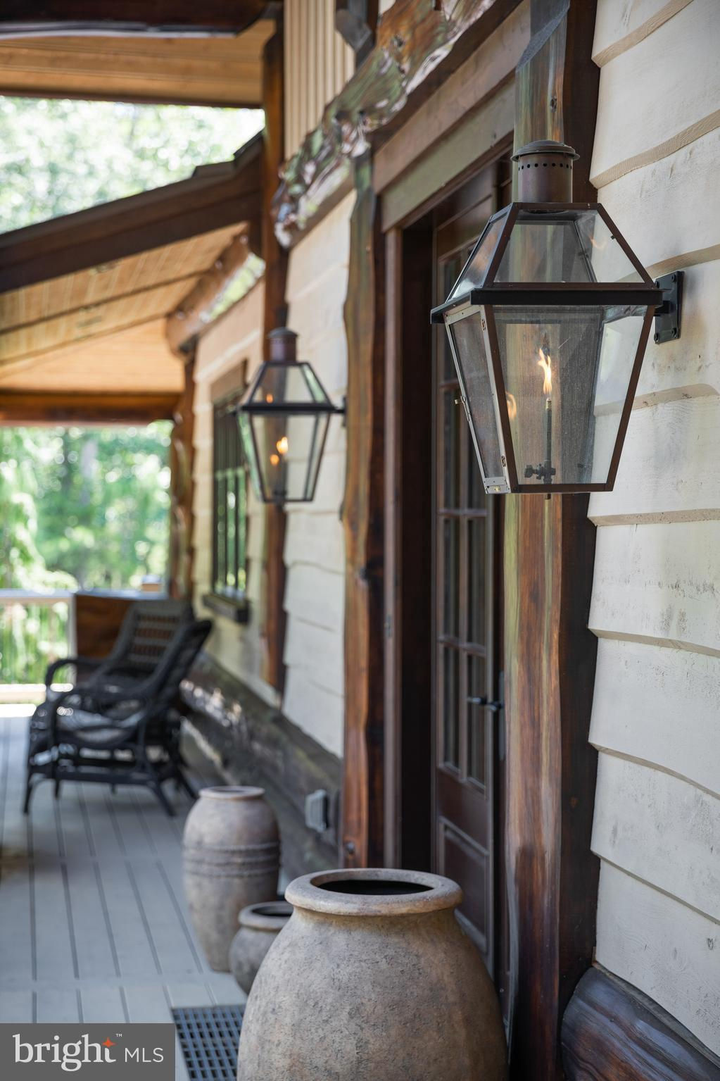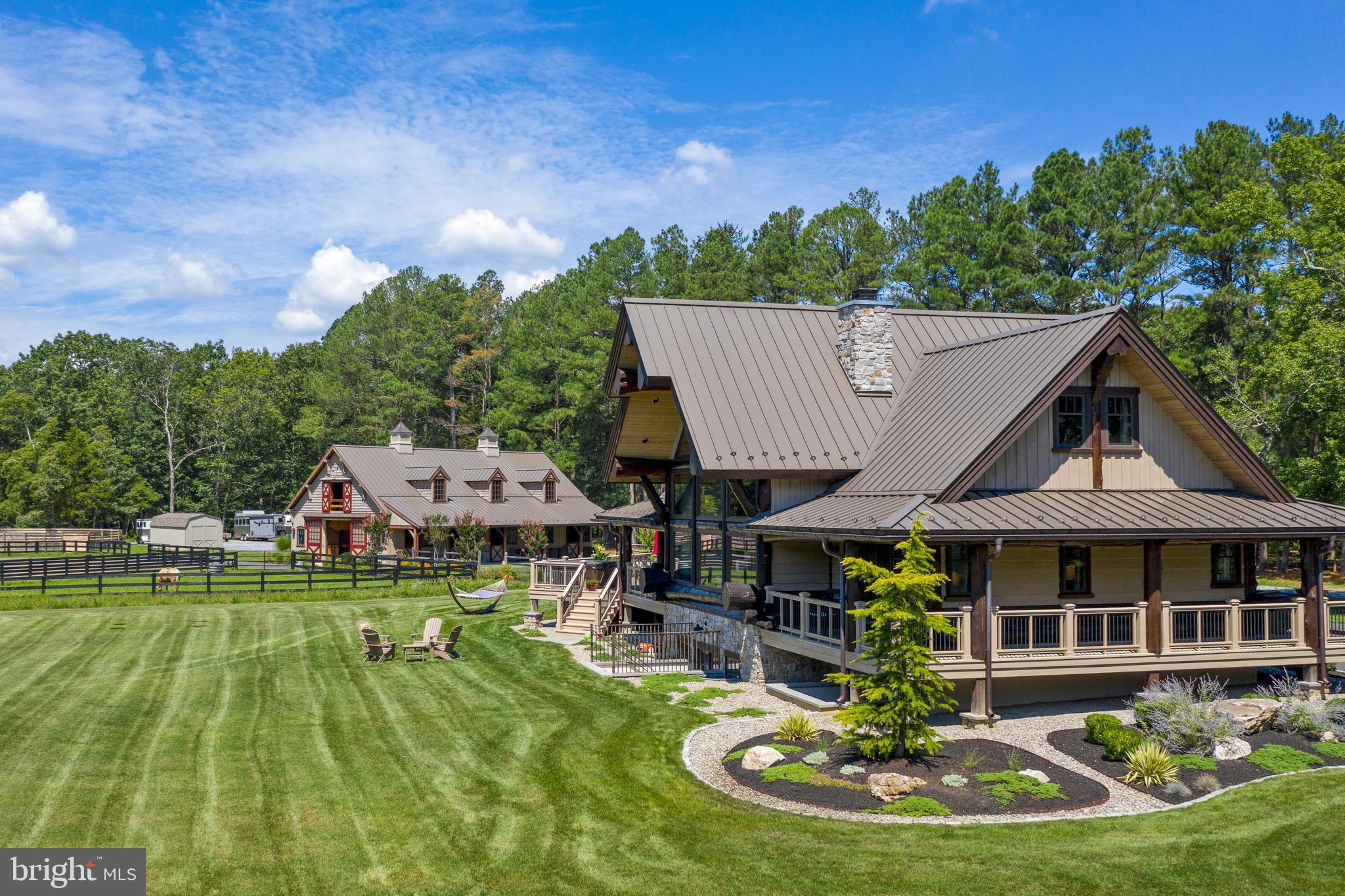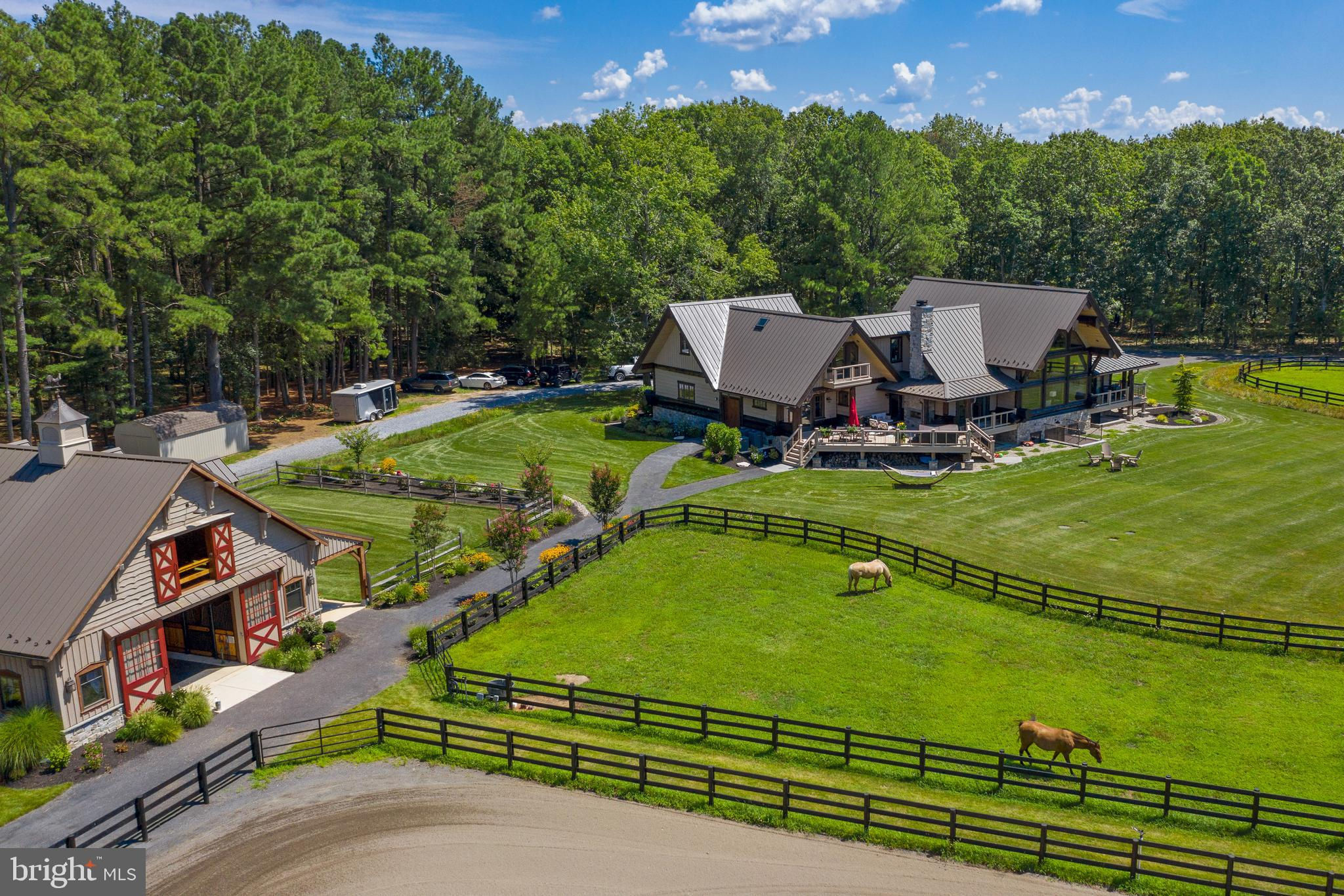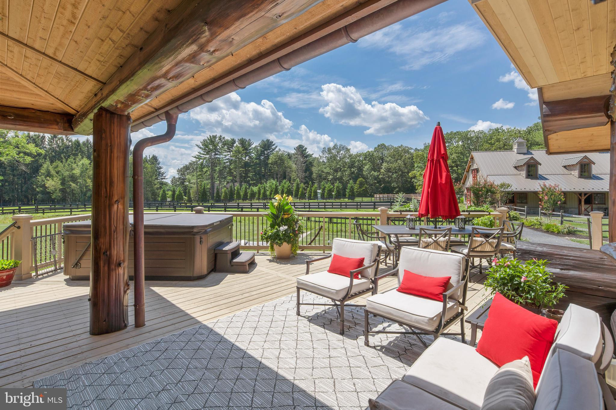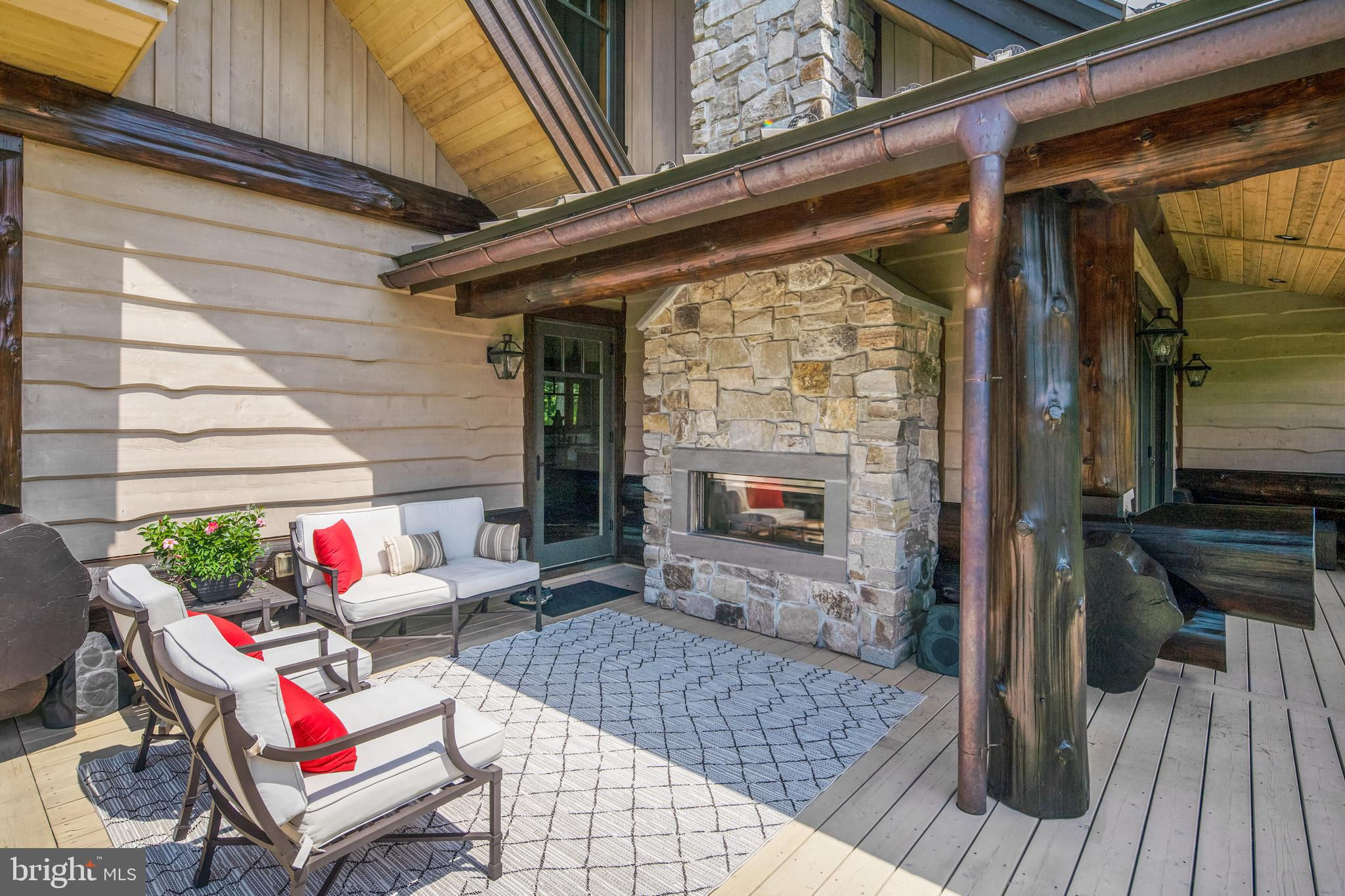 Extraordinary, one-of-a-kind, handcrafted, hybrid-fusion log home that was custom built with Western Red Cedar logs from British Columbia. Low taxes. This pristine and private retreat is unparalleled in architecture and quality craftsmanship with cedar timbers, decking and siding with standing seam metal roof systems, copper gutters and snow guards. Stone foundation and chimneys with blue stone caps. Handmade, Amish-built, solid doors with Ashley Norton hardware throughout. The meandering drive leads to your own slice of heaven, set back on 31 acres of pure tranquility. Whether you're looking for a country retreat or an equestrian paradise, this property will be sure to suit all of your needs. A covered front porch and entryway flanked by gas lanterns invites you into a gorgeous reception area, paneled in 200-year-old reclaimed barn boards. The dramatic great room boasts an A-frame wall of windows, a floor-to-ceiling stone fireplace and English oak wood floors. Rich in natural elements, textures inherent in the logs, the house provides great scale and livability with an open-concept floor plan for daily living and entertaining. The gourmet kitchen features subway tile, Blue Star gas range with a custom-made ventilation hood, pot filler, leathered granite countertops, Quartz-topped island, Thermador refrigeration, farmhouse sink, cabinetry by StarMark and a walk-in pantry. Fantastic integration of indoor and outdoor spaces that flow seamlessly. Access a lovely veranda from the main entertaining area to enjoy the outdoor stone, wood-burning fireplace and hot tub as you overlook the expansive backyard and pastures. The first-floor main bedroom suite with French doors to a covered porch, an exquisite master bathroom with Carrara marble, an oversized seamless glass rainfall shower, polished nickel fixtures, cast iron footed soaking tub, double vanity and a walk-in closet with custom built-ins. The main level also offers a guest suite/home office with Hunter Douglas electric shades, access to the rear deck and an additional full bathroom. The laundry room is outfitted with storage, leathered granite countertops, tile backsplash, Shaws Original farmhouse sink; access to the front porch and oversized, climate controlled two-car garage with commercial-grade epoxy floors, custom cedar garage doors. A stunning stairwell with a custom hand-hammered wrought-iron railing leads to the upper level with a fabulous loft lounge area that overlooks the great room, three spacious bedrooms with custom closet organization systems and balconies. A full bathroom finished in polished hexagonal tile, tub/shower and marble top vanity. The finished lower level offers a second kitchen with Thermador steam oven, island with reclaimed barn boards and leathered granite. TV/media room w/ barn board walls. A gym with walkout access, a full bath with oversized steam shower, double vanity with marble top and tile backsplash. A second laundry room and storage. Lovely picturesque Amish built post & beam barn w/ standing-seam metal roof and copper gutters. Featuring 5 oversized stalls with rubber mats, fans, cameras to monitor horses, center aisle with pavers, wash stall, tack room with lockers, kitchenette with full-sized refrigerator, sink, dishwasher, stone countertops, epoxy floors. A guest suite and full bathroom with seamless glass shower. The upper level offers an expansive loft space for entertaining. All aluminum-clad casement windows throughout, vintage water hydrants, a separate well for barn, wi-fi irrigation, Sonos sound system, 100 Amp sub-panel. Round pen 60' , 5-6 turnouts, outdoor wash stall, wooded riding trails. 8 acres of fenced pastures w/ solar-powered electric fencing and water, riding ring 100' x 180' w/ irrigation system. Whole-house & barn generator. HVAC: 4 zones house, 1 zone barn. Smart switch exterior lighting. Exterior barn lights w/ timer. Central Vac, Cat 5 & cable throughout. Wi-fi irrigation lawn & beds. Farm Assessed.