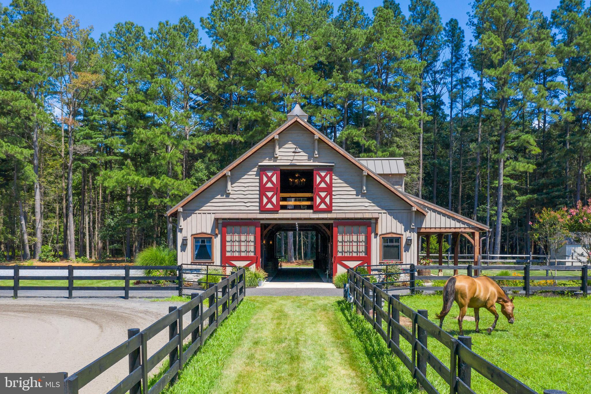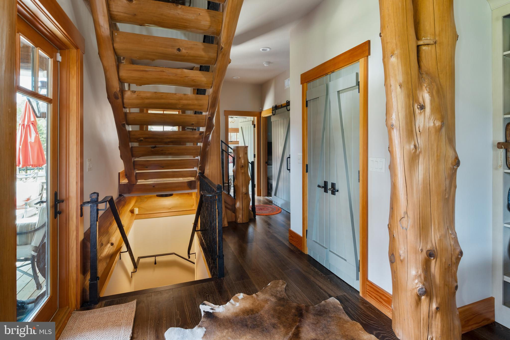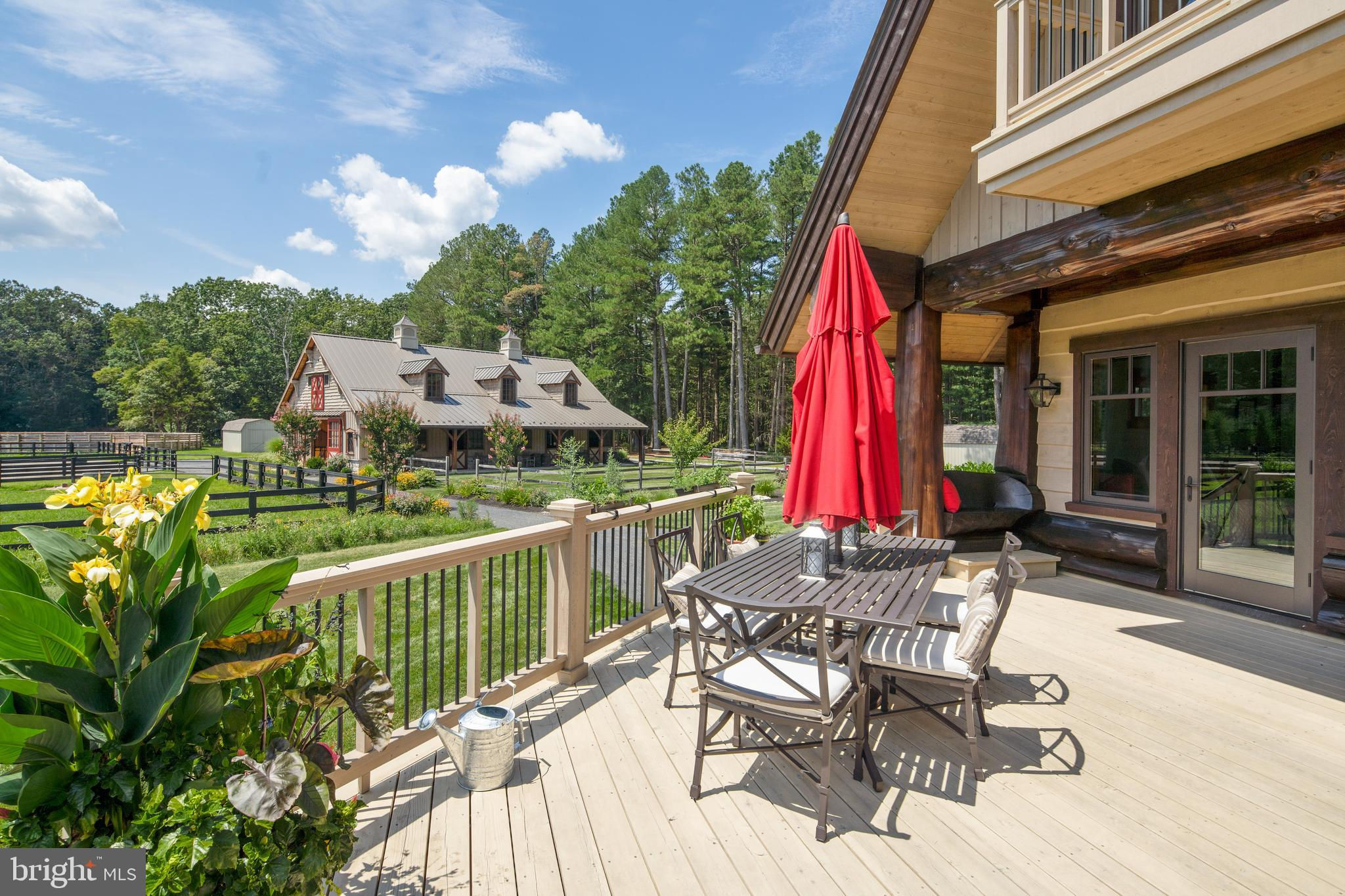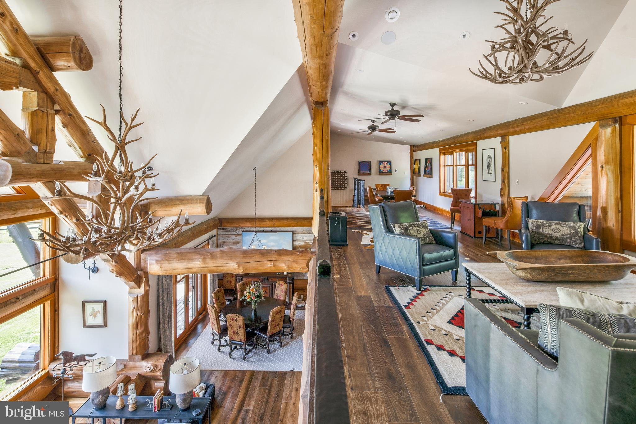 Extraordinary, one-of-a-kind, handcrafted, hybrid-fusion log home that was custom built with Western Red Cedar logs from British Columbia. Low taxes. This pristine and private retreat is unparalleled in architecture and quality craftsmanship with cedar timbers, decking and siding with standing seam metal roof systems, copper gutters and snow guards. Stone foundation and chimneys with blue stone caps. Handmade, Amish-built, solid doors with Ashley Norton hardware throughout. The meandering drive leads to your own slice of heaven, set back on 31 acres of pure tranquility. Whether you're looking for a country retreat or an equestrian paradise, this property will be sure to suit all of your needs. A covered front porch and entryway flanked by gas lanterns invites you into a gorgeous reception area, paneled in 200-year-old reclaimed barn boards. The dramatic great room boasts an A-frame wall of windows, a floor-to-ceiling stone fireplace and English oak wood floors. Rich in natural elements, textures inherent in the logs, the house provides great scale and livability with an open-concept floor plan for daily living and entertaining. The gourmet kitchen features subway tile, Blue Star gas range with a custom-made ventilation hood, pot filler, leathered granite countertops, Quartz-topped island, Thermador refrigeration, farmhouse sink, cabinetry by StarMark and a walk-in pantry. Fantastic integration of indoor and outdoor spaces that flow seamlessly. Access a lovely veranda from the main entertaining area to enjoy the outdoor stone, wood-burning fireplace and hot tub as you overlook the expansive backyard and pastures. The first-floor main bedroom suite with French doors to a covered porch, an exquisite master bathroom with Carrara marble, an oversized seamless glass rainfall shower, polished nickel fixtures, cast iron footed soaking tub, double vanity and a walk-in closet with custom built-ins. The main level also offers a guest suite/home office with Hunter Douglas electric shades, access to the rear deck and an additional full bathroom. The laundry room is outfitted with storage, leathered granite countertops, tile backsplash, Shaws Original farmhouse sink; access to the front porch and oversized, climate controlled two-car garage with commercial-grade epoxy floors, custom cedar garage doors. A stunning stairwell with a custom hand-hammered wrought-iron railing leads to the upper level with a fabulous loft lounge area that overlooks the great room, three spacious bedrooms with custom closet organization systems and balconies. A full bathroom finished in polished hexagonal tile, tub/shower and marble top vanity. The finished lower level offers a second kitchen with Thermador steam oven, island with reclaimed barn boards and leathered granite. TV/media room w/ barn board walls. A gym with walkout access, a full bath with oversized steam shower, double vanity with marble top and tile backsplash. A second laundry room and storage. Lovely picturesque Amish built post & beam barn w/ standing-seam metal roof and copper gutters. Featuring 5 oversized stalls with rubber mats, fans, cameras to monitor horses, center aisle with pavers, wash stall, tack room with lockers, kitchenette with full-sized refrigerator, sink, dishwasher, stone countertops, epoxy floors. A guest suite and full bathroom with seamless glass shower. The upper level offers an expansive loft space for entertaining. All aluminum-clad casement windows throughout, vintage water hydrants, a separate well for barn, wi-fi irrigation, Sonos sound system, 100 Amp sub-panel. Round pen 60' , 5-6 turnouts, outdoor wash stall, wooded riding trails. 8 acres of fenced pastures w/ solar-powered electric fencing and water, riding ring 100' x 180' w/ irrigation system. Whole-house & barn generator. HVAC: 4 zones house, 1 zone barn. Smart switch exterior lighting. Exterior barn lights w/ timer. Central Vac, Cat 5 & cable throughout. Wi-fi irrigation lawn & beds. Farm Assessed.