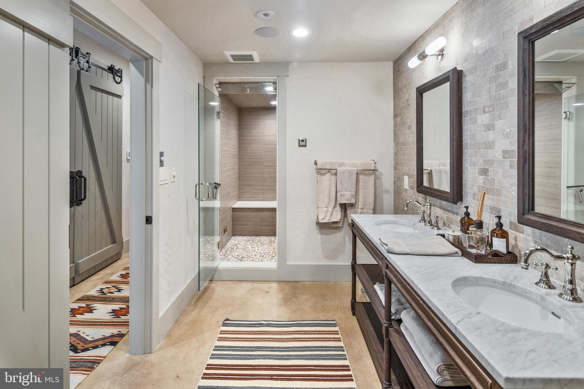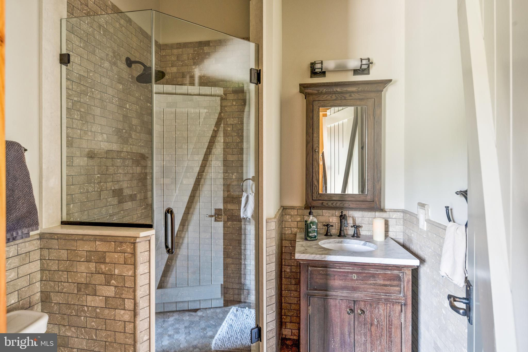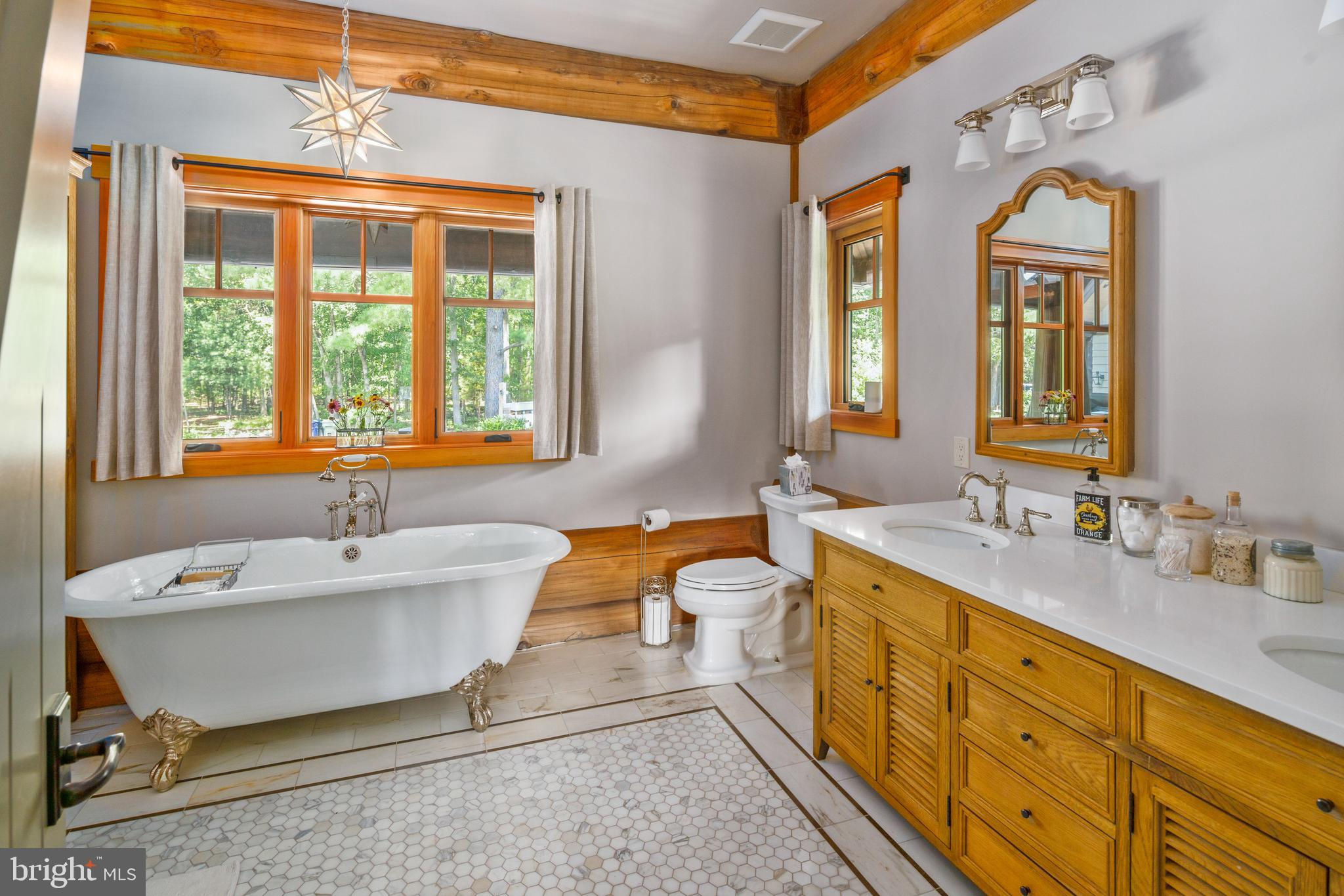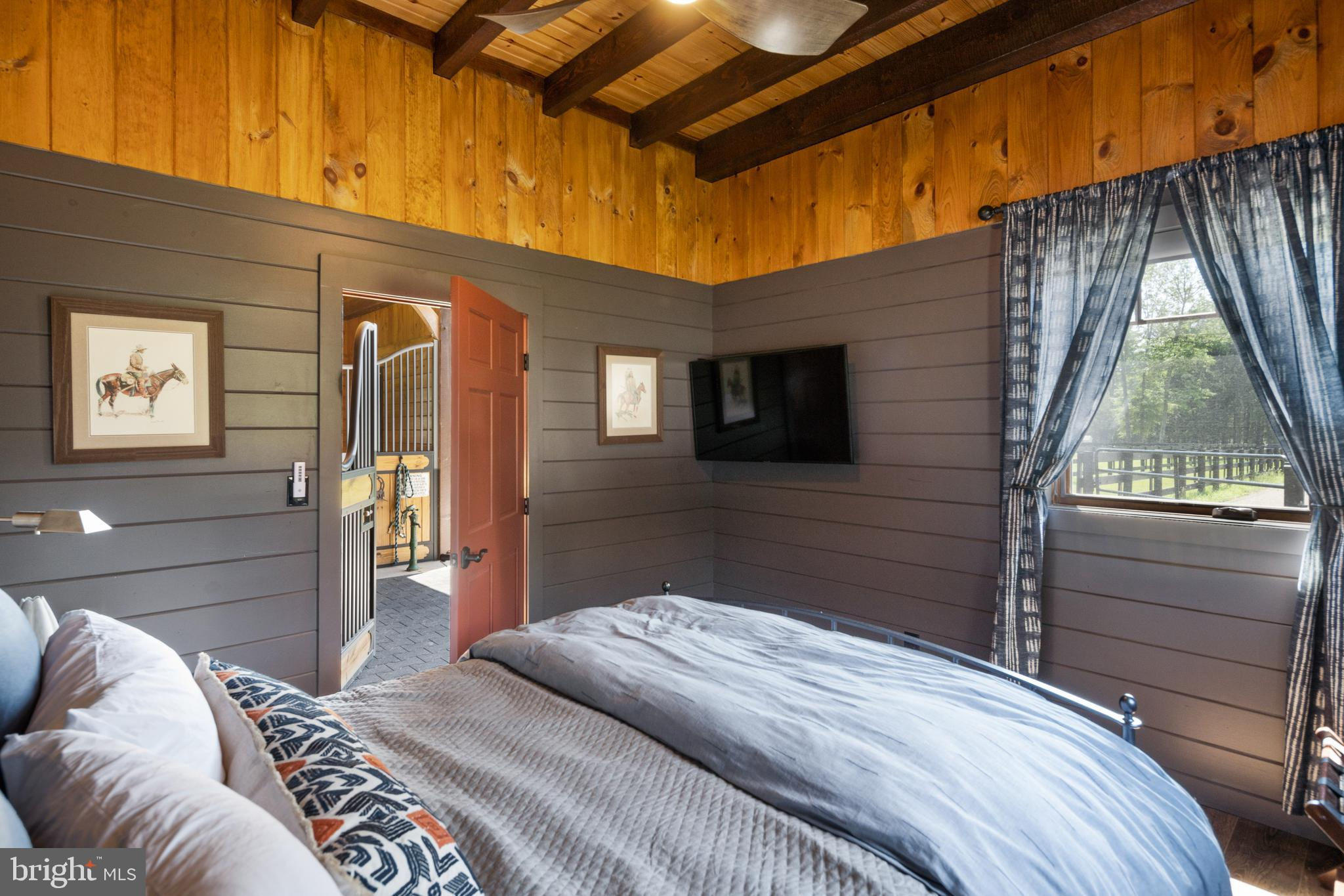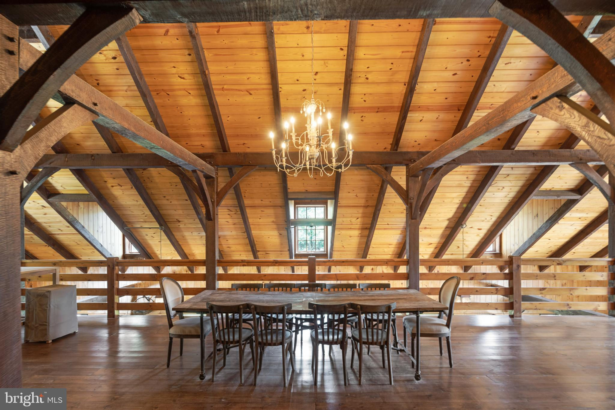 Extraordinary, one-of-a-kind, handcrafted, hybrid-fusion log home that was custom built with Western Red Cedar logs from British Columbia. Low taxes. This pristine and private retreat is unparalleled in architecture and quality craftsmanship with cedar timbers, decking and siding with standing seam metal roof systems, copper gutters and snow guards. Stone foundation and chimneys with blue stone caps. Handmade, Amish-built, solid doors with Ashley Norton hardware throughout. The meandering drive leads to your own slice of heaven, set back on 31 acres of pure tranquility. Whether you're looking for a country retreat or an equestrian paradise, this property will be sure to suit all of your needs. A covered front porch and entryway flanked by gas lanterns invites you into a gorgeous reception area, paneled in 200-year-old reclaimed barn boards. The dramatic great room boasts an A-frame wall of windows, a floor-to-ceiling stone fireplace and English oak wood floors. Rich in natural elements, textures inherent in the logs, the house provides great scale and livability with an open-concept floor plan for daily living and entertaining. The gourmet kitchen features subway tile, Blue Star gas range with a custom-made ventilation hood, pot filler, leathered granite countertops, Quartz-topped island, Thermador refrigeration, farmhouse sink, cabinetry by StarMark and a walk-in pantry. Fantastic integration of indoor and outdoor spaces that flow seamlessly. Access a lovely veranda from the main entertaining area to enjoy the outdoor stone, wood-burning fireplace and hot tub as you overlook the expansive backyard and pastures. The first-floor main bedroom suite with French doors to a covered porch, an exquisite master bathroom with Carrara marble, an oversized seamless glass rainfall shower, polished nickel fixtures, cast iron footed soaking tub, double vanity and a walk-in closet with custom built-ins. The main level also offers a guest suite/home office with Hunter Douglas electric shades, access to the rear deck and an additional full bathroom. The laundry room is outfitted with storage, leathered granite countertops, tile backsplash, Shaws Original farmhouse sink; access to the front porch and oversized, climate controlled two-car garage with commercial-grade epoxy floors, custom cedar garage doors. A stunning stairwell with a custom hand-hammered wrought-iron railing leads to the upper level with a fabulous loft lounge area that overlooks the great room, three spacious bedrooms with custom closet organization systems and balconies. A full bathroom finished in polished hexagonal tile, tub/shower and marble top vanity. The finished lower level offers a second kitchen with Thermador steam oven, island with reclaimed barn boards and leathered granite. TV/media room w/ barn board walls. A gym with walkout access, a full bath with oversized steam shower, double vanity with marble top and tile backsplash. A second laundry room and storage. Lovely picturesque Amish built post & beam barn w/ standing-seam metal roof and copper gutters. Featuring 5 oversized stalls with rubber mats, fans, cameras to monitor horses, center aisle with pavers, wash stall, tack room with lockers, kitchenette with full-sized refrigerator, sink, dishwasher, stone countertops, epoxy floors. A guest suite and full bathroom with seamless glass shower. The upper level offers an expansive loft space for entertaining. All aluminum-clad casement windows throughout, vintage water hydrants, a separate well for barn, wi-fi irrigation, Sonos sound system, 100 Amp sub-panel. Round pen 60' , 5-6 turnouts, outdoor wash stall, wooded riding trails. 8 acres of fenced pastures w/ solar-powered electric fencing and water, riding ring 100' x 180' w/ irrigation system. Whole-house & barn generator. HVAC: 4 zones house, 1 zone barn. Smart switch exterior lighting. Exterior barn lights w/ timer. Central Vac, Cat 5 & cable throughout. Wi-fi irrigation lawn & beds. Farm Assessed.