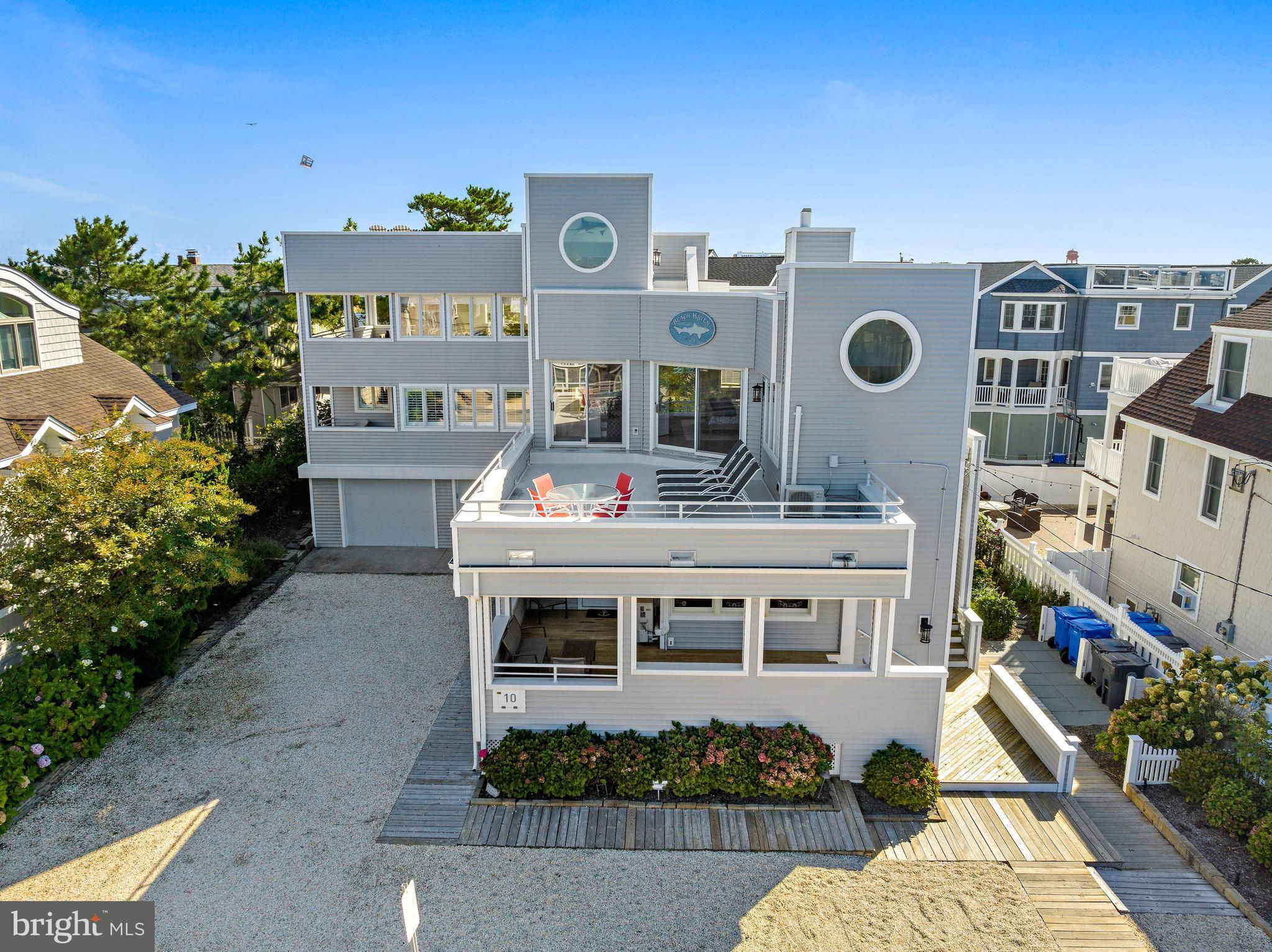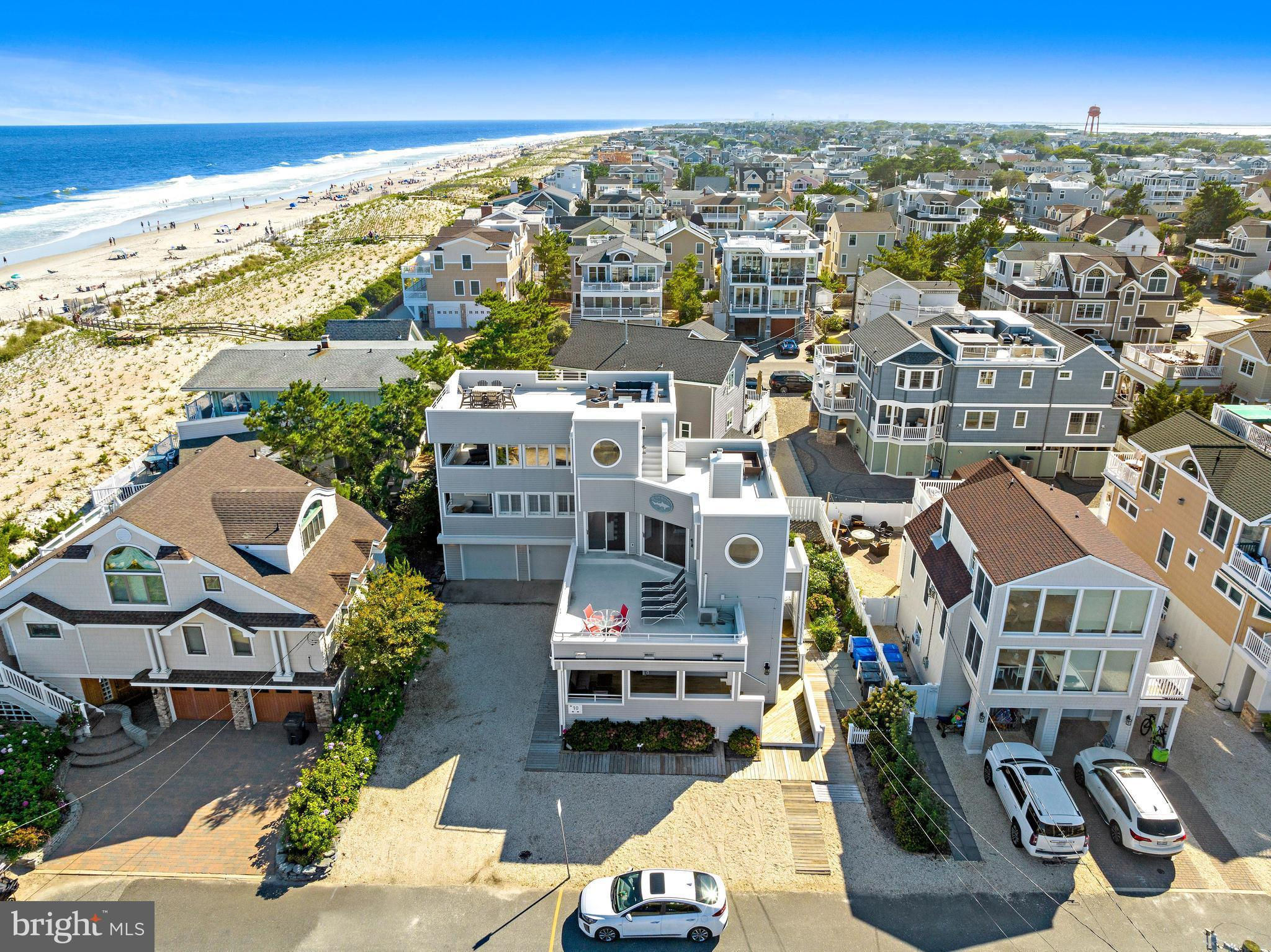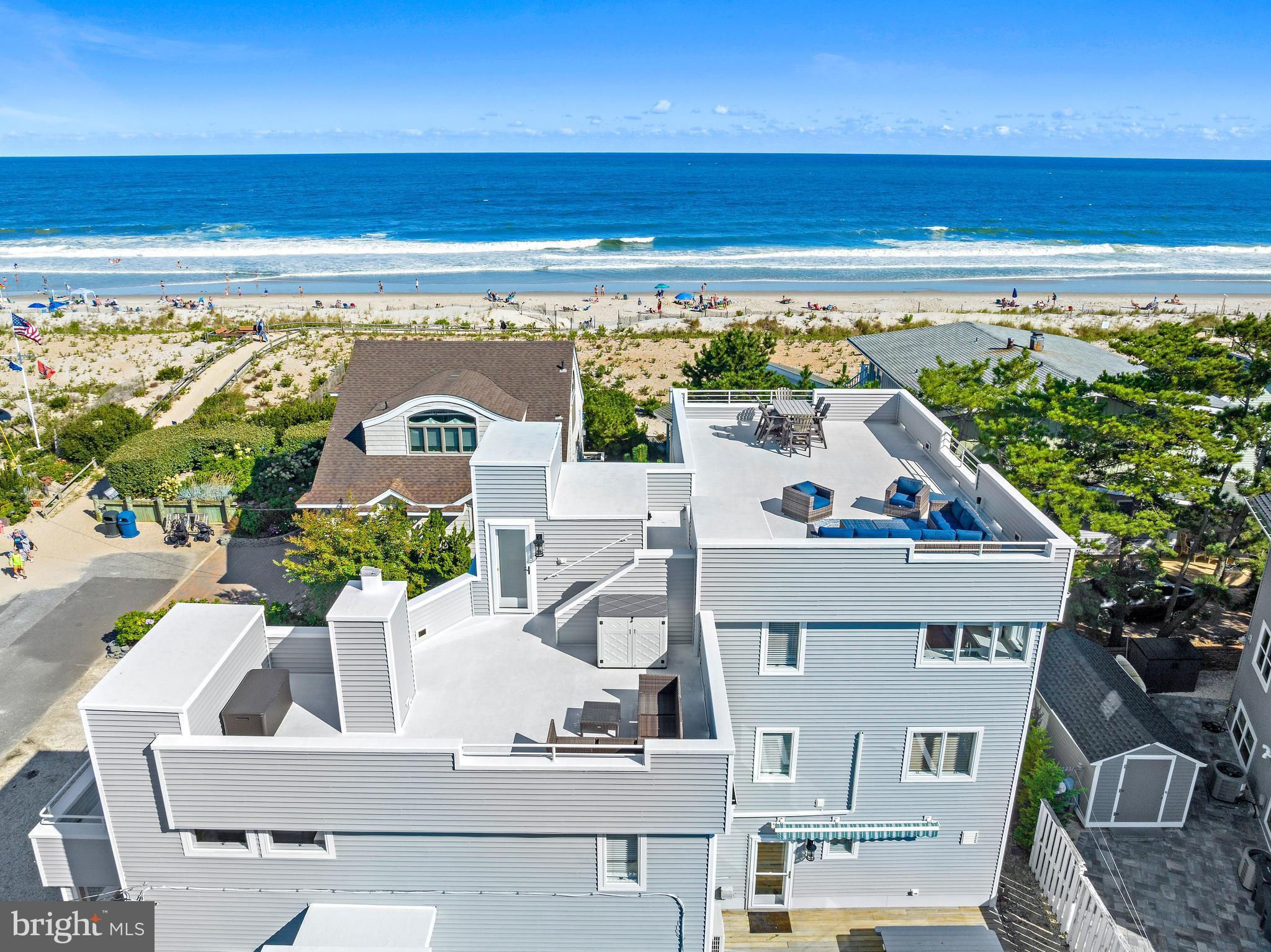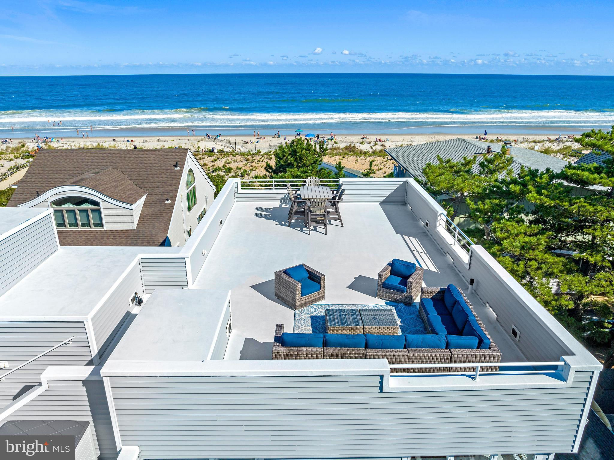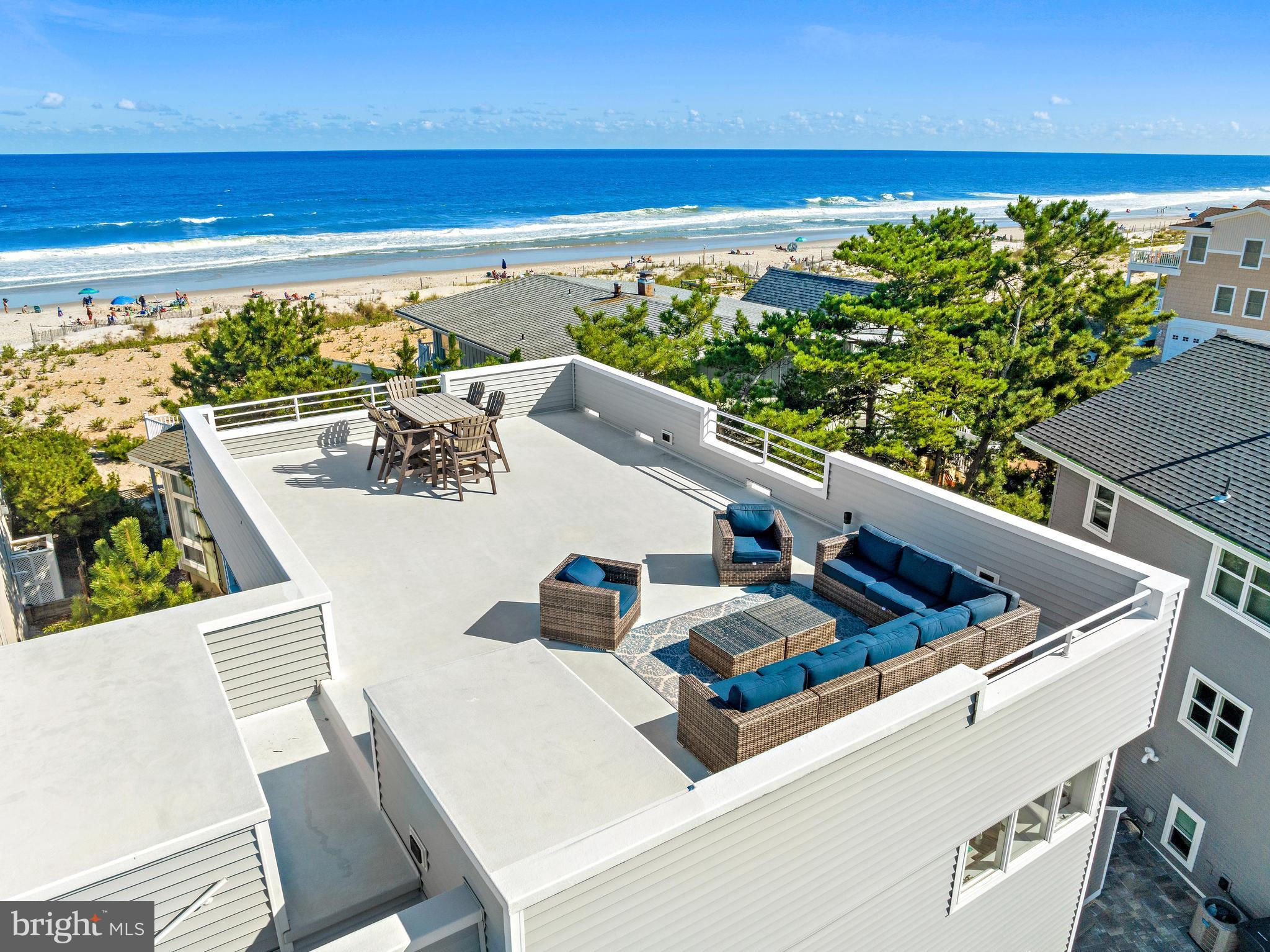 Located just one-off the beach, and steps from the pristine sands of LBI, the first thing you notice when you pull up is the expanse of private parking – unheard of in this part of the island. A two-car garage with all the space you need for your cars and all your beach toys – plus parking for the whole crowd. And as soon as you walk inside, you realize that this is a home built for family, fun, and fantastic memories. The first half-flight takes you into a gathering area right out of the past – surrounded by shiplap walls, wooden ceilings, distressed doors and floors – you will think you have entered an LBI “time warp”. A bunk room, a game room with an official shuffleboard table and arcade game, kitchenette and a true “gathering area” - including a beautiful brick fireplace with a stove insert. Picture a rousing game of scrabble, a good movie on the flatscreen, or relaxing with a great book on the front porch. All decorated with period pieces, but with all the modern amenities. Up a half flight to the master suite – including its own covered deck and a separate office, for those who need a quiet space to answer a few emails before dinner. An additional ensuite for the kids, which has both a bunk bed and queen-sized bed. The next level offers a separate “family suite” – including a king-size bed plus an adjoining bedroom with a shared bath. When you reach the top floor, you will see why this reversed-living great space is everything and more! A huge living area, bright and airy with beautifully appointed windows that bring the outside in. The stunning kitchen had an expanse of custom cabinets with quartz countertops, a Wolf stove and a SubZero fridge. In addition, a huge center island with a built-in microwave and additional SubZero drawers for easy access – and a dining table large enough to sit the whole family for dinner. Enjoy your morning coffee on the covered deck off the living room which offers stunning ocean views. Then, when the sun starts to go down, grab a cocktail and head up to the rooftop decks – for that 360-degree panoramic view of the island – and the best sunsets on the East Coast. The backyard also boasts a garden area with mature landscaping and an outdoor shower to rinse off the day on the beach, anticipating the steaks cooking on the grill. Enjoy the beach life!