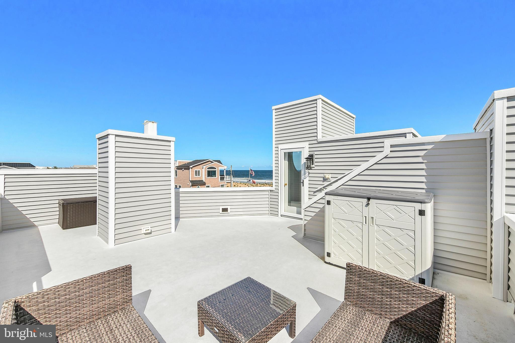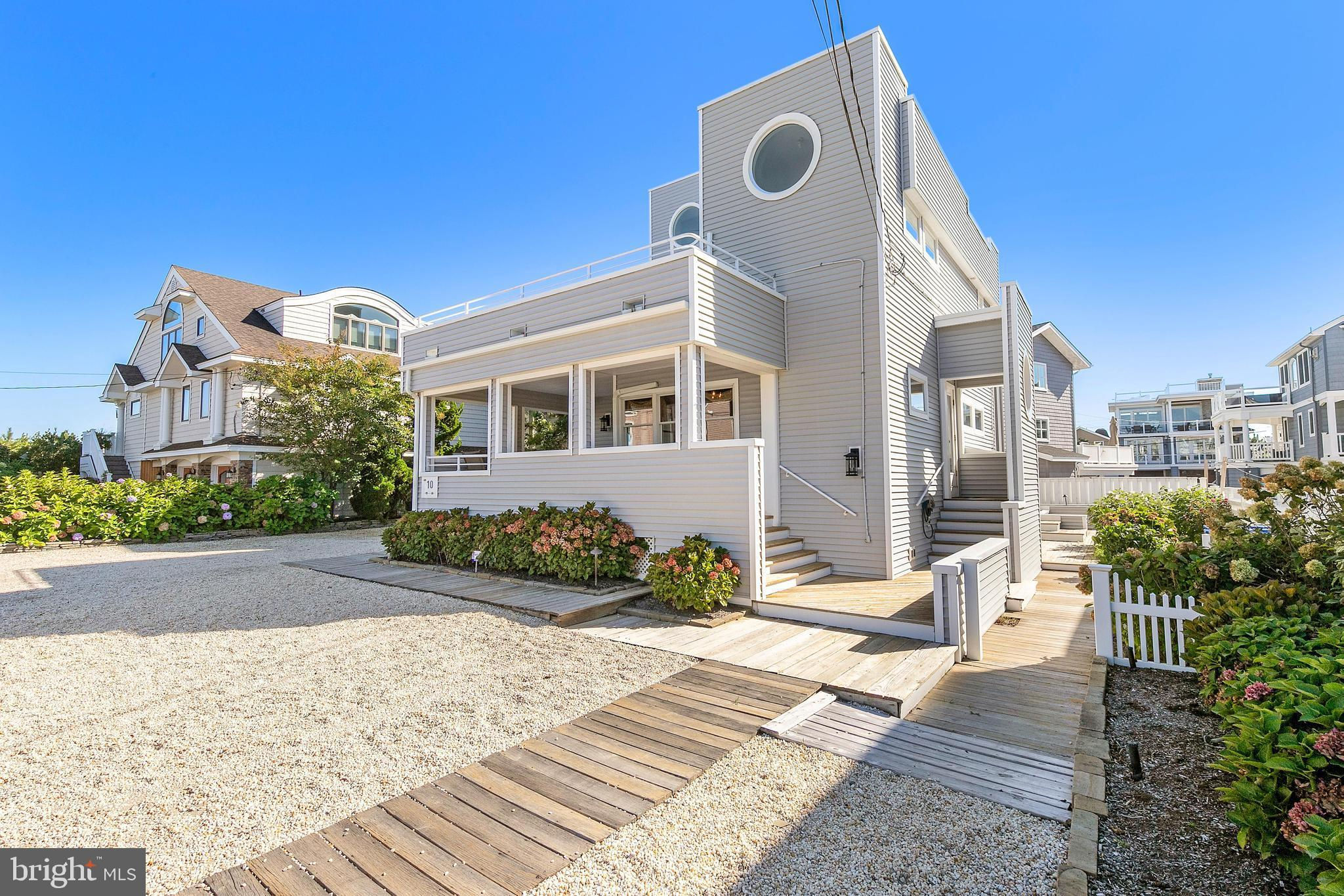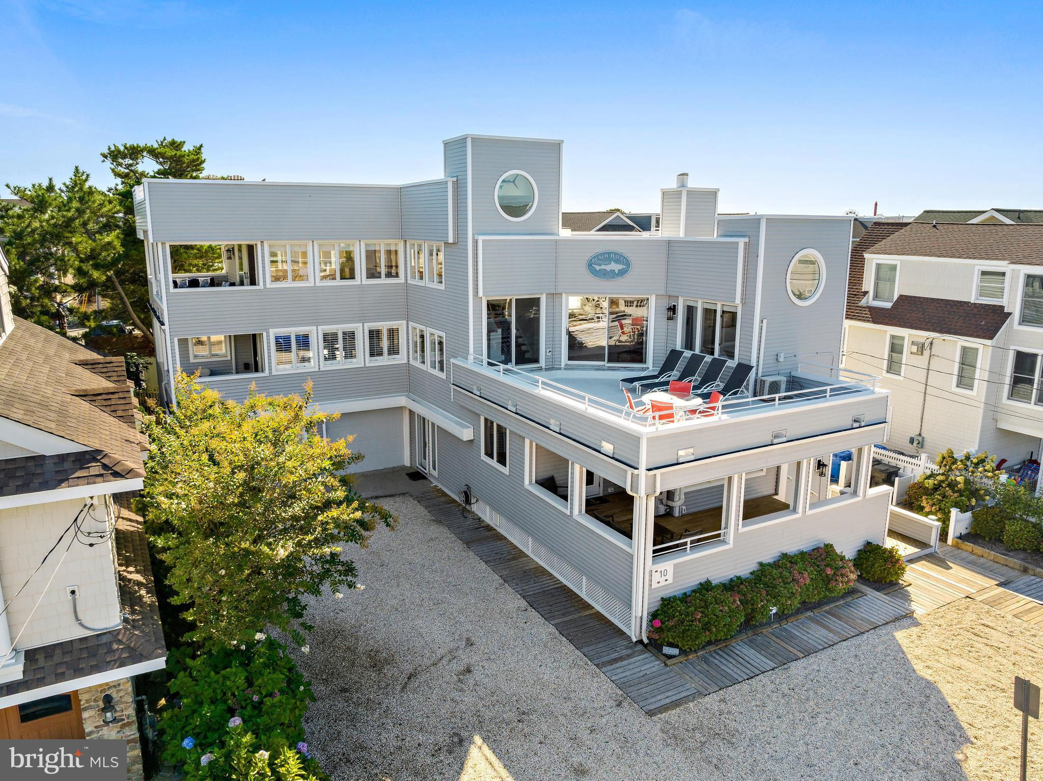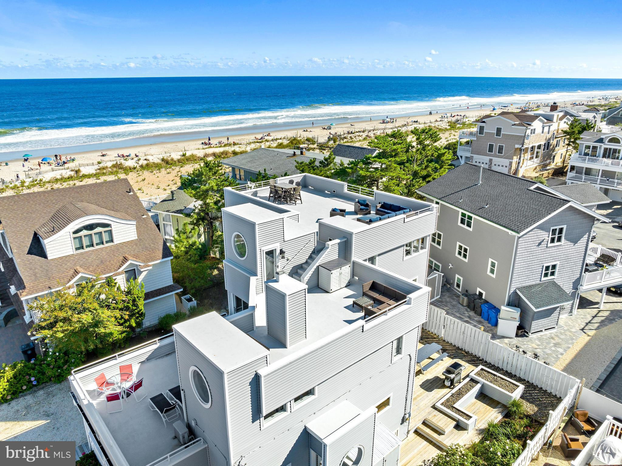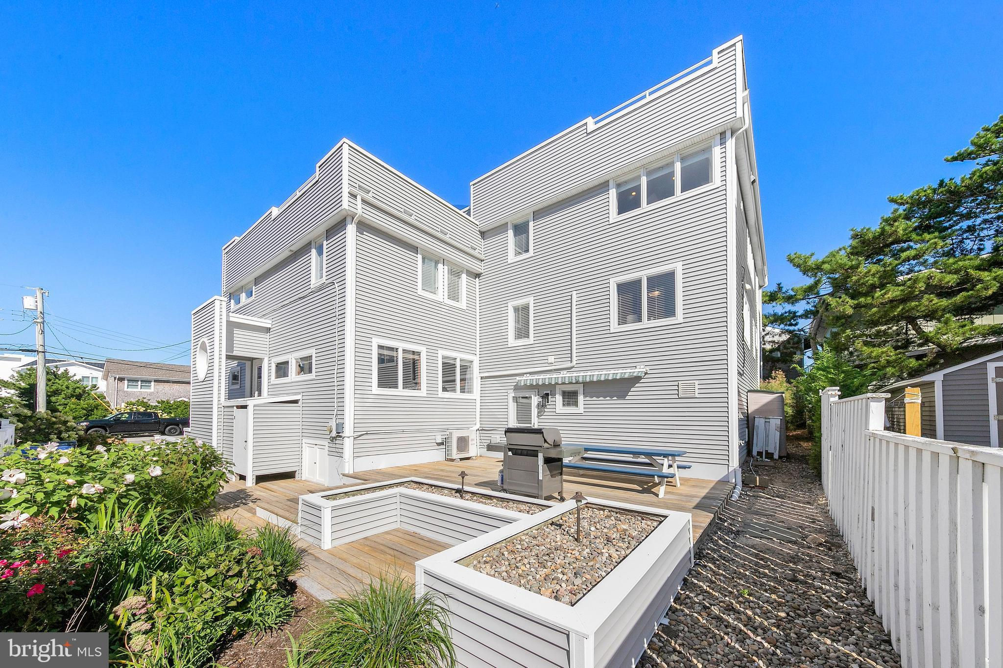 Located just one-off the beach, and steps from the pristine sands of LBI, the first thing you notice when you pull up is the expanse of private parking – unheard of in this part of the island. A two-car garage with all the space you need for your cars and all your beach toys – plus parking for the whole crowd. And as soon as you walk inside, you realize that this is a home built for family, fun, and fantastic memories. The first half-flight takes you into a gathering area right out of the past – surrounded by shiplap walls, wooden ceilings, distressed doors and floors – you will think you have entered an LBI “time warp”. A bunk room, a game room with an official shuffleboard table and arcade game, kitchenette and a true “gathering area” - including a beautiful brick fireplace with a stove insert. Picture a rousing game of scrabble, a good movie on the flatscreen, or relaxing with a great book on the front porch. All decorated with period pieces, but with all the modern amenities. Up a half flight to the master suite – including its own covered deck and a separate office, for those who need a quiet space to answer a few emails before dinner. An additional ensuite for the kids, which has both a bunk bed and queen-sized bed. The next level offers a separate “family suite” – including a king-size bed plus an adjoining bedroom with a shared bath. When you reach the top floor, you will see why this reversed-living great space is everything and more! A huge living area, bright and airy with beautifully appointed windows that bring the outside in. The stunning kitchen had an expanse of custom cabinets with quartz countertops, a Wolf stove and a SubZero fridge. In addition, a huge center island with a built-in microwave and additional SubZero drawers for easy access – and a dining table large enough to sit the whole family for dinner. Enjoy your morning coffee on the covered deck off the living room which offers stunning ocean views. Then, when the sun starts to go down, grab a cocktail and head up to the rooftop decks – for that 360-degree panoramic view of the island – and the best sunsets on the East Coast. The backyard also boasts a garden area with mature landscaping and an outdoor shower to rinse off the day on the beach, anticipating the steaks cooking on the grill. Enjoy the beach life!