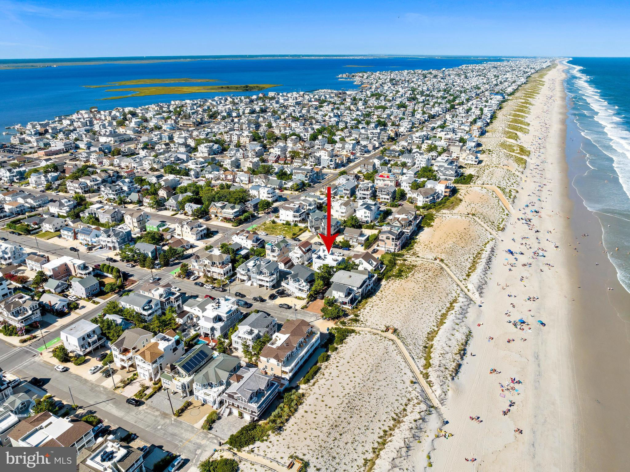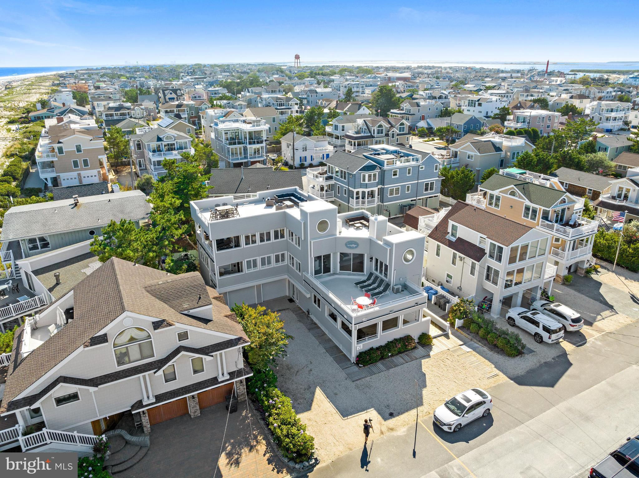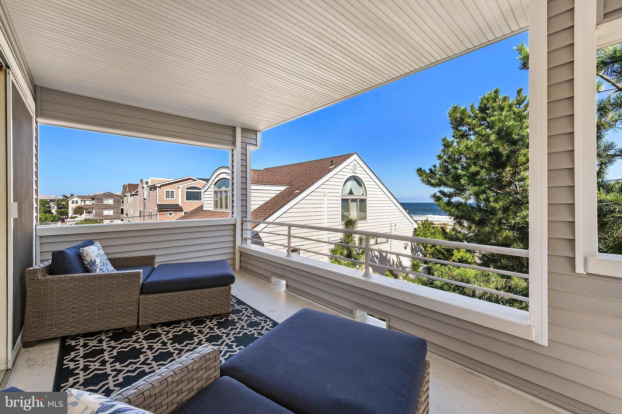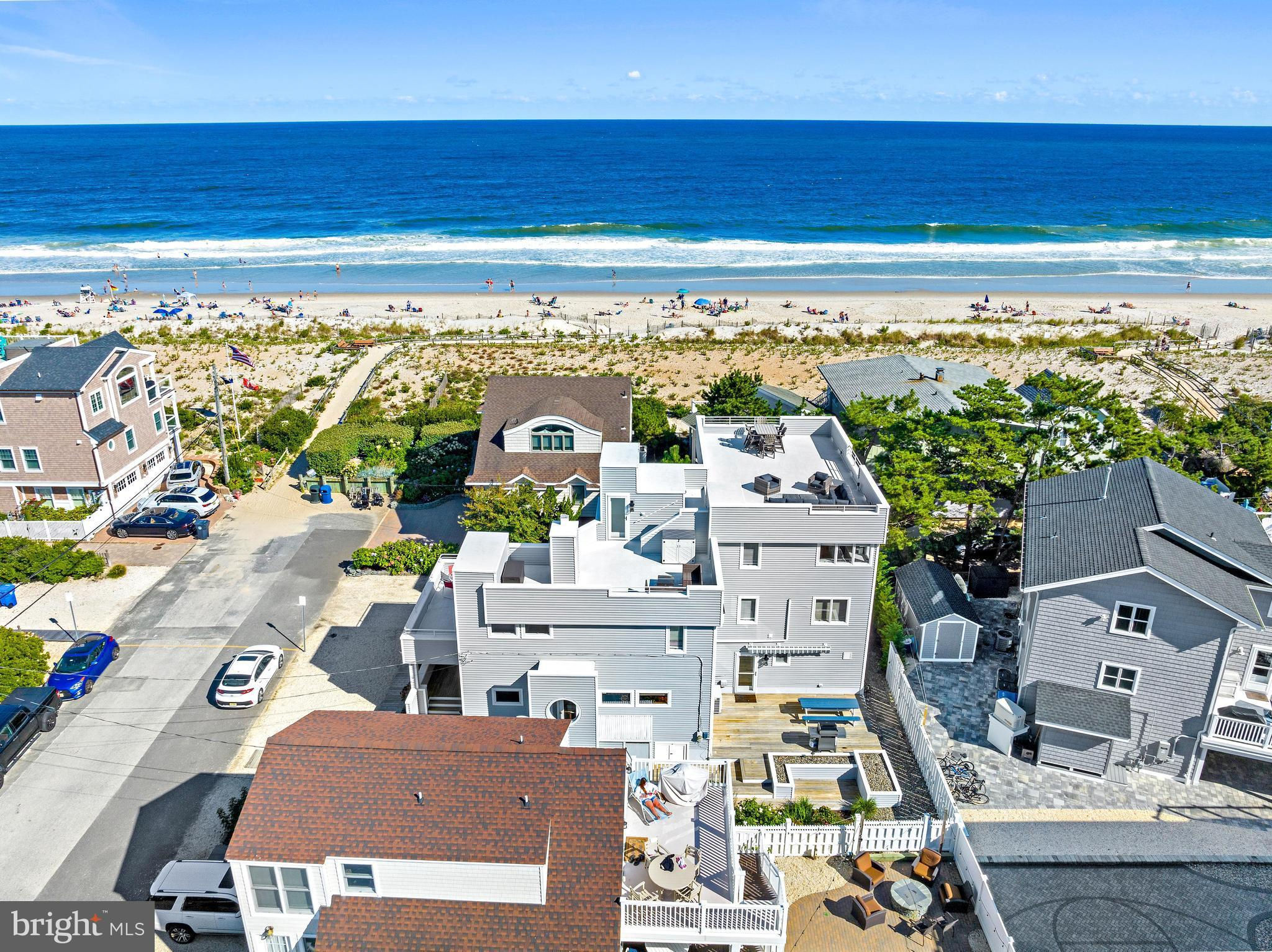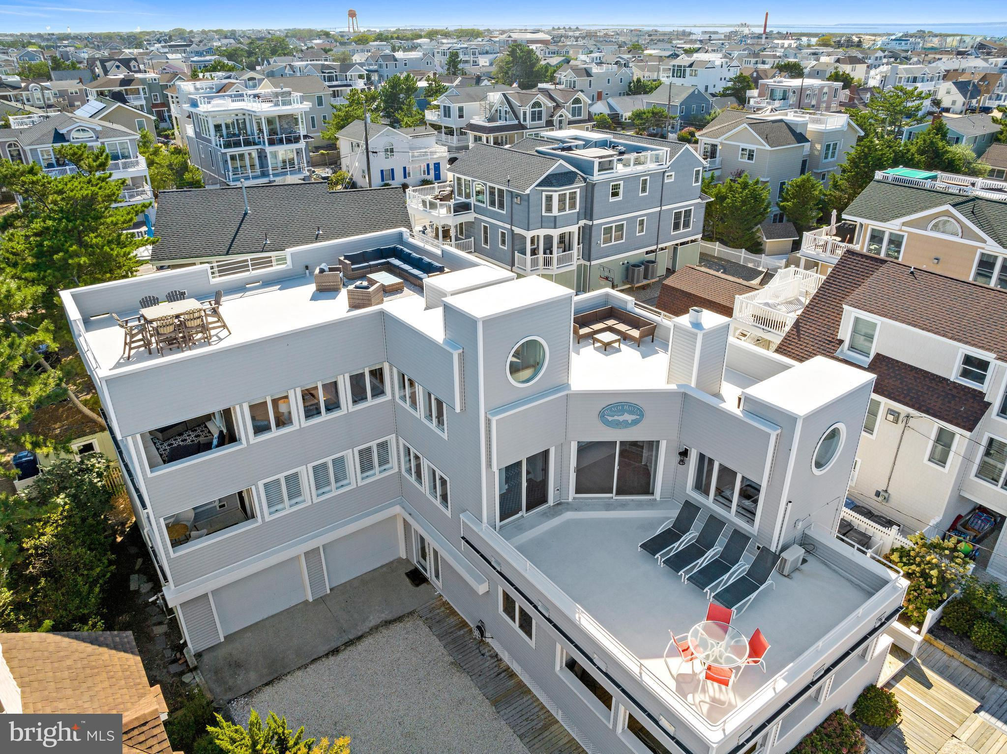 Located just one-off the beach, and steps from the pristine sands of LBI, the first thing you notice when you pull up is the expanse of private parking – unheard of in this part of the island. A two-car garage with all the space you need for your cars and all your beach toys – plus parking for the whole crowd. And as soon as you walk inside, you realize that this is a home built for family, fun, and fantastic memories. The first half-flight takes you into a gathering area right out of the past – surrounded by shiplap walls, wooden ceilings, distressed doors and floors – you will think you have entered an LBI “time warp”. A bunk room, a game room with an official shuffleboard table and arcade game, kitchenette and a true “gathering area” - including a beautiful brick fireplace with a stove insert. Picture a rousing game of scrabble, a good movie on the flatscreen, or relaxing with a great book on the front porch. All decorated with period pieces, but with all the modern amenities. Up a half flight to the master suite – including its own covered deck and a separate office, for those who need a quiet space to answer a few emails before dinner. An additional ensuite for the kids, which has both a bunk bed and queen-sized bed. The next level offers a separate “family suite” – including a king-size bed plus an adjoining bedroom with a shared bath. When you reach the top floor, you will see why this reversed-living great space is everything and more! A huge living area, bright and airy with beautifully appointed windows that bring the outside in. The stunning kitchen had an expanse of custom cabinets with quartz countertops, a Wolf stove and a SubZero fridge. In addition, a huge center island with a built-in microwave and additional SubZero drawers for easy access – and a dining table large enough to sit the whole family for dinner. Enjoy your morning coffee on the covered deck off the living room which offers stunning ocean views. Then, when the sun starts to go down, grab a cocktail and head up to the rooftop decks – for that 360-degree panoramic view of the island – and the best sunsets on the East Coast. The backyard also boasts a garden area with mature landscaping and an outdoor shower to rinse off the day on the beach, anticipating the steaks cooking on the grill. Enjoy the beach life!