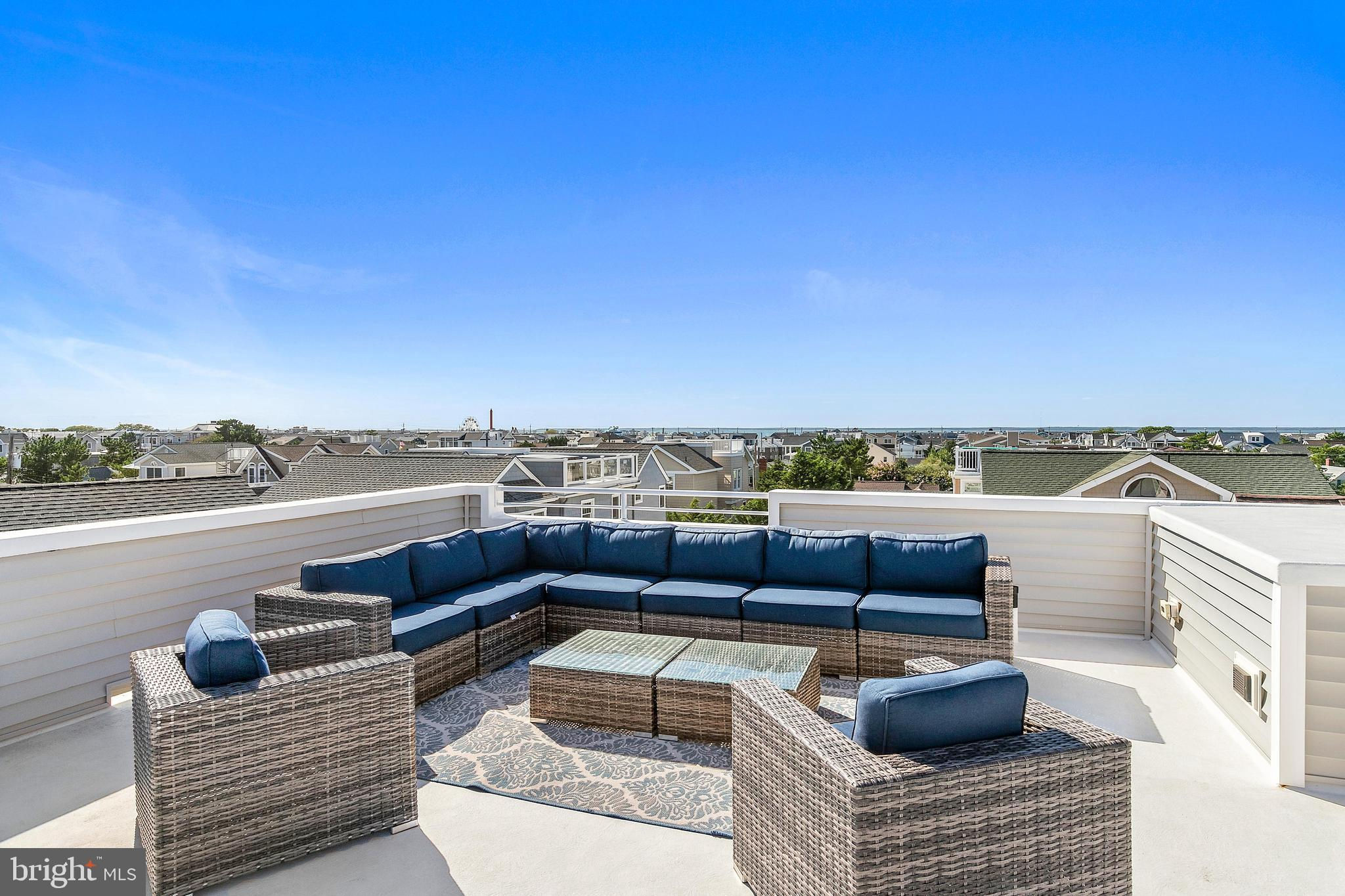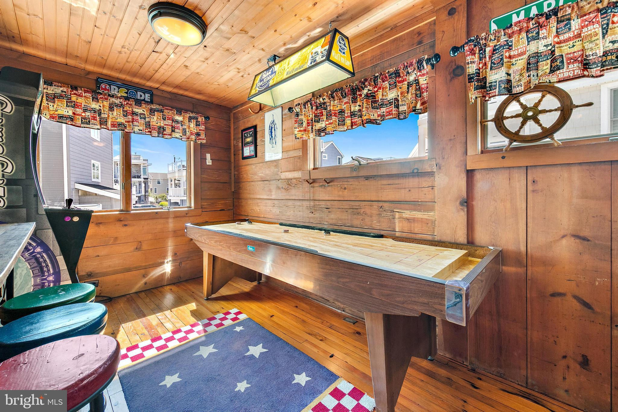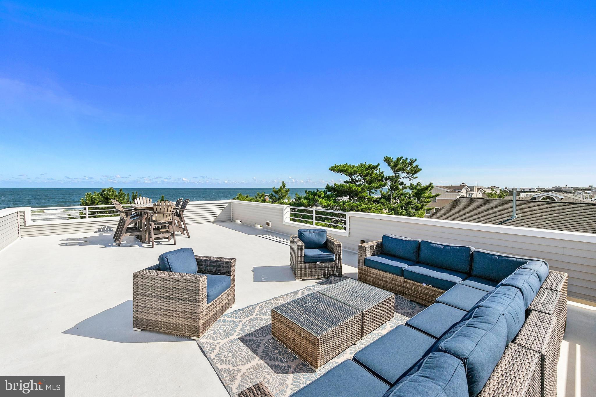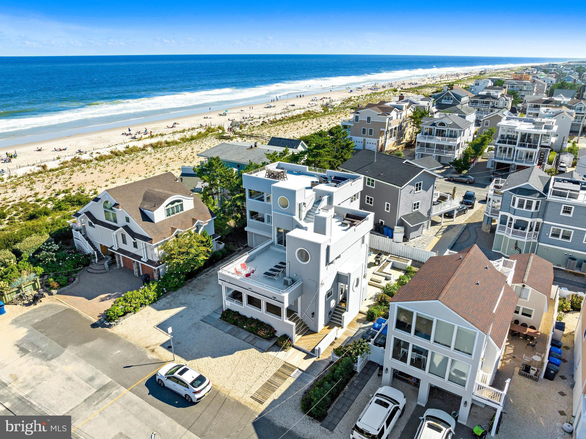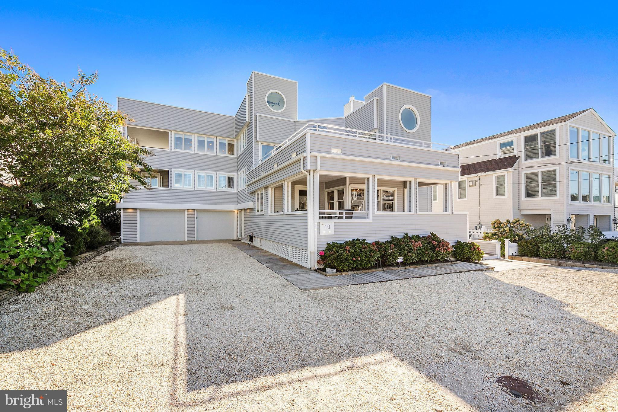 Located just one-off the beach, and steps from the pristine sands of LBI, the first thing you notice when you pull up is the expanse of private parking – unheard of in this part of the island. A two-car garage with all the space you need for your cars and all your beach toys – plus parking for the whole crowd. And as soon as you walk inside, you realize that this is a home built for family, fun, and fantastic memories. The first half-flight takes you into a gathering area right out of the past – surrounded by shiplap walls, wooden ceilings, distressed doors and floors – you will think you have entered an LBI “time warp”. A bunk room, a game room with an official shuffleboard table and arcade game, kitchenette and a true “gathering area” - including a beautiful brick fireplace with a stove insert. Picture a rousing game of scrabble, a good movie on the flatscreen, or relaxing with a great book on the front porch. All decorated with period pieces, but with all the modern amenities. Up a half flight to the master suite – including its own covered deck and a separate office, for those who need a quiet space to answer a few emails before dinner. An additional ensuite for the kids, which has both a bunk bed and queen-sized bed. The next level offers a separate “family suite” – including a king-size bed plus an adjoining bedroom with a shared bath. When you reach the top floor, you will see why this reversed-living great space is everything and more! A huge living area, bright and airy with beautifully appointed windows that bring the outside in. The stunning kitchen had an expanse of custom cabinets with quartz countertops, a Wolf stove and a SubZero fridge. In addition, a huge center island with a built-in microwave and additional SubZero drawers for easy access – and a dining table large enough to sit the whole family for dinner. Enjoy your morning coffee on the covered deck off the living room which offers stunning ocean views. Then, when the sun starts to go down, grab a cocktail and head up to the rooftop decks – for that 360-degree panoramic view of the island – and the best sunsets on the East Coast. The backyard also boasts a garden area with mature landscaping and an outdoor shower to rinse off the day on the beach, anticipating the steaks cooking on the grill. Enjoy the beach life!