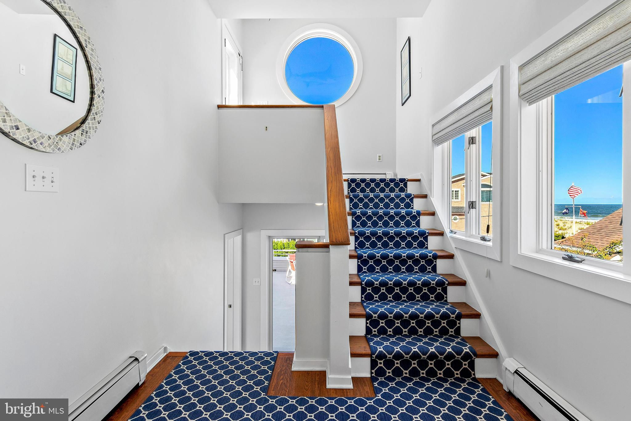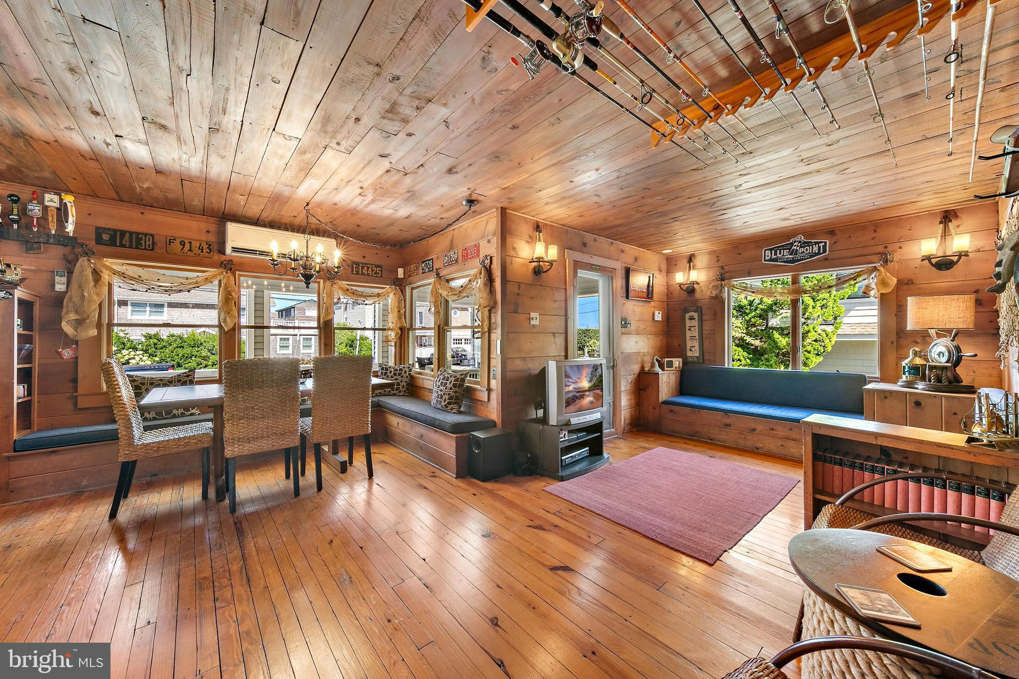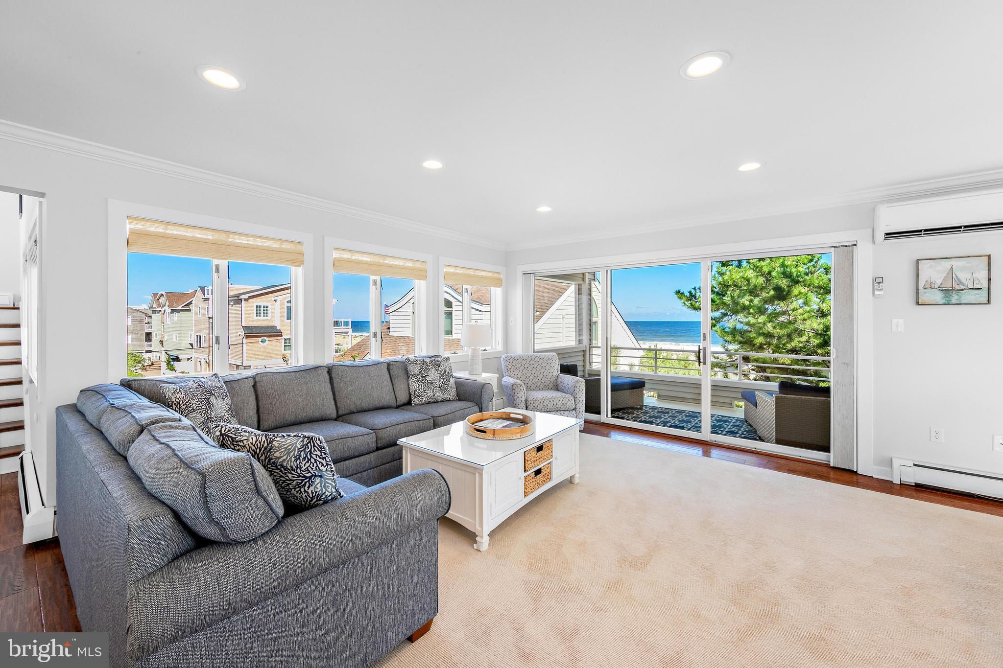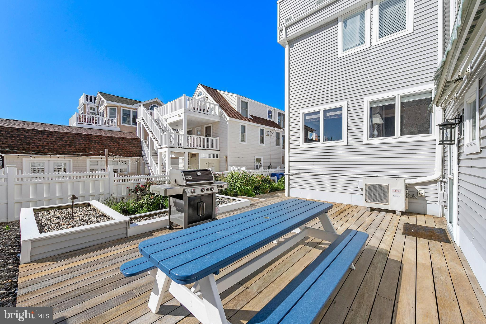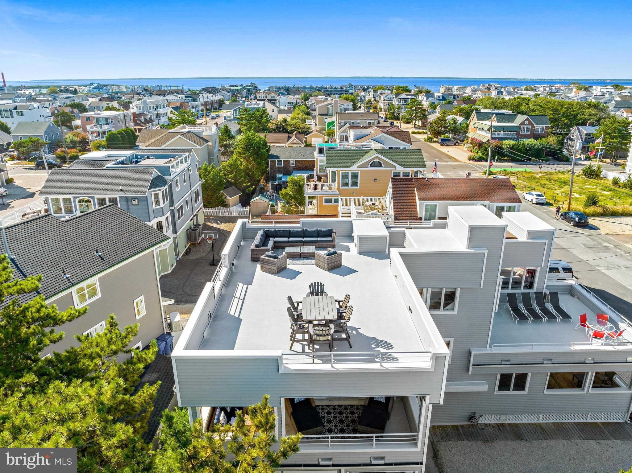 Located just one-off the beach, and steps from the pristine sands of LBI, the first thing you notice when you pull up is the expanse of private parking – unheard of in this part of the island. A two-car garage with all the space you need for your cars and all your beach toys – plus parking for the whole crowd. And as soon as you walk inside, you realize that this is a home built for family, fun, and fantastic memories. The first half-flight takes you into a gathering area right out of the past – surrounded by shiplap walls, wooden ceilings, distressed doors and floors – you will think you have entered an LBI “time warp”. A bunk room, a game room with an official shuffleboard table and arcade game, kitchenette and a true “gathering area” - including a beautiful brick fireplace with a stove insert. Picture a rousing game of scrabble, a good movie on the flatscreen, or relaxing with a great book on the front porch. All decorated with period pieces, but with all the modern amenities. Up a half flight to the master suite – including its own covered deck and a separate office, for those who need a quiet space to answer a few emails before dinner. An additional ensuite for the kids, which has both a bunk bed and queen-sized bed. The next level offers a separate “family suite” – including a king-size bed plus an adjoining bedroom with a shared bath. When you reach the top floor, you will see why this reversed-living great space is everything and more! A huge living area, bright and airy with beautifully appointed windows that bring the outside in. The stunning kitchen had an expanse of custom cabinets with quartz countertops, a Wolf stove and a SubZero fridge. In addition, a huge center island with a built-in microwave and additional SubZero drawers for easy access – and a dining table large enough to sit the whole family for dinner. Enjoy your morning coffee on the covered deck off the living room which offers stunning ocean views. Then, when the sun starts to go down, grab a cocktail and head up to the rooftop decks – for that 360-degree panoramic view of the island – and the best sunsets on the East Coast. The backyard also boasts a garden area with mature landscaping and an outdoor shower to rinse off the day on the beach, anticipating the steaks cooking on the grill. Enjoy the beach life!