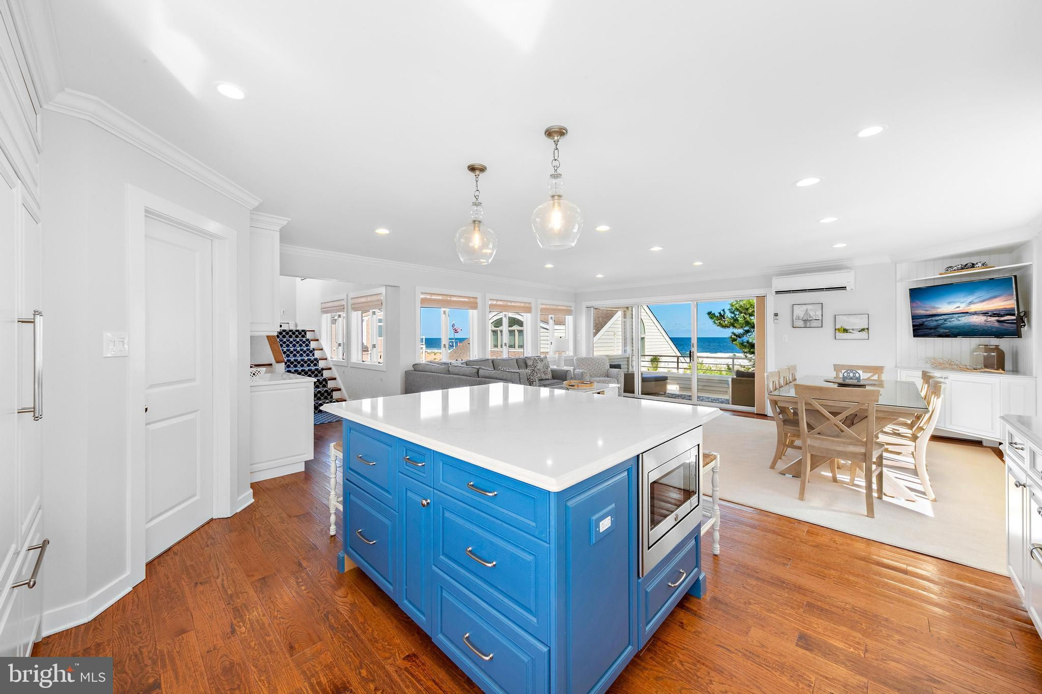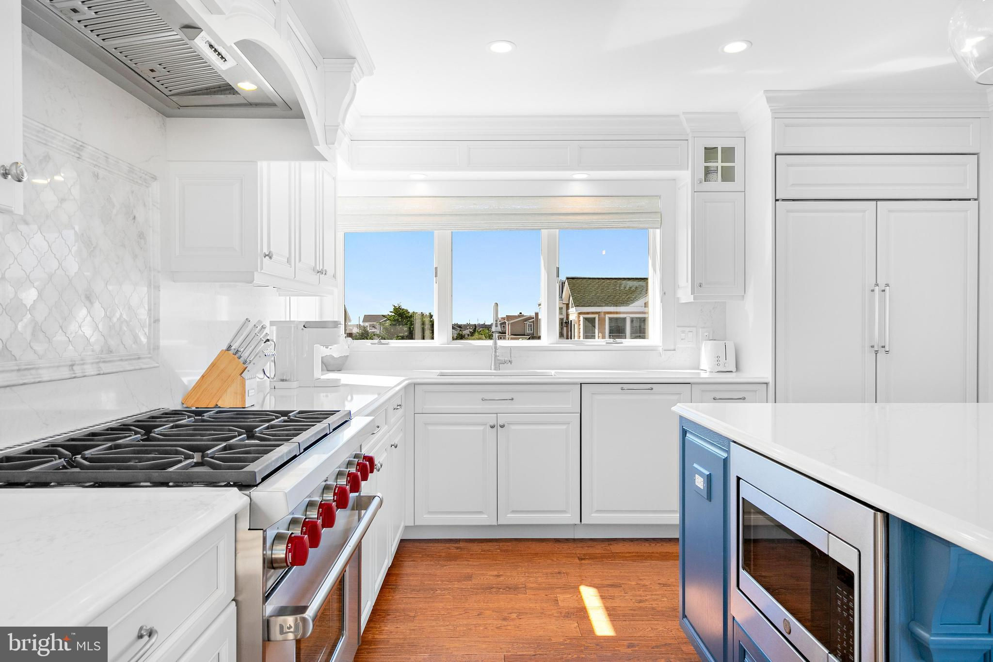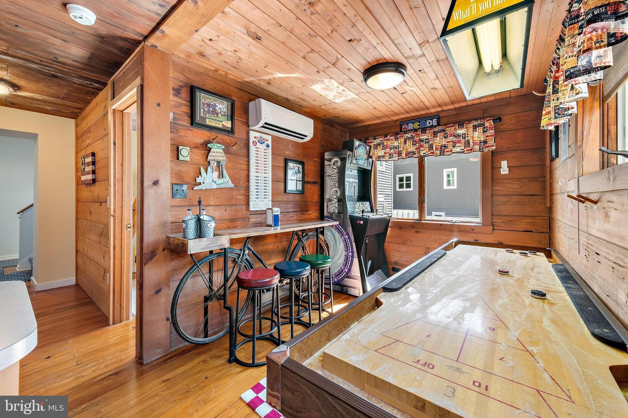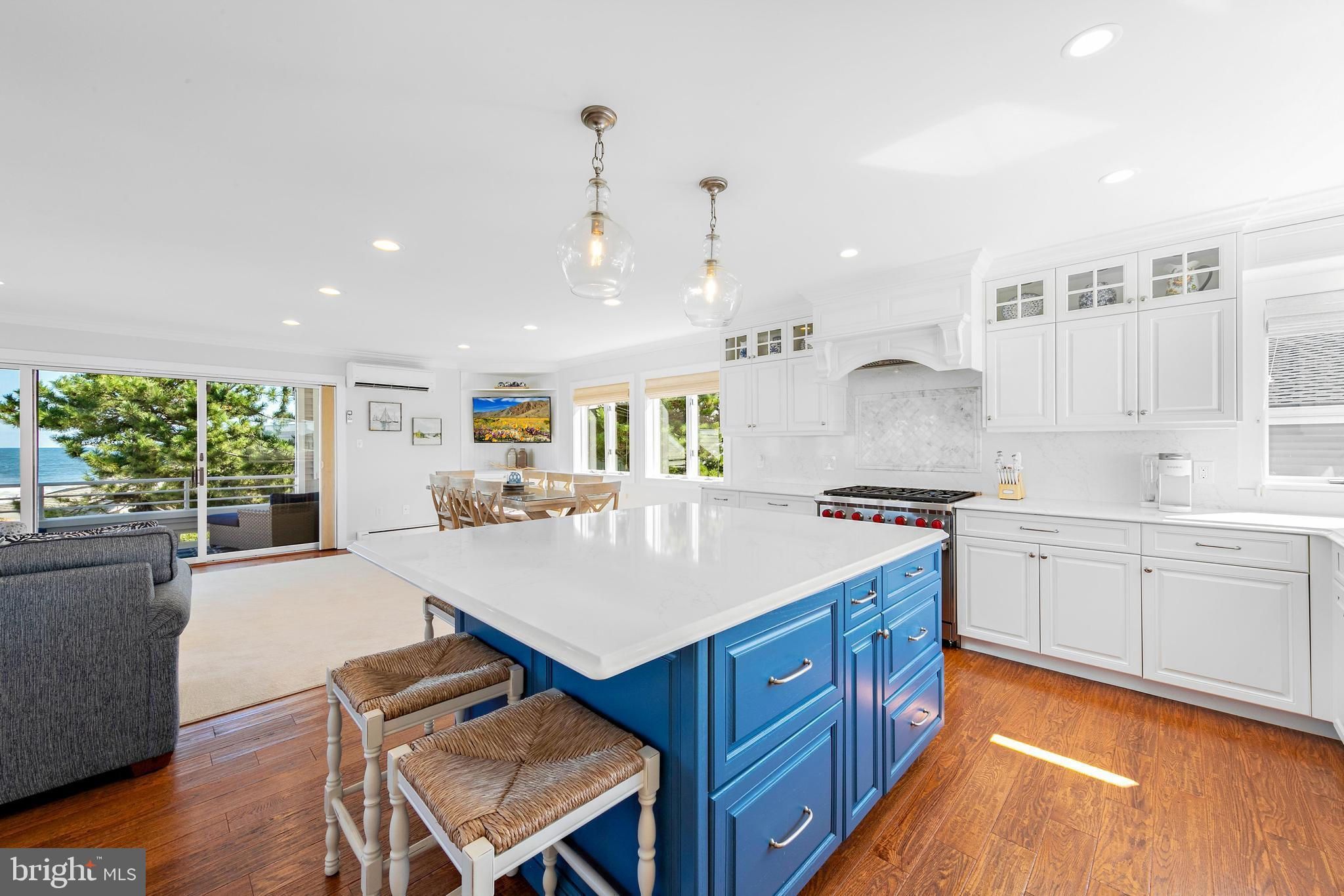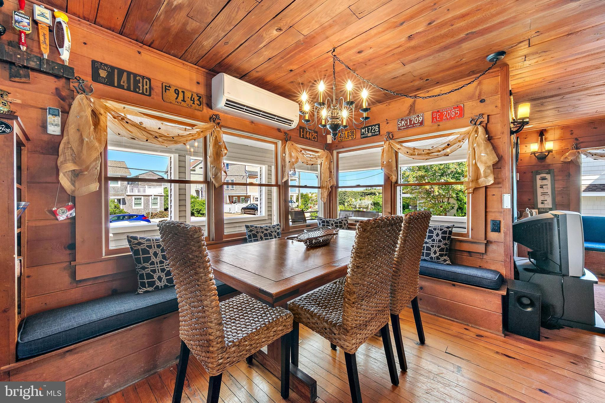 Located just one-off the beach, and steps from the pristine sands of LBI, the first thing you notice when you pull up is the expanse of private parking – unheard of in this part of the island. A two-car garage with all the space you need for your cars and all your beach toys – plus parking for the whole crowd. And as soon as you walk inside, you realize that this is a home built for family, fun, and fantastic memories. The first half-flight takes you into a gathering area right out of the past – surrounded by shiplap walls, wooden ceilings, distressed doors and floors – you will think you have entered an LBI “time warp”. A bunk room, a game room with an official shuffleboard table and arcade game, kitchenette and a true “gathering area” - including a beautiful brick fireplace with a stove insert. Picture a rousing game of scrabble, a good movie on the flatscreen, or relaxing with a great book on the front porch. All decorated with period pieces, but with all the modern amenities. Up a half flight to the master suite – including its own covered deck and a separate office, for those who need a quiet space to answer a few emails before dinner. An additional ensuite for the kids, which has both a bunk bed and queen-sized bed. The next level offers a separate “family suite” – including a king-size bed plus an adjoining bedroom with a shared bath. When you reach the top floor, you will see why this reversed-living great space is everything and more! A huge living area, bright and airy with beautifully appointed windows that bring the outside in. The stunning kitchen had an expanse of custom cabinets with quartz countertops, a Wolf stove and a SubZero fridge. In addition, a huge center island with a built-in microwave and additional SubZero drawers for easy access – and a dining table large enough to sit the whole family for dinner. Enjoy your morning coffee on the covered deck off the living room which offers stunning ocean views. Then, when the sun starts to go down, grab a cocktail and head up to the rooftop decks – for that 360-degree panoramic view of the island – and the best sunsets on the East Coast. The backyard also boasts a garden area with mature landscaping and an outdoor shower to rinse off the day on the beach, anticipating the steaks cooking on the grill. Enjoy the beach life!