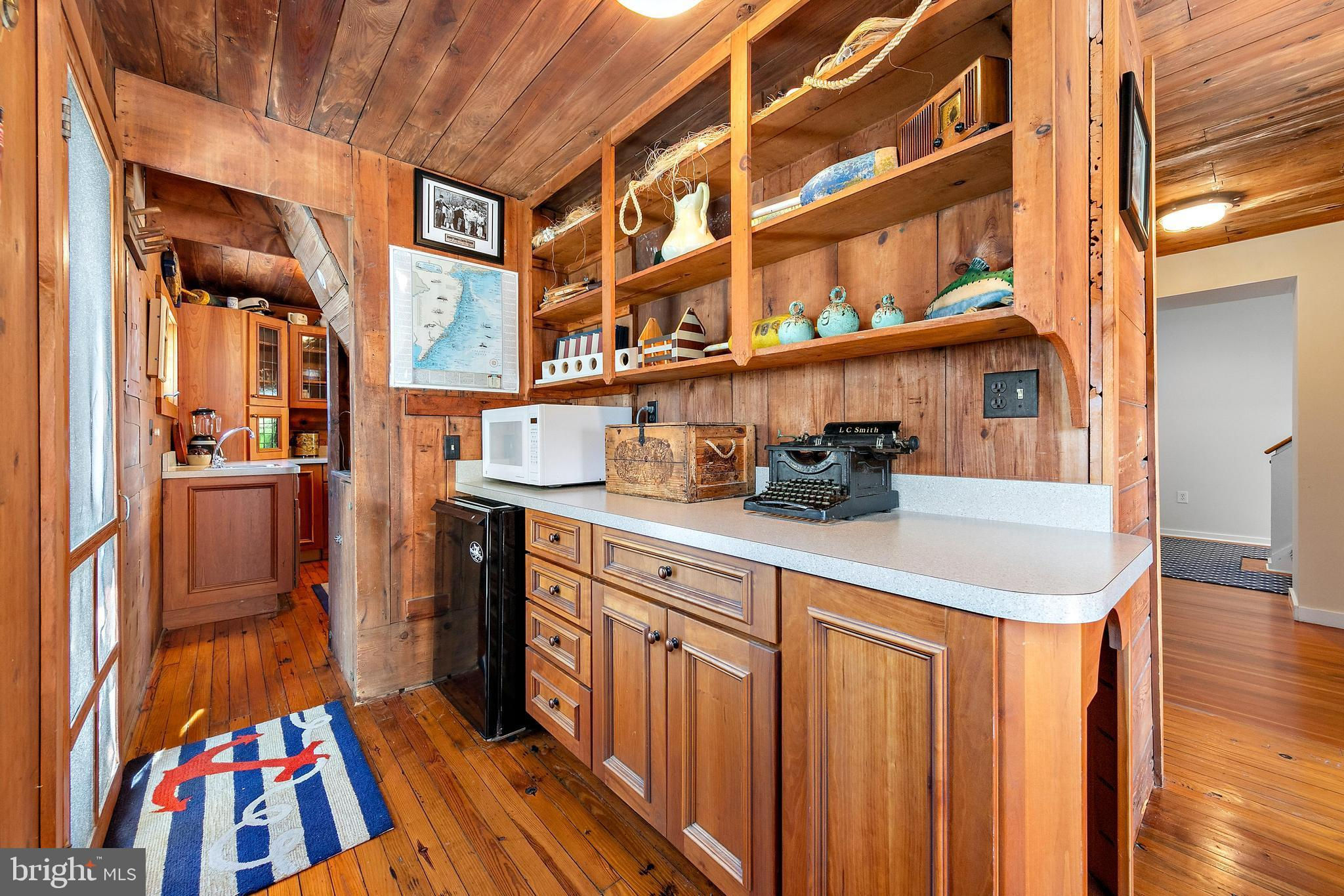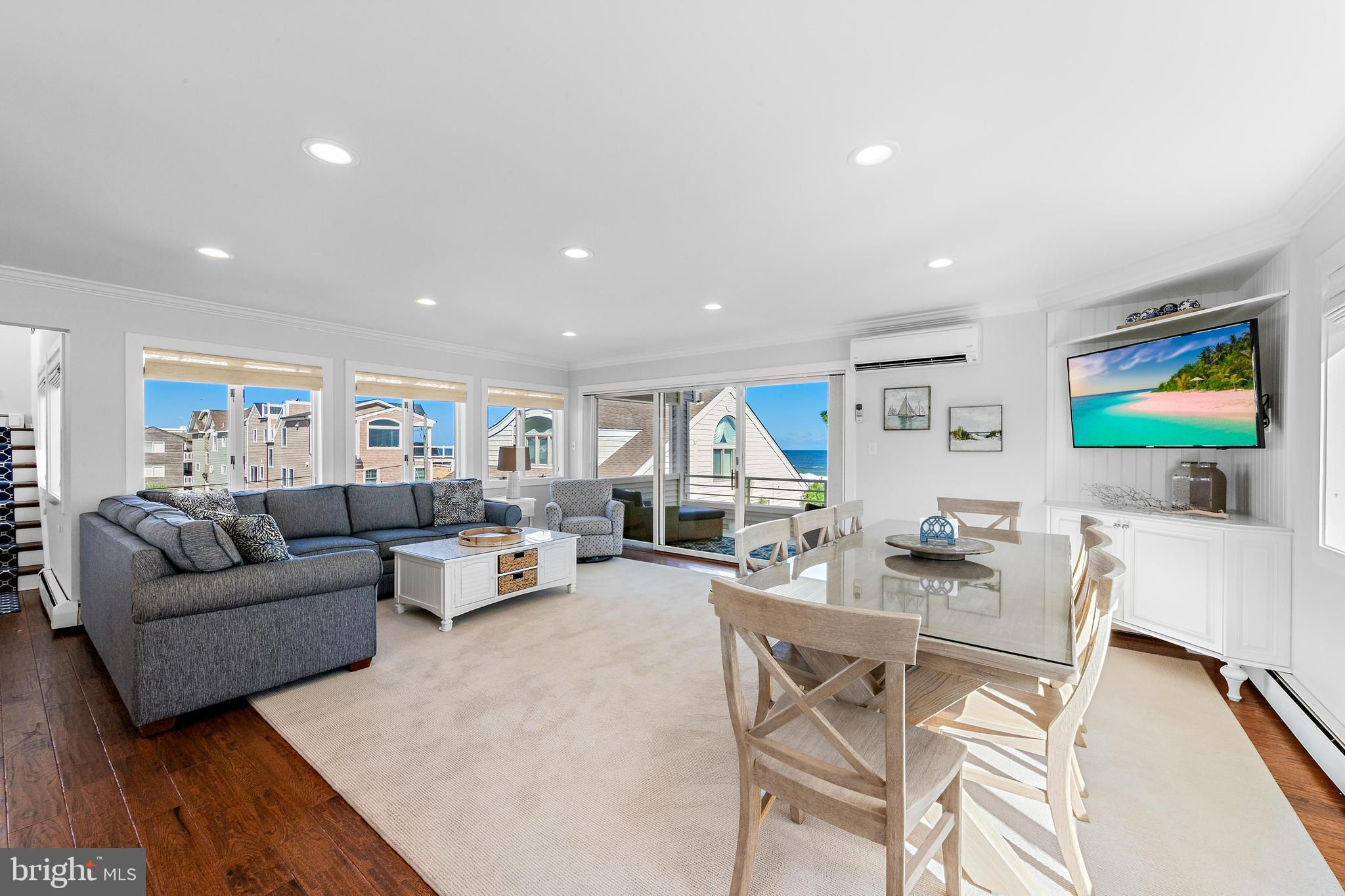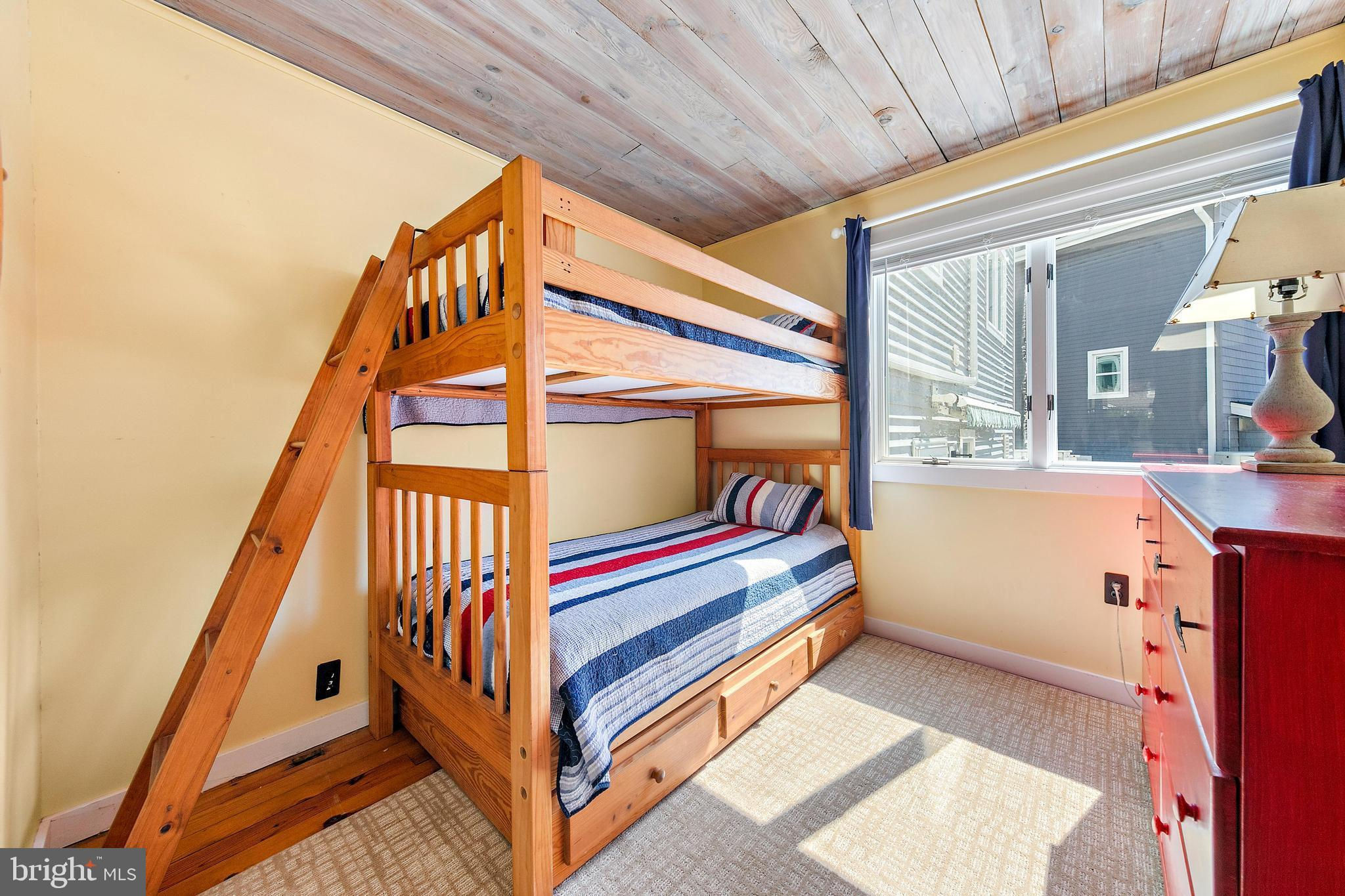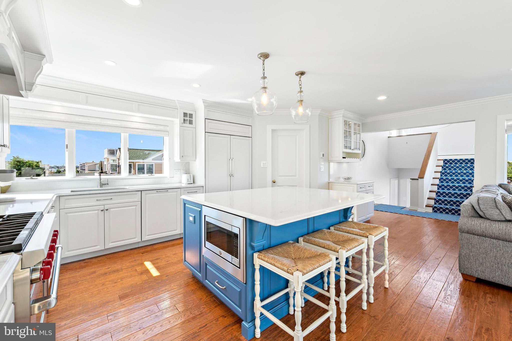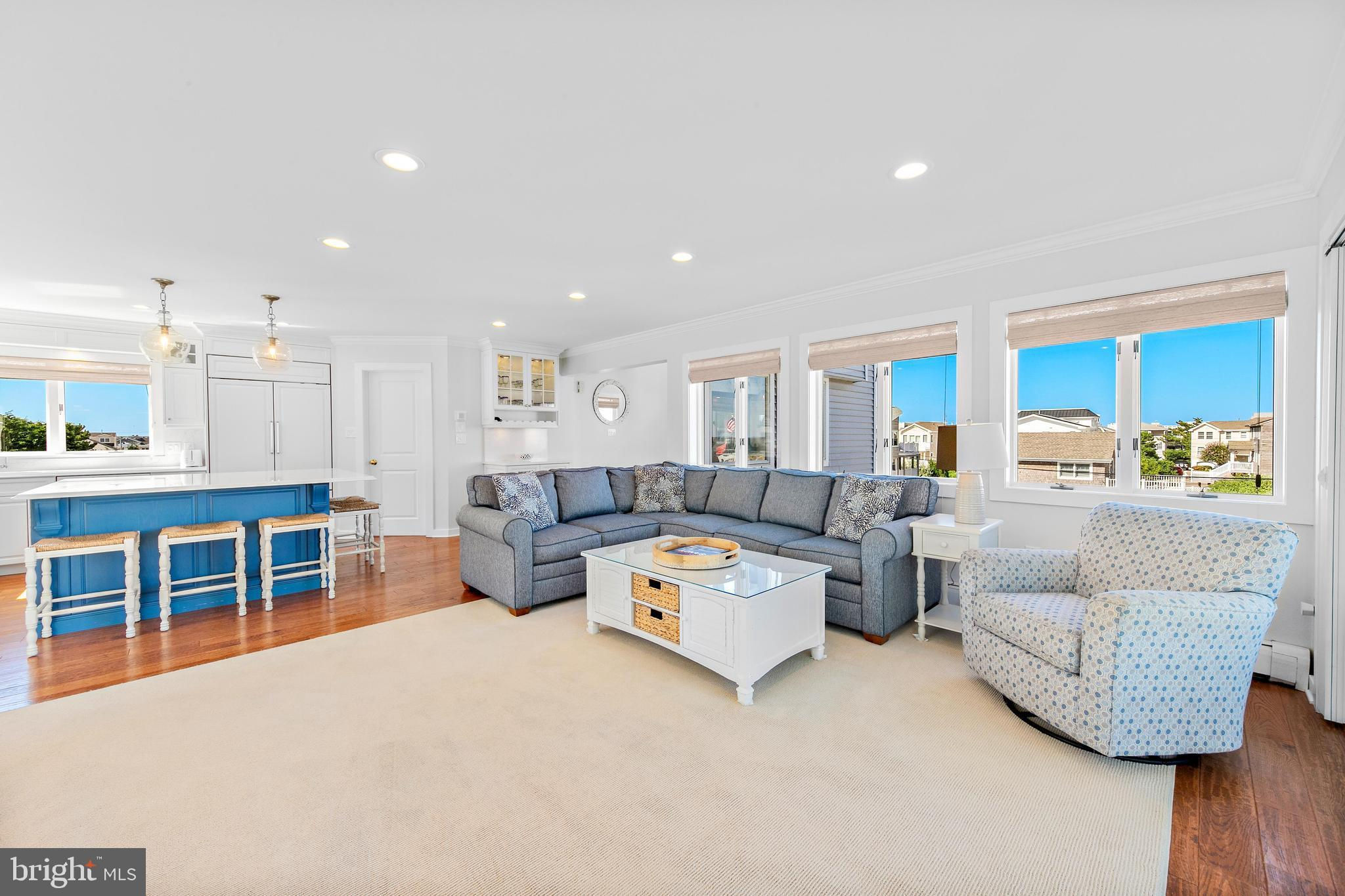 Located just one-off the beach, and steps from the pristine sands of LBI, the first thing you notice when you pull up is the expanse of private parking – unheard of in this part of the island. A two-car garage with all the space you need for your cars and all your beach toys – plus parking for the whole crowd. And as soon as you walk inside, you realize that this is a home built for family, fun, and fantastic memories. The first half-flight takes you into a gathering area right out of the past – surrounded by shiplap walls, wooden ceilings, distressed doors and floors – you will think you have entered an LBI “time warp”. A bunk room, a game room with an official shuffleboard table and arcade game, kitchenette and a true “gathering area” - including a beautiful brick fireplace with a stove insert. Picture a rousing game of scrabble, a good movie on the flatscreen, or relaxing with a great book on the front porch. All decorated with period pieces, but with all the modern amenities. Up a half flight to the master suite – including its own covered deck and a separate office, for those who need a quiet space to answer a few emails before dinner. An additional ensuite for the kids, which has both a bunk bed and queen-sized bed. The next level offers a separate “family suite” – including a king-size bed plus an adjoining bedroom with a shared bath. When you reach the top floor, you will see why this reversed-living great space is everything and more! A huge living area, bright and airy with beautifully appointed windows that bring the outside in. The stunning kitchen had an expanse of custom cabinets with quartz countertops, a Wolf stove and a SubZero fridge. In addition, a huge center island with a built-in microwave and additional SubZero drawers for easy access – and a dining table large enough to sit the whole family for dinner. Enjoy your morning coffee on the covered deck off the living room which offers stunning ocean views. Then, when the sun starts to go down, grab a cocktail and head up to the rooftop decks – for that 360-degree panoramic view of the island – and the best sunsets on the East Coast. The backyard also boasts a garden area with mature landscaping and an outdoor shower to rinse off the day on the beach, anticipating the steaks cooking on the grill. Enjoy the beach life!