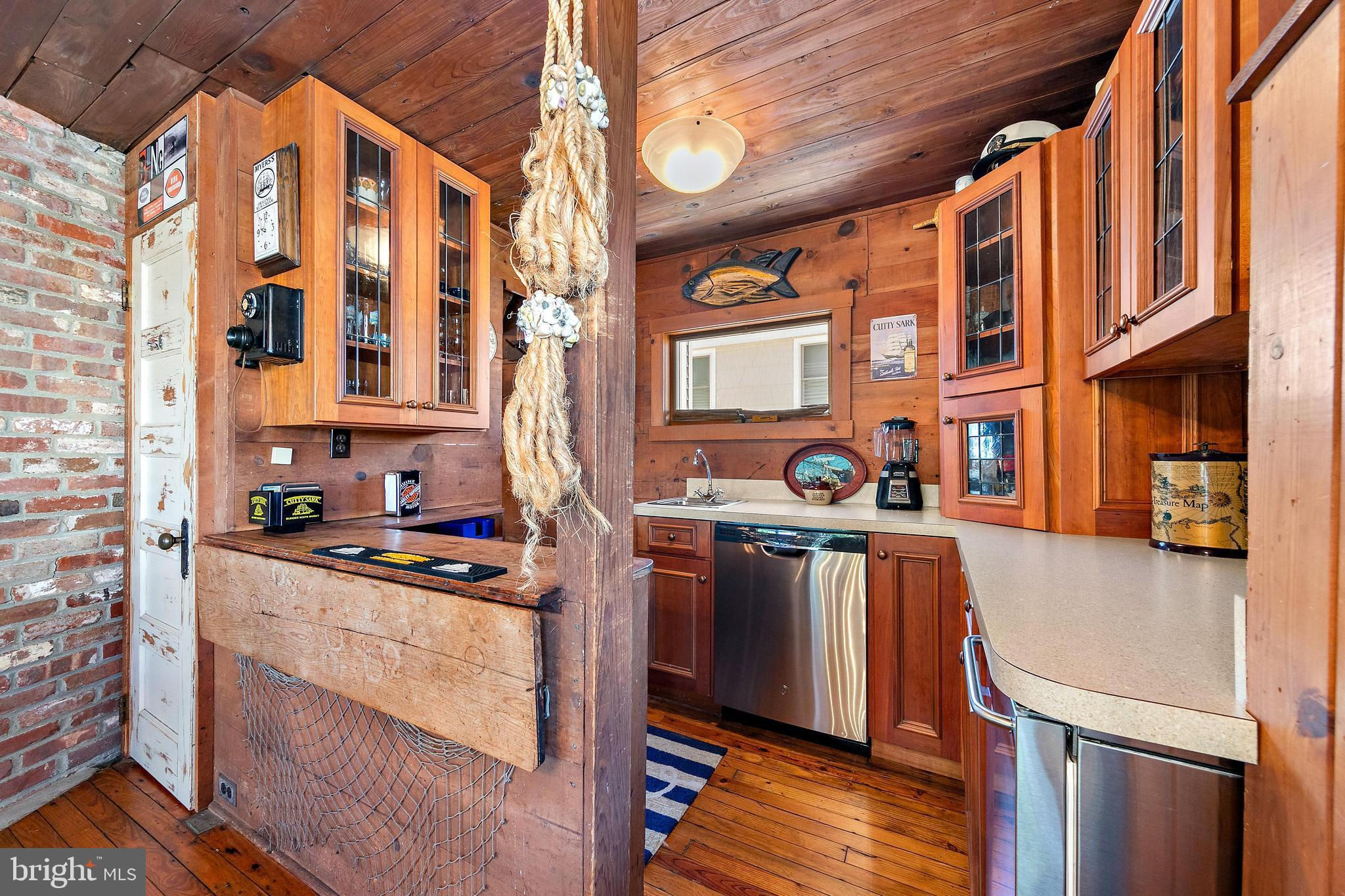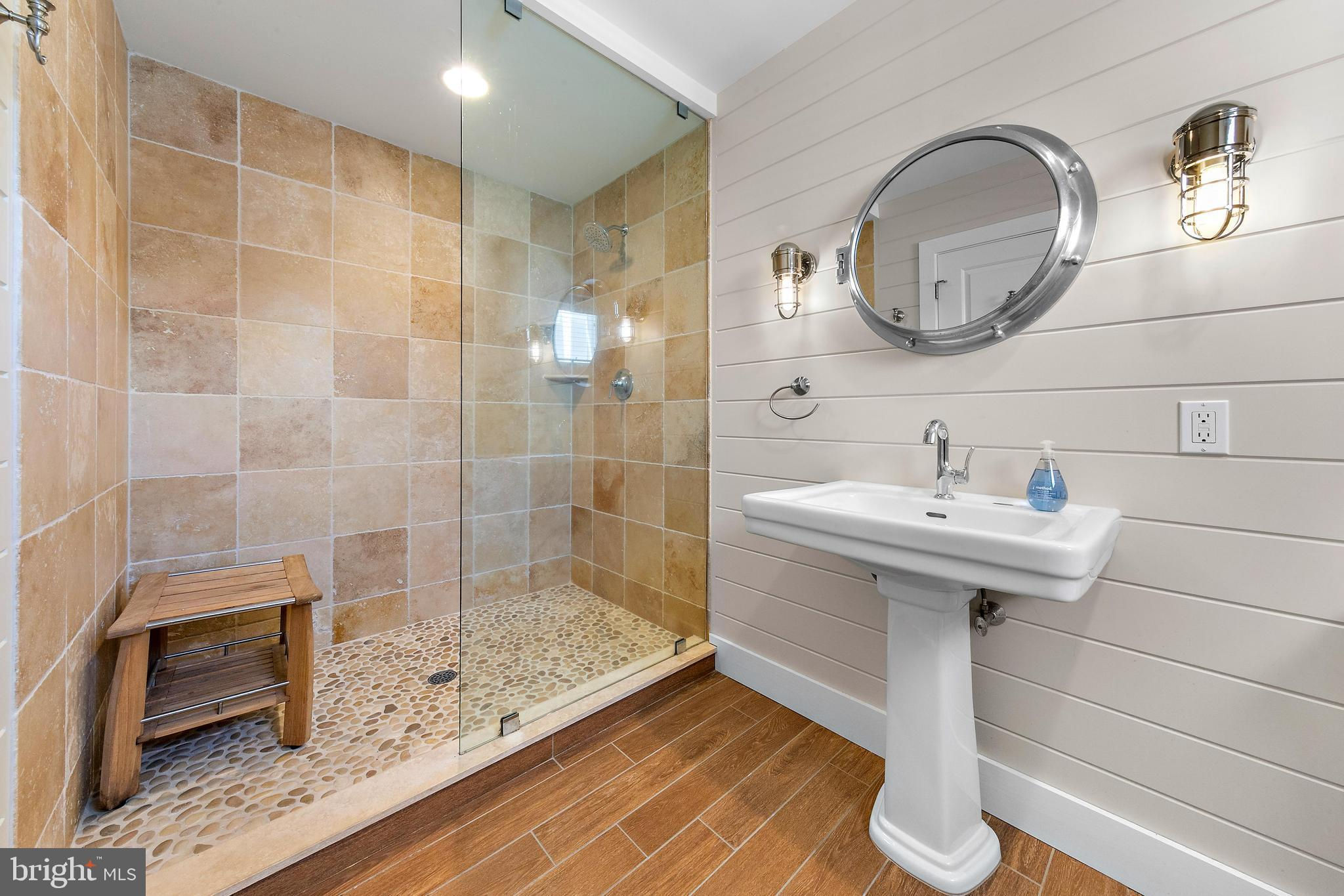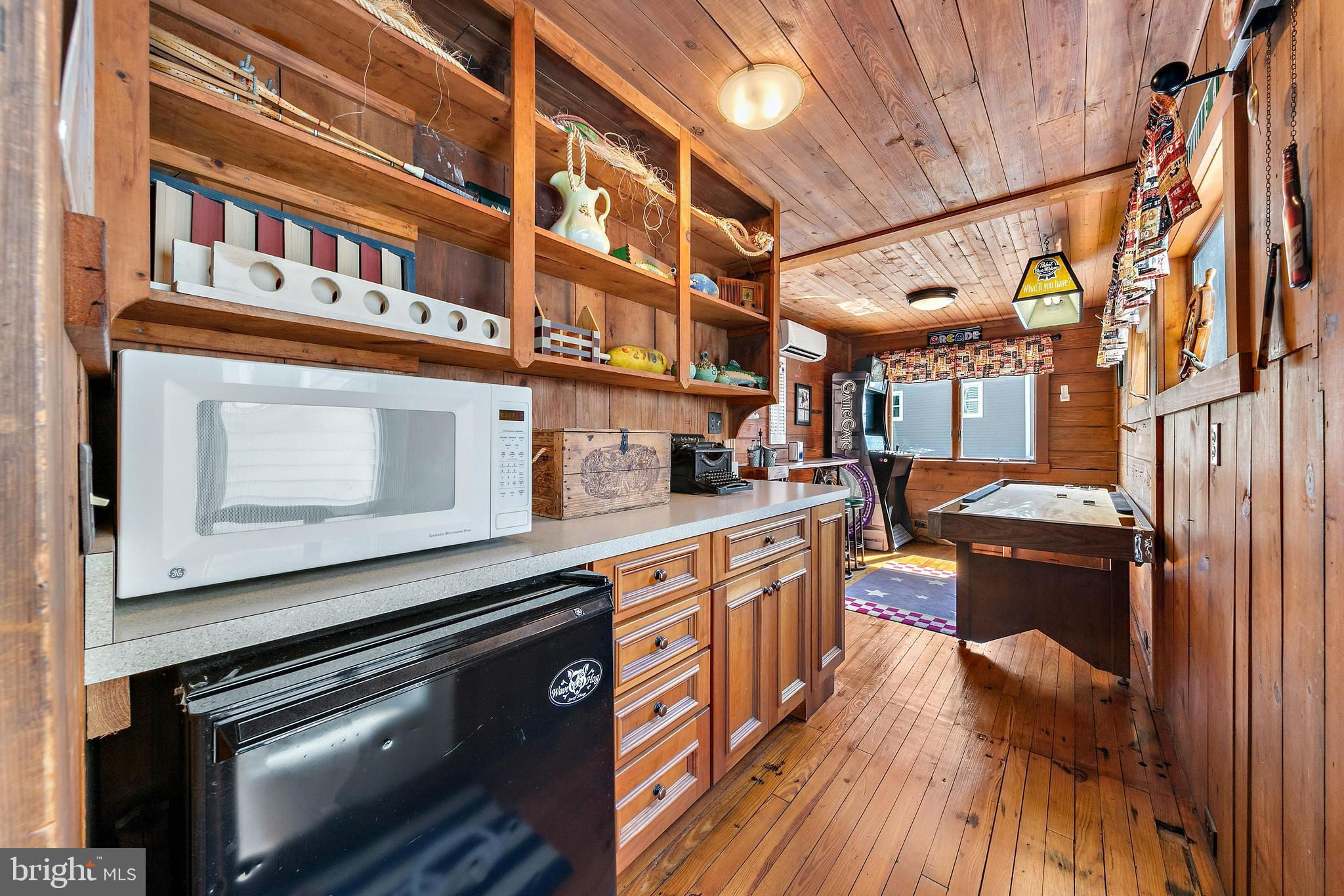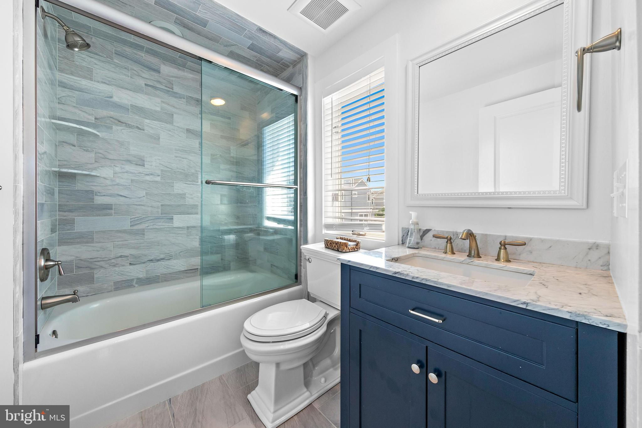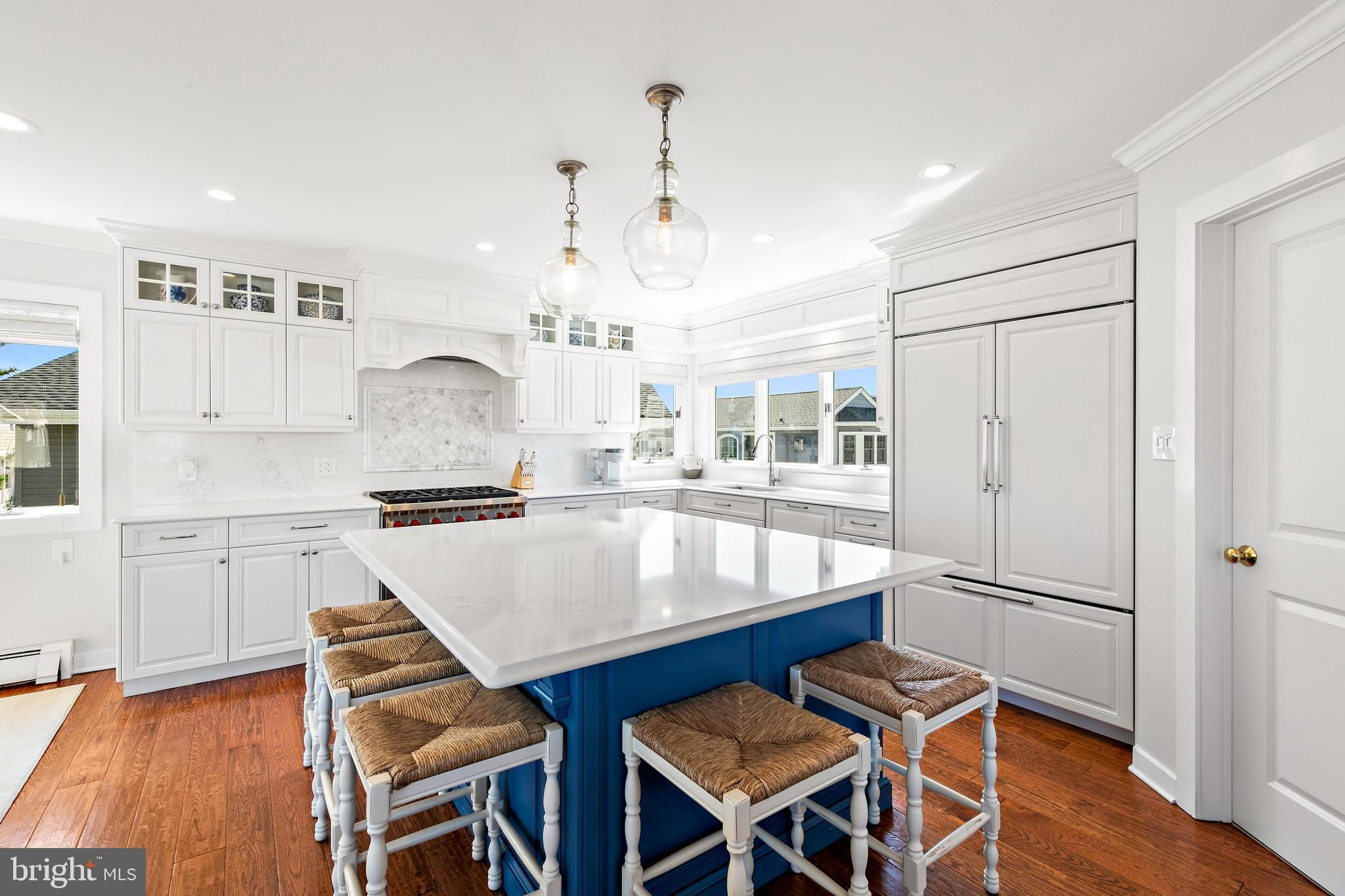 Located just one-off the beach, and steps from the pristine sands of LBI, the first thing you notice when you pull up is the expanse of private parking – unheard of in this part of the island. A two-car garage with all the space you need for your cars and all your beach toys – plus parking for the whole crowd. And as soon as you walk inside, you realize that this is a home built for family, fun, and fantastic memories. The first half-flight takes you into a gathering area right out of the past – surrounded by shiplap walls, wooden ceilings, distressed doors and floors – you will think you have entered an LBI “time warp”. A bunk room, a game room with an official shuffleboard table and arcade game, kitchenette and a true “gathering area” - including a beautiful brick fireplace with a stove insert. Picture a rousing game of scrabble, a good movie on the flatscreen, or relaxing with a great book on the front porch. All decorated with period pieces, but with all the modern amenities. Up a half flight to the master suite – including its own covered deck and a separate office, for those who need a quiet space to answer a few emails before dinner. An additional ensuite for the kids, which has both a bunk bed and queen-sized bed. The next level offers a separate “family suite” – including a king-size bed plus an adjoining bedroom with a shared bath. When you reach the top floor, you will see why this reversed-living great space is everything and more! A huge living area, bright and airy with beautifully appointed windows that bring the outside in. The stunning kitchen had an expanse of custom cabinets with quartz countertops, a Wolf stove and a SubZero fridge. In addition, a huge center island with a built-in microwave and additional SubZero drawers for easy access – and a dining table large enough to sit the whole family for dinner. Enjoy your morning coffee on the covered deck off the living room which offers stunning ocean views. Then, when the sun starts to go down, grab a cocktail and head up to the rooftop decks – for that 360-degree panoramic view of the island – and the best sunsets on the East Coast. The backyard also boasts a garden area with mature landscaping and an outdoor shower to rinse off the day on the beach, anticipating the steaks cooking on the grill. Enjoy the beach life!