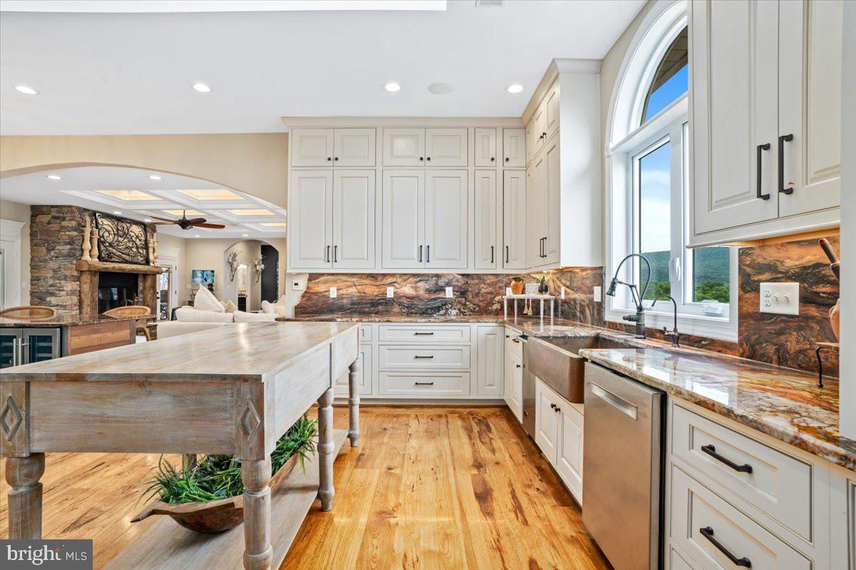 SHHHHH I have a secret.... This may be the most amazing home in the Mid-Atlantic. This home is located on over 27 acres with extensive hardscaping and a luxury villa design unlike any other. The main level includes panoramic views of this estate with custom hardwoods, a historic fireplace, coffered ceilings, a full home sound system, and a one-of-a-kind dining room that includes a balcony. All of this is accompanied by a main level primary suite that rivals any vacation getaway that you could hope for. The upper level includes multiple balconies to see the entire property. Each bedroom includes a hotel style feel that is completely unique. All bathrooms are customized and the bedrooms include expansive closets. The lower level is unlike any basement you have ever seen. Over 10-foot ceilings, and a commercial equipped bar this feels like an event venue in your own home. The style and design must be experienced in person. Walkout access provides tons of natural light. This home could entertain large parties or could just be your own private oasis that allows you to escape the hustle and bustle of life. With Geothermal heating this home is extremely energy efficient without the expenses you would expect to find in a home this size. There is so much to take in here but don't forget to experience the hydroponic growing room underground that is currently growing vegetables for perfect off the grid living. If this inside is not enough the exterior offers multiple living areas, all with their own unique and spectacular views. The attached guest house offers a bedroom, full bath, and the perfect kitchenette. This home screams ENTERTAIN HERE, but if you just want to escape and keep it to yourself, if can accommodate that as well. The main level garage includes three oversized bays that extend extra deep in this garage. The lower level garage includes more motorized storage plus a large workshop. The property includes extensive hardscape, sprinkler systems, fenced areas and a large farmable area. This provides the opportunity for Ag tax credit is desired. Enjoy a wooded portion with a historic stone wall. Views of mountains (check), woods (check)... You will find no other home to match this in the DMV.