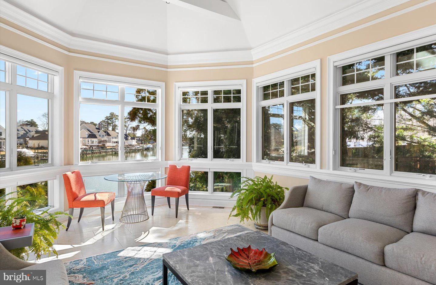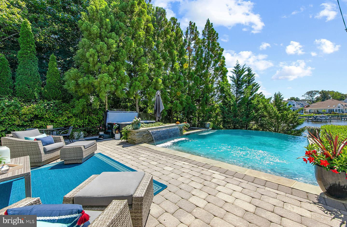 Unparalleled waterfront luxury home with breathtaking views. Nestled along the tranquil shore of the Bald Eagle Lagoon on a high bulkheaded lot, this 5,300 sq. ft. waterfront estate is an extraordinary blend of elegance, comfort, and modern sophistication. Thoughtfully designed to capture unobstructed water views, this stunning residence features 5 spacious bedrooms, 4.5 baths, and multiple indoor and outdoor living spaces, all crafted for the ultimate coastal lifestyle. Upon arrival, you'll be captivated by the hardscape driveway, stone retaining wall, and professionally designed landscaping with accent lighting, setting the stage for the beauty within. Step through the grand 2-story foyer into an inviting living room with a gas fireplace and beautiful water views. Adjacent to this space, the gourmet kitchen is a chef’s delight, featuring granite countertops, 6-burner range, center island, and breakfast area, all open to a cozy family/media room with a second fireplace. Just beyond, a gorgeous sunroom wrapped in glass showcases the tiered landscape grounds and long, serene water views down the lagoon. The first-level primary suite is a private retreat offering a spa-inspired ensuite bath and fireplace, two custom-designed closets, and direct access to the screened porch. The second level boasts 4 additional bedrooms, 2 of which feature ensuite baths with jetted tubs, ensuring ample space and privacy for family and guests. A handsome library doubles as an executive office complete with built-ins, fireplace, and panoramic water views, creating a refined yet functional workspace. Meanwhile, the solarium overlooking the Bald Eagle Lagoon offers a peaceful escape bathed in natural light. The resort-style exterior is designed for relaxation and entertaining. A heated infinity-edge pool, hot tub, and extensive hardscaping create a private oasis while the outdoor kitchen is perfect for al fresco dining. Boating enthusiasts will appreciate the private dock with 2 lifts, offering effortless access to Rehoboth Bay. Additional premium features include a 3-zone HVAC system for customized climate control, a security system for peace of mind, a conditioned crawlspace for enhanced efficiency, and an oversized 2-car garage with ample storage, separate storage/workshop, lightning rods, and generator. Sustainability meets luxury with an owned solar panel system, ensuring energy efficiency. This is more than just a home—it’s a waterfront sanctuary offering luxury, privacy, and an unparalleled connection to nature. Don’t miss this rare opportunity to own a piece of coastal paradise!