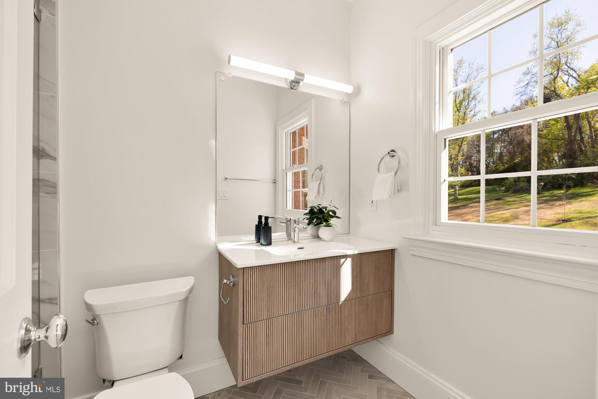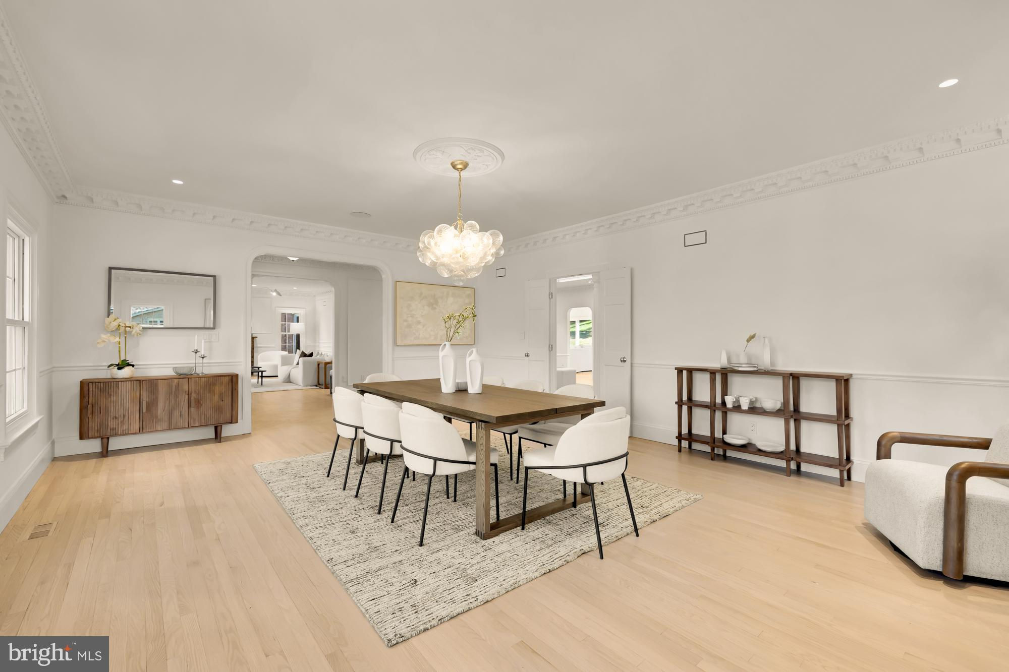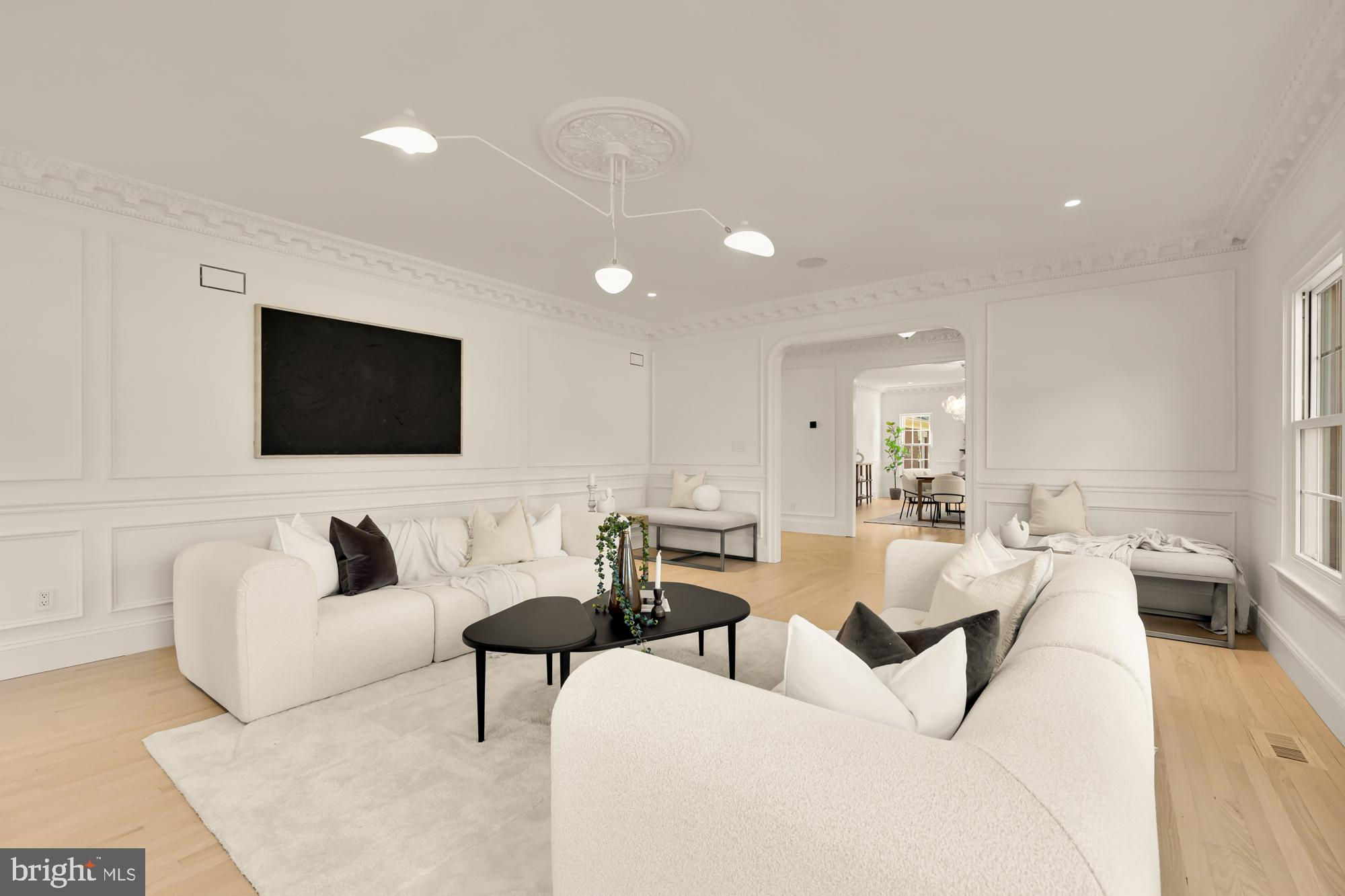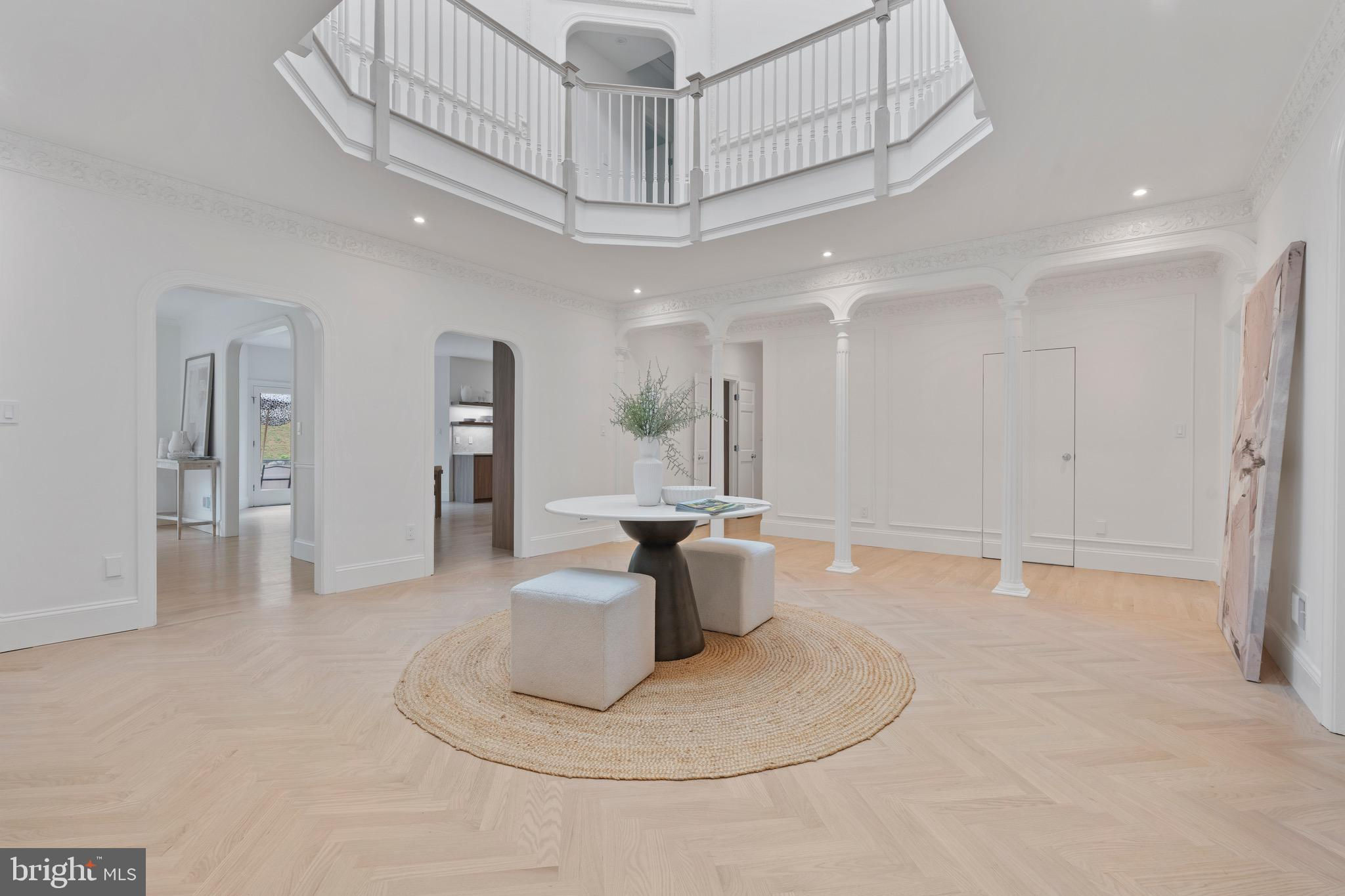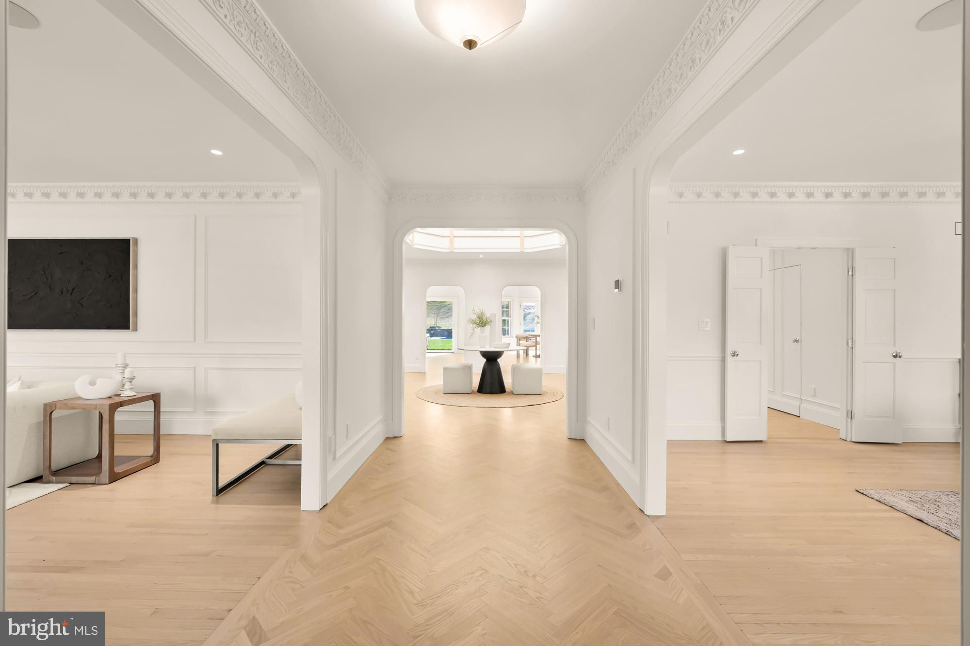Set on two acres of landscaped grounds—masterfully designed by an award-winning landscape architect—this 9,000+ sq. ft. Georgian mansion seamlessly blends classic architecture with contemporary elegance. Originally built in 1985 and completely renovated in 2025, this estate offers a rare combination of historical grandeur and modern luxury, with cutting-edge smart-home features integrated throughout. The expansive outdoor setting includes a grand front lawn with a long circular driveway lined with trees, a stone fireplace and patio surrounded by flowering plants that sit as the centerpiece for the rear yard, and an additional inviting fire pit getaway perched up above the roof line for fantastic views. The expansive rear yard is thoughtfully designed to accommodate a future pool—an entertainer's dream. Inside, the home is all about details and amenities, with every room thoughtfully curated for a discerning buyer. It exemplifies class and elegance with ornate moldings, handpicked imported lighting fixtures, and a functional layout. The estate features 6 bedrooms, 5 full bathrooms, 1 powder room, and 5 wood-burning fireplaces, creating an atmosphere of warmth and timeless charm. The fully reimagined kitchen is a showpiece, boasting custom German-imported cabinetry complemented by Taj Mahal quartzite countertops, a butler’s pantry, and a separate back-of-house kitchen ideal for entertaining at scale. A stunning main-level study is wrapped in rich navy Farrow & Ball paint and includes a custom wet bar with handmade brass/glass shelving and a unique one-of-a-kind colorful quartzite top—equally suited for work, leisure, or entertaining. The luxurious 1,500-sq.-ft. primary suite includes a private sitting room or office, a fireplace, dual walk-in closets, and a spa-quality bath with radiant heat floors and an oversized steam shower. The walk-out lower level is filled with natural light and offers a large rec room with a fireplace, a guest bedroom with separate entrance and patio, a home gym, and a wine cellar with room for over 1,000 bottles. Conveniently located within walking distance to Potomac Village, top-ranked public and private schools, and just minutes from downtown Bethesda and D.C., this timeless estate is ready for its next chapter.