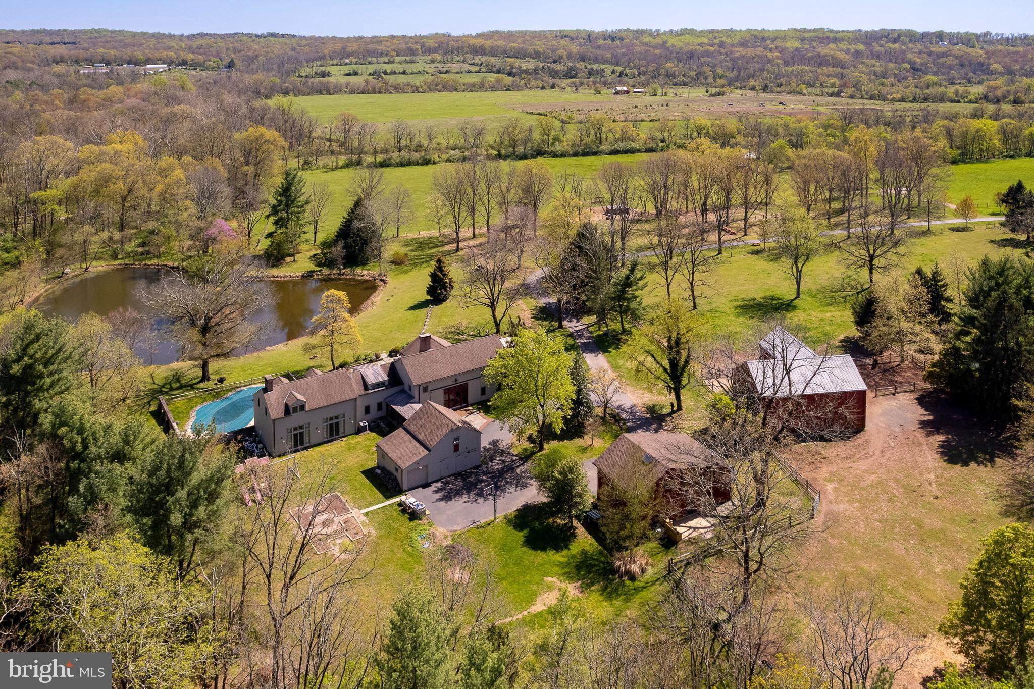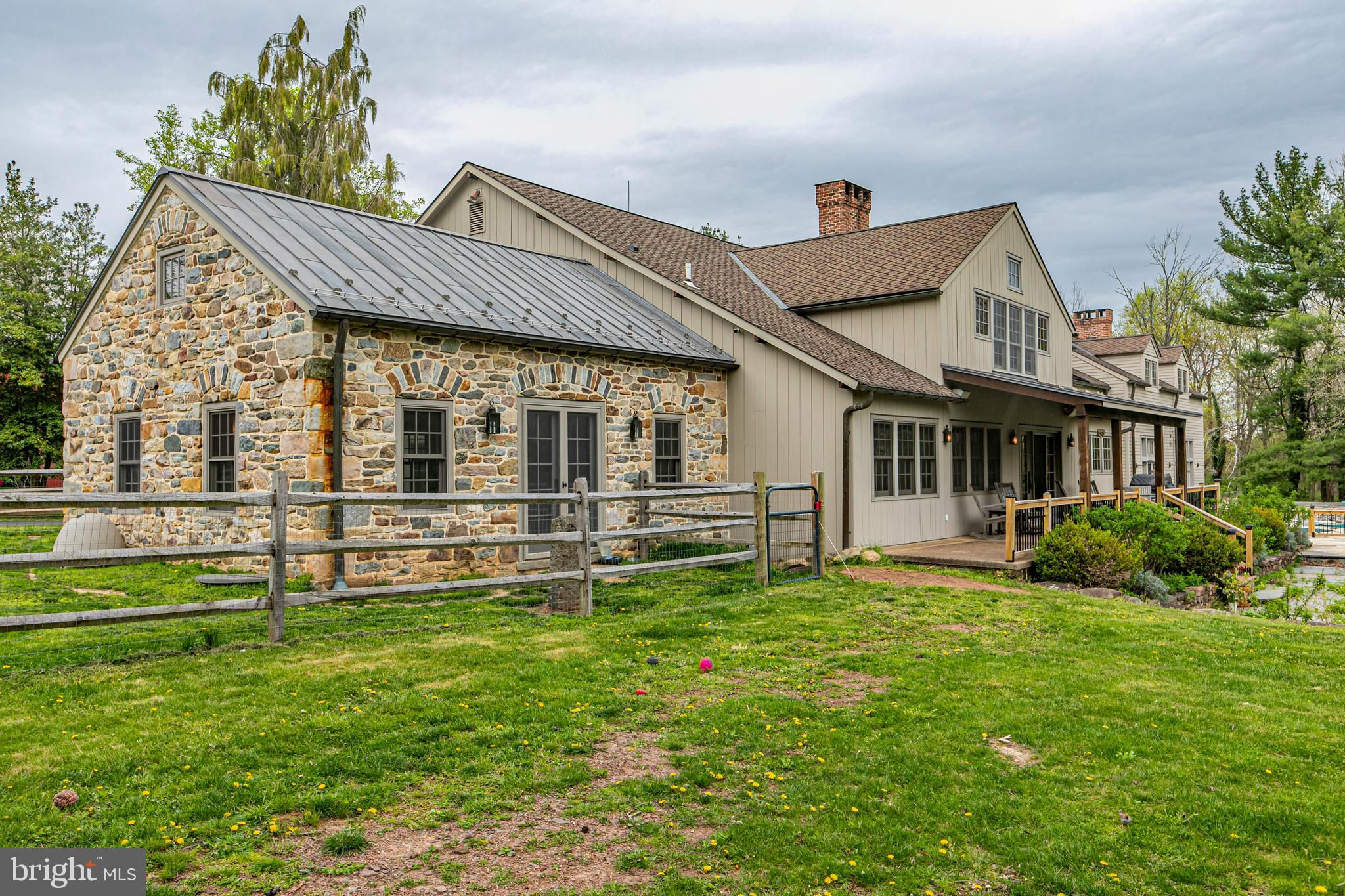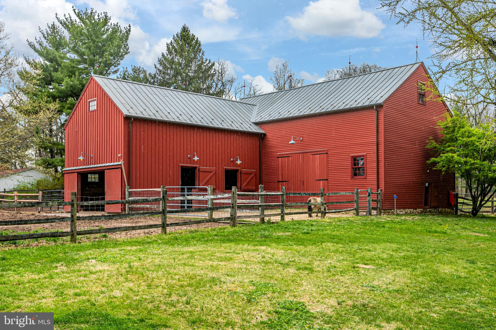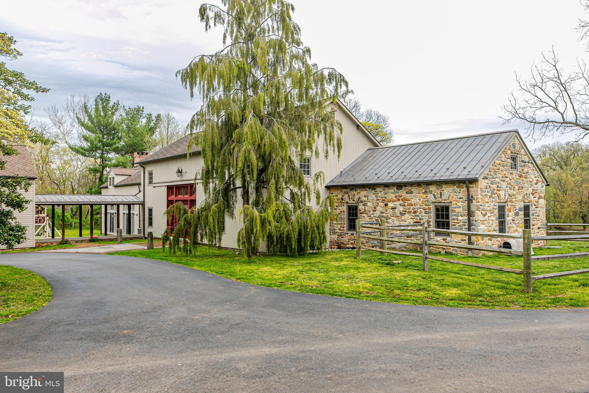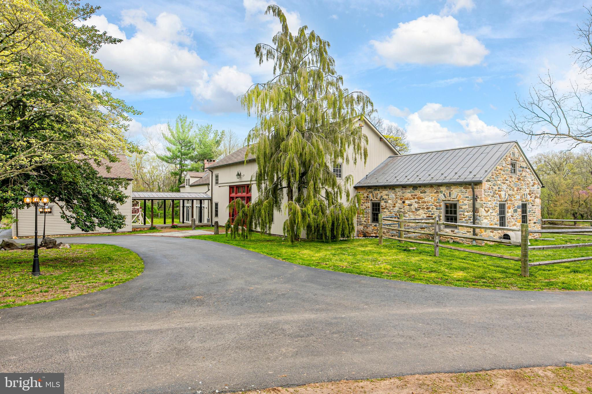 Maple Shade Farm is a scenic farmstead with a rich past dating to the mid-1700s in a setting that is pure paradise on the edge of Hopewell Borough. The views are incredible, stretching across 59 bucolic acres and towards neighboring St. Michael’s Preserve. A gated driveway rambles past an all-new lighted riding ring, five fenced pastures with a new waterline for irrigation, and a large pond. A Pebbletec pool and spa are surrounded by a Himalayan-cut stone patio with walls reclaimed and repurposed from abandoned foundations in Bucks County. The spectacular house, born from an 1850s English barn, a late-18th century wagon house, plus a stone house addition with a wine cellar, is an incredible reinvention of the past while incorporating the ultimate in creature comforts. With so many well-thought-out recent improvements, there is now a new state-of-the-art air conditioning system, new plumbing, a whole house water filtration system, and a brand new pro-style six-burner Thermador range in the high-end yet rustic kitchen that will satisfy any culinary perfectionist. Because of the traditional barn framing. conventional walls weren’t necessary creating an open-concept floorplan that will bring everyone together. The main level includes three great rooms. The first houses the living room, dining room, and a bar. The second unites the kitchen with a breakfast area and the family room, while the third is a wonderful entertaining space for the summer months with its multiple doors leading to the pool and grounds. Wide plank oak and chestnut flooring throughout the house and bluestone flooring over radiant heat add warmth and character to rooms. There is extensive use of handmade oak doors, all hung on locally designed handmade hinges and hardware, handmade lighting, plus solid oak and mahogany cabinetry throughout. A massive bedroom suite is the ultimate retreat with a fireplace, a dressing gallery with dual walk-in closets, built-in cabinetry, and a luxury bath. A second bedroom suite has a private bathroom, and across a broad loft, there are two additional bedrooms and another bathroom. A two-bay garage with a second-floor apartment and a new deck is handy for extra help, and a white oak early 19th-century garage barn can house additional vehicles. For livestock and machinery, the white oak timber barn, originally constructed in Readington, NJ, and moved in 2006 by the NJ Barn Company, contains two horse stalls, a large run-in area, a big machinery storage area, and custom lighting. This is an outstandingly presented offering that will be hard to duplicate elsewhere, whether your interest lies in horses or hobby farming or just the desire for a sprawling, private paradise to call home near Princeton. Proof of Funds required prior to scheduling and confirming appointments.