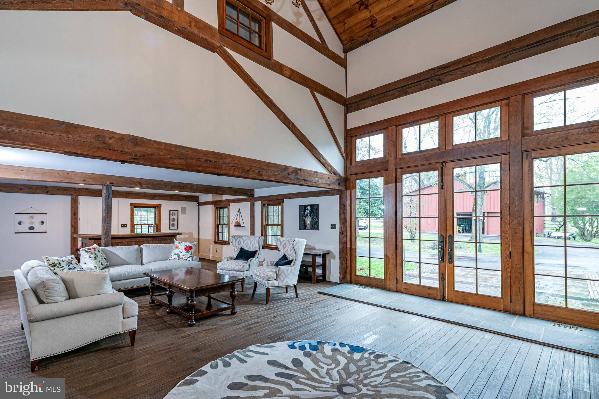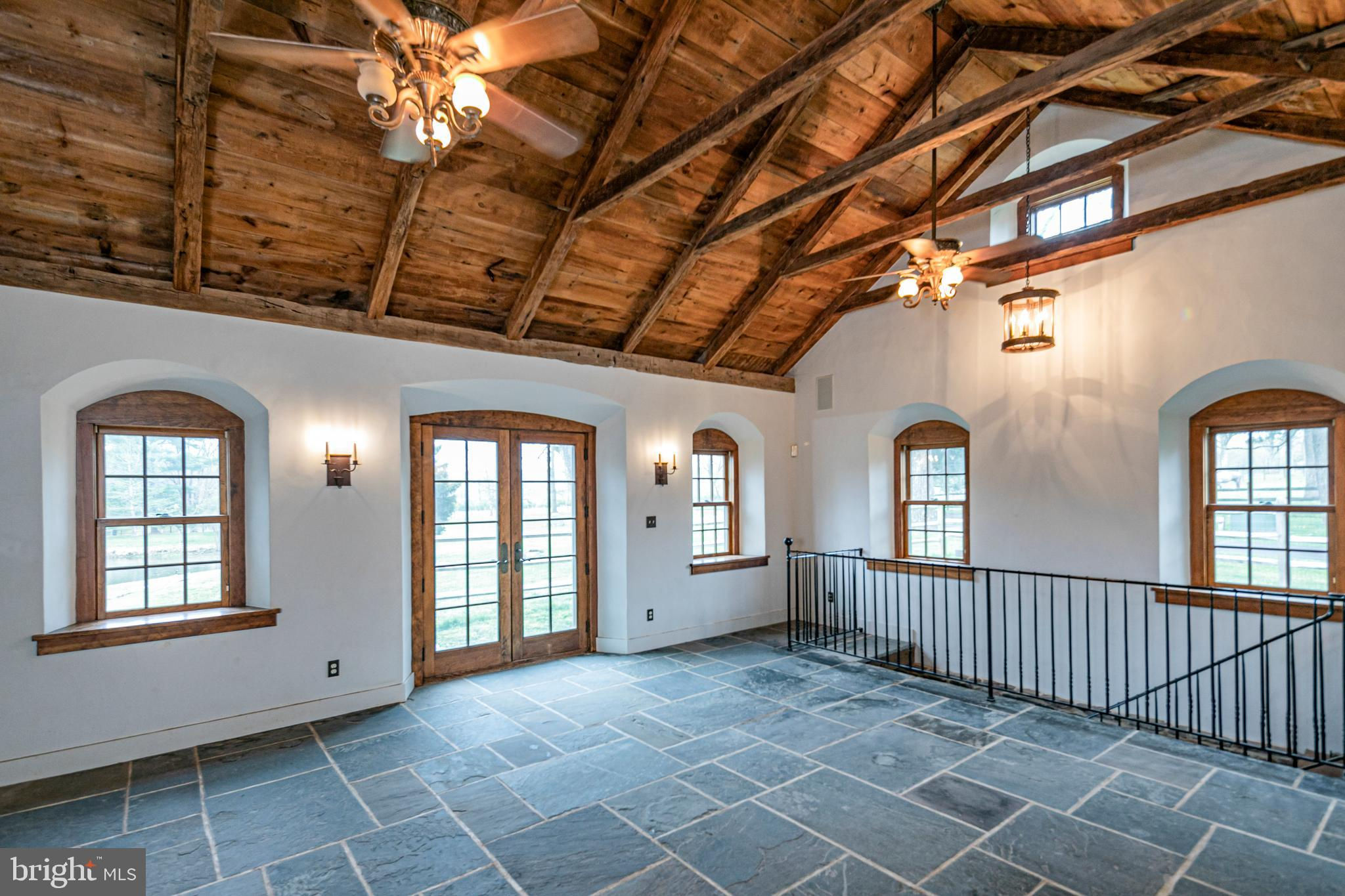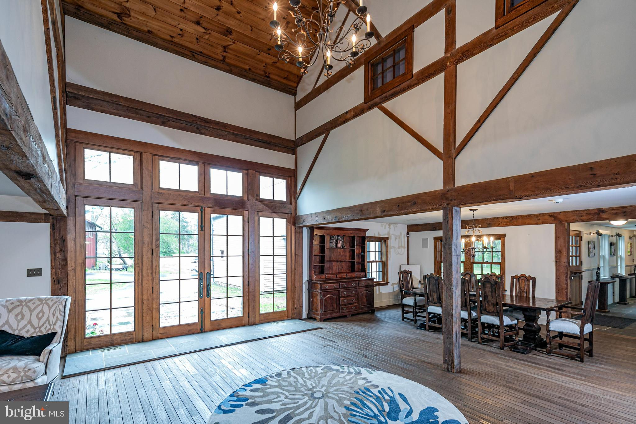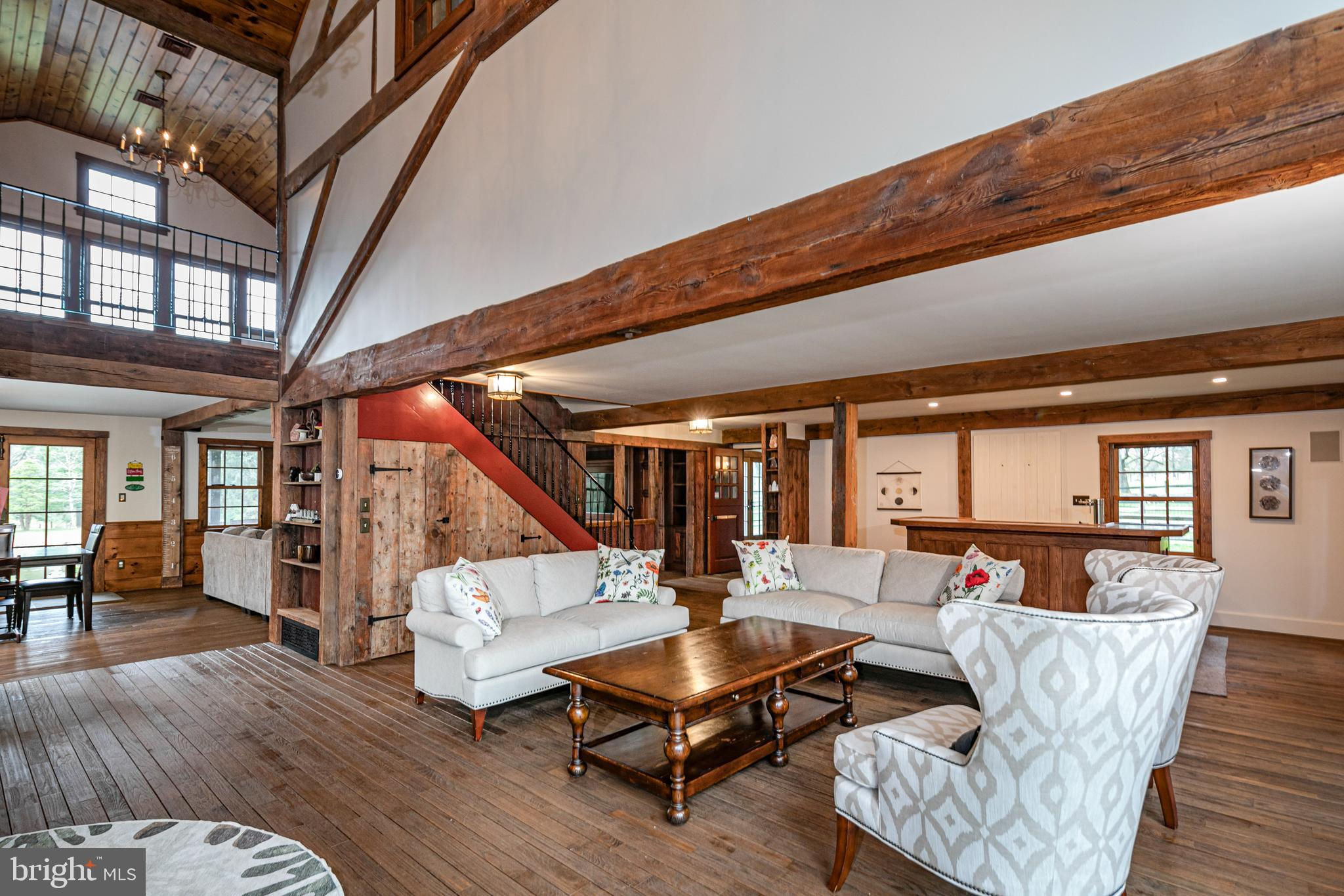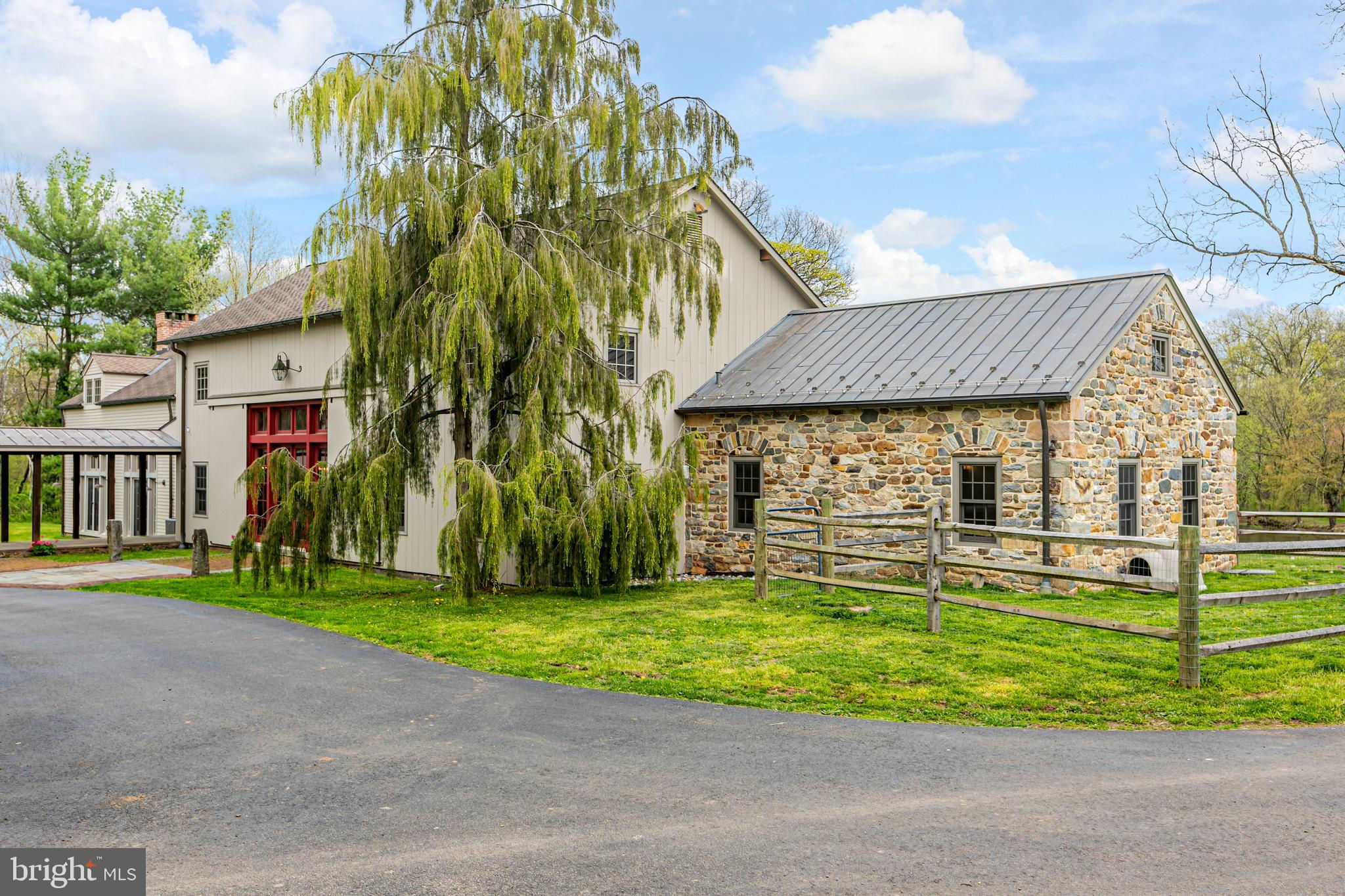 Maple Shade Farm is a scenic farmstead with a rich past dating to the mid-1700s in a setting that is pure paradise on the edge of Hopewell Borough. The views are incredible, stretching across 59 bucolic acres and towards neighboring St. Michael’s Preserve. A gated driveway rambles past an all-new lighted riding ring, five fenced pastures with a new waterline for irrigation, and a large pond. A Pebbletec pool and spa are surrounded by a Himalayan-cut stone patio with walls reclaimed and repurposed from abandoned foundations in Bucks County. The spectacular house, born from an 1850s English barn, a late-18th century wagon house, plus a stone house addition with a wine cellar, is an incredible reinvention of the past while incorporating the ultimate in creature comforts. With so many well-thought-out recent improvements, there is now a new state-of-the-art air conditioning system, new plumbing, a whole house water filtration system, and a brand new pro-style six-burner Thermador range in the high-end yet rustic kitchen that will satisfy any culinary perfectionist. Because of the traditional barn framing. conventional walls weren’t necessary creating an open-concept floorplan that will bring everyone together. The main level includes three great rooms. The first houses the living room, dining room, and a bar. The second unites the kitchen with a breakfast area and the family room, while the third is a wonderful entertaining space for the summer months with its multiple doors leading to the pool and grounds. Wide plank oak and chestnut flooring throughout the house and bluestone flooring over radiant heat add warmth and character to rooms. There is extensive use of handmade oak doors, all hung on locally designed handmade hinges and hardware, handmade lighting, plus solid oak and mahogany cabinetry throughout. A massive bedroom suite is the ultimate retreat with a fireplace, a dressing gallery with dual walk-in closets, built-in cabinetry, and a luxury bath. A second bedroom suite has a private bathroom, and across a broad loft, there are two additional bedrooms and another bathroom. A two-bay garage with a second-floor apartment and a new deck is handy for extra help, and a white oak early 19th-century garage barn can house additional vehicles. For livestock and machinery, the white oak timber barn, originally constructed in Readington, NJ, and moved in 2006 by the NJ Barn Company, contains two horse stalls, a large run-in area, a big machinery storage area, and custom lighting. This is an outstandingly presented offering that will be hard to duplicate elsewhere, whether your interest lies in horses or hobby farming or just the desire for a sprawling, private paradise to call home near Princeton. Proof of Funds required prior to scheduling and confirming appointments.