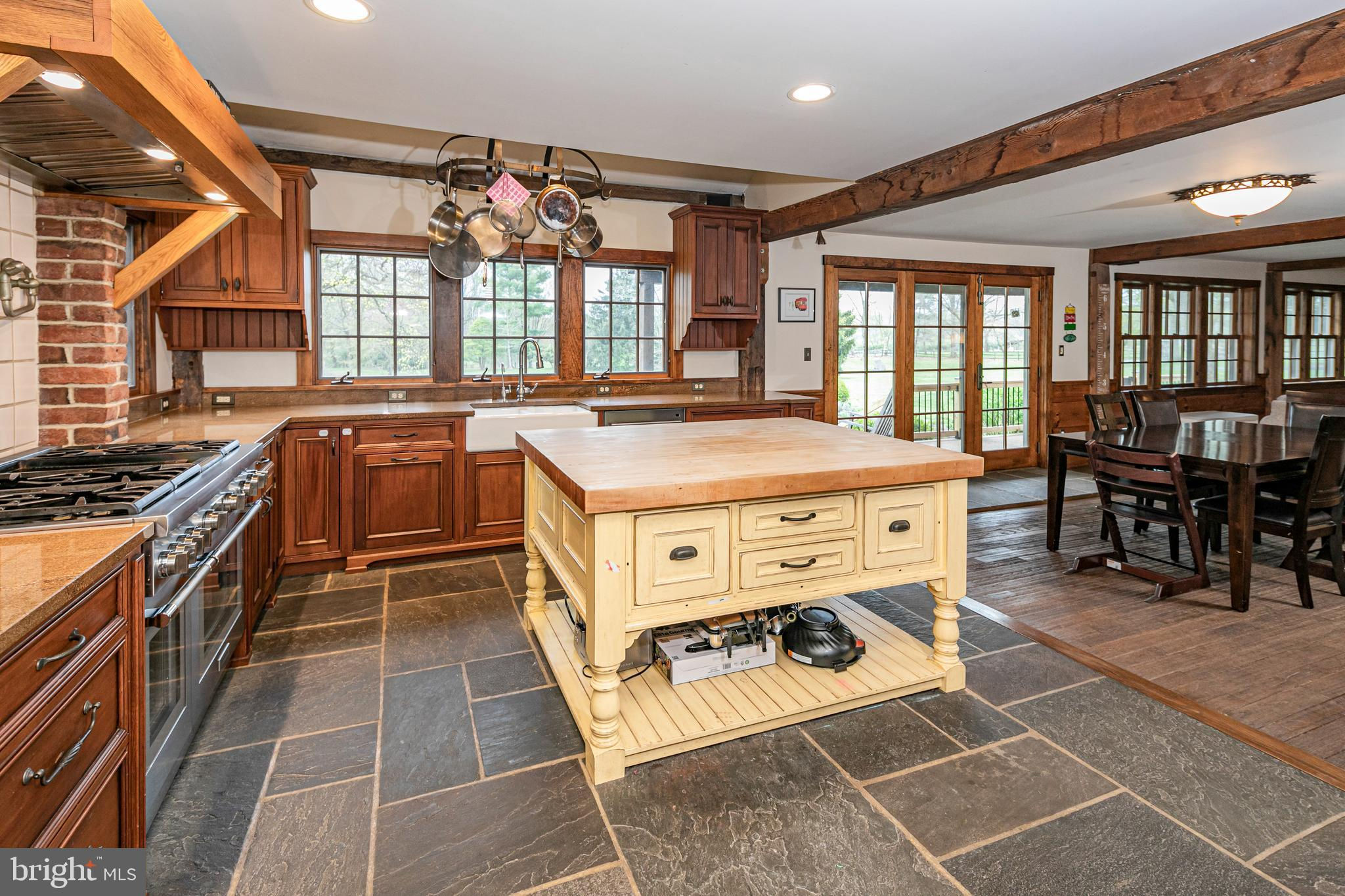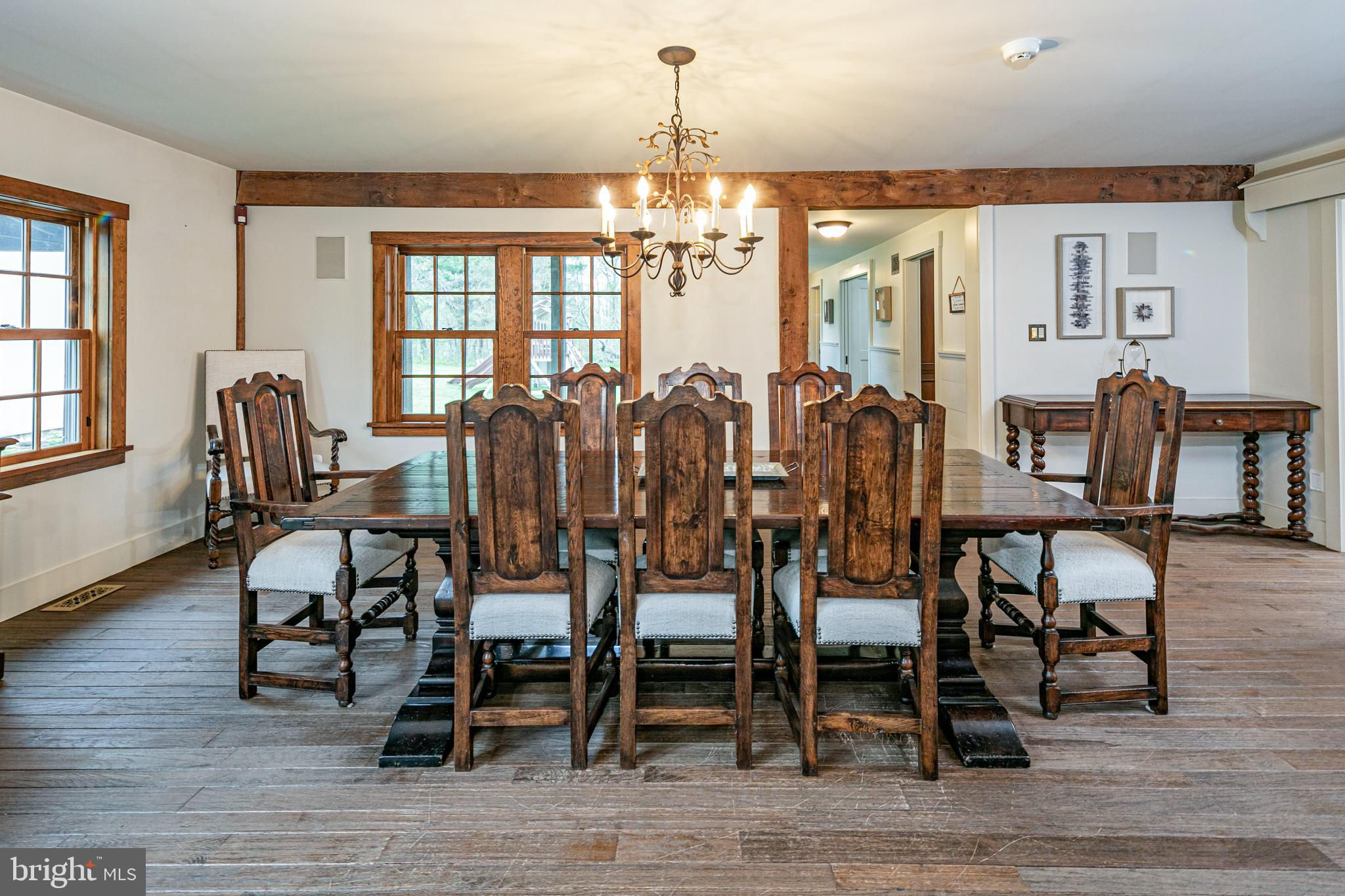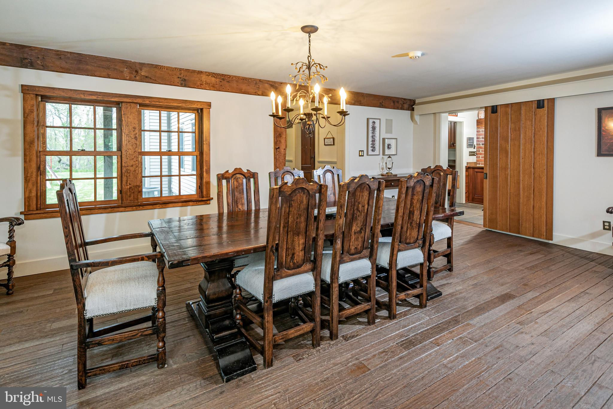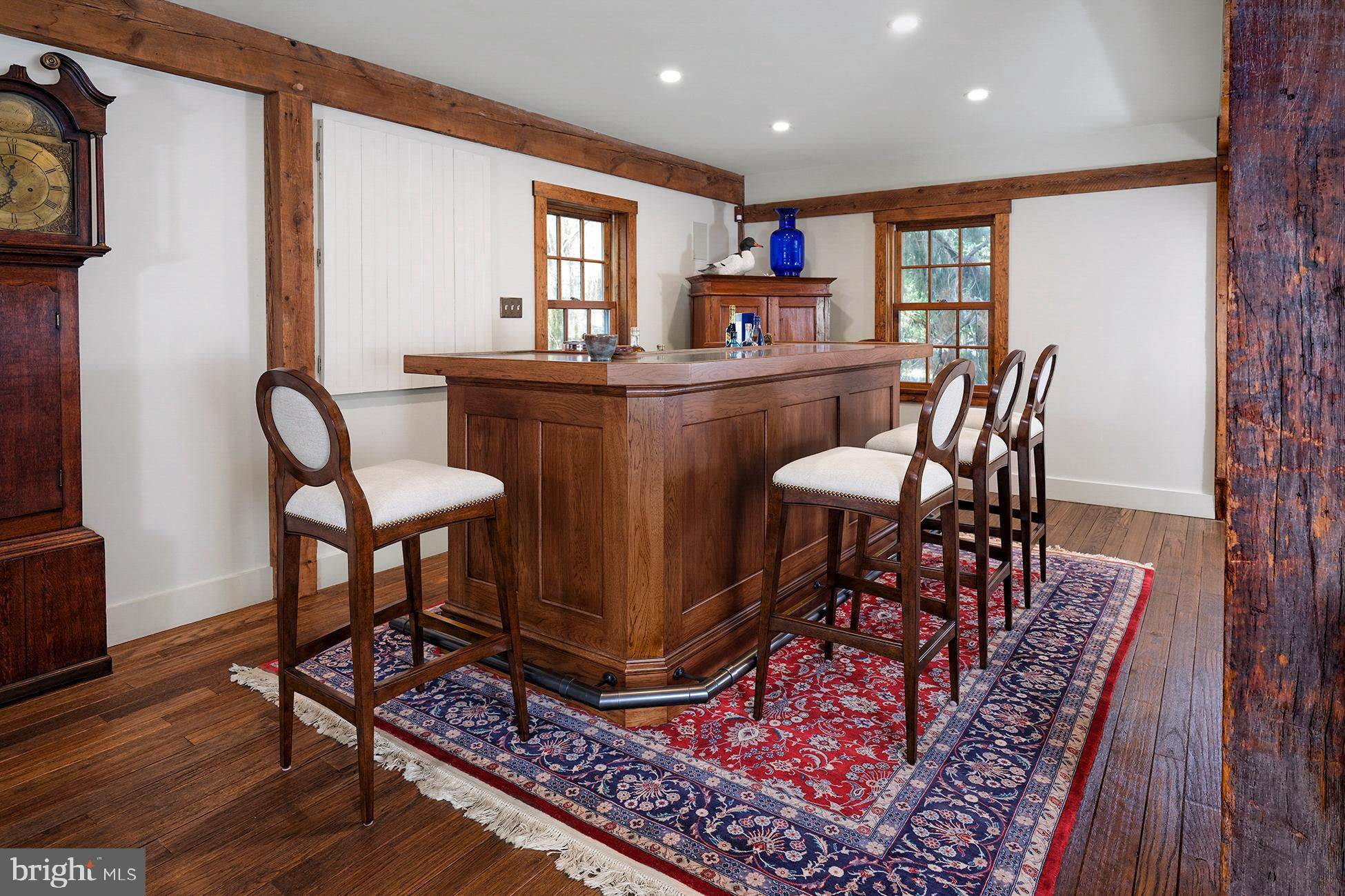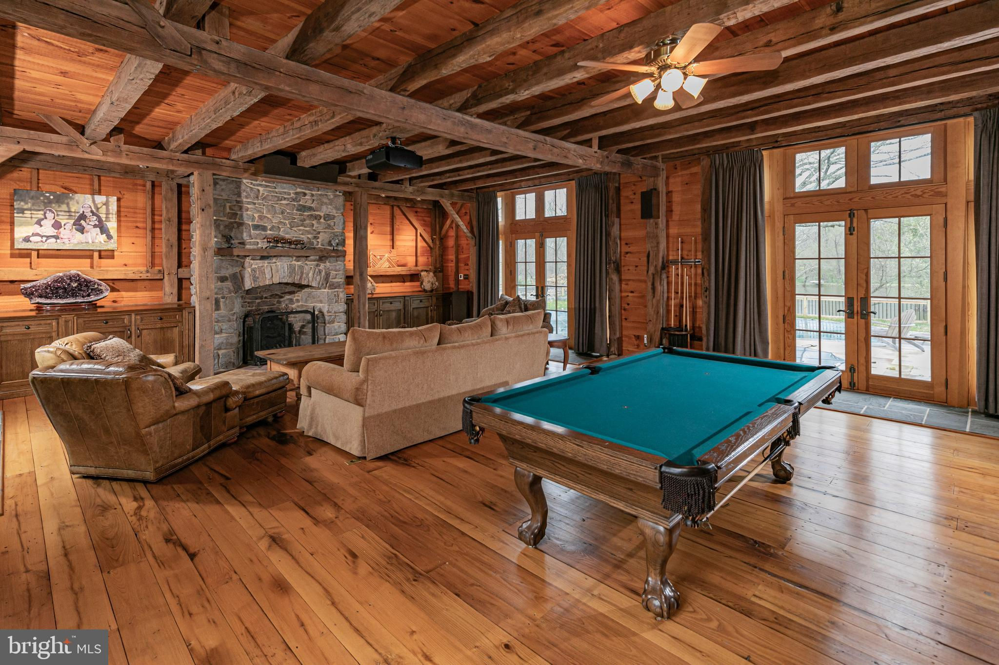 Maple Shade Farm is a scenic farmstead with a rich past dating to the mid-1700s in a setting that is pure paradise on the edge of Hopewell Borough. The views are incredible, stretching across 59 bucolic acres and towards neighboring St. Michael’s Preserve. A gated driveway rambles past an all-new lighted riding ring, five fenced pastures with a new waterline for irrigation, and a large pond. A Pebbletec pool and spa are surrounded by a Himalayan-cut stone patio with walls reclaimed and repurposed from abandoned foundations in Bucks County. The spectacular house, born from an 1850s English barn, a late-18th century wagon house, plus a stone house addition with a wine cellar, is an incredible reinvention of the past while incorporating the ultimate in creature comforts. With so many well-thought-out recent improvements, there is now a new state-of-the-art air conditioning system, new plumbing, a whole house water filtration system, and a brand new pro-style six-burner Thermador range in the high-end yet rustic kitchen that will satisfy any culinary perfectionist. Because of the traditional barn framing. conventional walls weren’t necessary creating an open-concept floorplan that will bring everyone together. The main level includes three great rooms. The first houses the living room, dining room, and a bar. The second unites the kitchen with a breakfast area and the family room, while the third is a wonderful entertaining space for the summer months with its multiple doors leading to the pool and grounds. Wide plank oak and chestnut flooring throughout the house and bluestone flooring over radiant heat add warmth and character to rooms. There is extensive use of handmade oak doors, all hung on locally designed handmade hinges and hardware, handmade lighting, plus solid oak and mahogany cabinetry throughout. A massive bedroom suite is the ultimate retreat with a fireplace, a dressing gallery with dual walk-in closets, built-in cabinetry, and a luxury bath. A second bedroom suite has a private bathroom, and across a broad loft, there are two additional bedrooms and another bathroom. A two-bay garage with a second-floor apartment and a new deck is handy for extra help, and a white oak early 19th-century garage barn can house additional vehicles. For livestock and machinery, the white oak timber barn, originally constructed in Readington, NJ, and moved in 2006 by the NJ Barn Company, contains two horse stalls, a large run-in area, a big machinery storage area, and custom lighting. This is an outstandingly presented offering that will be hard to duplicate elsewhere, whether your interest lies in horses or hobby farming or just the desire for a sprawling, private paradise to call home near Princeton. Proof of Funds required prior to scheduling and confirming appointments.