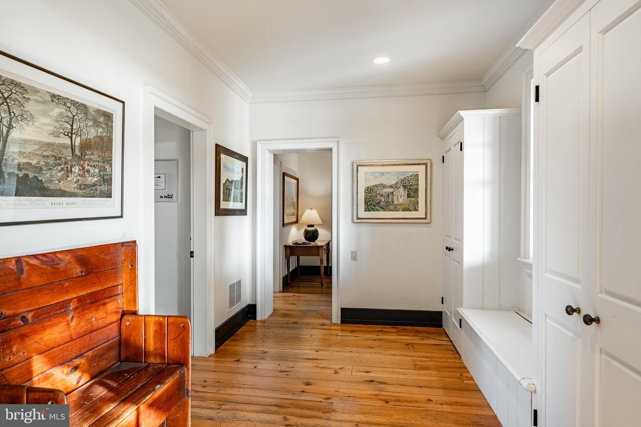 Eagle Hill is one of the most gorgeous properties on the market today. Designed by renowned architect John Milner and constructed by sought after custom builder Griffiths Construction, this 10,000-square-foot residence combines timeless craftsmanship with modern luxury. Set on a gated 15.29-acre parcel – once part of the historic 322-acre “Crebilly Farm” – the perfect siting of the home offers unparalleled privacy, breathtaking views, and direct access to 206 acres of conserved land with planned walking trails. From the moment you enter the home, soaring ceilings, reclaimed beams, antique wide-plank red oak floors, and hand-crafted millwork reflect superior quality and design. Expansive windows fill the interiors with natural light and frame panoramic vistas of the bucolic surroundings. Recent updates, including a new cedar shake roof, new windows, new countertops and more, ensure the home is in turnkey condition. The floor plan is ideal for both everyday living and entertaining. The gourmet kitchen is a chef’s dream, featuring creamy custom cabinetry, limestone counters, a professional Viking double range with wall ovens, SubZero refrigeration, two dishwashers, and a large working island with multiple prep sinks. A bright breakfast room and adjoining great room with cathedral ceiling and tall Palladian windows create inviting gathering spaces. The dramatic soaring great room with a two-story stone fireplace flows seamlessly to terraces and a pool. Additional entertaining spaces include a formal dining area and a formal living room or den. This room can be closed off from the rest of the house with glass pocket doors and has doors leading out to a patio with gorgeous views over the stream and pastures beyond. Upstairs, the luxurious primary suite enjoys lofted ceilings, endless views, dual walk-in closets, and a spa-like marble bath with whirlpool tub. Four additional sun-filled bedrooms, two custom baths, and open lounge areas provide comfort and convenience for family and guests. A walk-up partially finished lower level with a large family room offers even more living and storage options. Additional highlights of the home include a spacious secondary prep kitchen, mudroom with full bath for access to the pool, a bar area for enhanced entertaining, a back staircase, a whole house generator, and an oversized three-car garage with a generous office or guest-suite with full bath above. Outside, the 15+ acres are graced not only with commanding views of the protected surroundings, but the tranquility of a babbling brook, the foundation of an old barn that has been converted into an idyllic secret garden, and a gorgeous inground pool. In Westtown Township and the highly ranked West Chester School District, Eagle Hill is ideally located just a short drive from downtown West Chester, near major commuting routes, top schools, dining, shopping, recreational amenities, and the Philadelphia International Airport. This one-of-a-kind landmark property combines refined elegance, modern functionality, all in an unrivaled setting.