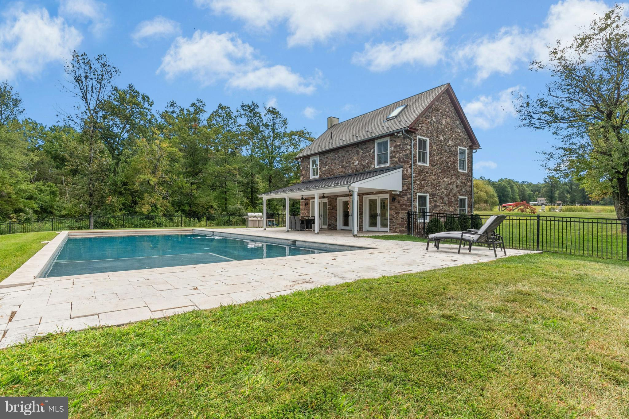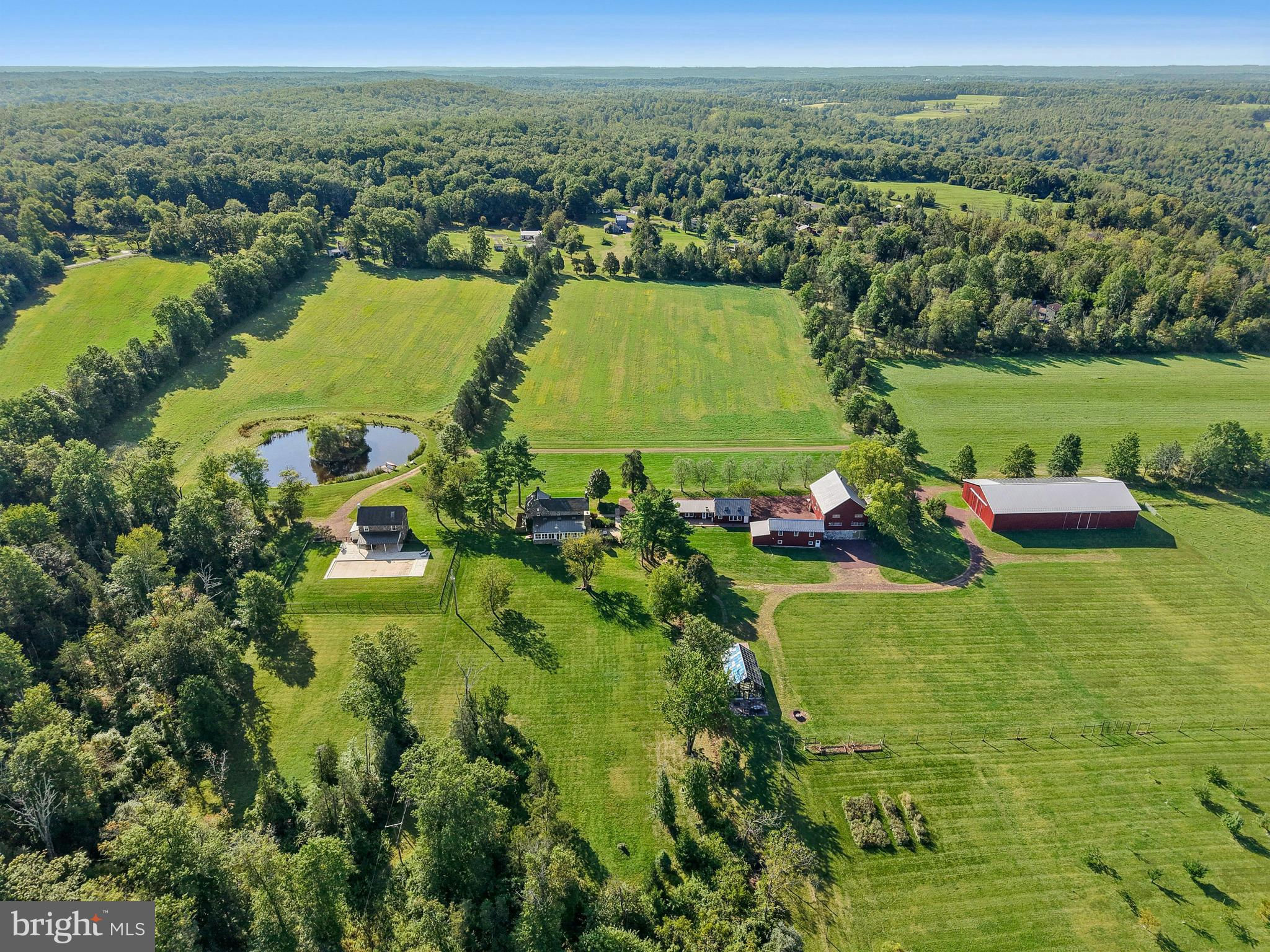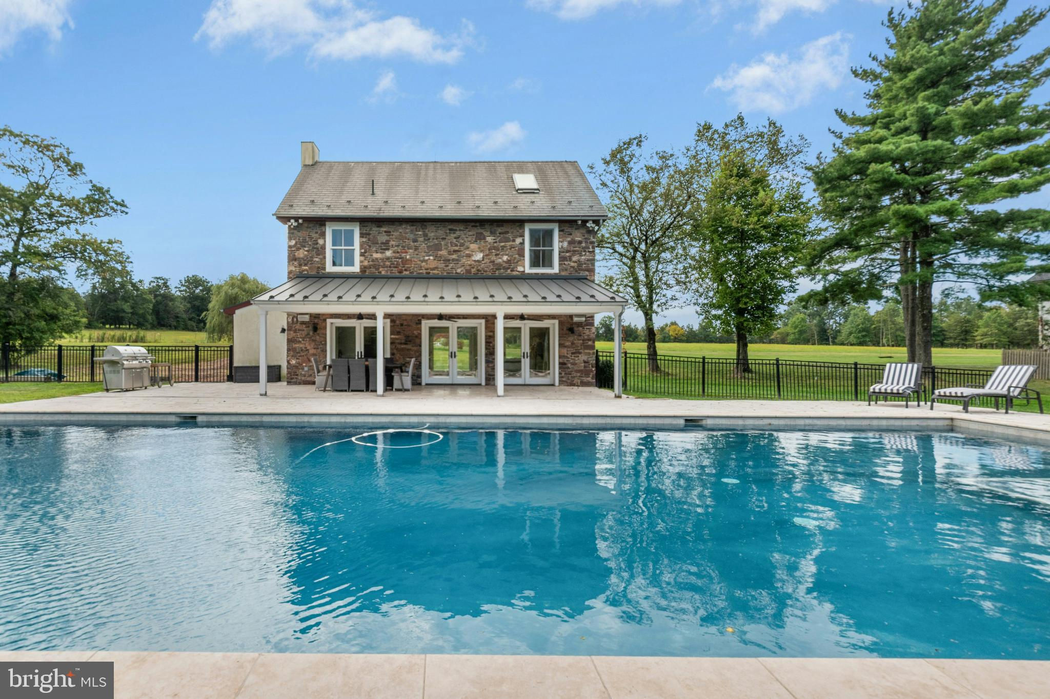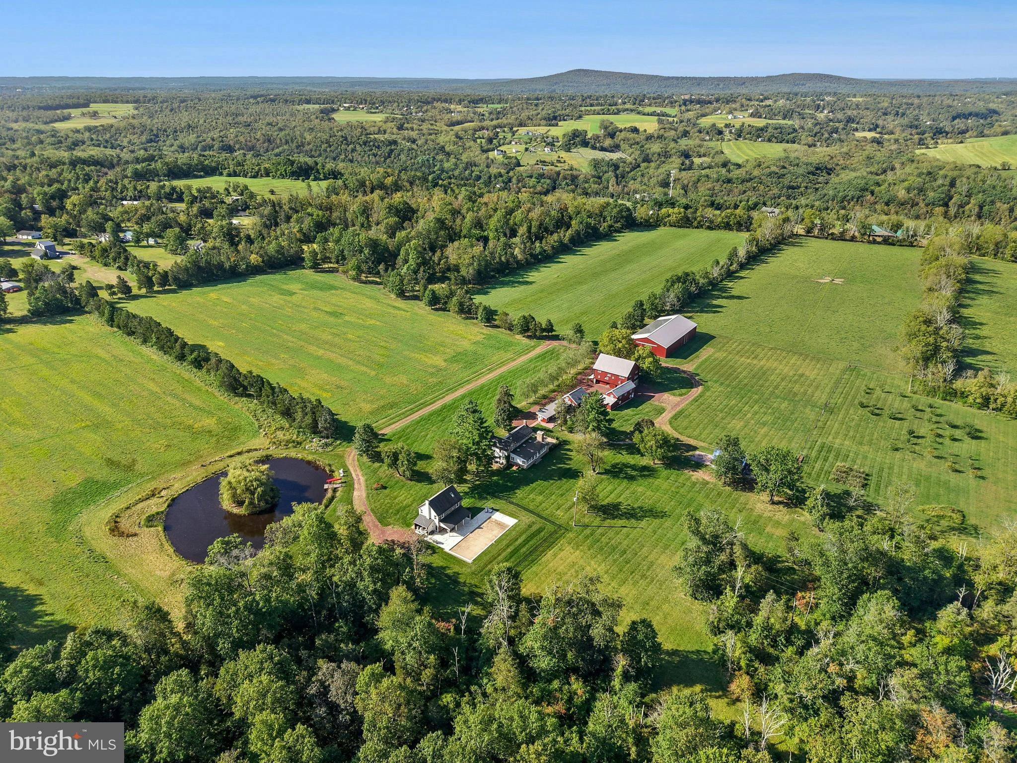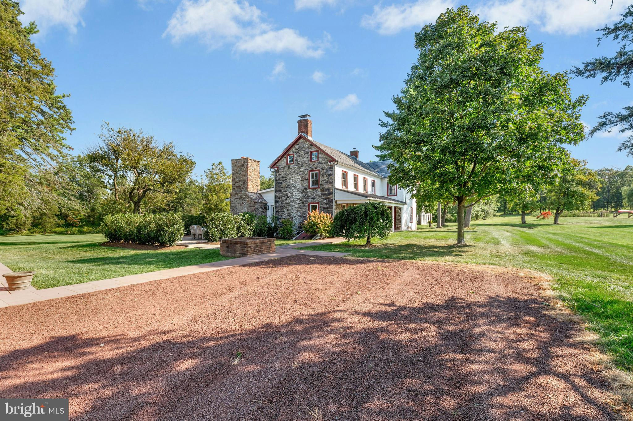 BUCKS COUNTY FARMHOUSES are defined by their settings and their position on their acreage, overlooking their fields and pastures, with long driveways leading past bank barns and farm buildings. Wheaton Fields Farm is one of the finest examples of these storied properties, boasting 50 ACRES OF WOODS, FIELDS, PASTURES and even an ORCHARD WITH GREENHOUSE. At Wheaton Fields, approach to the cluster of picturesque farm buildings is down a quarter mile drive, nicely removed from a quiet country road. The quintessential 1800’s POINTED STONE COLONIAL, with rocking chair front porch, has been RENOVATED AND ENHANCED. A 2024 GREAT ROOM ADDITION has three WALLS OF GLASS, an EXPOSED STONE WALL, WET BAR, SKYLIGHTS and FIREPLACE, all opening to the sandstone patio with LONG DISTANCE VIEWS over the acreage and beyond. Pine, hickory and tile floors span both levels of the home. Throughout, 3 fireplaces, mullioned glass windows with DEEP WINDOWSILLS and PERIOD HARDWARE attest to the classic Bucks County farmhouse character. Completing the first floor is a cozy living room with fireplace, dining room and charming country kitchen. On the second floor, there is an open and airy primary suite, bath and two additional bedrooms. Outside, there are multiple buildings that have been cleverly converted into areas for guests, family, or hobbies. A picture-perfect 2017 POOL HOUSE was designed to complete the original farmhouse with its own stone exterior. The stunning kitchen and great room with radiant heated floor opening to a covered patio and heated saltwater pool overlooking the orchard and greenhouse. Upstairs, a full bath and two additional studio rooms make this an ideal space for visitors. Nearby, one of the original farm buildings now boasts 3 CHARMING COTTAGE SPACES, 2.5 baths, as well as a family room, kitchen and laundry facilities. The ORIGINAL THREE STORY BANK BARN includes a wing that has been CONVERTED INTO A STUDIO, with bath and kitchenette. The 2015 POLE BARN will store every toy and farm essential and has solar panels sufficient to run the whole property. The PRIVATE POND AND DOCK beckon an afternoon on the water. Finally, there is a greenhouse and a fenced orchard with mature apple, pear, peach and plum trees. This SOLAR POWERED PROPERTY WITH GENERATOR lets you relax and invite a crowd for summer weekends, winter escapes, and every holiday. Whether a full-time residence or a weekend retreat, special occasions and other outside events will be celebrated here with joy. The views from the porch and patios provide an ever-changing panorama of seasonal colors and simple evening relaxation under the stars. Wheaton Fields is the perfect farm property, enhanced by elements from a bygone era and nestled in a secluded Bucks County setting. This clever design allows for use as a FAMILY COMPOUND OR FOR MULTI-GENERATIONAL LIVING. This private paradise loses touch with the world just over the hills, yet is still within easy driving distance to magic weekends of Bucks County dining, antiquing and recreation. Estate appraisal of $3,150,000 available. Additional 6.7 Ac wooded lot available.