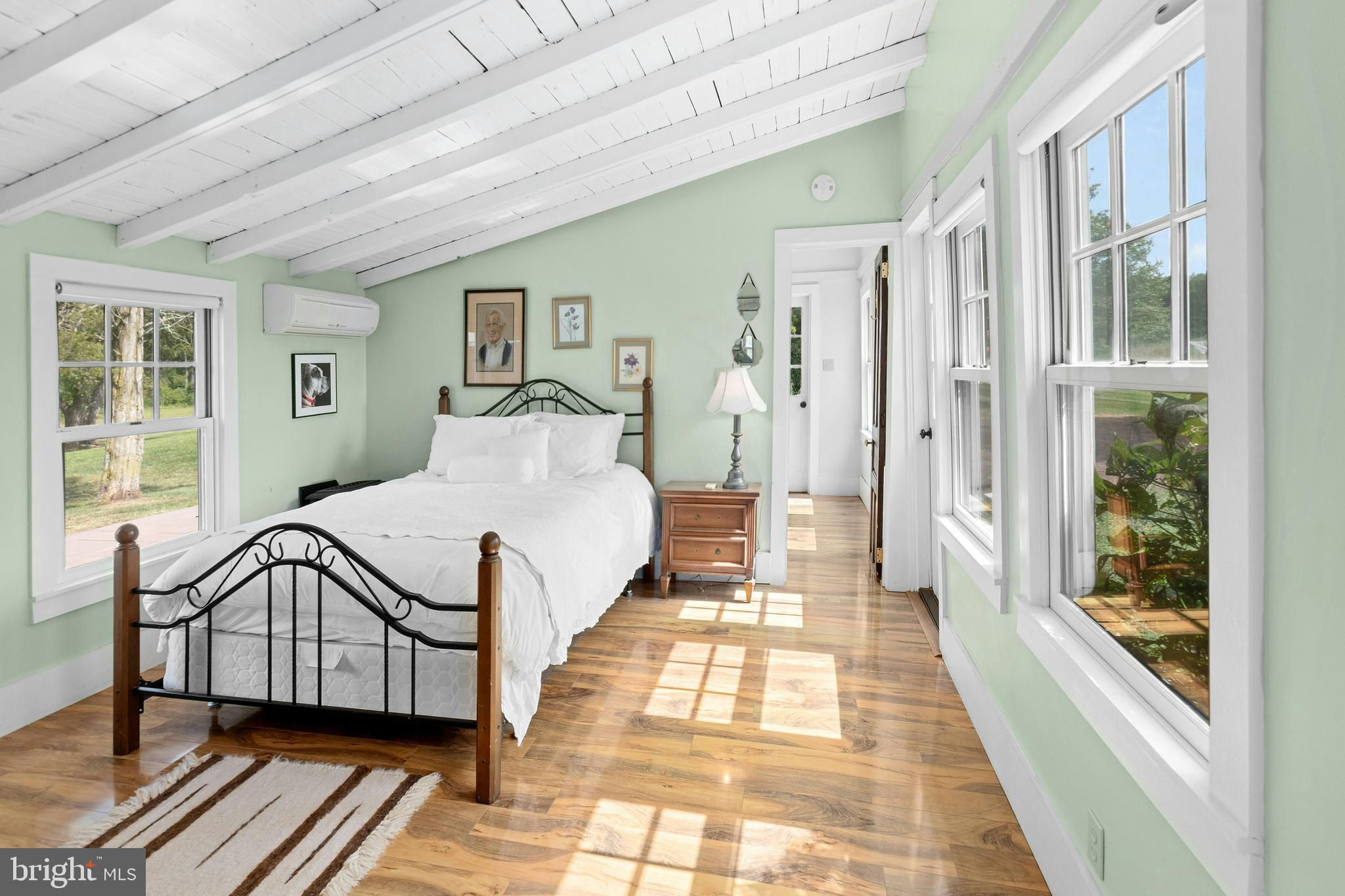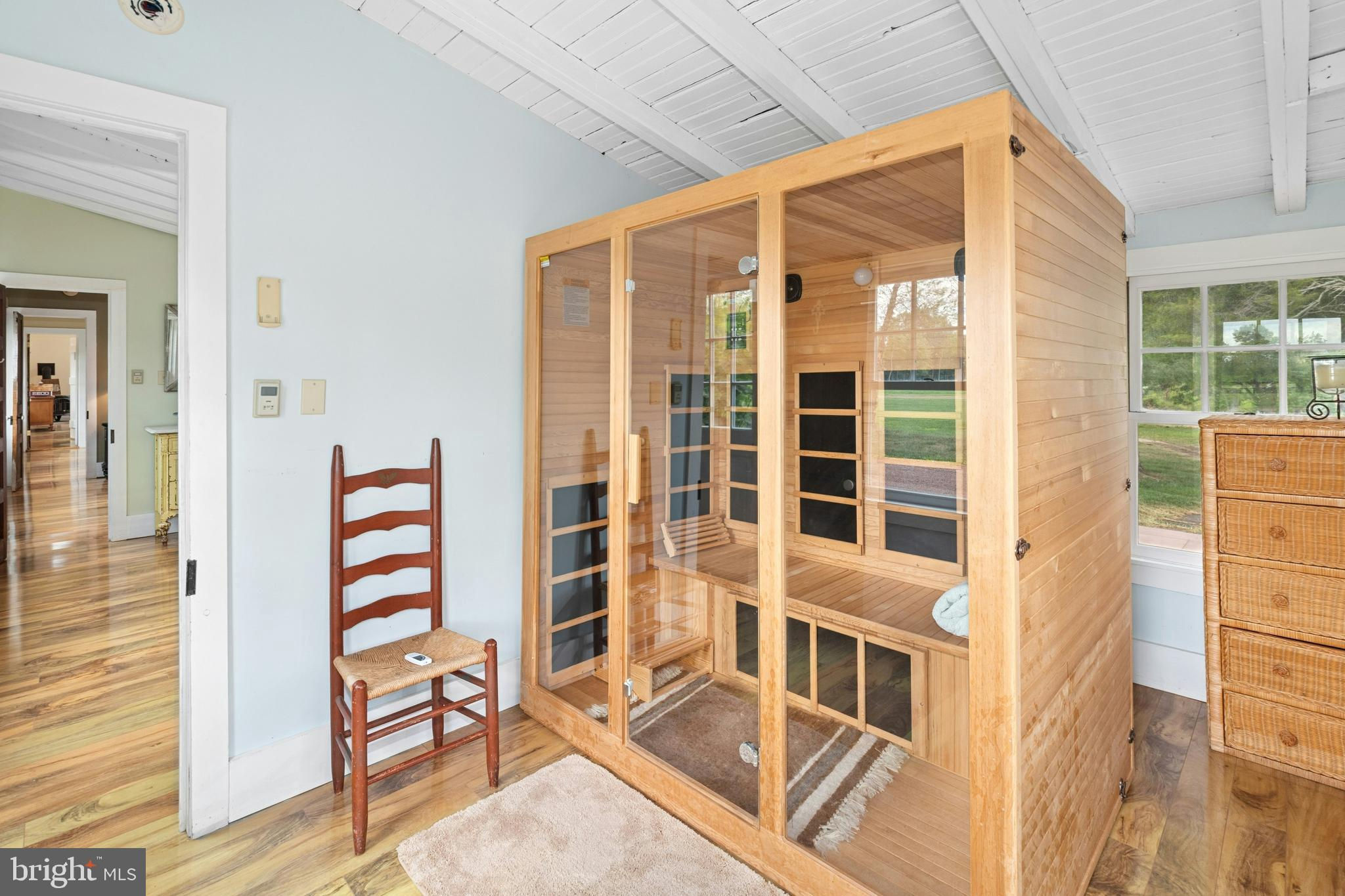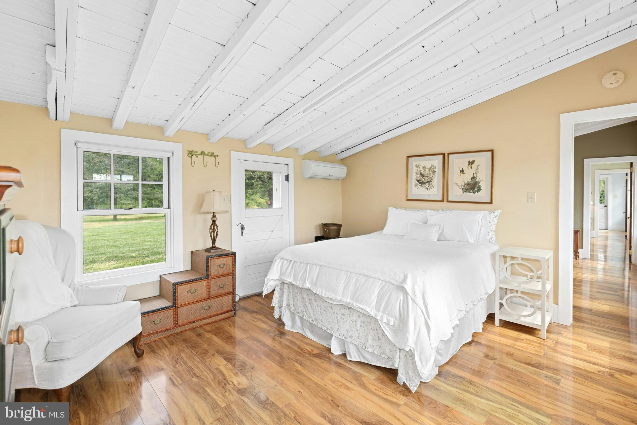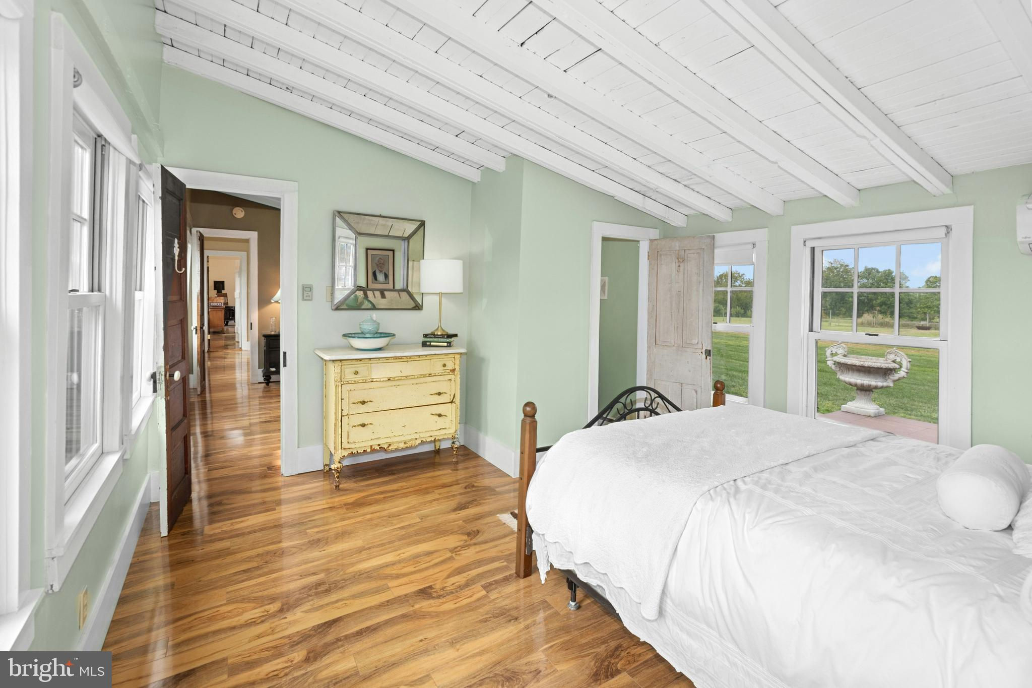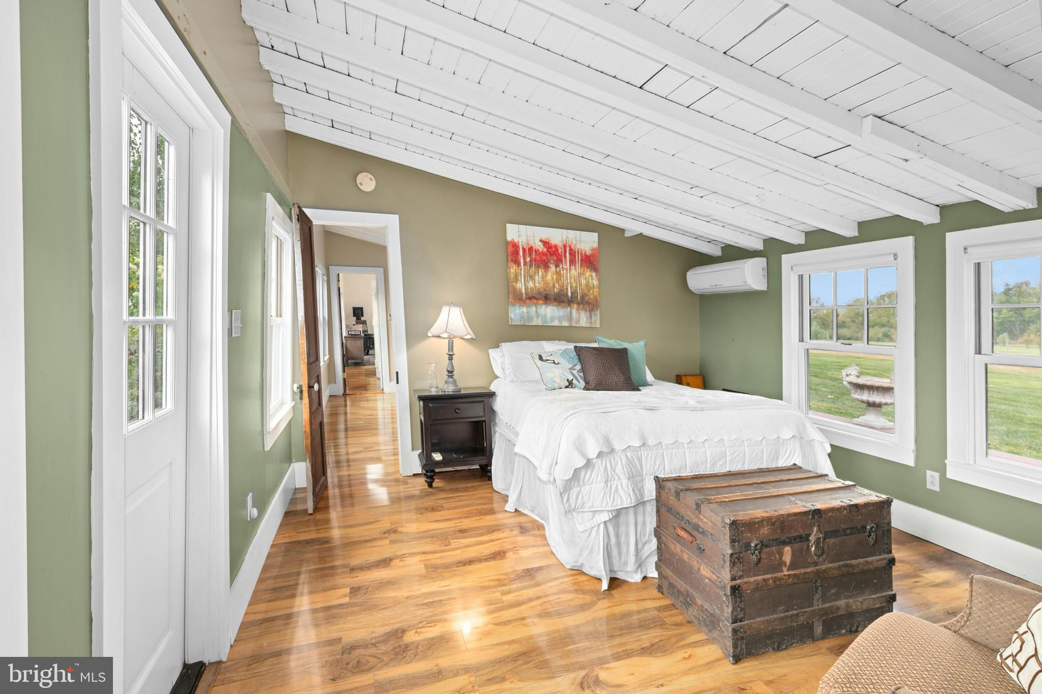 BUCKS COUNTY FARMHOUSES are defined by their settings and their position on their acreage, overlooking their fields and pastures, with long driveways leading past bank barns and farm buildings. Wheaton Fields Farm is one of the finest examples of these storied properties, boasting 50 ACRES OF WOODS, FIELDS, PASTURES and even an ORCHARD WITH GREENHOUSE. At Wheaton Fields, approach to the cluster of picturesque farm buildings is down a quarter mile drive, nicely removed from a quiet country road. The quintessential 1800’s POINTED STONE COLONIAL, with rocking chair front porch, has been RENOVATED AND ENHANCED. A 2024 GREAT ROOM ADDITION has three WALLS OF GLASS, an EXPOSED STONE WALL, WET BAR, SKYLIGHTS and FIREPLACE, all opening to the sandstone patio with LONG DISTANCE VIEWS over the acreage and beyond. Pine, hickory and tile floors span both levels of the home. Throughout, 3 fireplaces, mullioned glass windows with DEEP WINDOWSILLS and PERIOD HARDWARE attest to the classic Bucks County farmhouse character. Completing the first floor is a cozy living room with fireplace, dining room and charming country kitchen. On the second floor, there is an open and airy primary suite, bath and two additional bedrooms. Outside, there are multiple buildings that have been cleverly converted into areas for guests, family, or hobbies. A picture-perfect 2017 POOL HOUSE was designed to complete the original farmhouse with its own stone exterior. The stunning kitchen and great room with radiant heated floor opening to a covered patio and heated saltwater pool overlooking the orchard and greenhouse. Upstairs, a full bath and two additional studio rooms make this an ideal space for visitors. Nearby, one of the original farm buildings now boasts 3 CHARMING COTTAGE SPACES, 2.5 baths, as well as a family room, kitchen and laundry facilities. The ORIGINAL THREE STORY BANK BARN includes a wing that has been CONVERTED INTO A STUDIO, with bath and kitchenette. The 2015 POLE BARN will store every toy and farm essential and has solar panels sufficient to run the whole property. The PRIVATE POND AND DOCK beckon an afternoon on the water. Finally, there is a greenhouse and a fenced orchard with mature apple, pear, peach and plum trees. This SOLAR POWERED PROPERTY WITH GENERATOR lets you relax and invite a crowd for summer weekends, winter escapes, and every holiday. Whether a full-time residence or a weekend retreat, special occasions and other outside events will be celebrated here with joy. The views from the porch and patios provide an ever-changing panorama of seasonal colors and simple evening relaxation under the stars. Wheaton Fields is the perfect farm property, enhanced by elements from a bygone era and nestled in a secluded Bucks County setting. This clever design allows for use as a FAMILY COMPOUND OR FOR MULTI-GENERATIONAL LIVING. This private paradise loses touch with the world just over the hills, yet is still within easy driving distance to magic weekends of Bucks County dining, antiquing and recreation. Estate appraisal of $3,150,000 available. Additional 6.7 Ac wooded lot available.