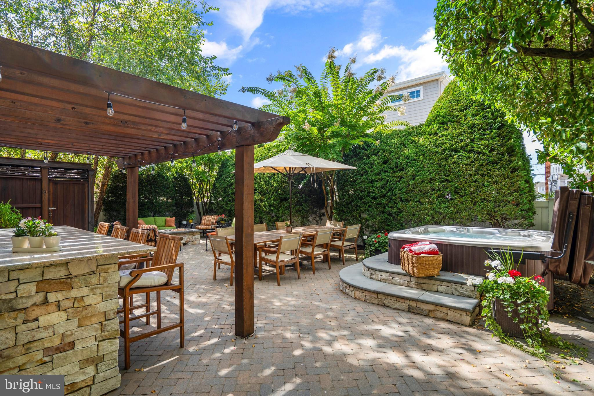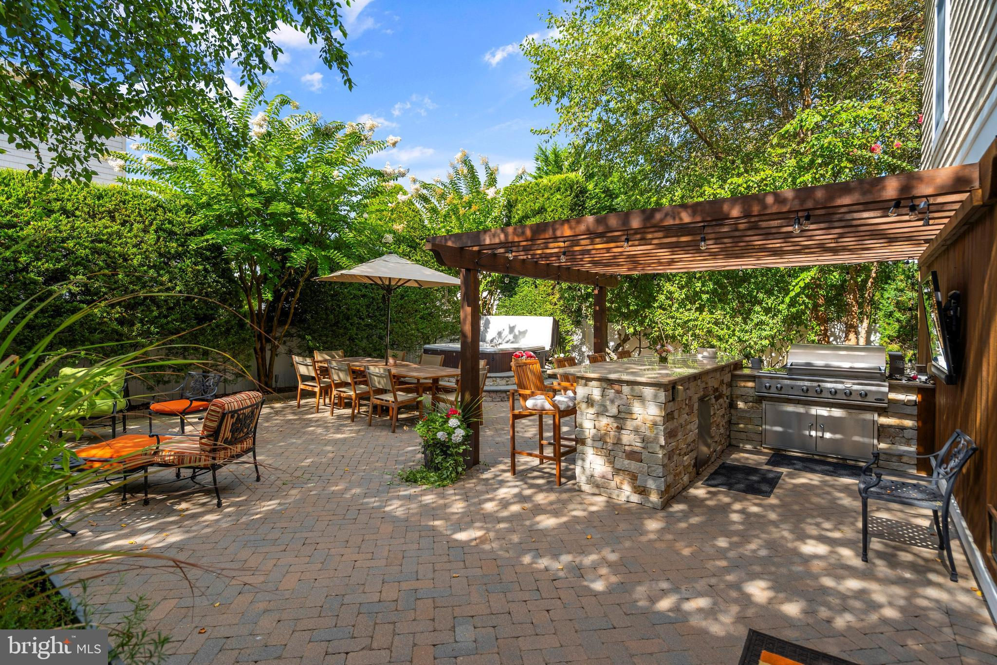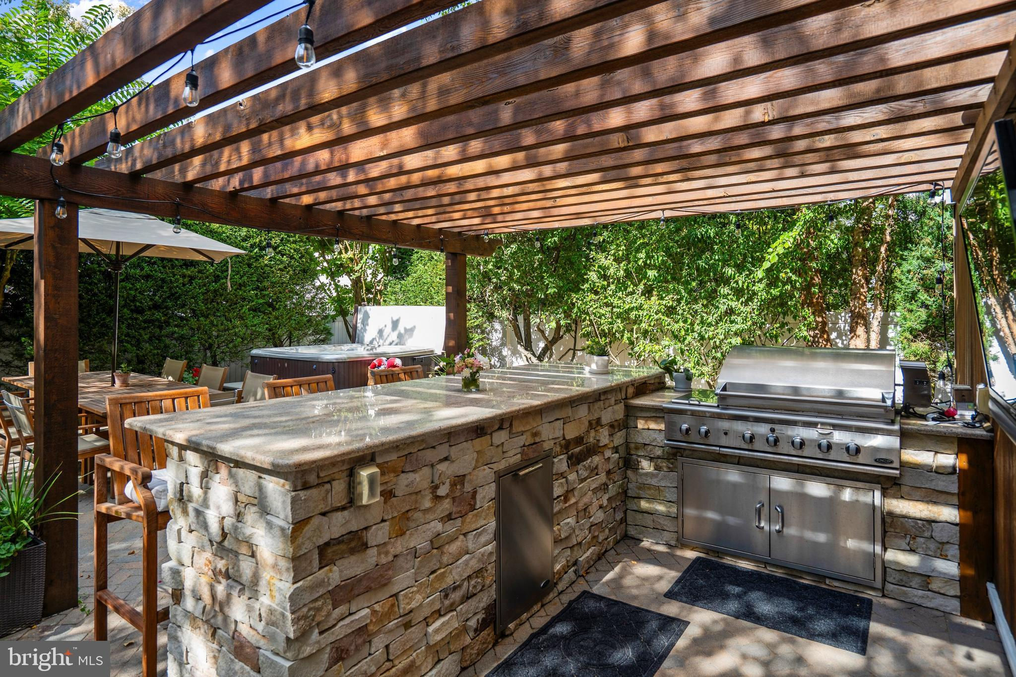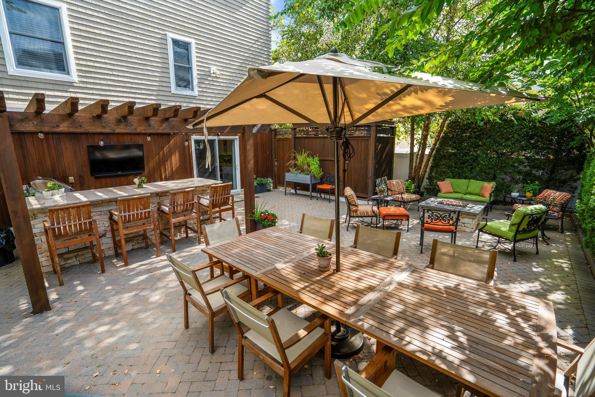 Exquisite coastal style home meticulously maintained with many recent upgrades including a new kitchen. Located just 8 houses from the beach and boasting a resort-like back yard with an outdoor kitchen and bar under a pergola, raised spa plus a fire pit along with an enormous dining table that can seat 10! This home shows like new and has designer furnishings. The reversed living great room features a cathedral ceiling, gas fireplace and deck that enjoys a peek at the ocean and shade from a retractable awning. For an even better ocean view, head to the roof top deck. Sunrises, sunsets and 4th of July fireworks are all included in the ticket price! There is plenty of room for the whole family with the primary bedroom suite located on the upper level for privacy and the junior ensuite primary along with 2 additional bedrooms and a family room on the first floor. So many custom features including electric blinds in the family room, alarm and camera security systems, owners bath with double vanity and separate commode space. Lush, mature landscaping and custom wooden outdoor shower with separate changing area. Wonderful location within easy walking distance to restaurants, shopping and night life.