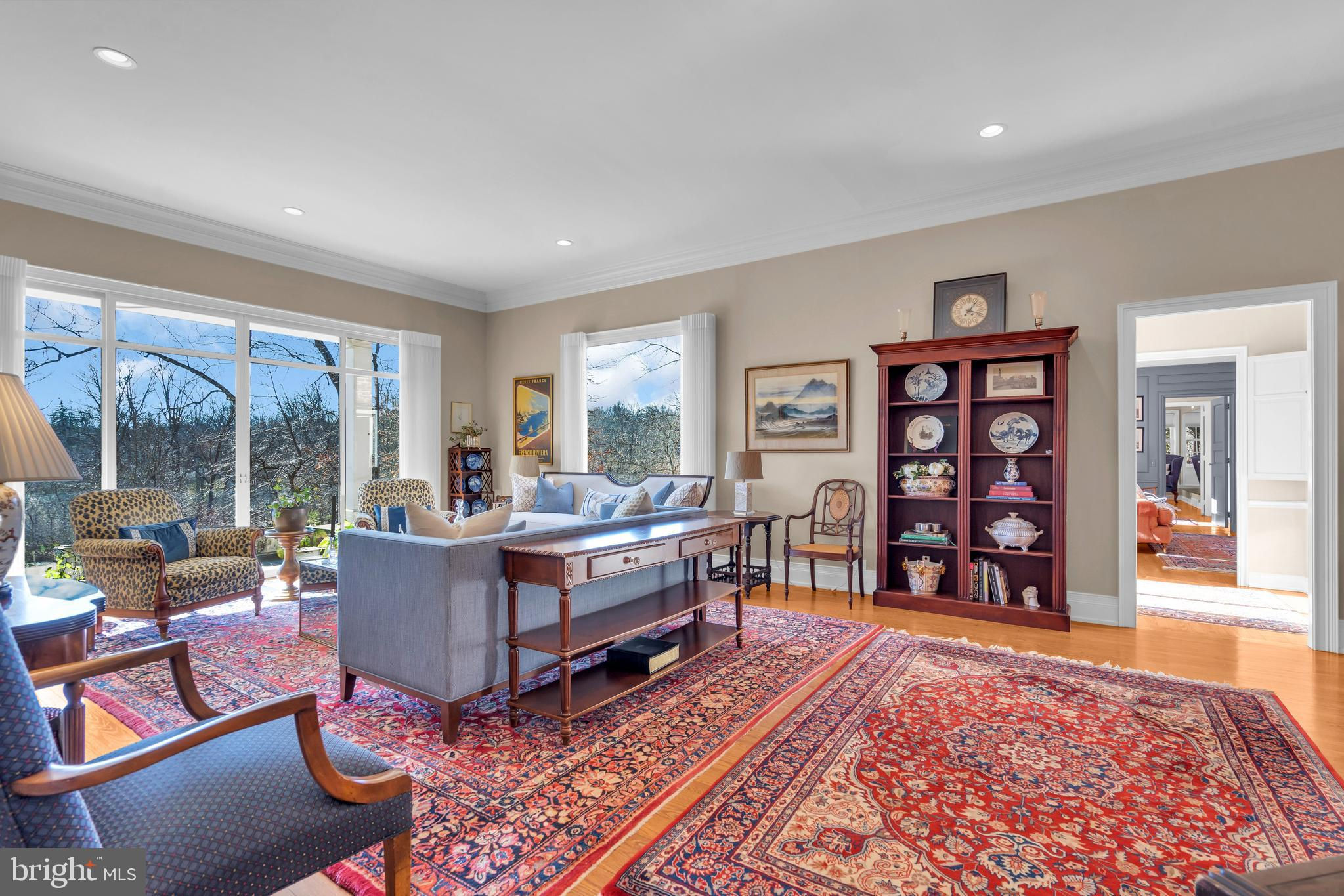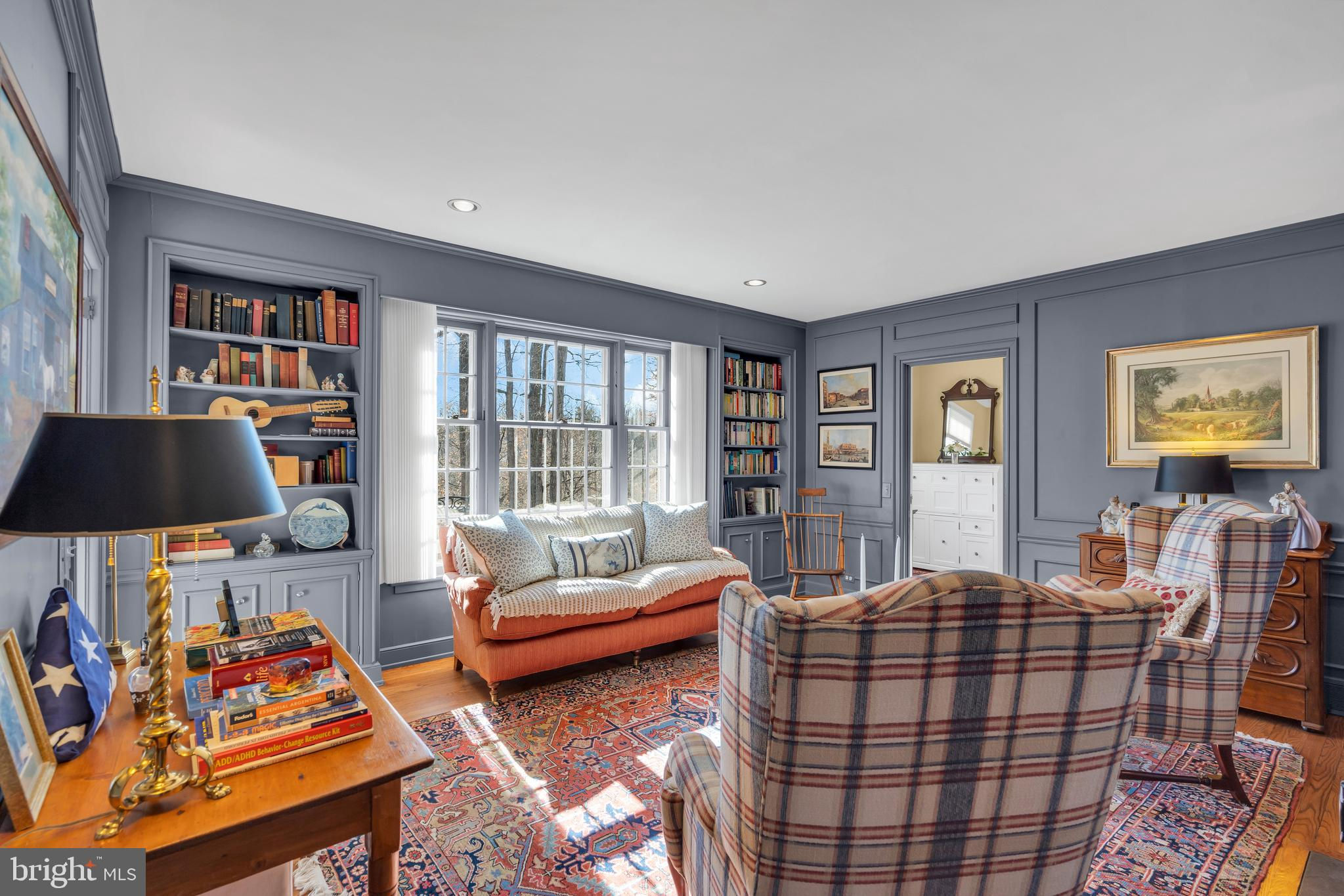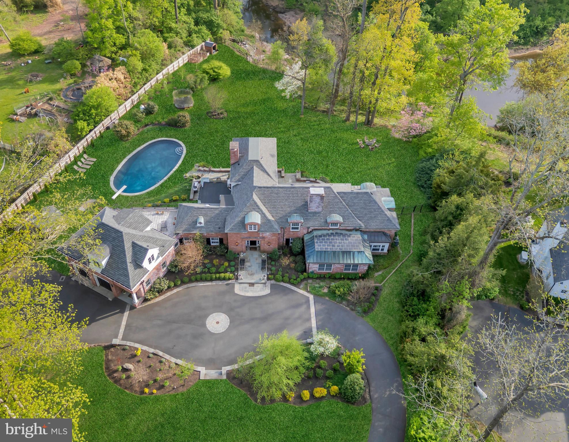Discover the elegance and timeless appeal of this distinguished brick residence designed by the esteemed architect Alexander P. Morgan Jr. set on over 2 acres in Princeton, NJ with panoramic views over The Stony Brook. This sophisticated home has been meticulously updated to blend its original charm with modern-day comforts, all while embracing stunning views. A large entrance hall with arched paneling steps down into an expansive living room, featuring high ceilings, a wood-burning fireplace, and an expansive picture window that creates a seamless connection with the serene surroundings. The beautifully redesigned kitchen boasts quartz countertops, top-of-the-line Thermador appliances (including three dishwashers!), and flows effortlessly into a bright breakfast family room. Adjacent is a formal dining room, graced with hand-painted wallpaper and offering a sophisticated ambiance for hosting memorable dinners. A captivating library, featuring a hidden door, provides a cozy retreat during the winter months. Meanwhile, in summer, a well-placed wet bar enhances outdoor entertaining on the terrace. A large games room is a fun space to unwind. This exquisite home offers five spacious bedrooms and 5+2 baths, including a convenient first-floor guest suite and a luxurious primary suite complete with an ensuite bath, walk-in closet, and a Juliet balcony. An additional large bonus room was recently added, with an ensuite bath and a second-floor patio overlooking the lush lawn, pool, and river views. A full house generator and too many updates to list - see additional information sheet. A gracious home like this wouldn’t be complete without a large lawn, several terraces, and a striking oval black bottom pool. A charming terrace down by the riverbank is perfect for kayaking, or enjoying an alfresco aperitif. Embrace the classic elegance and refined lifestyle this exceptional property offers. Close to Princeton University, town, and all the restaurants, shops, and theatre that living in Princeton offers. Princeton Public Schools. Approximately 200ft of riverfront. Tax records show the property as 5622 sqft, two additions added an additional 625 sqft and 500 sqft respectively. Buyer to do their own due diligence on sqft.
