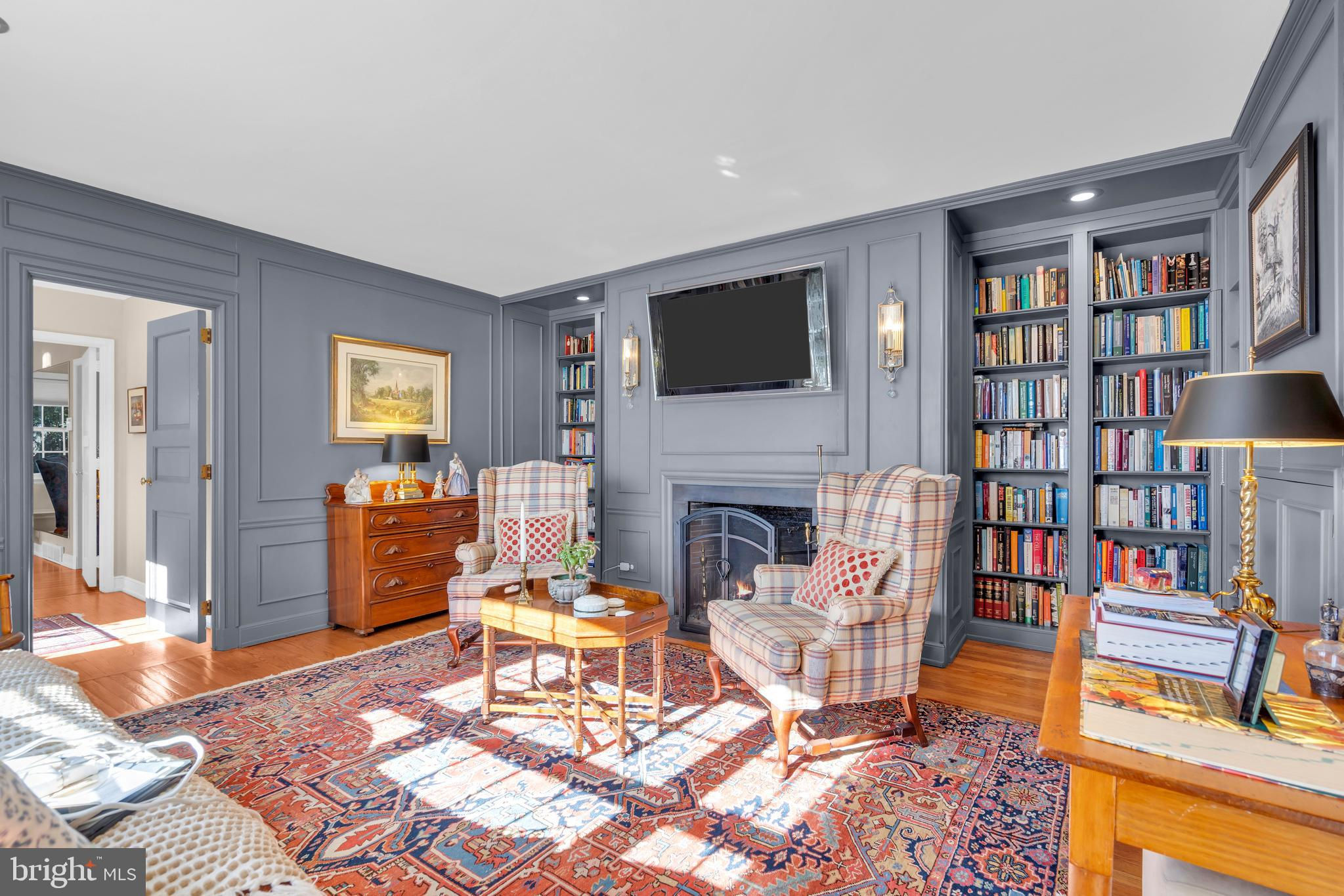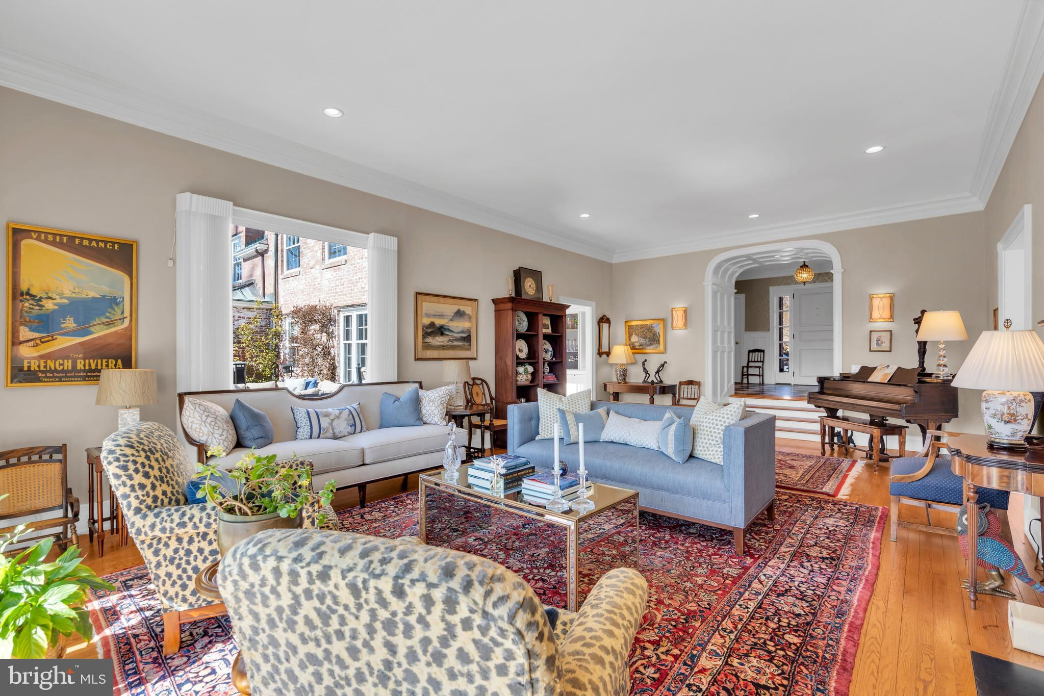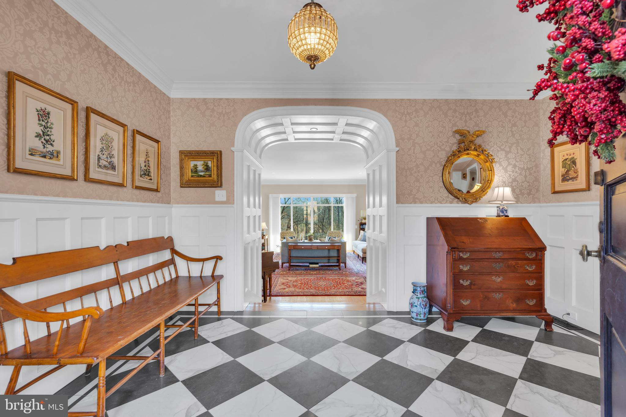 Discover the elegance and timeless appeal of this distinguished brick residence designed by the esteemed architect Alexander P. Morgan Jr. set on over 2 acres in Princeton, NJ with panoramic views over The Stony Brook. This sophisticated home has been meticulously updated to blend its original charm with modern-day comforts, all while embracing stunning views. A large entrance hall with arched paneling steps down into an expansive living room, featuring high ceilings, a wood-burning fireplace, and an expansive picture window that creates a seamless connection with the serene surroundings. The beautifully redesigned kitchen boasts quartz countertops, top-of-the-line Thermador appliances (including three dishwashers!), and flows effortlessly into a bright breakfast family room. Adjacent is a formal dining room, graced with hand-painted wallpaper and offering a sophisticated ambiance for hosting memorable dinners. A captivating library, featuring a hidden door, provides a cozy retreat during the winter months. Meanwhile, in summer, a well-placed wet bar enhances outdoor entertaining on the terrace. A large games room is a fun space to unwind. This exquisite home offers five spacious bedrooms and 5+2 baths, including a convenient first-floor guest suite and a luxurious primary suite complete with an ensuite bath, walk-in closet, and a Juliet balcony. An additional large bonus room was recently added, with an ensuite bath and a second-floor patio overlooking the lush lawn, pool, and river views. A full house generator and too many updates to list - see additional information sheet. A gracious home like this wouldn’t be complete without a large lawn, several terraces, and a striking oval black bottom pool. A charming terrace down by the riverbank is perfect for kayaking, or enjoying an alfresco aperitif. Embrace the classic elegance and refined lifestyle this exceptional property offers. Close to Princeton University, town, and all the restaurants, shops, and theatre that living in Princeton offers. Princeton Public Schools. Approximately 200ft of riverfront. Tax records show the property as 5622 sqft, two additions added an additional 625 sqft and 500 sqft respectively. Buyer to do their own due diligence on sqft.