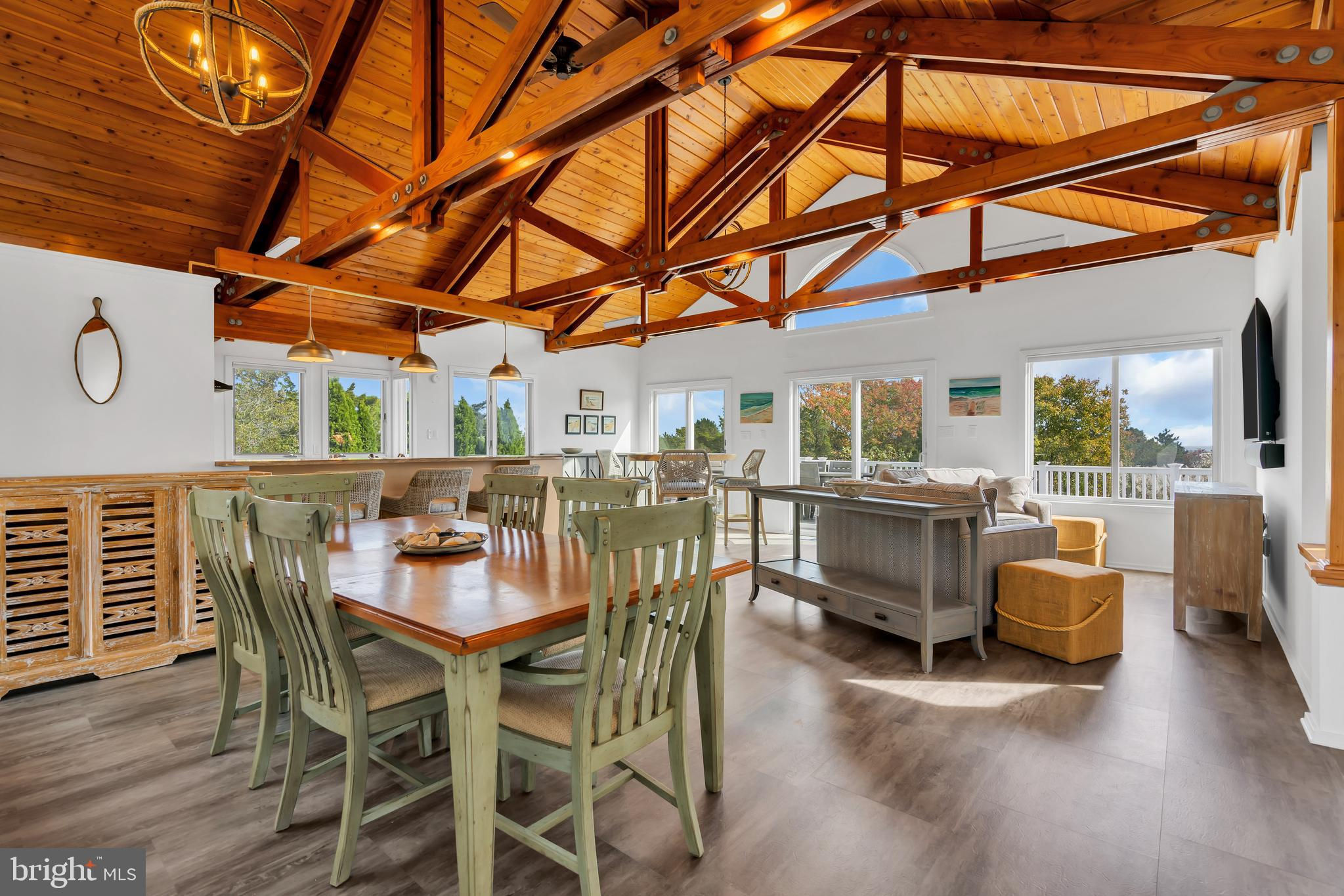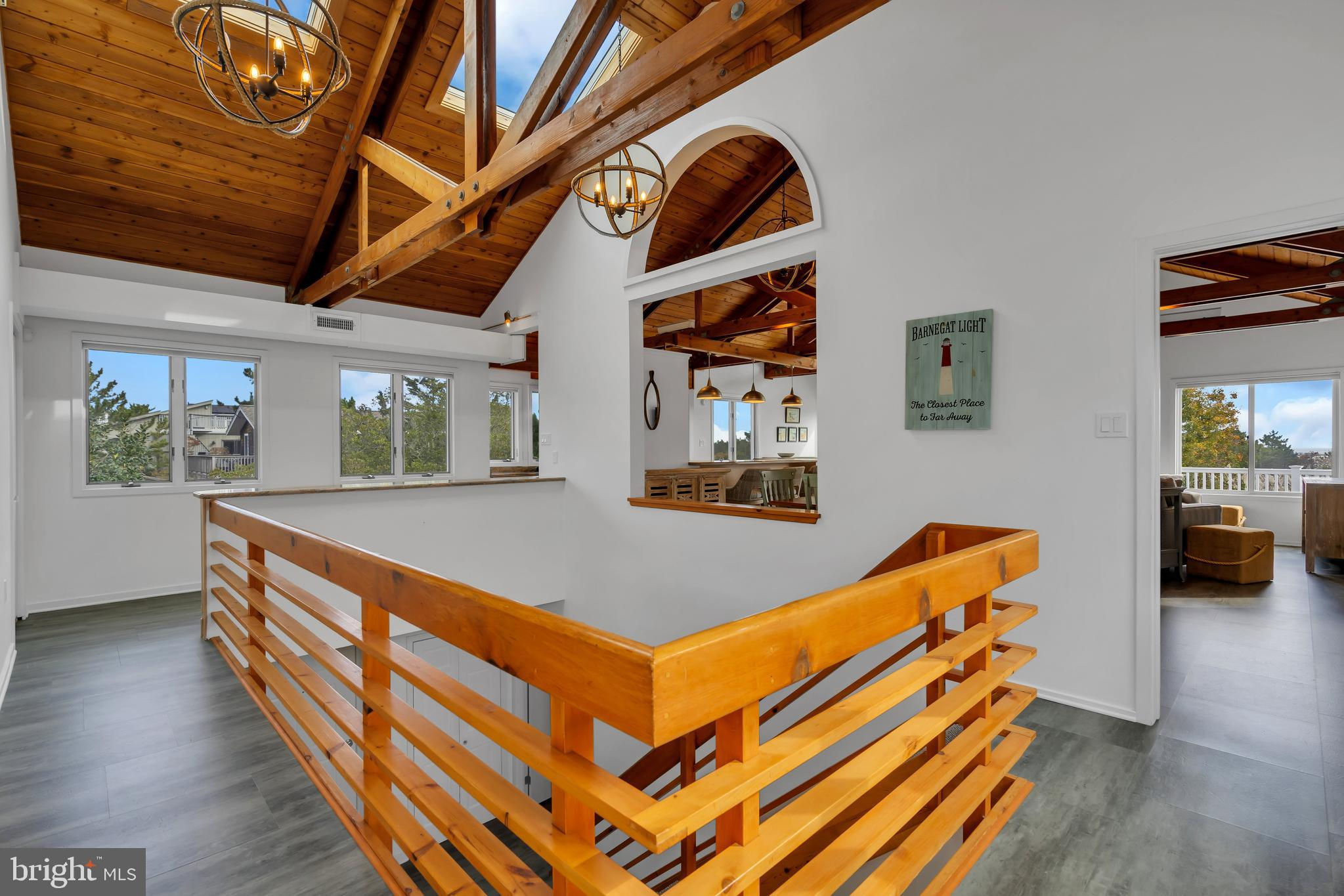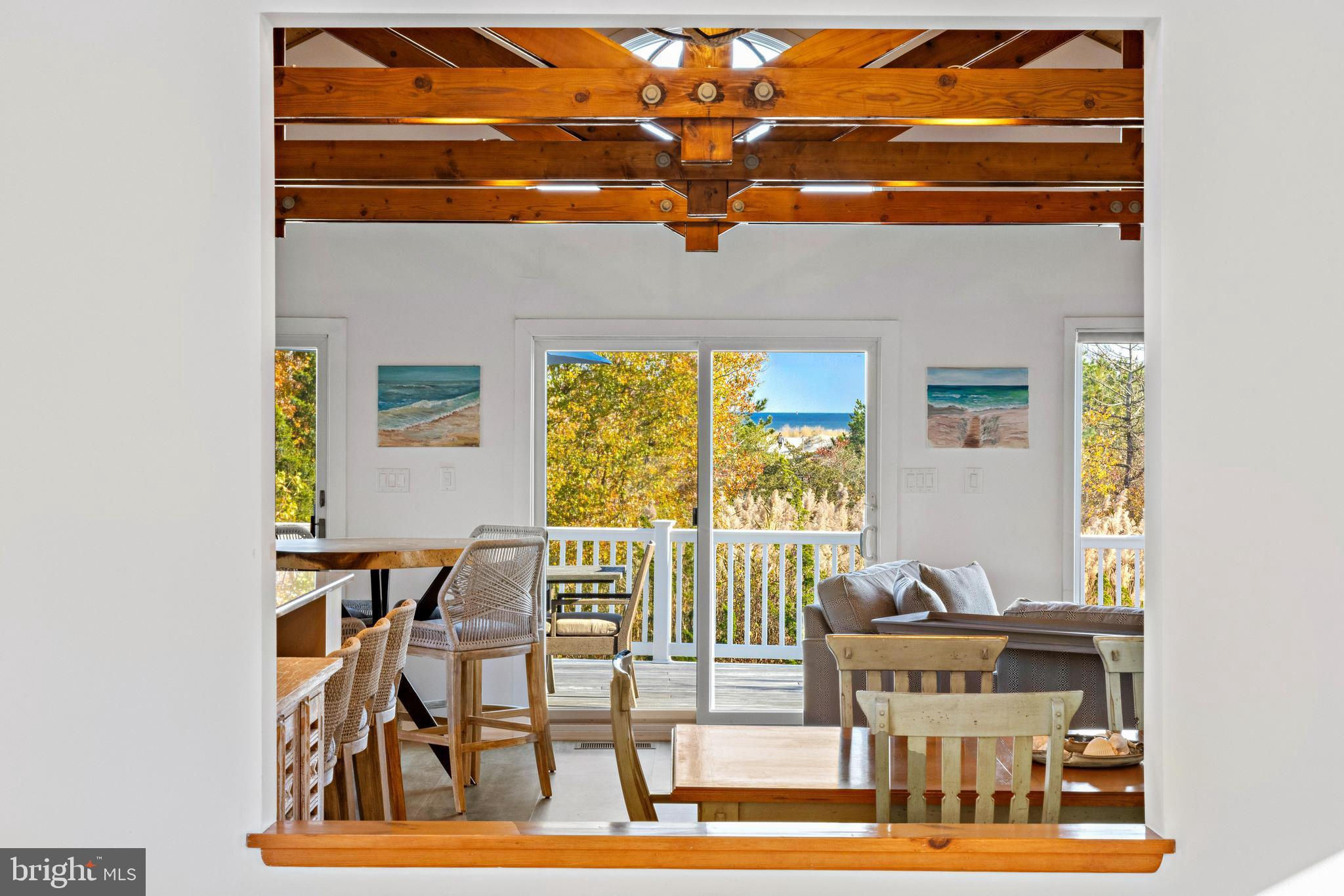 The farmhouse-inspired ambiance meets the coastal setting, merging mountain aesthetics with beachfront vibes. A vaulted ceiling and expansive windows infuse the space with a delightful blend of farmhouse and coastal styles. Two-story oceanfront beach house with five bedrooms and five bathrooms Overlooks serene wooded dunes of Barnegat Light with breathtaking ocean views from rooftop deck Four decks, including a rooftop deck for nighttime stargazing Upper level open-concept living area: kitchen, multiple dining and sitting areas, living room and huge bedroom with 2 king sized beds, full bath, and private deck Spacious living and dining area ideal for hosting sizable gatherings The enhanced array of facilities include a state-of-the-art addition - a ground-level, heated saltwater pool that has been recently installed. This meticulously crafted pool provides a luxurious and inviting space for relaxation and recreation. Coveted location on a picturesque street in Barnegat Light This two-story oceanfront residence boasts five bedrooms and five bathrooms, overlooking the serene wooded dunes of Barnegat Light with a breathtaking ocean vista, creating an ideal setting for family gatherings. Tailored for larger families, this house features four decks, including a rooftop deck offering spectacular views for nighttime stargazing. The upper level encompasses an open-concept living area that combines the kitchen, dining space, and living room. Embracing a coastal ambiance with touches of farmhouse style, this home seamlessly merges the charm of the mountains with the allure of the beach. Its vaulted ceiling and expansive windows infuse the interior with a blend of farmhouse and coastal aesthetics. The generous living and dining area offers ample room for hosting large gatherings, with two sliding doors leading to the deck overlooking the wooded dunes and the shoreline. A newly installed saltwater pool at ground level complements the private surroundings impeccably. The sizable bedroom on the second floor features two king-size beds and a private deck providing stunning views of the western side of Barnegat Light. On the main level, there are four bedrooms, three bathrooms, a laundry room, a sitting area, and a family room. Two of the bedrooms on this level have sliders opening to the downstairs decks and en-suite bathrooms. Conveniently positioned on the deck is an outdoor kitchen that is perfect for poolside gatherings. Additionally, this residence includes a bonus TESLA CHARGING STATION, an outdoor shower, and a rooftop deck. This exceptional oceanfront estate in Barnegat Light enjoys an enviable location on a beautiful street within walking distance of shops, restaurants, boating facilities, Viking Village, and miniature golf courses.