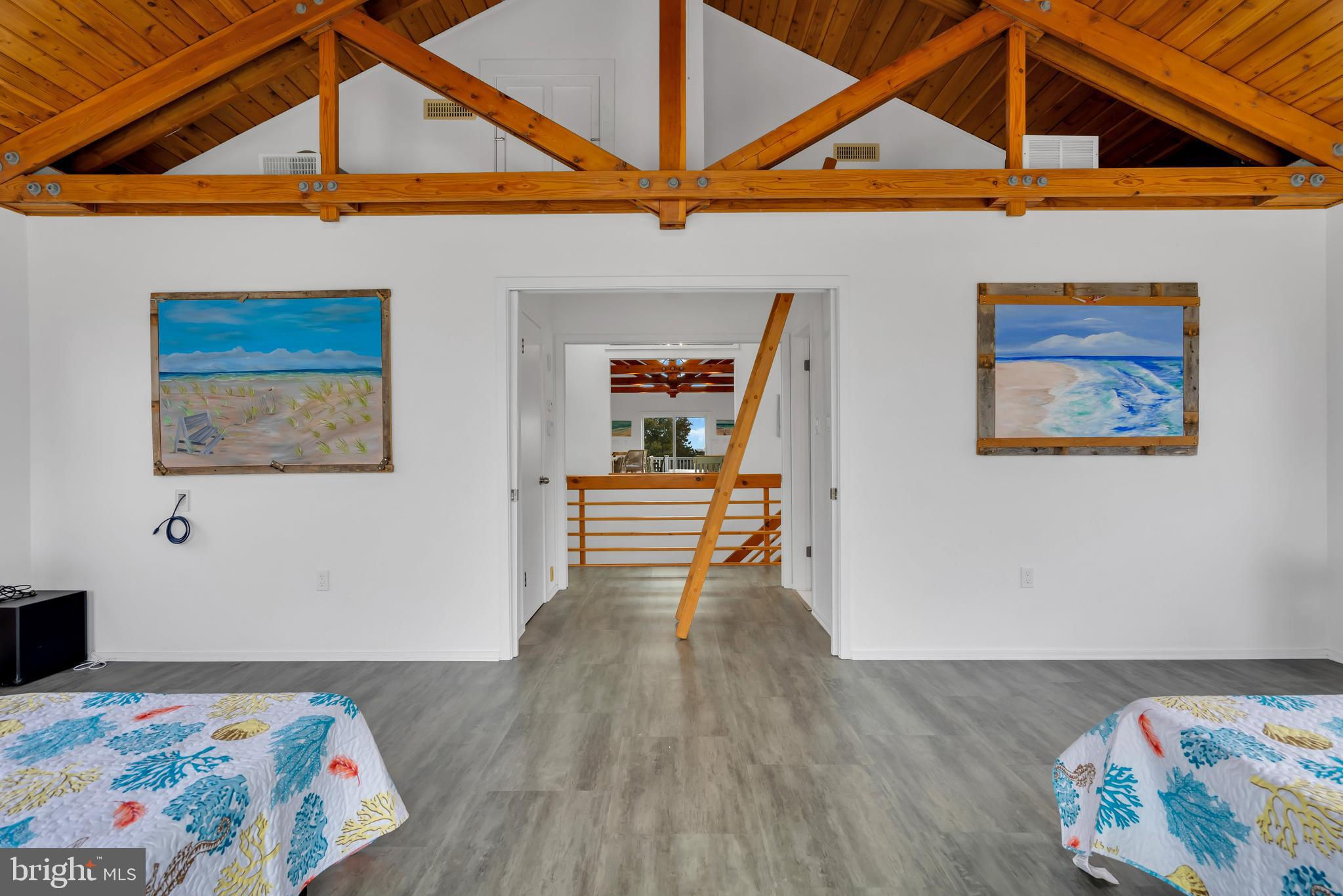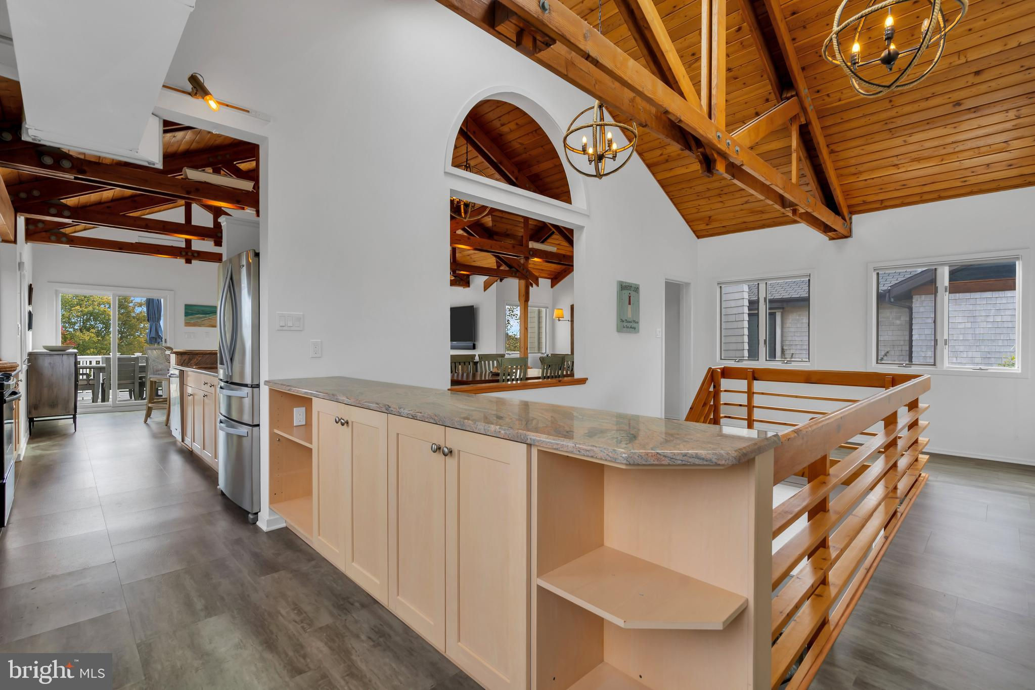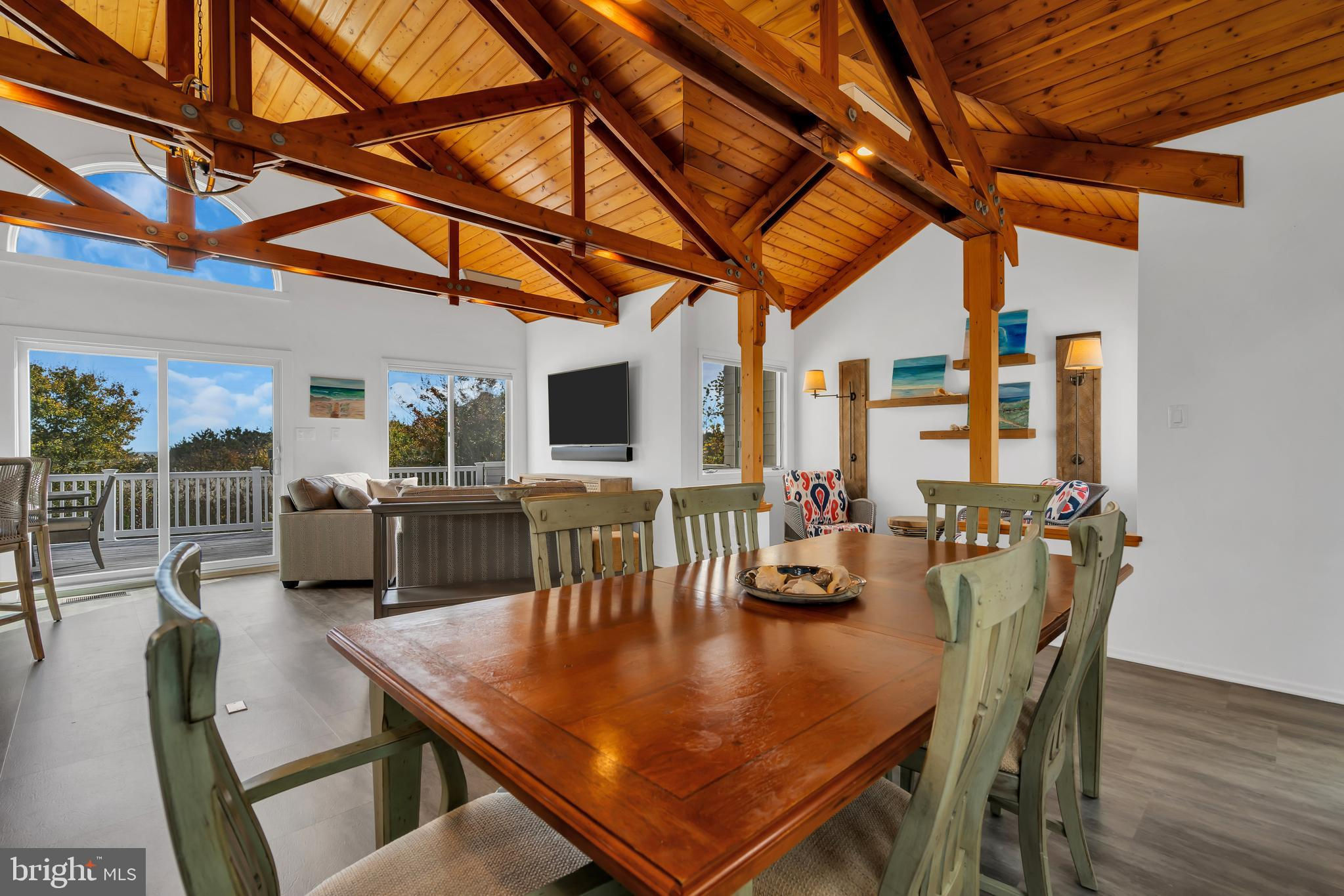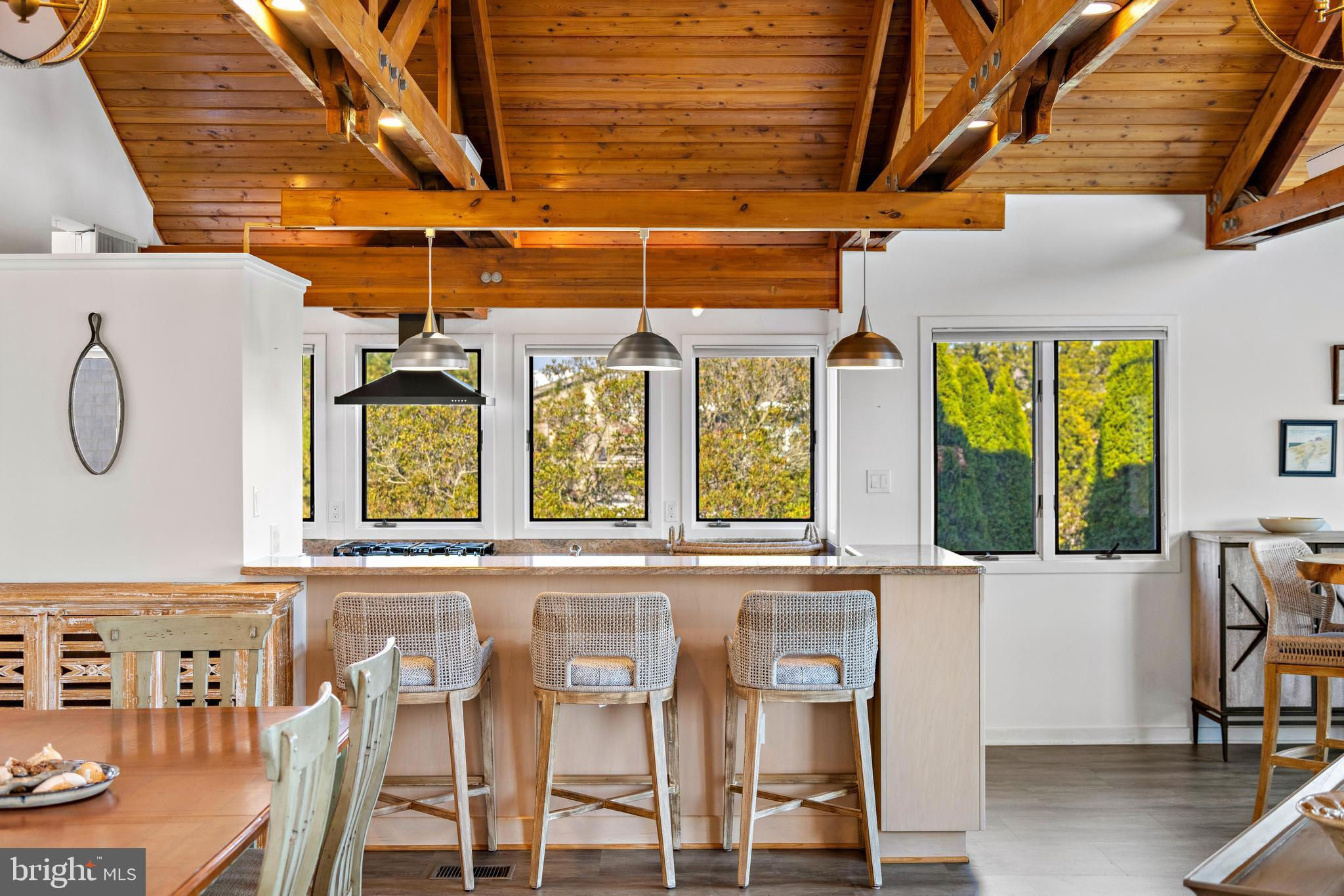 The farmhouse-inspired ambiance meets the coastal setting, merging mountain aesthetics with beachfront vibes. A vaulted ceiling and expansive windows infuse the space with a delightful blend of farmhouse and coastal styles. Two-story oceanfront beach house with five bedrooms and five bathrooms Overlooks serene wooded dunes of Barnegat Light with breathtaking ocean views from rooftop deck Four decks, including a rooftop deck for nighttime stargazing Upper level open-concept living area: kitchen, multiple dining and sitting areas, living room and huge bedroom with 2 king sized beds, full bath, and private deck Spacious living and dining area ideal for hosting sizable gatherings The enhanced array of facilities include a state-of-the-art addition - a ground-level, heated saltwater pool that has been recently installed. This meticulously crafted pool provides a luxurious and inviting space for relaxation and recreation. Coveted location on a picturesque street in Barnegat Light This two-story oceanfront residence boasts five bedrooms and five bathrooms, overlooking the serene wooded dunes of Barnegat Light with a breathtaking ocean vista, creating an ideal setting for family gatherings. Tailored for larger families, this house features four decks, including a rooftop deck offering spectacular views for nighttime stargazing. The upper level encompasses an open-concept living area that combines the kitchen, dining space, and living room. Embracing a coastal ambiance with touches of farmhouse style, this home seamlessly merges the charm of the mountains with the allure of the beach. Its vaulted ceiling and expansive windows infuse the interior with a blend of farmhouse and coastal aesthetics. The generous living and dining area offers ample room for hosting large gatherings, with two sliding doors leading to the deck overlooking the wooded dunes and the shoreline. A newly installed saltwater pool at ground level complements the private surroundings impeccably. The sizable bedroom on the second floor features two king-size beds and a private deck providing stunning views of the western side of Barnegat Light. On the main level, there are four bedrooms, three bathrooms, a laundry room, a sitting area, and a family room. Two of the bedrooms on this level have sliders opening to the downstairs decks and en-suite bathrooms. Conveniently positioned on the deck is an outdoor kitchen that is perfect for poolside gatherings. Additionally, this residence includes a bonus TESLA CHARGING STATION, an outdoor shower, and a rooftop deck. This exceptional oceanfront estate in Barnegat Light enjoys an enviable location on a beautiful street within walking distance of shops, restaurants, boating facilities, Viking Village, and miniature golf courses.