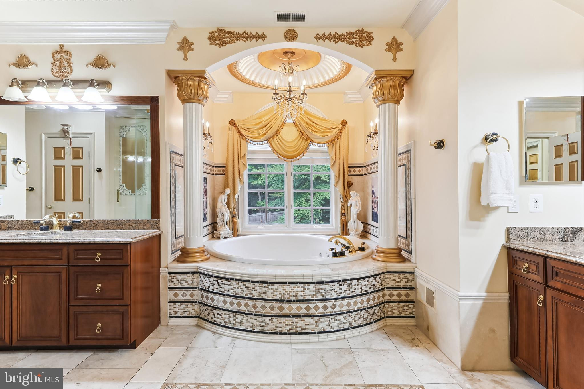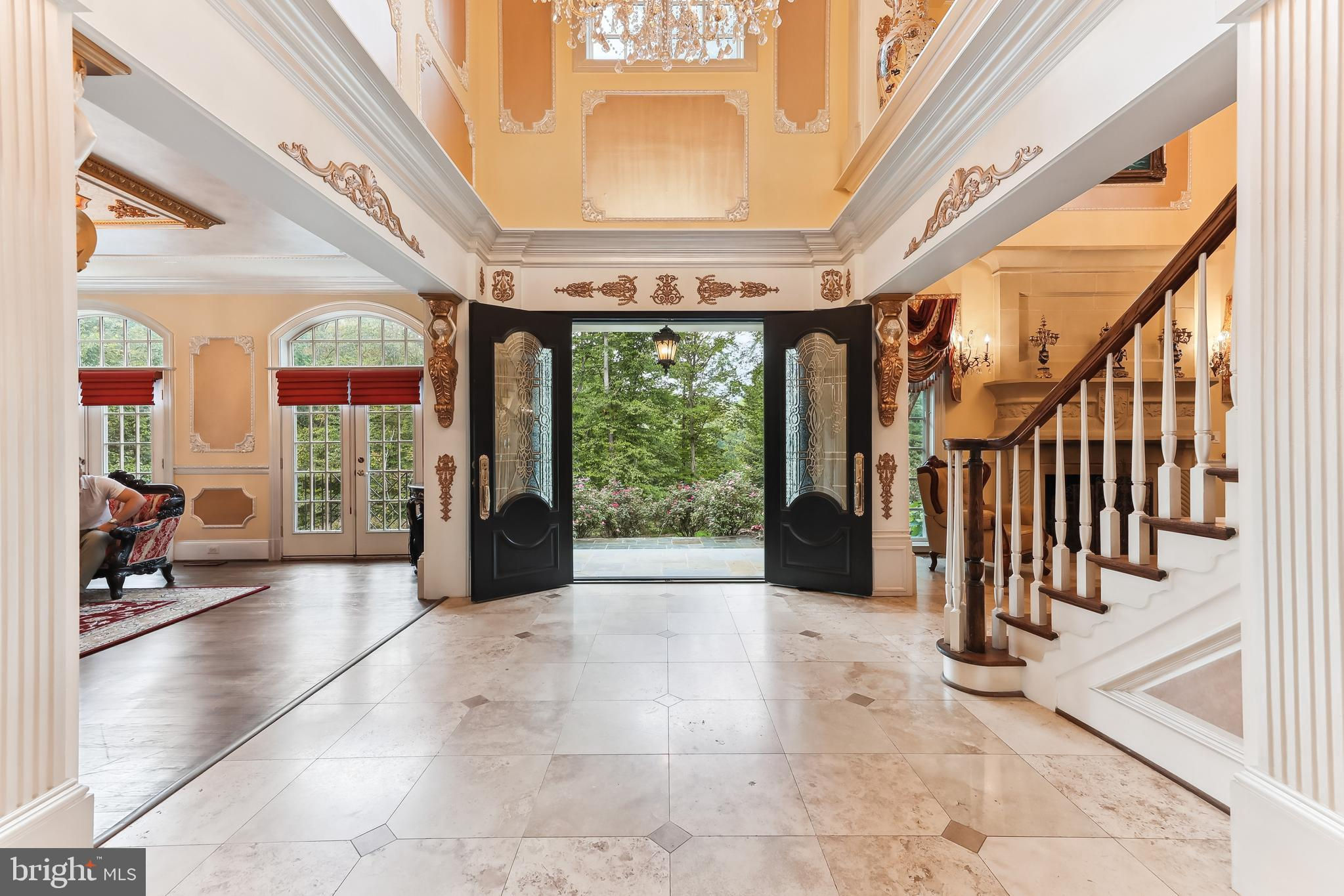 Available to be shown by appointment during summer months. Exquisite, custom, multi-generational compound on 5.63 fully fenced acres includes a carriage house with separate 2 bedroom/2.5 bath apartment. The compound features a total of 8 bedrooms, 13 baths and 6 garage bays with approximately 17,000sf of heated and cooled space. Located in the historic and charming town of Clifton, this impressive property is in an ideal location, a quick 40 minute drive to DC, or 20 minutes to Dulles International or Manassas Airports. In 2020, this one of a kind luxury residence was renovated with premium materials and quality craftsmanship throughout to include the addition of a state-of-the-art heated and cooled carriage house which is ideal for a car collector or RV enthusiast. Offering the utmost in privacy and security, from the electric gated entry to the state-of-the art security system, you will feel at ease as you enjoy the amenities of this luxury residence. You will be captivated by the gracious curb appeal as you enter through the gates and proceed up the brick paver driveway to the stone accented impressive main residence with 6 bedrooms, 8 baths, a side load 3 car garage and an elevator that services all 4 floors. Walk up the storybook slate walkway, past the side porch and onto the veranda, and enter this breathtaking home through double leaded glass doors. The majestic grand foyer features vaulted ceilings, travertine floors and exquisite millwork. The main level boasts 10 foot ceilings, multiple fireplaces with custom mosaic surrounds and wonderful formal and informal spaces for entertaining with an exquisite living room and dining room with crystal chandeliers, an inviting family room with walls of atrium windows, a music room, a handsome wood paneled library plus a sunroom. The heart of the home is the gourmet kitchen with double island, expansive custom cherry cabinetry with inlaid glass accent cabinets, high end Sub Zero and Viking appliances, walk-in pantry and ample eat-in dining space with a door to the deck and outdoor kitchen. The upper levels house the opulent primary suite with sitting room, fireplace, coffee bar, dressing room with huge walk-in closet and a luxurious spa resort bath. Four additional bedrooms all with en suite baths and a bedroom level laundry complete the upper levels. The incredible 3500sf walk out lower level is light and bright with a French door and windows for enhanced natural light. This is the perfect spot for entertaining with an upscale bar/billiards room with copper ceiling, private professional home theatre with excellent sound distribution, climate controlled wine room, gym, a guest suite with full bath, powder room and extra storage/flex space. The lower level features a walk out to extensive decking and an inviting patio with a massive stone fireplace. The secondary residence is above the detached carriage house with a beautifully appointed 2 bedroom, 2.5 bath apartment with travertine flooring, crown molding, spa-like baths and a kitchen with walk-in pantry. The outdoor spaces are as equally impressive as the interior spaces with 5.63 acres of fully fenced privacy, multiple patios and decks to enjoy the views, 2 separate fenced yard areas off the detached carriage house and wonderful trails to explore the nature that abounds. Located on a quiet, private cul-de-sac off Yates Ford, and just one mile to the Clifton Historic District with quaint shops and trendy restaurants, explore the scenic trails, play golf at one of three area courses or sip wine at the nearby Paradise Springs Winery. Just minutes to Highway 66, Fairfax County Parkway, Routes 29 and 28, this spectacular residence is an easy commute to Dulles Airport, DC and the Tech Corridor. Note - square footage includes main house and separate detached garage with 2 bedroom apartment in carriage house. Schedule your private showing today.