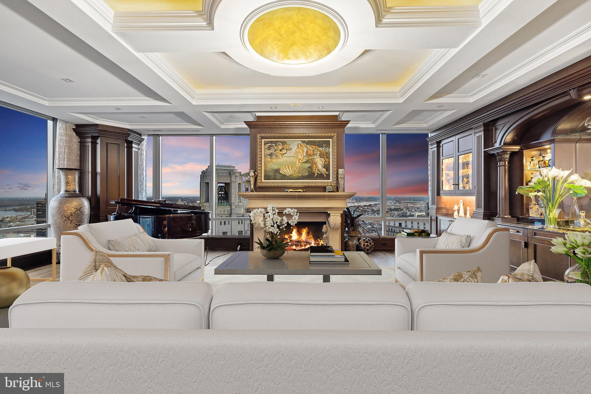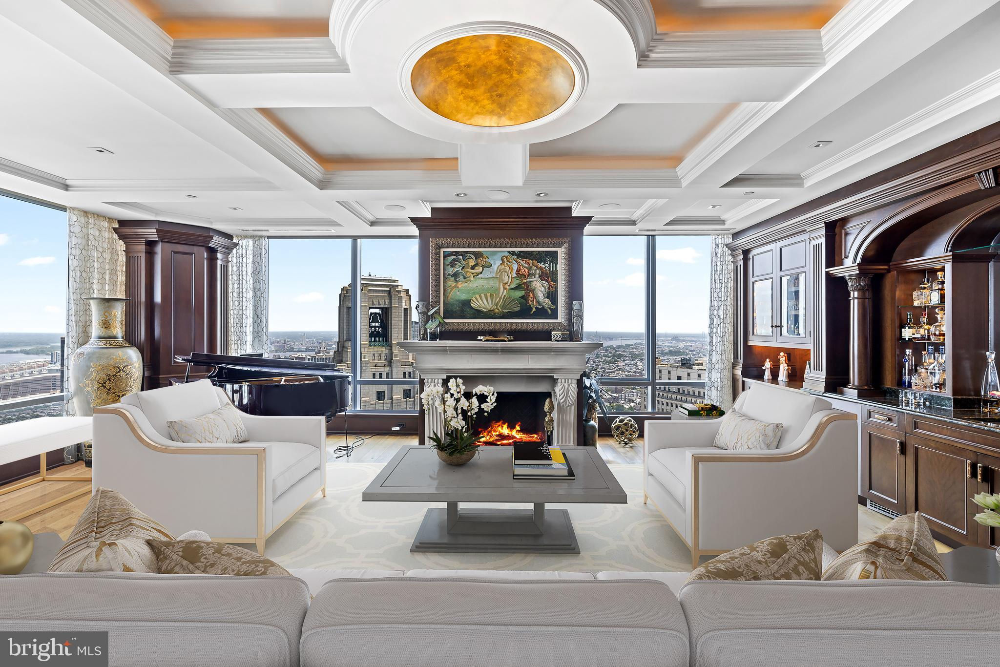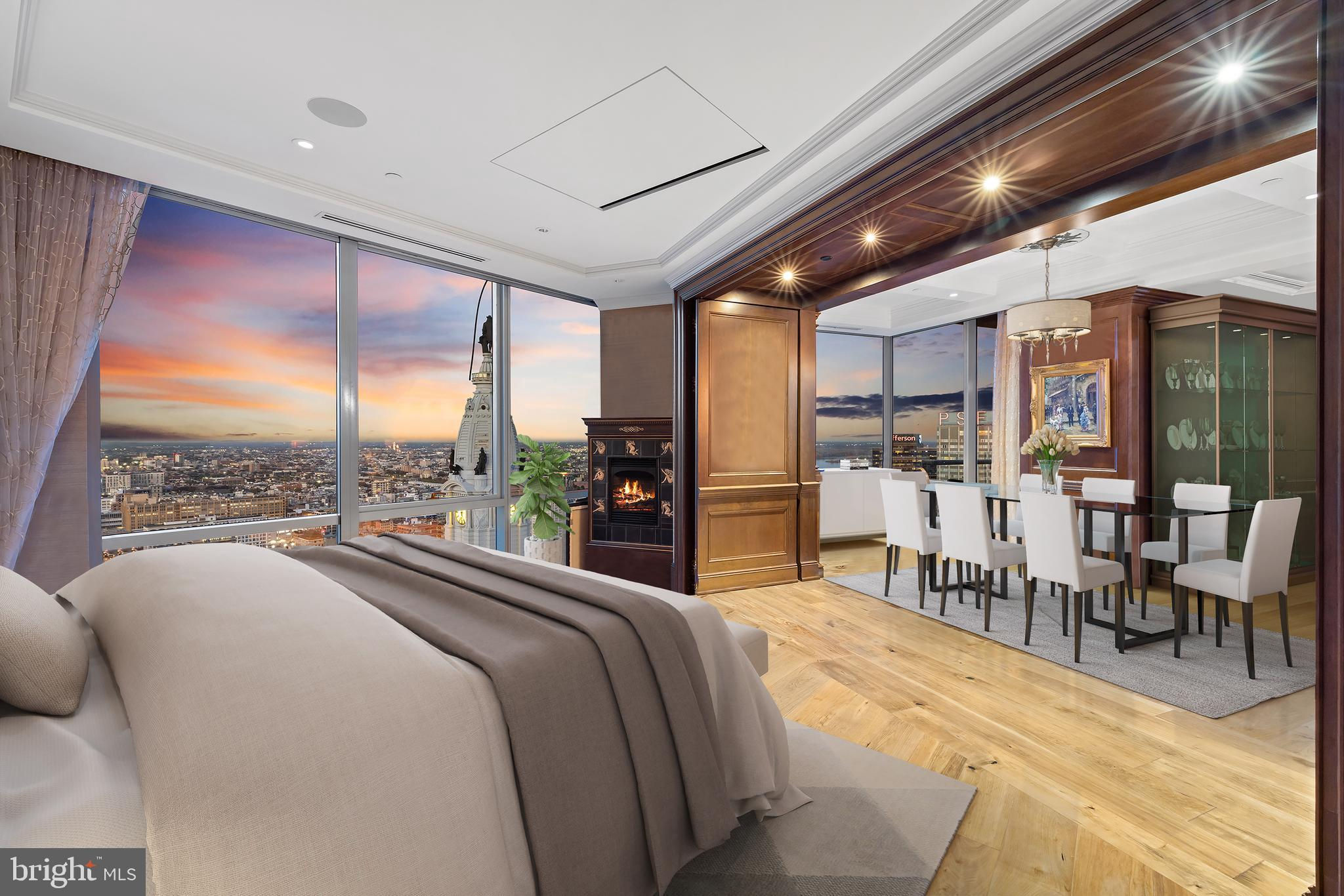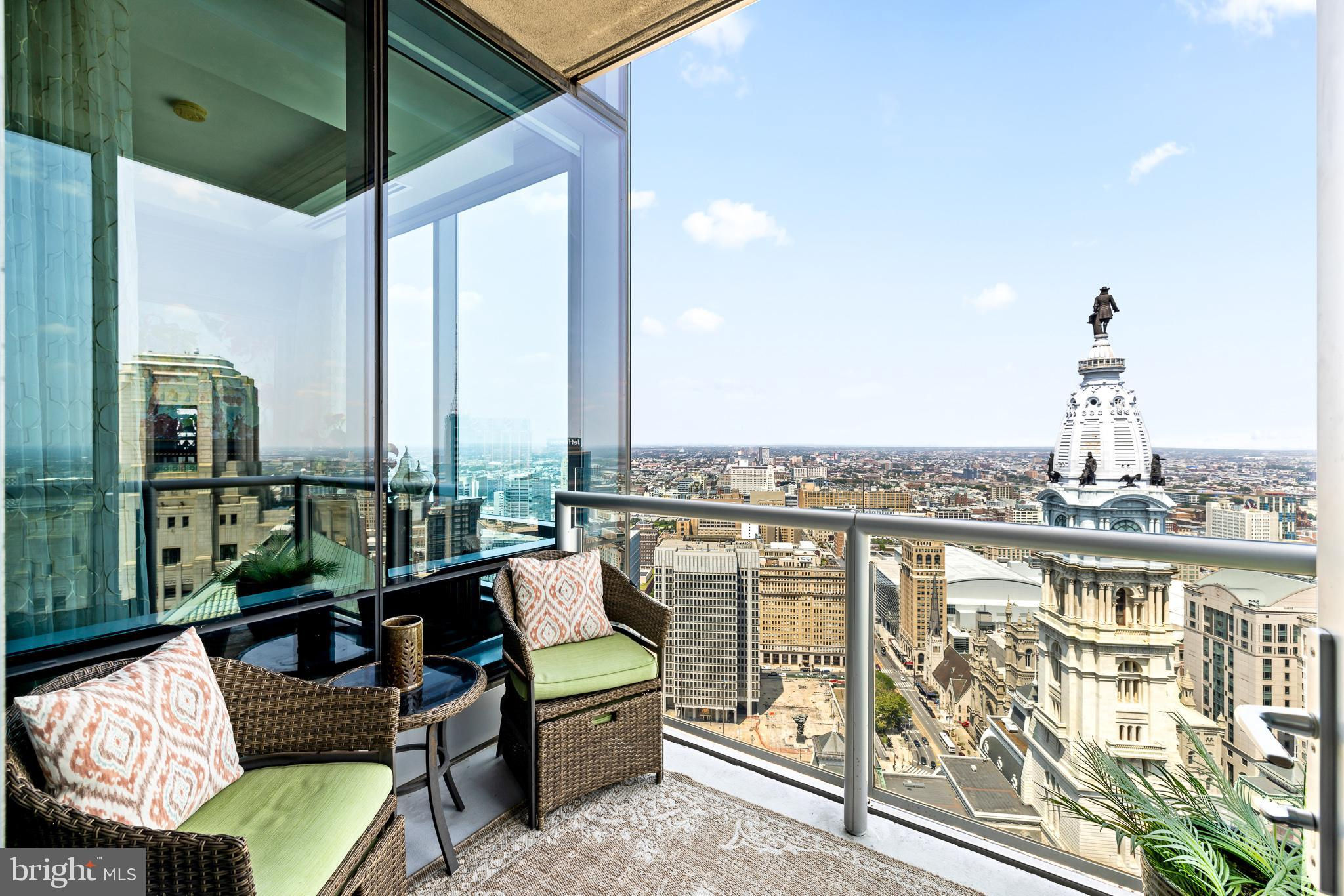 Welcome to a realm where timeless elegance and opulent living converge, unveiling a masterpiece within this exceptional 3,000+ square feet dwelling, gracefully poised on the 43rd floor of The Residences at The Ritz-Carlton. Here, a harmonious fusion of French rococo design and welcoming comfort beckons you to experience the pinnacle of refined living in the heart of Center City. Set against the breathtaking backdrop of City-Hall Tower, the combo unit provides three lavish bedrooms, each accompanied by its own en-suite full bathroom, as well as an additional half bathroom in the unit. To add, the unit includes two car parking spaces. The open layout has been artfully curated to maximize every inch of its design, seamlessly integrating an office space, a glass-enclosed wine cellar, and a captivating balcony that offers breathtaking views extending all the way to the Delaware River. Embark on a culinary journey within the gourmet chef’s kitchen. Adorned with an impressive ensemble of top-tier appliances, including Sub Zero, Wolf, Bosche, and Capital, this culinary sanctuary is the embodiment of excellence. The oversized granite countertop is not only a visual masterpiece but also a functional centerpiece, inviting you to craft and create with ease. Step into the living and dining area, seamlessly connected to the grand kitchen, where bespoke built-ins adorned with a wet bar and custom wooden cabinetry stand as a testament to meticulous craftsmanship and attention to detail, all while enjoying the city skyline views. The primary suite, strategically positioned adjacent to the living room through accordion-style doors unfold to reveal a paneled gallery wall, where the skyline views become a living work of art. Indulgence reaches its zenith in the primary bath, draped in honey onyx imported from South America. A sprawling bath and an expansive steam shower adorned with an impressive 10 controls create a haven of personalized spa luxury. Within The Ritz Carlton Residences Philadelphia, an entire floor of meticulously renovated amenities awaits the residents. A state-of-the art fitness center, indoor pool with locker rooms, yoga room, media screening room, resident lounge, wrap around terrace, and dog run, as well as a gated garden park with serene waterfall, resident only access to The Ritz Carlton Hotel, and use of a chauffeur driven Mercedes S-Class, valet service, and electronic charging stations, all provided with unparalleled service.