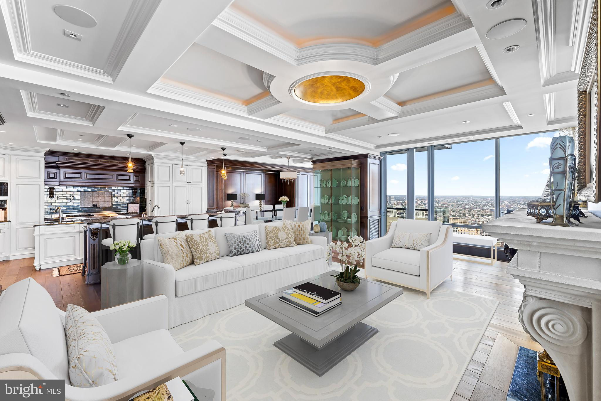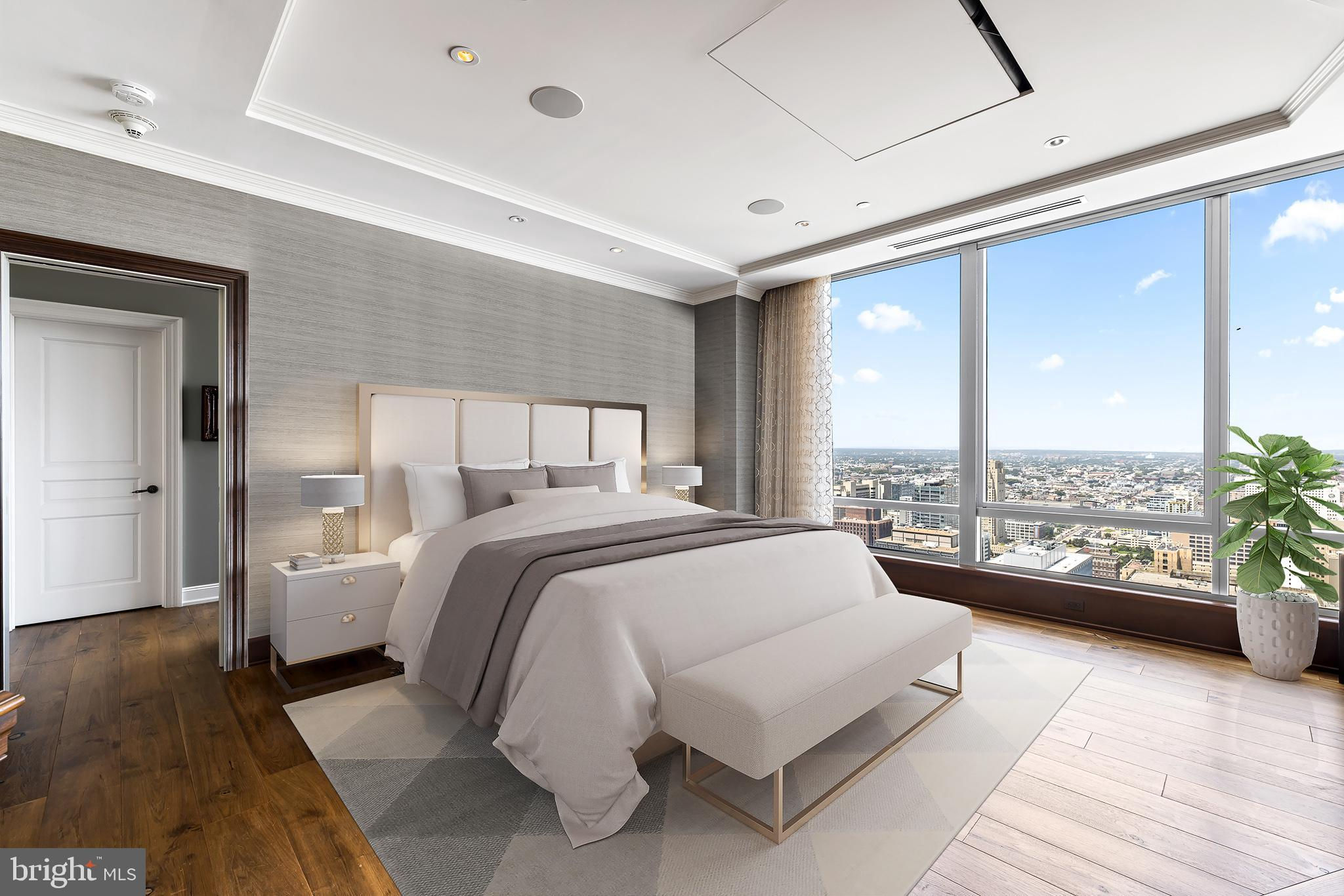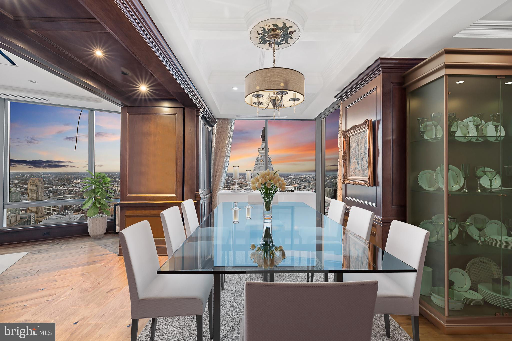 Welcome to a realm where timeless elegance and opulent living converge, unveiling a masterpiece within this exceptional 3,000+ square feet dwelling, gracefully poised on the 43rd floor of The Residences at The Ritz-Carlton. Here, a harmonious fusion of French rococo design and welcoming comfort beckons you to experience the pinnacle of refined living in the heart of Center City. Set against the breathtaking backdrop of City-Hall Tower, the combo unit provides three lavish bedrooms, each accompanied by its own en-suite full bathroom, as well as an additional half bathroom in the unit. To add, the unit includes two car parking spaces. The open layout has been artfully curated to maximize every inch of its design, seamlessly integrating an office space, a glass-enclosed wine cellar, and a captivating balcony that offers breathtaking views extending all the way to the Delaware River. Embark on a culinary journey within the gourmet chef’s kitchen. Adorned with an impressive ensemble of top-tier appliances, including Sub Zero, Wolf, Bosche, and Capital, this culinary sanctuary is the embodiment of excellence. The oversized granite countertop is not only a visual masterpiece but also a functional centerpiece, inviting you to craft and create with ease. Step into the living and dining area, seamlessly connected to the grand kitchen, where bespoke built-ins adorned with a wet bar and custom wooden cabinetry stand as a testament to meticulous craftsmanship and attention to detail, all while enjoying the city skyline views. The primary suite, strategically positioned adjacent to the living room through accordion-style doors unfold to reveal a paneled gallery wall, where the skyline views become a living work of art. Indulgence reaches its zenith in the primary bath, draped in honey onyx imported from South America. A sprawling bath and an expansive steam shower adorned with an impressive 10 controls create a haven of personalized spa luxury. Within The Ritz Carlton Residences Philadelphia, an entire floor of meticulously renovated amenities awaits the residents. A state-of-the art fitness center, indoor pool with locker rooms, yoga room, media screening room, resident lounge, wrap around terrace, and dog run, as well as a gated garden park with serene waterfall, resident only access to The Ritz Carlton Hotel, and use of a chauffeur driven Mercedes S-Class, valet service, and electronic charging stations, all provided with unparalleled service.