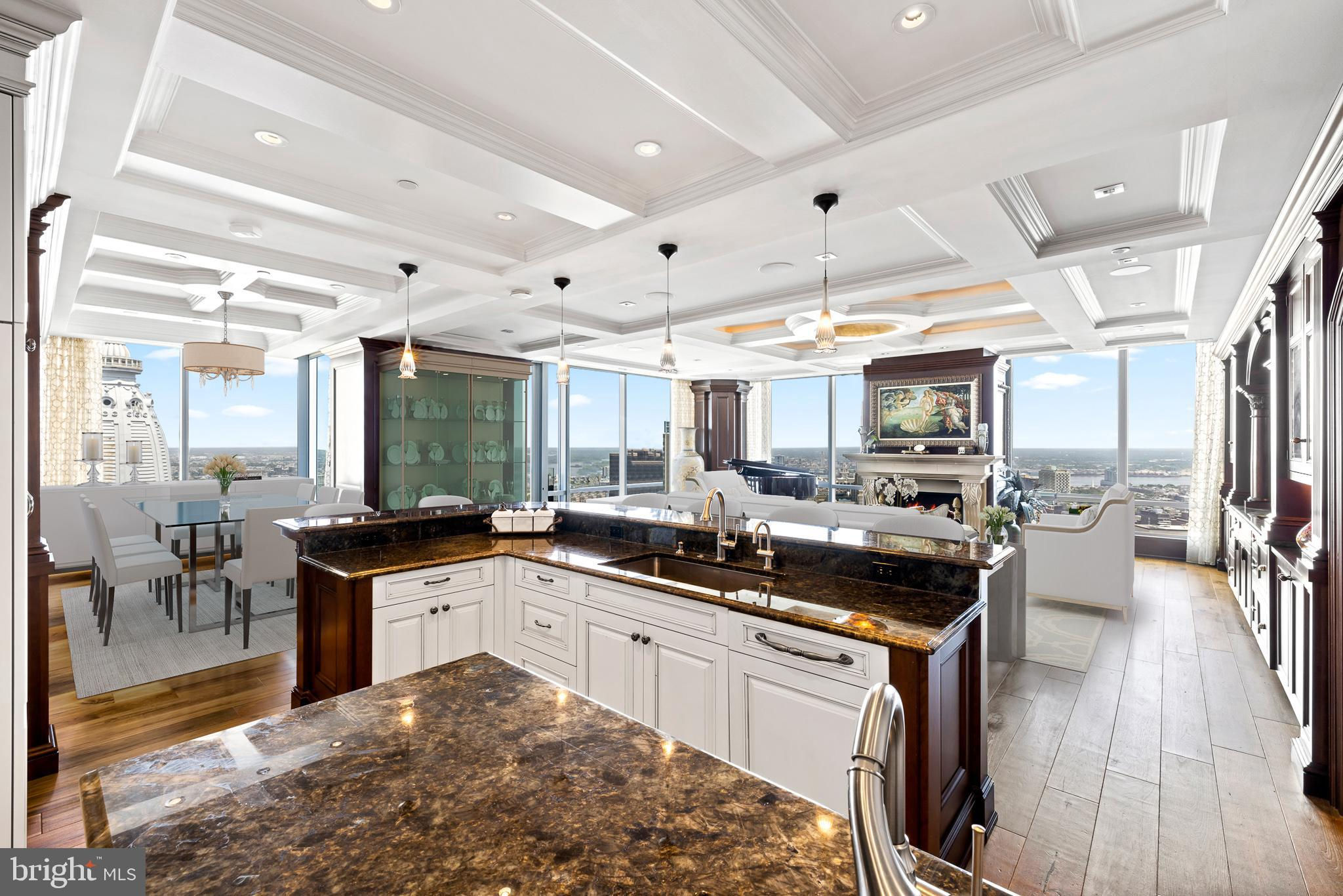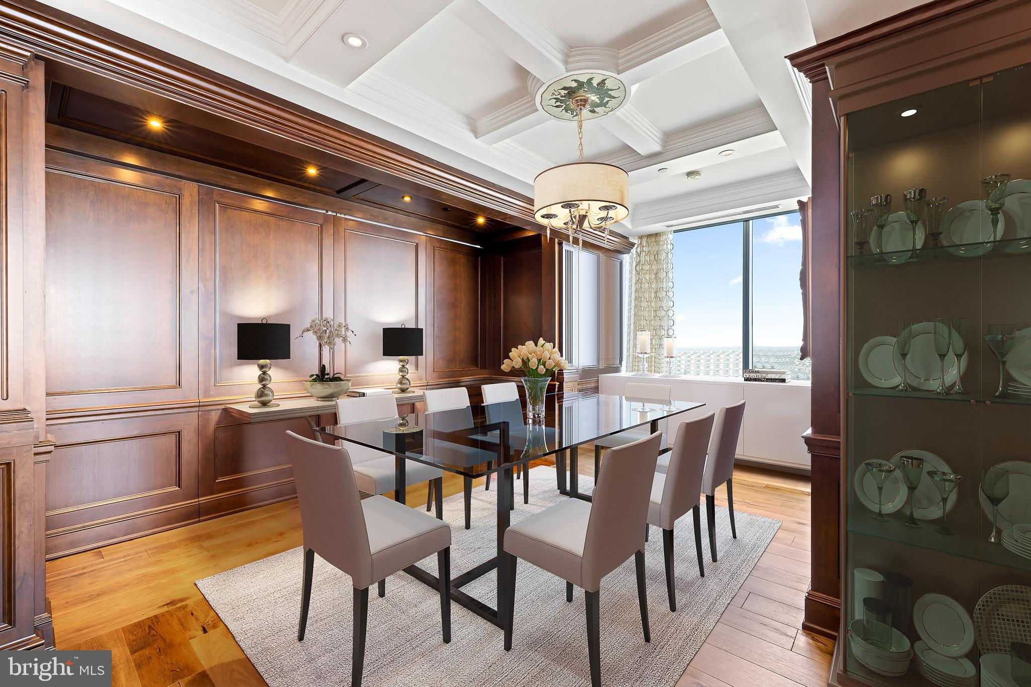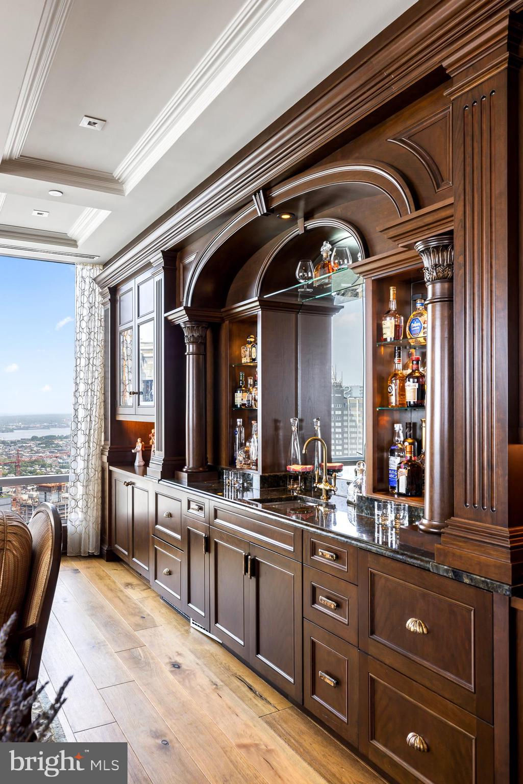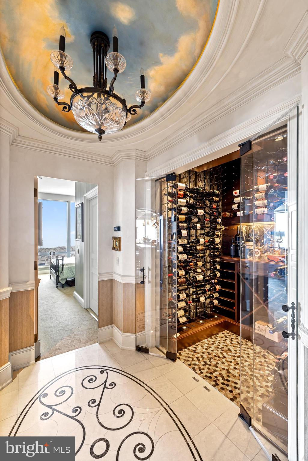 Welcome to a realm where timeless elegance and opulent living converge, unveiling a masterpiece within this exceptional 3,000+ square feet dwelling, gracefully poised on the 43rd floor of The Residences at The Ritz-Carlton. Here, a harmonious fusion of French rococo design and welcoming comfort beckons you to experience the pinnacle of refined living in the heart of Center City. Set against the breathtaking backdrop of City-Hall Tower, the combo unit provides three lavish bedrooms, each accompanied by its own en-suite full bathroom, as well as an additional half bathroom in the unit. To add, the unit includes two car parking spaces. The open layout has been artfully curated to maximize every inch of its design, seamlessly integrating an office space, a glass-enclosed wine cellar, and a captivating balcony that offers breathtaking views extending all the way to the Delaware River. Embark on a culinary journey within the gourmet chef’s kitchen. Adorned with an impressive ensemble of top-tier appliances, including Sub Zero, Wolf, Bosche, and Capital, this culinary sanctuary is the embodiment of excellence. The oversized granite countertop is not only a visual masterpiece but also a functional centerpiece, inviting you to craft and create with ease. Step into the living and dining area, seamlessly connected to the grand kitchen, where bespoke built-ins adorned with a wet bar and custom wooden cabinetry stand as a testament to meticulous craftsmanship and attention to detail, all while enjoying the city skyline views. The primary suite, strategically positioned adjacent to the living room through accordion-style doors unfold to reveal a paneled gallery wall, where the skyline views become a living work of art. Indulgence reaches its zenith in the primary bath, draped in honey onyx imported from South America. A sprawling bath and an expansive steam shower adorned with an impressive 10 controls create a haven of personalized spa luxury. Within The Ritz Carlton Residences Philadelphia, an entire floor of meticulously renovated amenities awaits the residents. A state-of-the art fitness center, indoor pool with locker rooms, yoga room, media screening room, resident lounge, wrap around terrace, and dog run, as well as a gated garden park with serene waterfall, resident only access to The Ritz Carlton Hotel, and use of a chauffeur driven Mercedes S-Class, valet service, and electronic charging stations, all provided with unparalleled service.