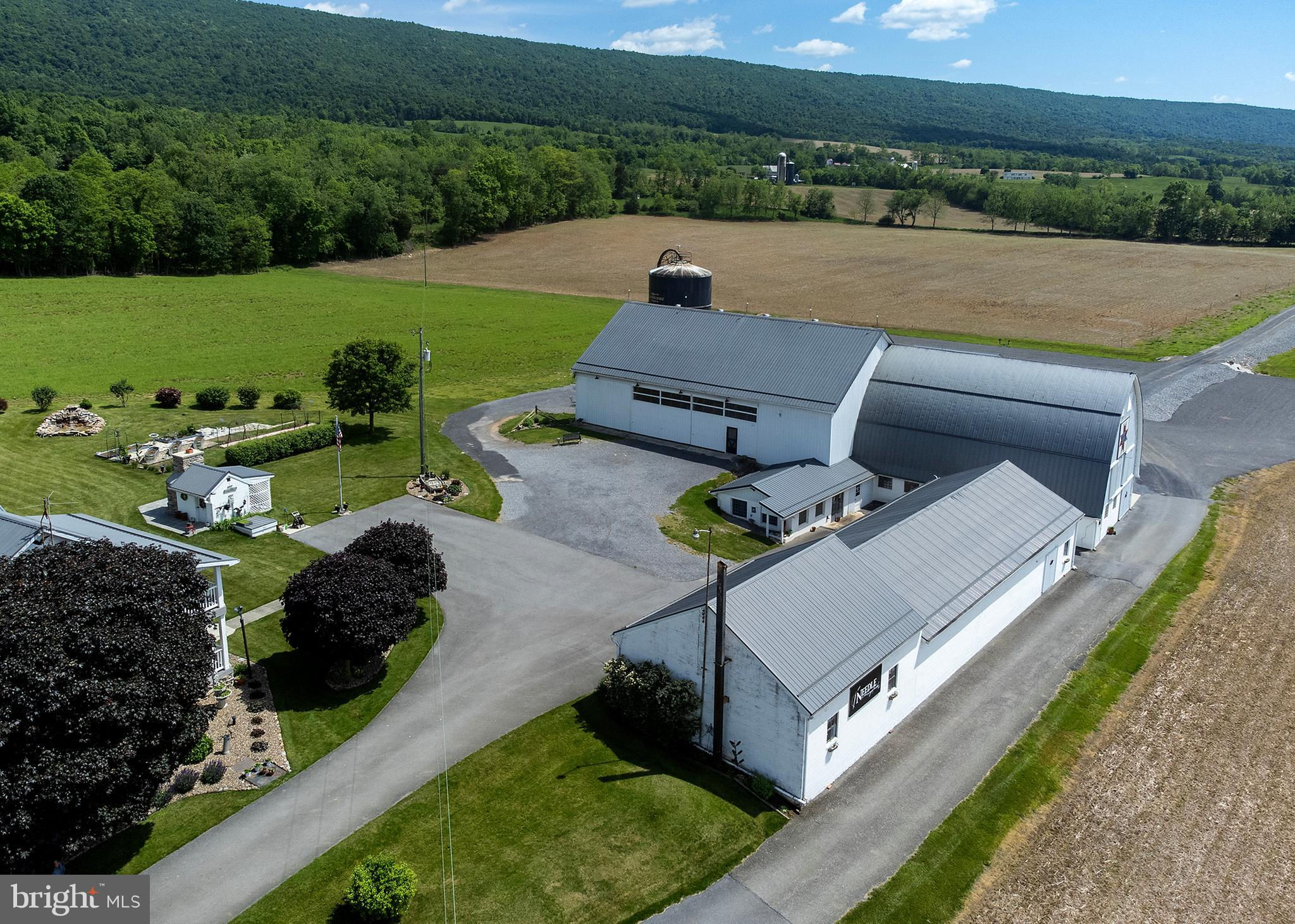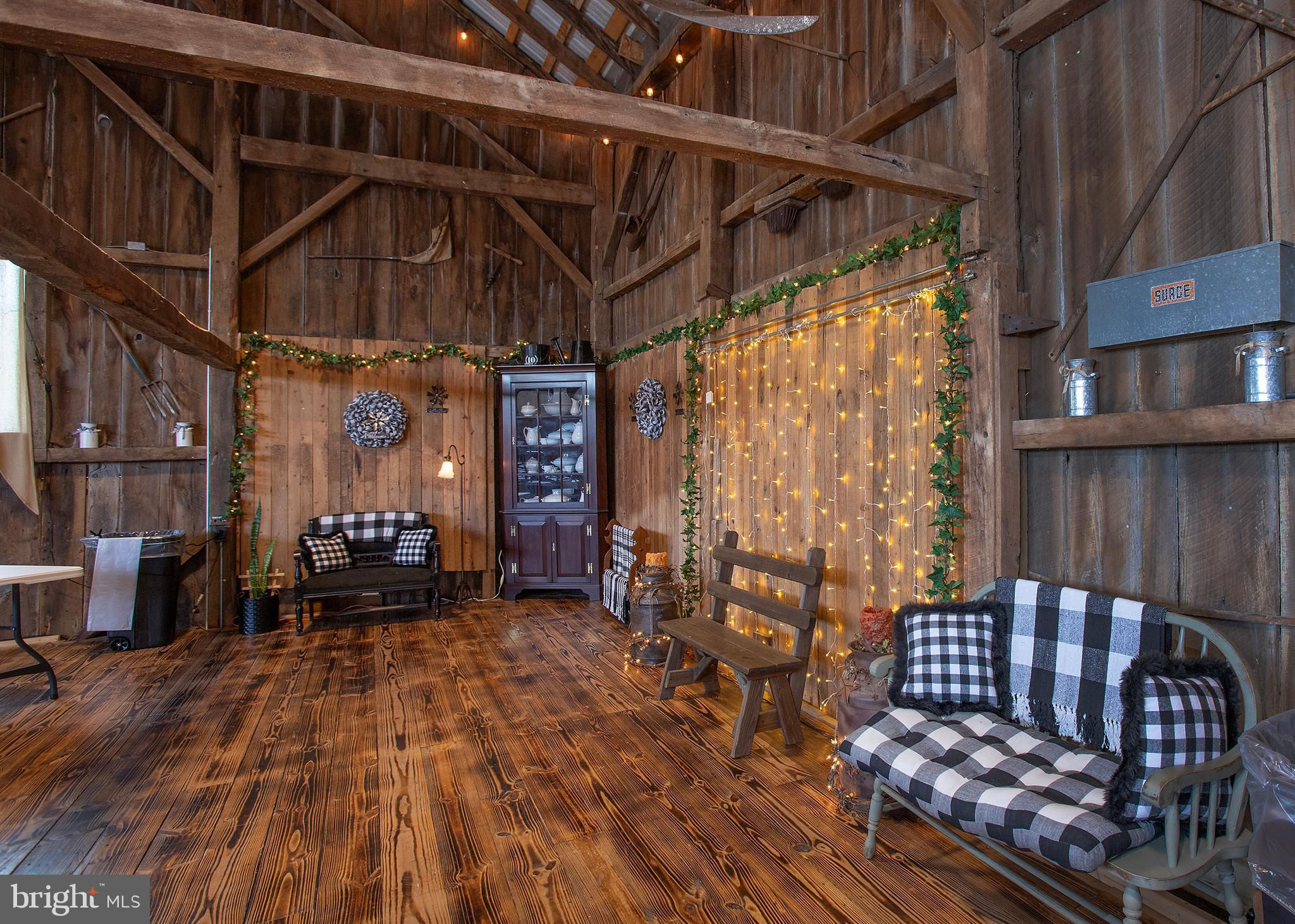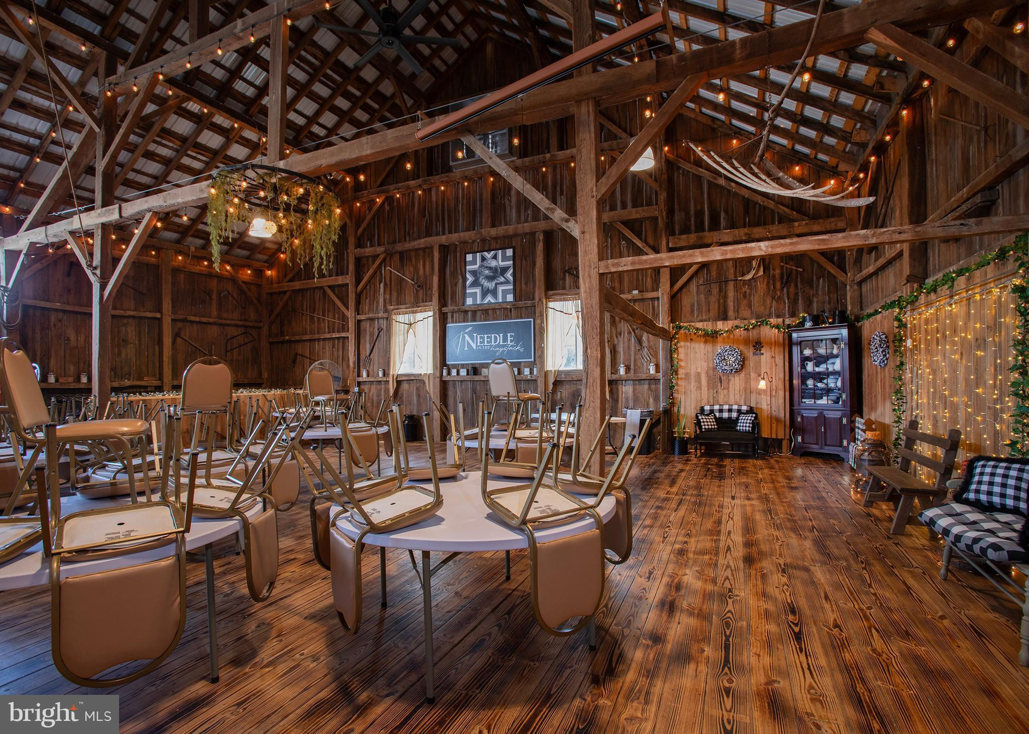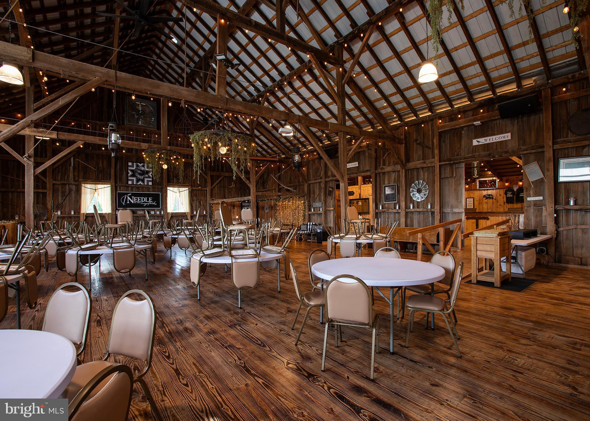 Unique opportunity to own a beautiful and meticulously remodeled farm venue for all occasions: weddings, proms, family gatherings, corporate events, auctions and many others. Needle in the Haystack is a large facility that consists of 4 major rooms. These rooms can be rented individually, or the whole facility to accommodate larger events. This beautiful restored barn venue in the rural setting of Fulton County, PA has been a favorite since it's opening in 2021. The 4,112 square foot original stone farm house was completely remolded in 2012 with attention to detail and historic authenticity. It has geo-thermal heated floors, a beautiful stone patio with ADA ramps, oversized 2 car garage, additional cement entranceway in garage to a full basement with all new upgrades. It is a "New House" with all the character of the original farm house but three times the size. Must see to appreciate (See the house details in the Document section). This working agricultural farmland (215 acres) is currently leased, but could offer a farm to table experience for guests. It is being sold with the farmland or without and is currently being maintained and leased to a local farmer. He occupies a large steel barn building across the street from the venue where he keeps farm equipment and supplies. There are 2 nicely kept mobile homes for guests or for Airbnb. They sit across the street, separate from the venue. There is approximately 25 to 30 acres of wooded area that is not farmed and could easily be made into a camp ground for guests or converted to a private mobile home park for additional revenue - no zoning would prohibit this use. The possibilities are endless. The farm could be used as a vineyard for a winery or distillery. See "Tebo House" in documents for detailed information about the house. See "Needle in the Haystack" webpage link in the virtual tour.
