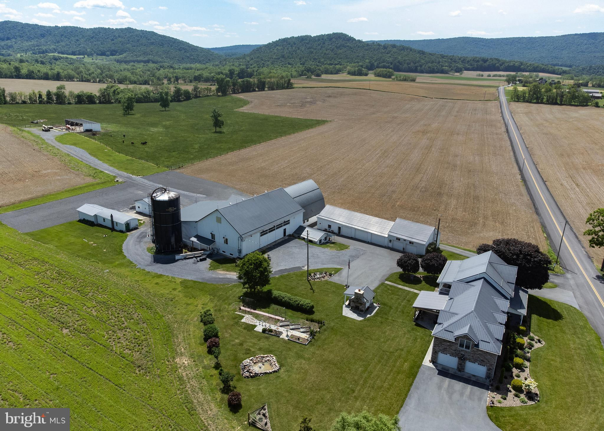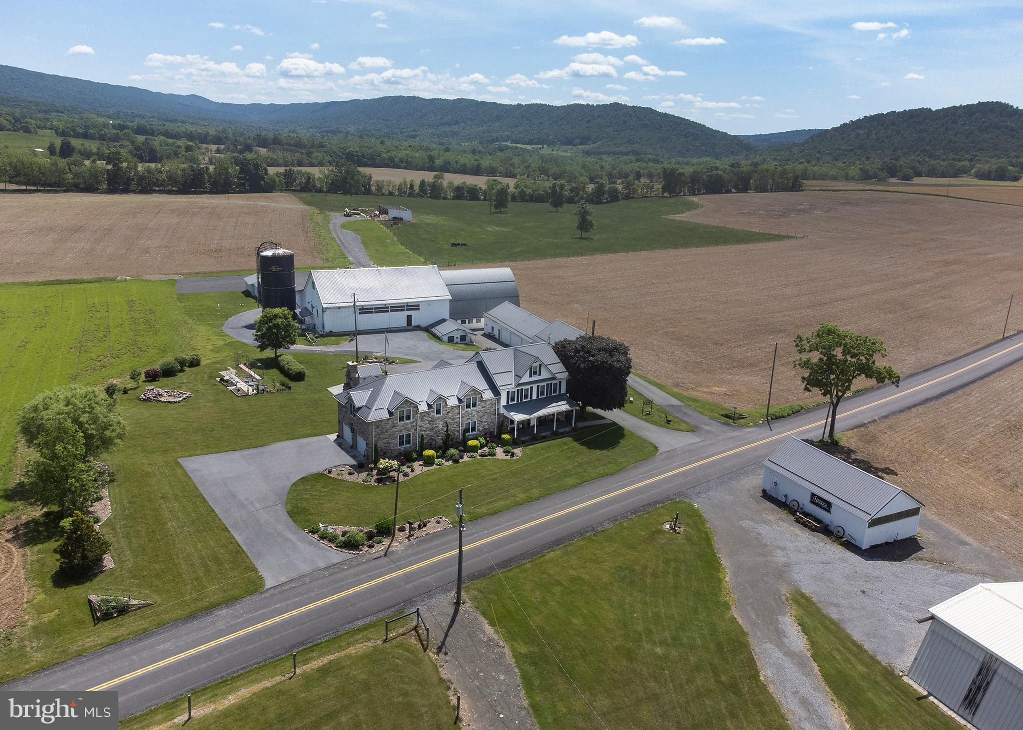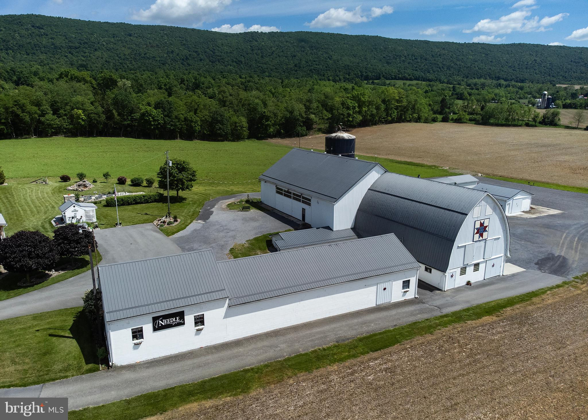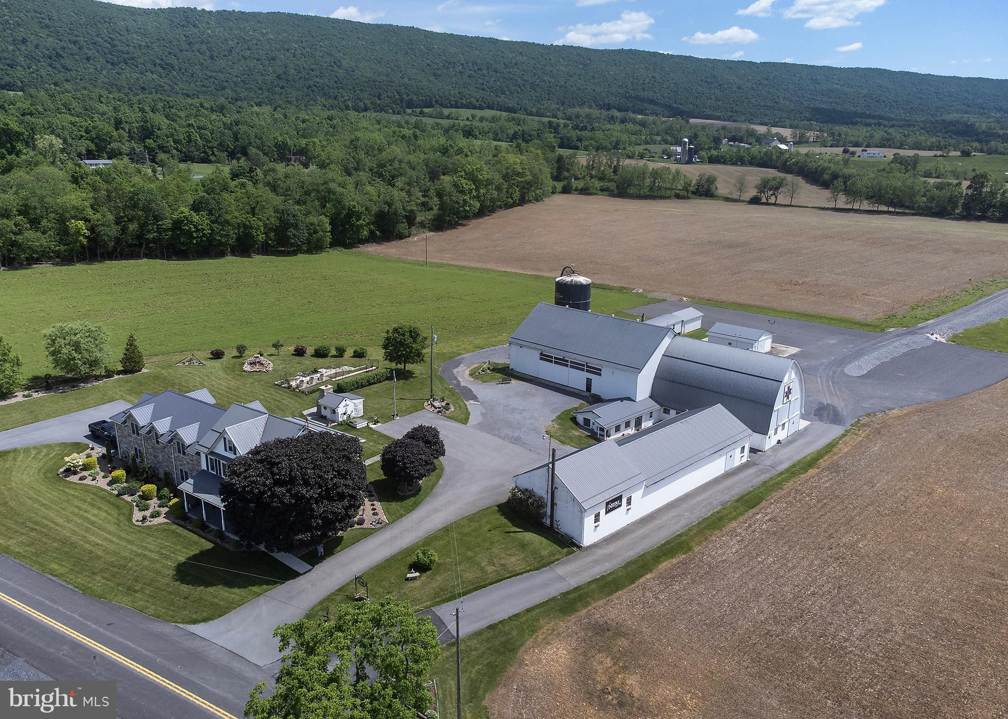 Unique opportunity to own a beautiful and meticulously remodeled farm venue for all occasions: weddings, proms, family gatherings, corporate events, auctions and many others. Needle in the Haystack is a large facility that consists of 4 major rooms. These rooms can be rented individually, or the whole facility to accommodate larger events. This beautiful restored barn venue in the rural setting of Fulton County, PA has been a favorite since it's opening in 2021. The 4,112 square foot original stone farm house was completely remolded in 2012 with attention to detail and historic authenticity. It has geo-thermal heated floors, a beautiful stone patio with ADA ramps, oversized 2 car garage, additional cement entranceway in garage to a full basement with all new upgrades. It is a "New House" with all the character of the original farm house but three times the size. Must see to appreciate (See the house details in the Document section). This working agricultural farmland (215 acres) is currently leased, but could offer a farm to table experience for guests. It is being sold with the farmland or without and is currently being maintained and leased to a local farmer. He occupies a large steel barn building across the street from the venue where he keeps farm equipment and supplies. There are 2 nicely kept mobile homes for guests or for Airbnb. They sit across the street, separate from the venue. There is approximately 25 to 30 acres of wooded area that is not farmed and could easily be made into a camp ground for guests or converted to a private mobile home park for additional revenue - no zoning would prohibit this use. The possibilities are endless. The farm could be used as a vineyard for a winery or distillery. See "Tebo House" in documents for detailed information about the house. See "Needle in the Haystack" webpage link in the virtual tour.