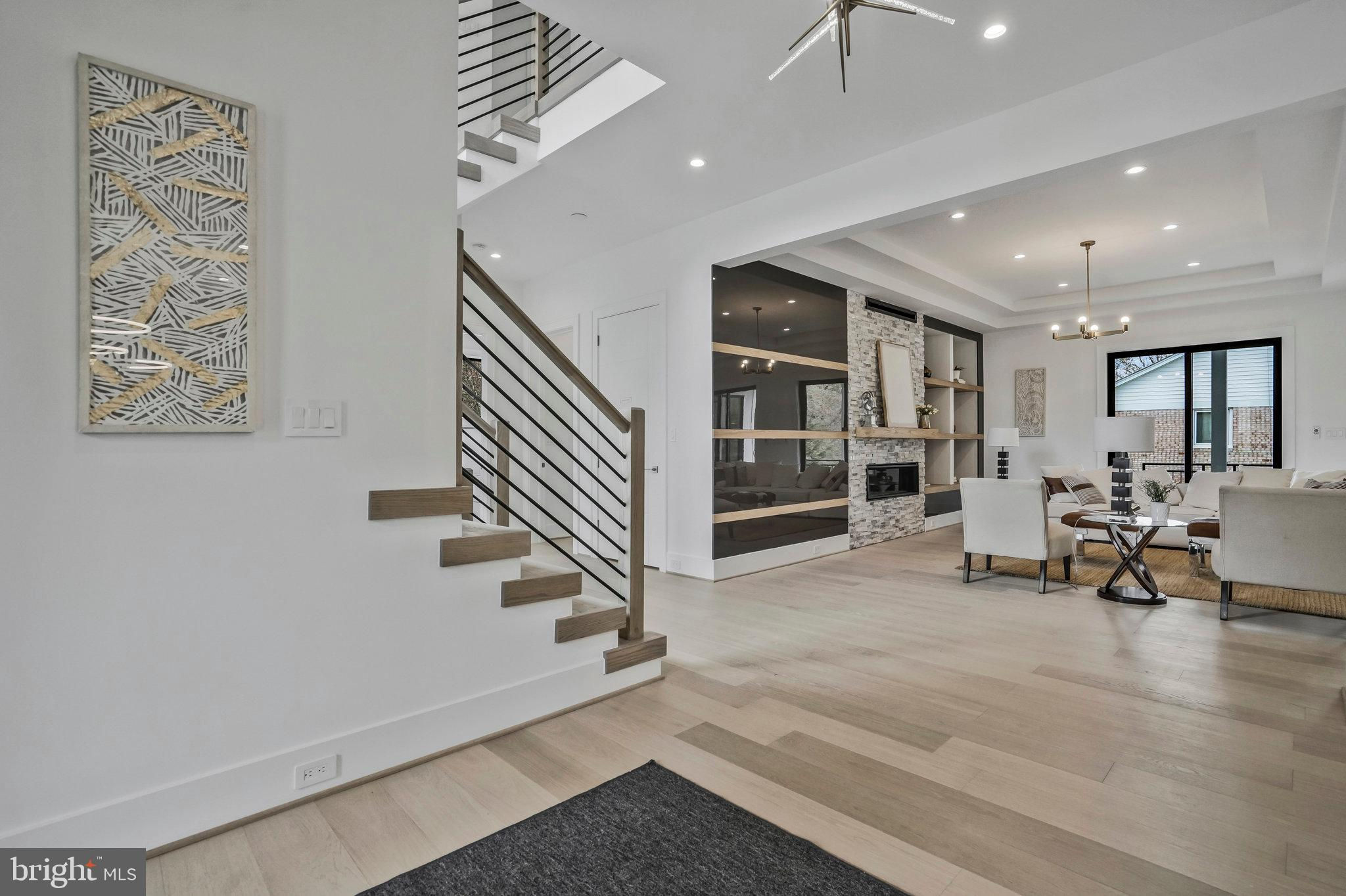 6000 AGENT BONUS WITH A RATIFED OFFER BY AUGUST 15TH.ELEVATOR SHAFT. 4-CAR GARAGE,GARAGE .This distinctive modern home is enveloped in contrast and luxury. With three levels and 6,813 SqFt of living it offers a spacious living environment that combines comfort with a sleek, contemporary design.The entrance sets the tone with its custom-made solid wood door, flanked by side light panels and elegant sconces that beckon to the stylish interior. The foyer open to the second floor guides you inside,the open-plan kitchen and family rooms serve as the home's hub.The kitchen features professional Thermador appliances, including a six-burner gas stove top and double wall oven, white marble counter tops, and two- tiered,white designer cabinetry with under cabinet lighting,accented with black and brushed brass drawer pulls and cabinet knobs. The kitchen island is constructed of marble on three sides,contrasting dark grey cabinetry,prep sink and microwave and dishwasher, pendant lighting, with the same brushed brass accents. The ceilings are tiered, with LED recessed lighting. The family room has an elegant floor to ceiling stone gas fireplace, with a wood mantle,and side shelving.Connectivity to the outdoors is seamless, with French doors leading to a covered porch, perfect for relaxation or entertaining.The asymmetrical fireplace is the clear focal point of this space.There is an additional entrance to the main part of the home through the professionally appointed prep kitchen. The prep kitchen, features a four-burner Bosch gas stove top and a Liebherr refrigerator. The prep kitchen is conveniently located next to the walk-in pantry.The 4-car garage is accessible through the mud room which has a tiled floor and built-in bench and coat rack.An ensuite bedroom on this level offers privacy and luxury,with a floor-to-ceiling tiled shower and custom closets. The second floor landing boasts built-in shelves and an entertainment center,with the shelves' natural finish contrasting against dark painted accents, complemented by under-cabinet lighting. The centerpiece of the second floor is the luxuriously appointed owner's suite. This oversized bedroom features a separate seating area and Anderson Lifestyle black double French doors that open to a large private balcony, ideal for relaxing or intimate dining al fresco. A gas fireplace with a wooden mantel, a tiered ceiling with recessed lighting, crystal tiered chandelier, and a ceiling fan adds both comfort and elegance. The walk-in closets are oversized, complete with built-in shelves and drawers. The luxury extends to the spa bath, which includes a marble floor, dual vanities with smart-controlled heating and an aroma diffuser, a standalone bathtub, and an oversized shower equipped with multiple shower heads, a seamless glass enclosure, a built-in bench, and a steam bath feature for ultimate relaxation. The laundry room is practical yet sophisticated, with tiled flooring, ample cabinetry, and a built-in drying rack. Completing the second floor, all other bedrooms are ensuite, featuring custom walk-in closets and bathrooms with tile floors and marble countertops. The lower level offers a seamless blend of functionality and luxury,ideal for both relaxation and social gatherings. The recreation room serves as the heart of this space, featuring a sophisticated wet bar and a cozy stone fireplace, complemented by plush carpeting and elegant paneling.The media room, with its tiered seating and advanced sound system, promises an immersive cinematic experience. Meanwhile, the additional bedroom and exercise room cater to both comfort and wellness,rounding out a well-appointed lower level designed for modern living. A BONUS ROOM UNDER THE DECK.The architecture of modern homes often reflects a harmony between bold contrasts and luxurious simplicity, and this particular home is a prime example.Ideally located in the Potomac Hills subdivision of McLean and accessible to all major freeways,