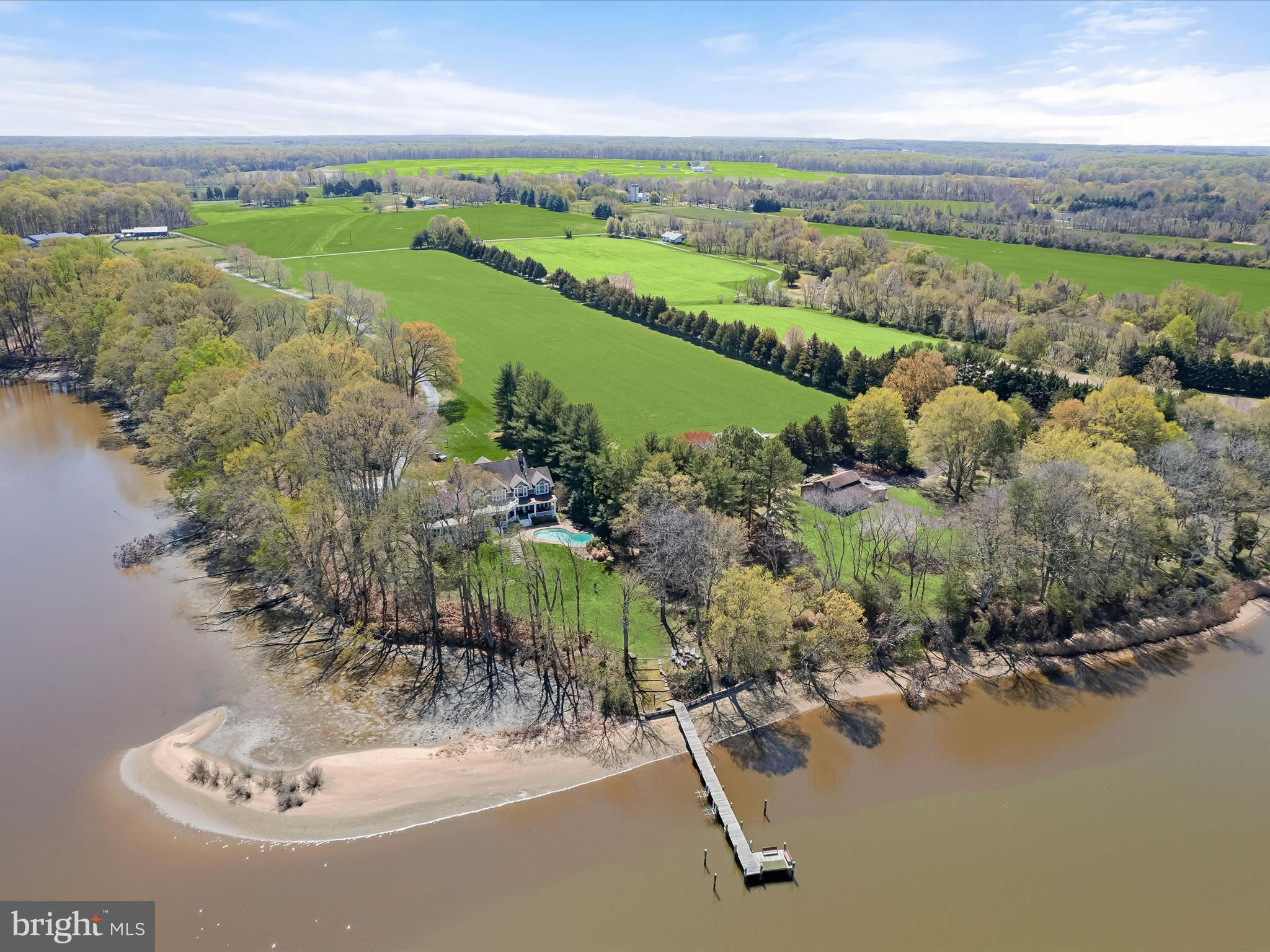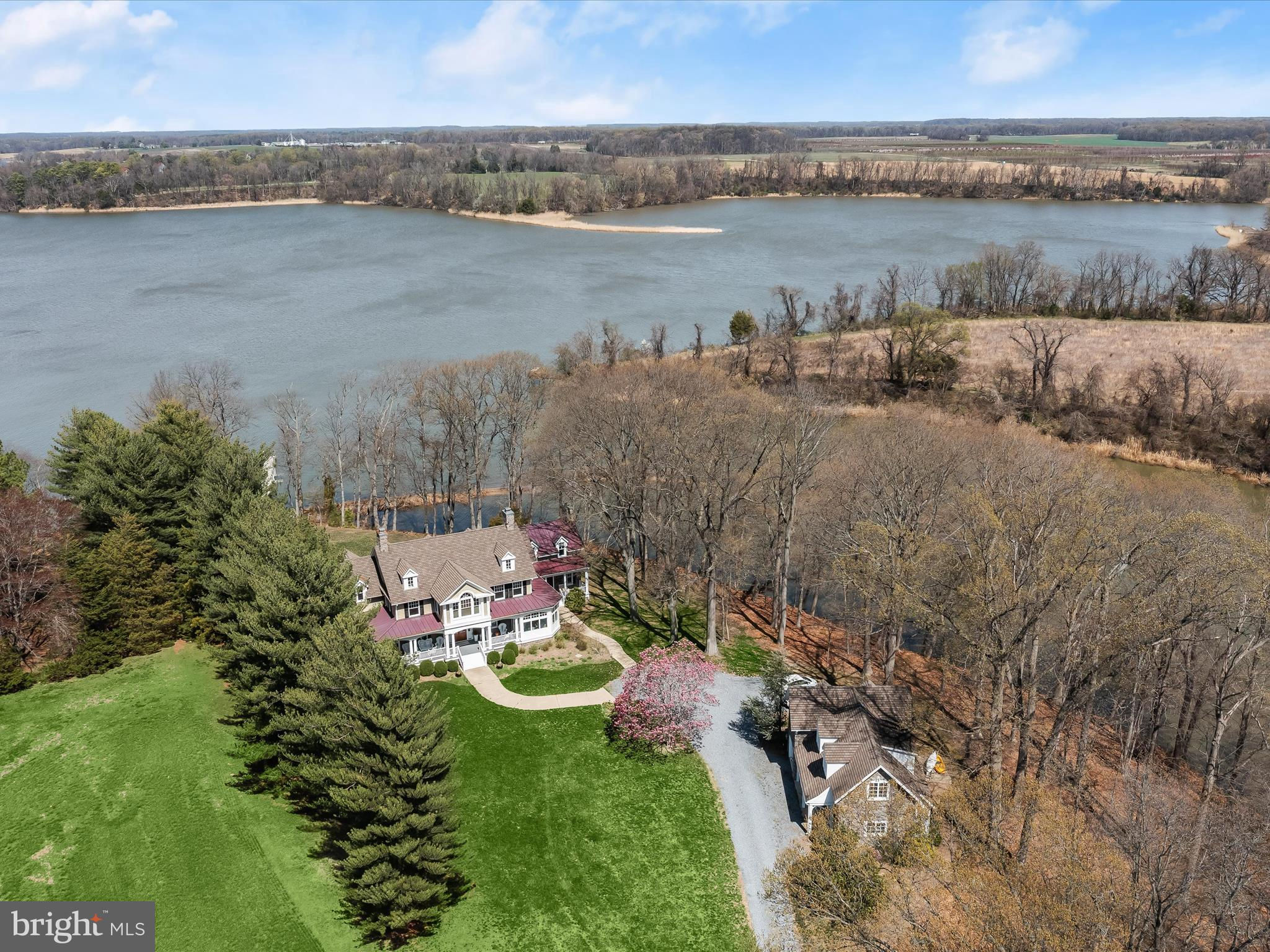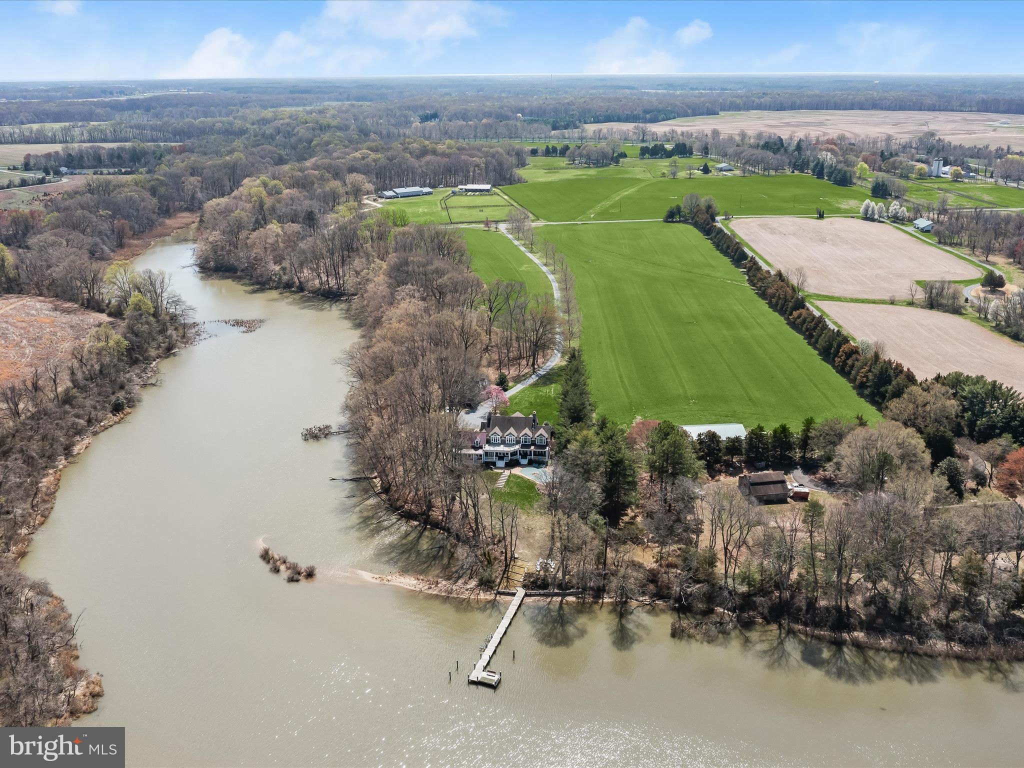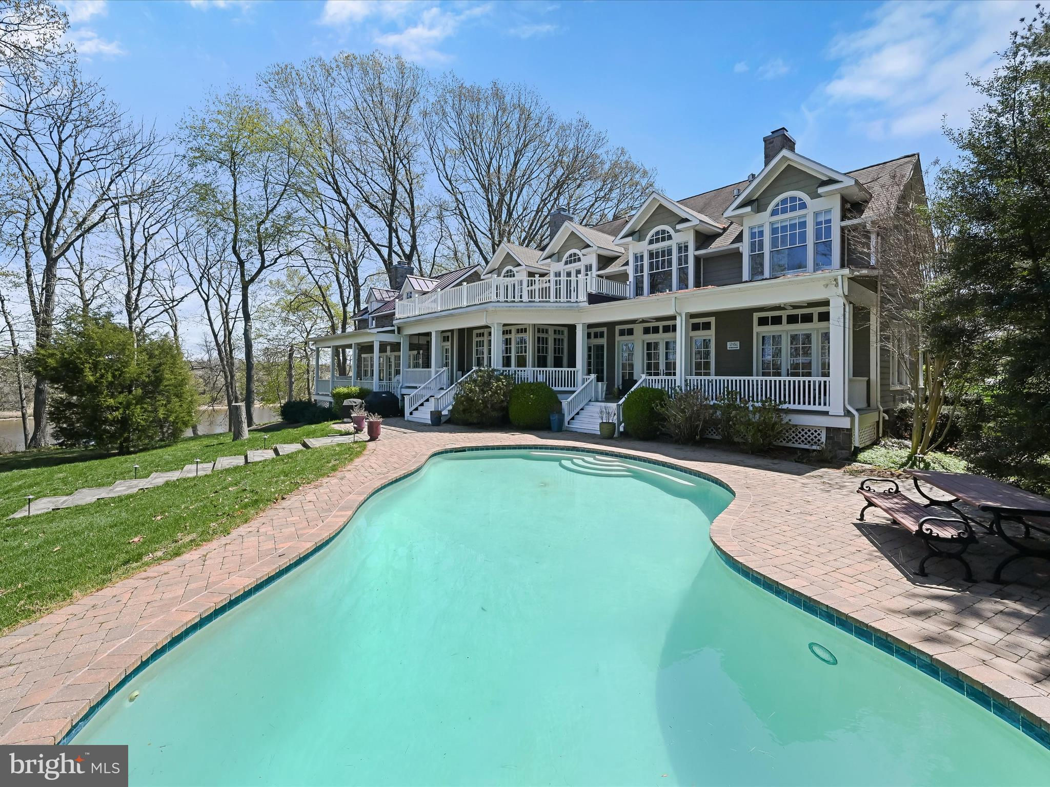 Experience unparalleled waterfront living in this stunning Coastal Farmhouse situated on 13.2 private acres in the desirable Kennersley Farm community. Custom-built as a former builder’s residence, this home showcases the highest quality materials and exceptional craftsmanship throughout. With 8 bedrooms and 6 full baths in the main house, plus a charming 2-bedroom Carriage House with a full kitchen and bath, this estate offers expansive space for family and guests to gather. The detached stone carriage house is located over a 2-car side-loading garage with a conditioned work/storage room. Step inside the main house to find meticulously designed interiors featuring low-maintenance hewn pine hardwood floors, 8-inch wood base, solid wood doors, and raised wood panel wainscoting. The waterside family room is a true showstopper with a coffered ceiling, stone fireplace, a designer mantle, built-in media, and panoramic views. Entertain effortlessly in the central gourmet kitchen with waterside access or enjoy vibrant indoor games in the oversized adjacent recreation room. Later, a quiet vibe will draw you to unwind in the main-level ensuite with an attached sunroom offering access to a serene side deck for a good read or morning coffee. With thoughtful design and attention to comfort and convenience, this home includes both main-level and upper-level laundry rooms, a finished attic bonus bedroom with a sitting area and a half bath, and endless customization possibilities for a future expansion in the unfinished basement with an exterior door and walk-up stair. Outdoor living is paramount with 450 feet of private navigable waterfront along Southeast Creek and views of the Chester River. A private dock equipped with water, electric service, 2 slips, and 2 ski lifts makes boating fun and accessible. Enjoy summer days by the waterside saltwater pool, complete with a paver patio, diving rock, and a 10-foot diving well. Evenings can be spent by the waterside stone fire pit or on the tiered covered porch and upper balcony overlooking the water. Nature enthusiasts will appreciate the natural shoreline, kayak launch, mature trees, and the presence of mated bald eagles. Professional landscaping and outdoor lighting enhance the estate’s beauty, while a private lane with a security alarm ensures seclusion. Perfectly situated near Kennersley Point Marina and other nearby marinas, this location offers convenient access to Chestertown, Rock Hall, and Annapolis by boat, as well as MD 213, Rte-50, and Rte-301 by car. This fully furnished home is an entertainer's dream and a rare waterfront oasis—schedule your private tour today!