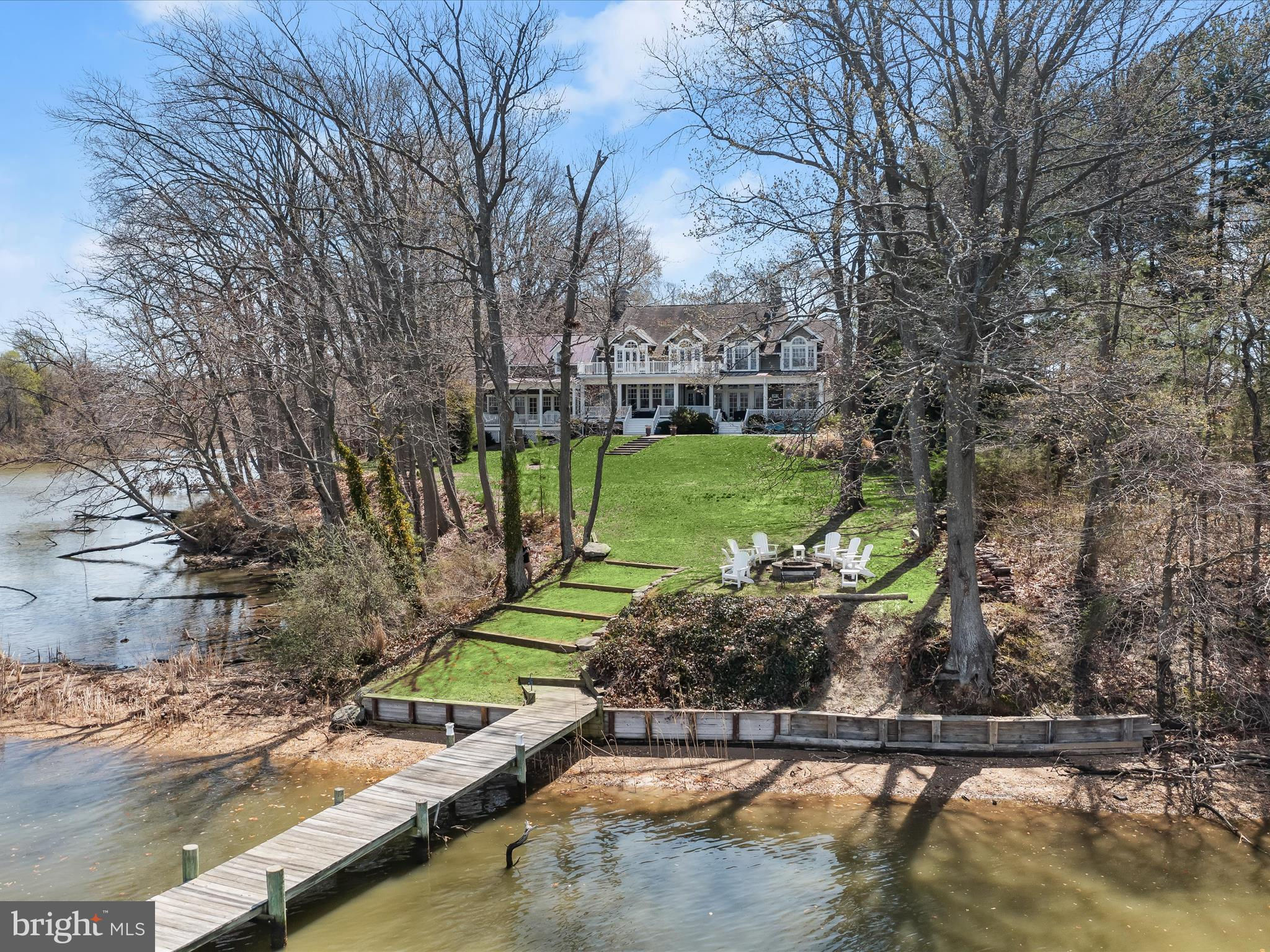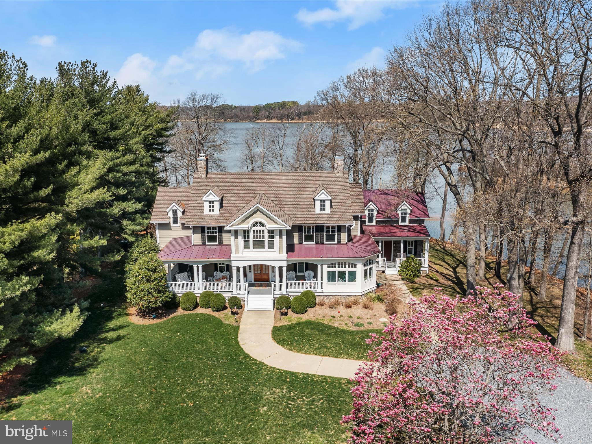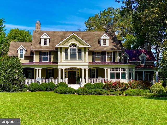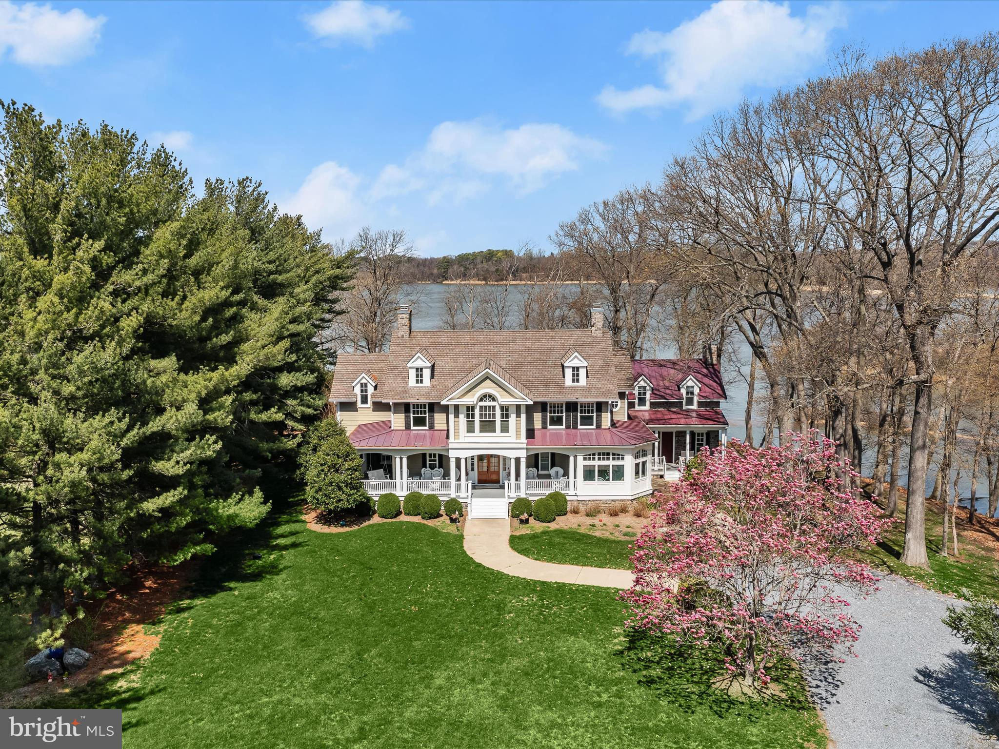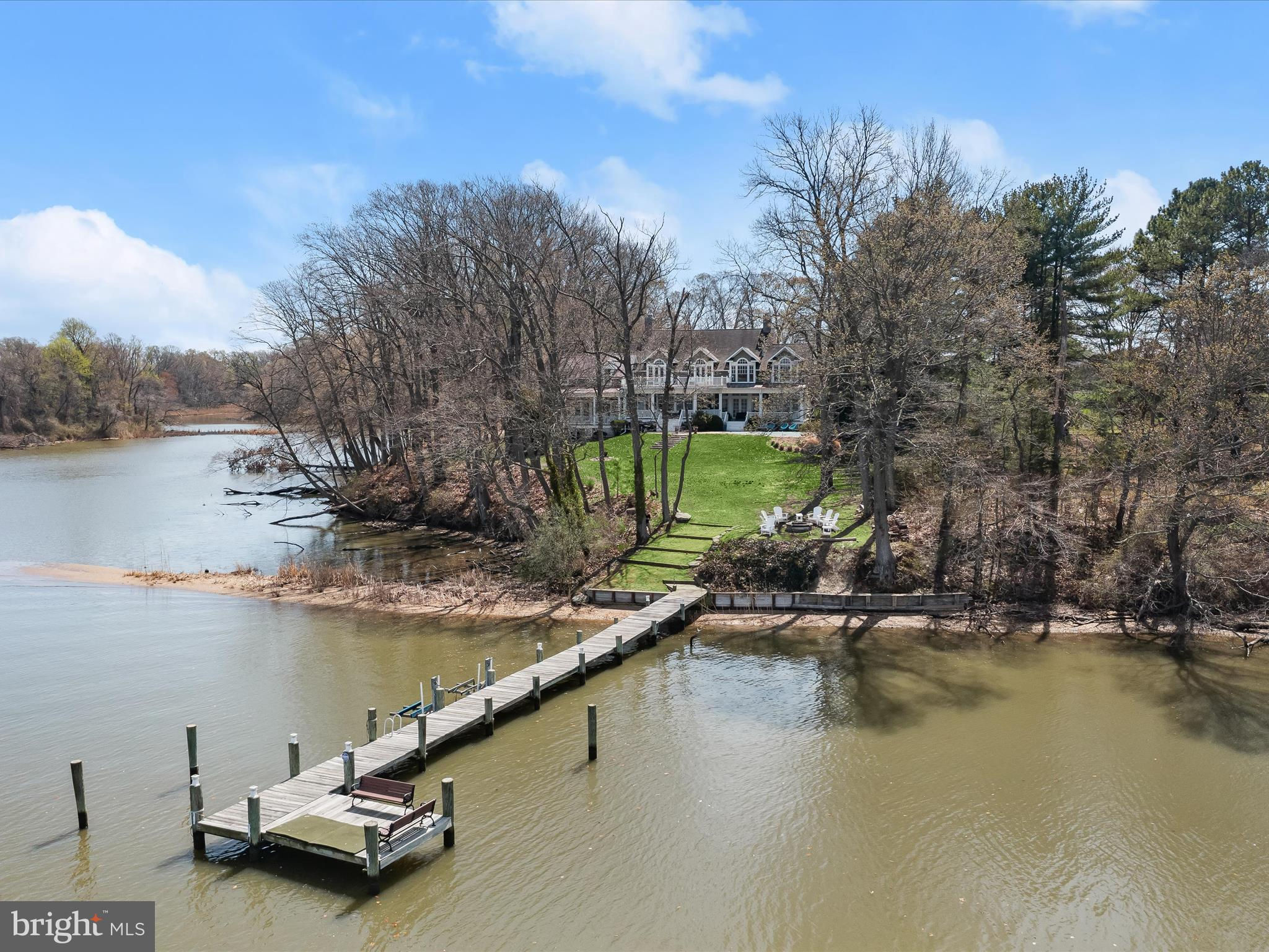 Experience unparalleled waterfront living in this stunning Coastal Farmhouse situated on 13.2 private acres in the desirable Kennersley Farm community. Custom-built as a former builder’s residence, this home showcases the highest quality materials and exceptional craftsmanship throughout. With 8 bedrooms and 6 full baths in the main house, plus a charming 2-bedroom Carriage House with a full kitchen and bath, this estate offers expansive space for family and guests to gather. The detached stone carriage house is located over a 2-car side-loading garage with a conditioned work/storage room. Step inside the main house to find meticulously designed interiors featuring low-maintenance hewn pine hardwood floors, 8-inch wood base, solid wood doors, and raised wood panel wainscoting. The waterside family room is a true showstopper with a coffered ceiling, stone fireplace, a designer mantle, built-in media, and panoramic views. Entertain effortlessly in the central gourmet kitchen with waterside access or enjoy vibrant indoor games in the oversized adjacent recreation room. Later, a quiet vibe will draw you to unwind in the main-level ensuite with an attached sunroom offering access to a serene side deck for a good read or morning coffee. With thoughtful design and attention to comfort and convenience, this home includes both main-level and upper-level laundry rooms, a finished attic bonus bedroom with a sitting area and a half bath, and endless customization possibilities for a future expansion in the unfinished basement with an exterior door and walk-up stair. Outdoor living is paramount with 450 feet of private navigable waterfront along Southeast Creek and views of the Chester River. A private dock equipped with water, electric service, 2 slips, and 2 ski lifts makes boating fun and accessible. Enjoy summer days by the waterside saltwater pool, complete with a paver patio, diving rock, and a 10-foot diving well. Evenings can be spent by the waterside stone fire pit or on the tiered covered porch and upper balcony overlooking the water. Nature enthusiasts will appreciate the natural shoreline, kayak launch, mature trees, and the presence of mated bald eagles. Professional landscaping and outdoor lighting enhance the estate’s beauty, while a private lane with a security alarm ensures seclusion. Perfectly situated near Kennersley Point Marina and other nearby marinas, this location offers convenient access to Chestertown, Rock Hall, and Annapolis by boat, as well as MD 213, Rte-50, and Rte-301 by car. This fully furnished home is an entertainer's dream and a rare waterfront oasis—schedule your private tour today!