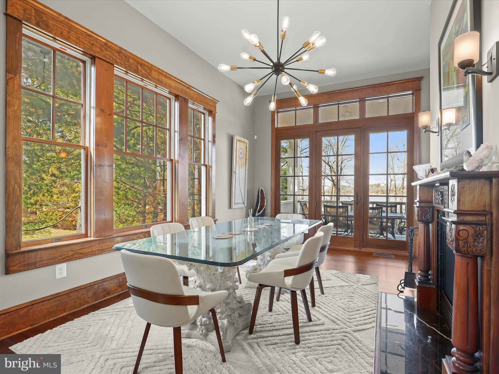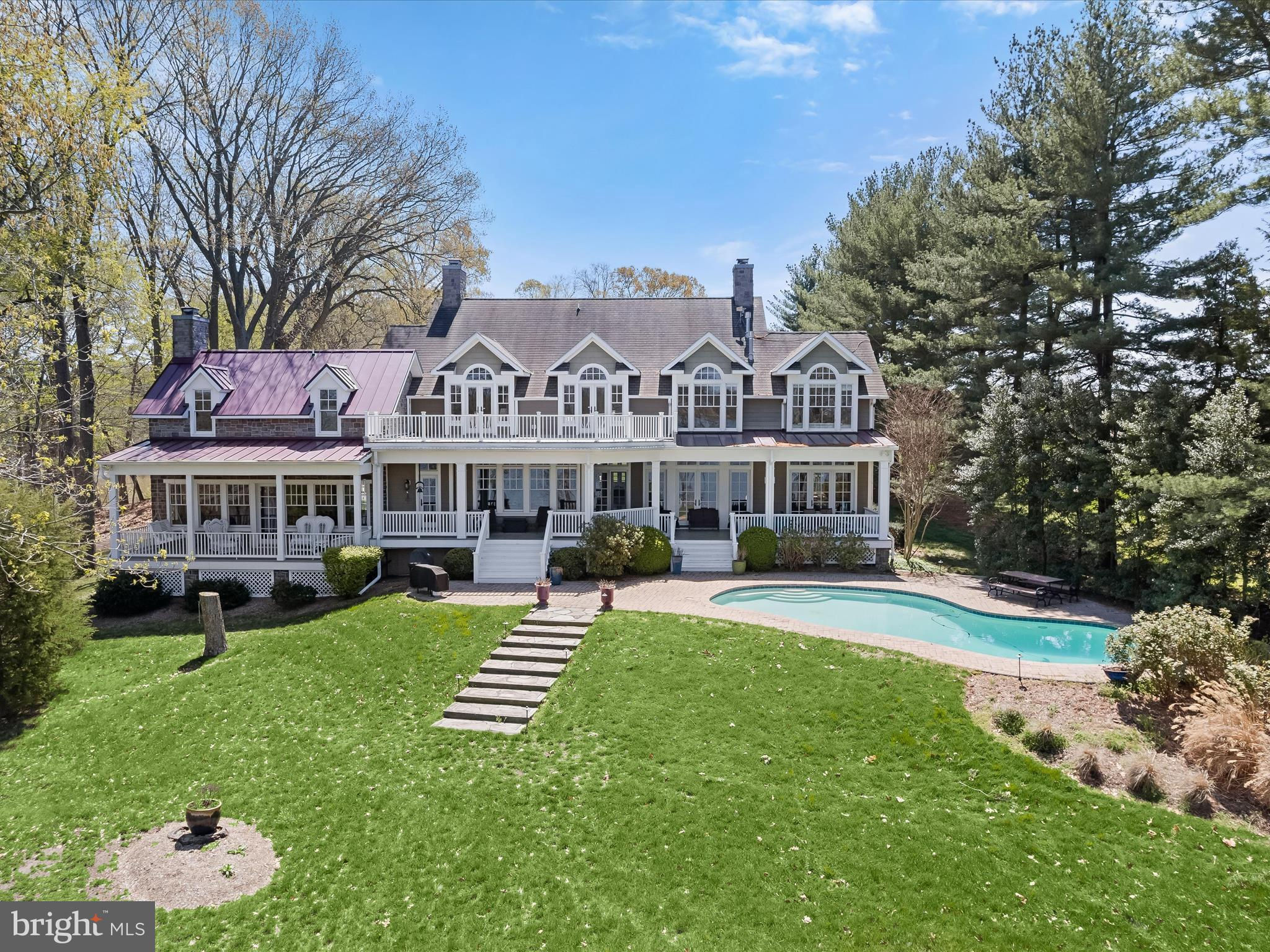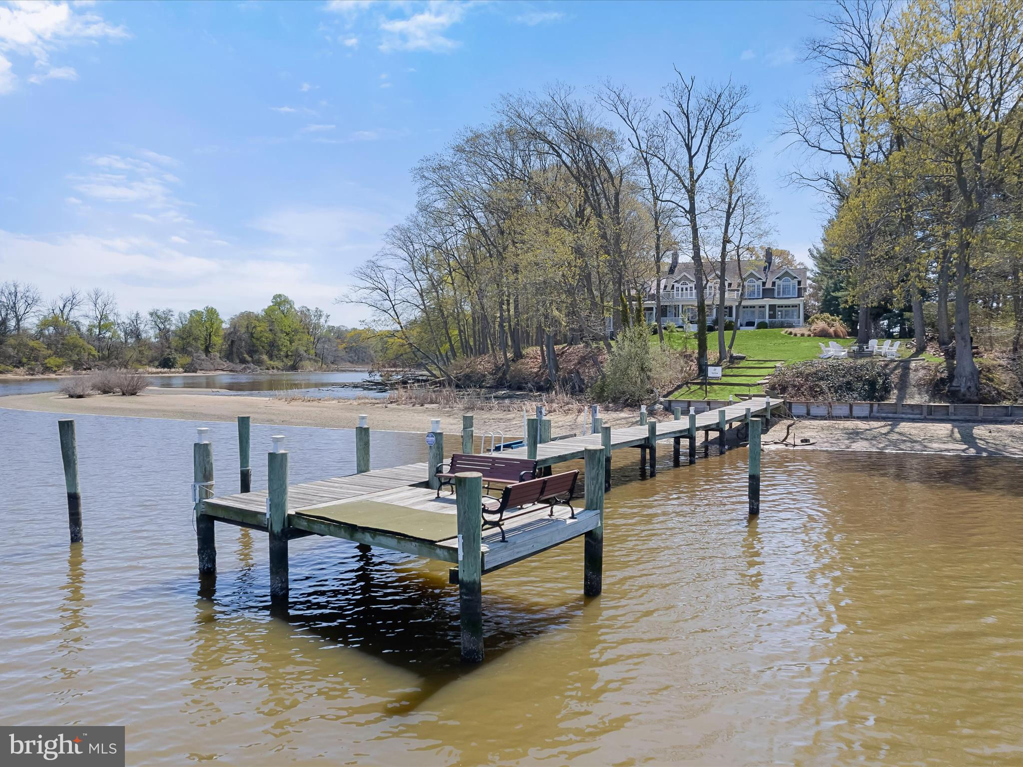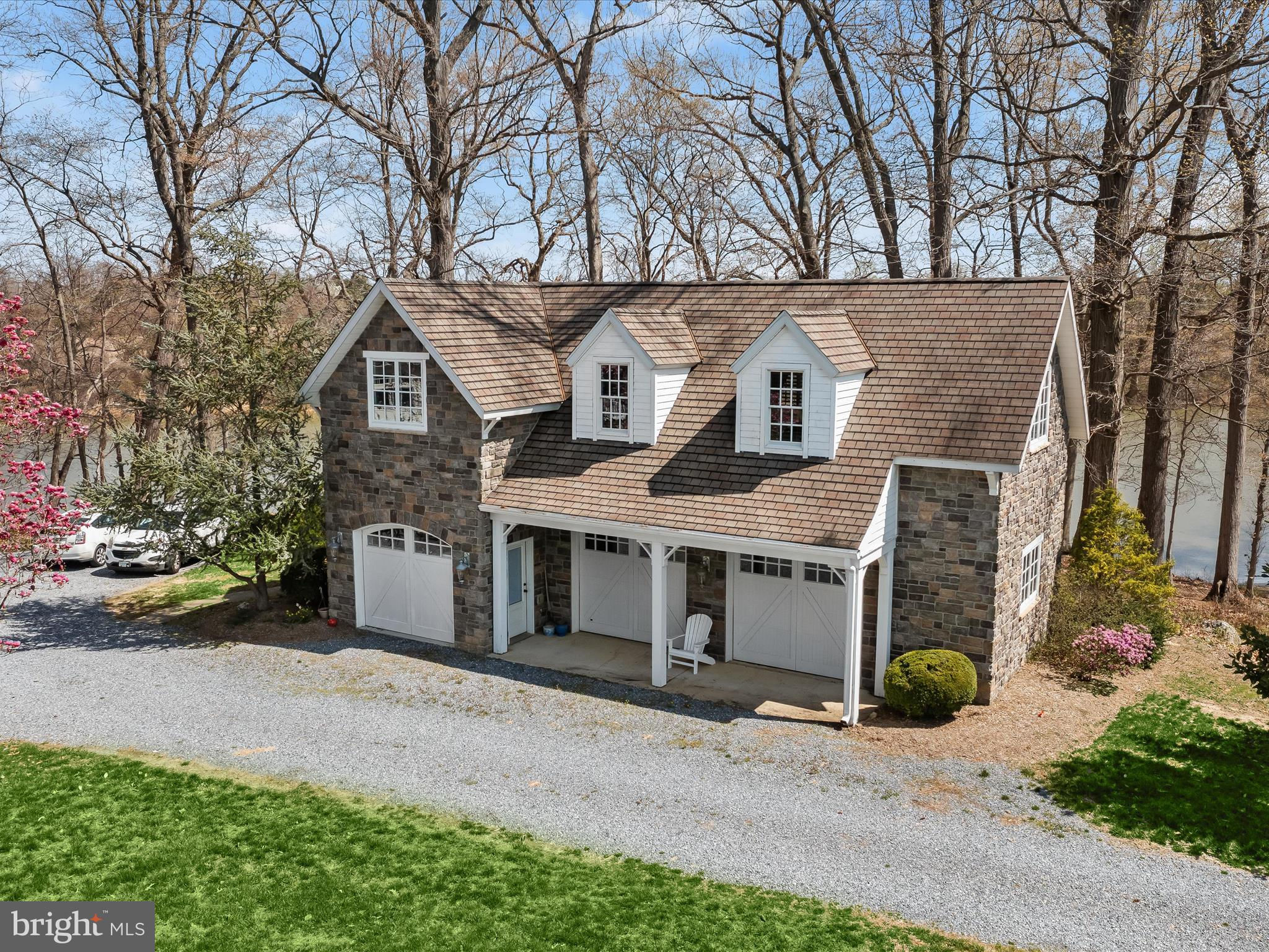Experience unparalleled waterfront living in this stunning Coastal Farmhouse situated on 13.2 private acres in the desirable Kennersley Farm community. Custom-built as a former builder’s residence, this home showcases the highest quality materials and exceptional craftsmanship throughout. With 8 bedrooms and 6 full baths in the main house, plus a charming 2-bedroom Carriage House with a full kitchen and bath, this estate offers expansive space for family and guests to gather. The detached stone carriage house is located over a 2-car side-loading garage with a conditioned work/storage room. Step inside the main house to find meticulously designed interiors featuring low-maintenance hewn pine hardwood floors, 8-inch wood base, solid wood doors, and raised wood panel wainscoting. The waterside family room is a true showstopper with a coffered ceiling, stone fireplace, a designer mantle, built-in media, and panoramic views. Entertain effortlessly in the central gourmet kitchen with waterside access or enjoy vibrant indoor games in the oversized adjacent recreation room. Later, a quiet vibe will draw you to unwind in the main-level ensuite with an attached sunroom offering access to a serene side deck for a good read or morning coffee. With thoughtful design and attention to comfort and convenience, this home includes both main-level and upper-level laundry rooms, a finished attic bonus bedroom with a sitting area and a half bath, and endless customization possibilities for a future expansion in the unfinished basement with an exterior door and walk-up stair. Outdoor living is paramount with 450 feet of private navigable waterfront along Southeast Creek and views of the Chester River. A private dock equipped with water, electric service, 2 slips, and 2 ski lifts makes boating fun and accessible. Enjoy summer days by the waterside saltwater pool, complete with a paver patio, diving rock, and a 10-foot diving well. Evenings can be spent by the waterside stone fire pit or on the tiered covered porch and upper balcony overlooking the water. Nature enthusiasts will appreciate the natural shoreline, kayak launch, mature trees, and the presence of mated bald eagles. Professional landscaping and outdoor lighting enhance the estate’s beauty, while a private lane with a security alarm ensures seclusion. Perfectly situated near Kennersley Point Marina and other nearby marinas, this location offers convenient access to Chestertown, Rock Hall, and Annapolis by boat, as well as MD 213, Rte-50, and Rte-301 by car. This fully furnished home is an entertainer's dream and a rare waterfront oasis—schedule your private tour today!