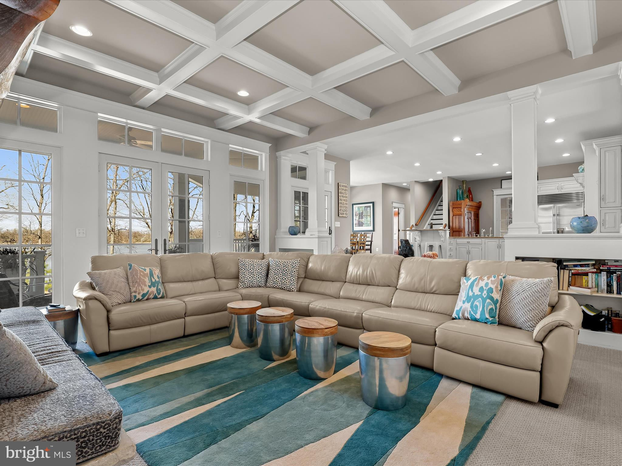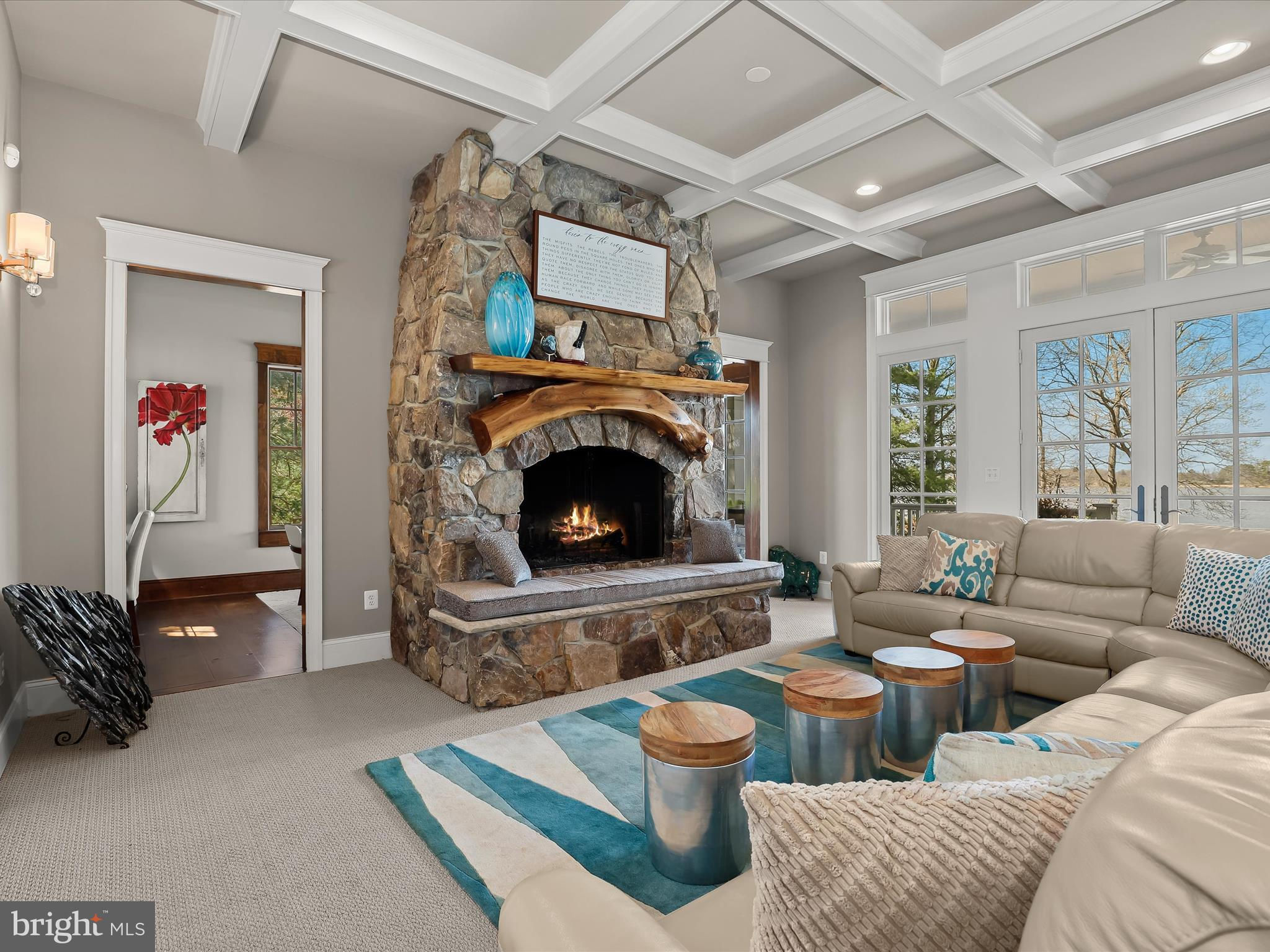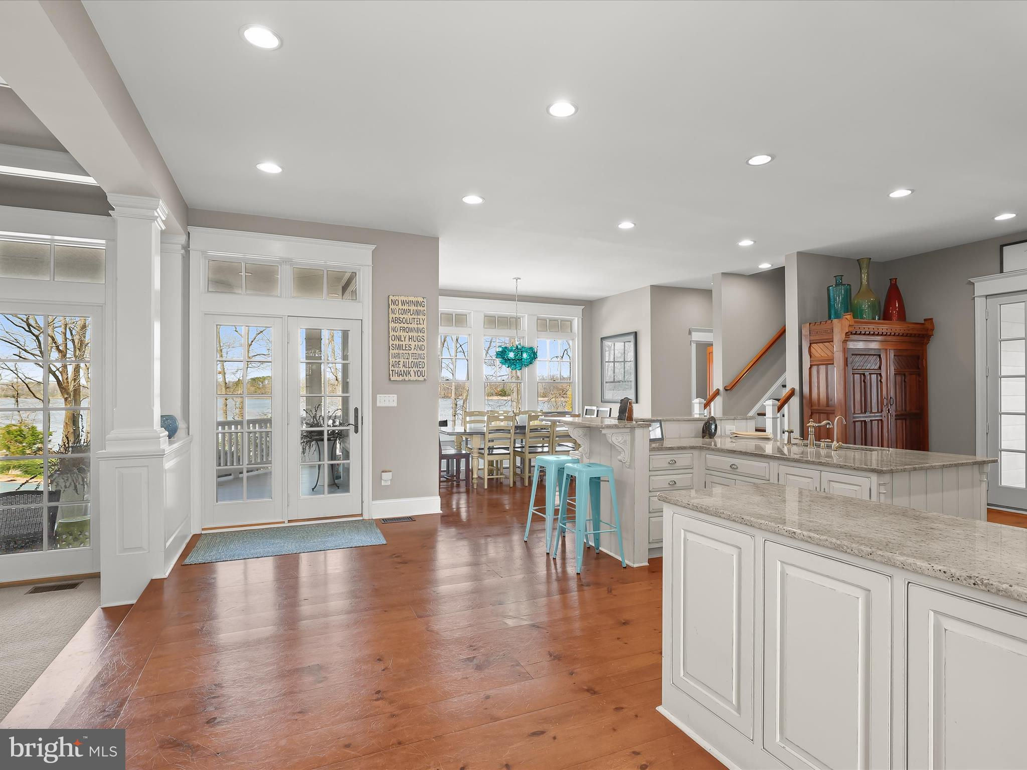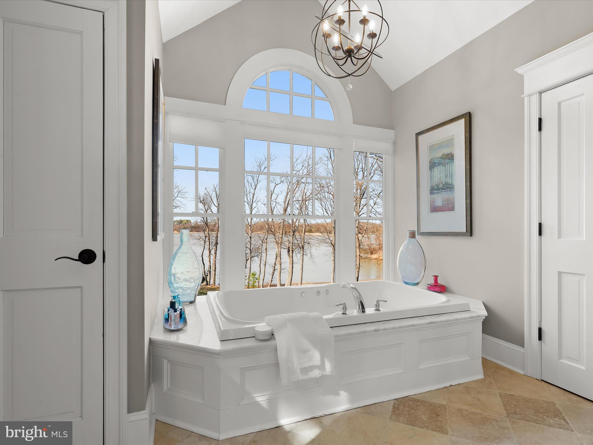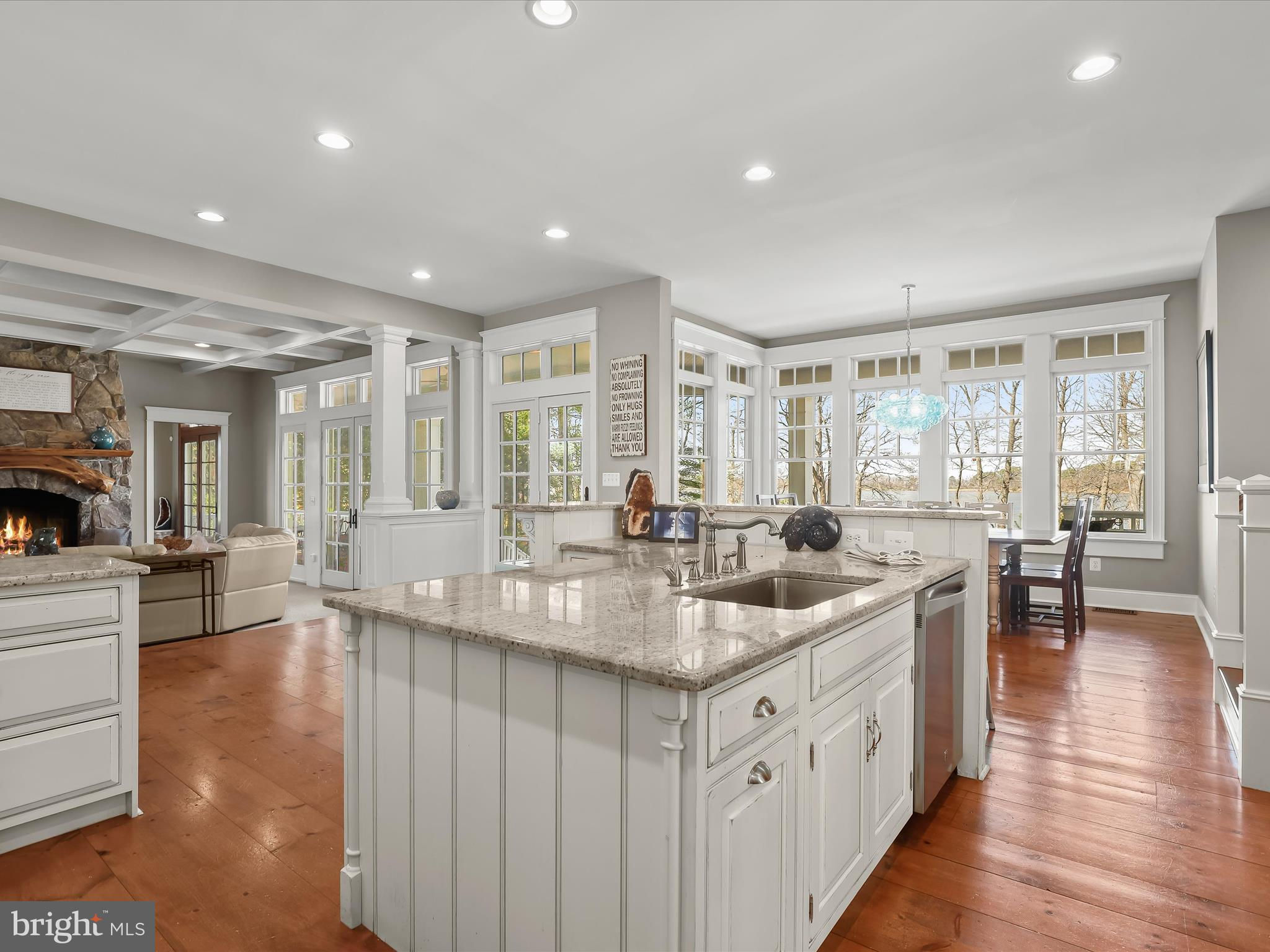 Experience unparalleled waterfront living in this stunning Coastal Farmhouse situated on 13.2 private acres in the desirable Kennersley Farm community. Custom-built as a former builder’s residence, this home showcases the highest quality materials and exceptional craftsmanship throughout. With 8 bedrooms and 6 full baths in the main house, plus a charming 2-bedroom Carriage House with a full kitchen and bath, this estate offers expansive space for family and guests to gather. The detached stone carriage house is located over a 2-car side-loading garage with a conditioned work/storage room. Step inside the main house to find meticulously designed interiors featuring low-maintenance hewn pine hardwood floors, 8-inch wood base, solid wood doors, and raised wood panel wainscoting. The waterside family room is a true showstopper with a coffered ceiling, stone fireplace, a designer mantle, built-in media, and panoramic views. Entertain effortlessly in the central gourmet kitchen with waterside access or enjoy vibrant indoor games in the oversized adjacent recreation room. Later, a quiet vibe will draw you to unwind in the main-level ensuite with an attached sunroom offering access to a serene side deck for a good read or morning coffee. With thoughtful design and attention to comfort and convenience, this home includes both main-level and upper-level laundry rooms, a finished attic bonus bedroom with a sitting area and a half bath, and endless customization possibilities for a future expansion in the unfinished basement with an exterior door and walk-up stair. Outdoor living is paramount with 450 feet of private navigable waterfront along Southeast Creek and views of the Chester River. A private dock equipped with water, electric service, 2 slips, and 2 ski lifts makes boating fun and accessible. Enjoy summer days by the waterside saltwater pool, complete with a paver patio, diving rock, and a 10-foot diving well. Evenings can be spent by the waterside stone fire pit or on the tiered covered porch and upper balcony overlooking the water. Nature enthusiasts will appreciate the natural shoreline, kayak launch, mature trees, and the presence of mated bald eagles. Professional landscaping and outdoor lighting enhance the estate’s beauty, while a private lane with a security alarm ensures seclusion. Perfectly situated near Kennersley Point Marina and other nearby marinas, this location offers convenient access to Chestertown, Rock Hall, and Annapolis by boat, as well as MD 213, Rte-50, and Rte-301 by car. This fully furnished home is an entertainer's dream and a rare waterfront oasis—schedule your private tour today!