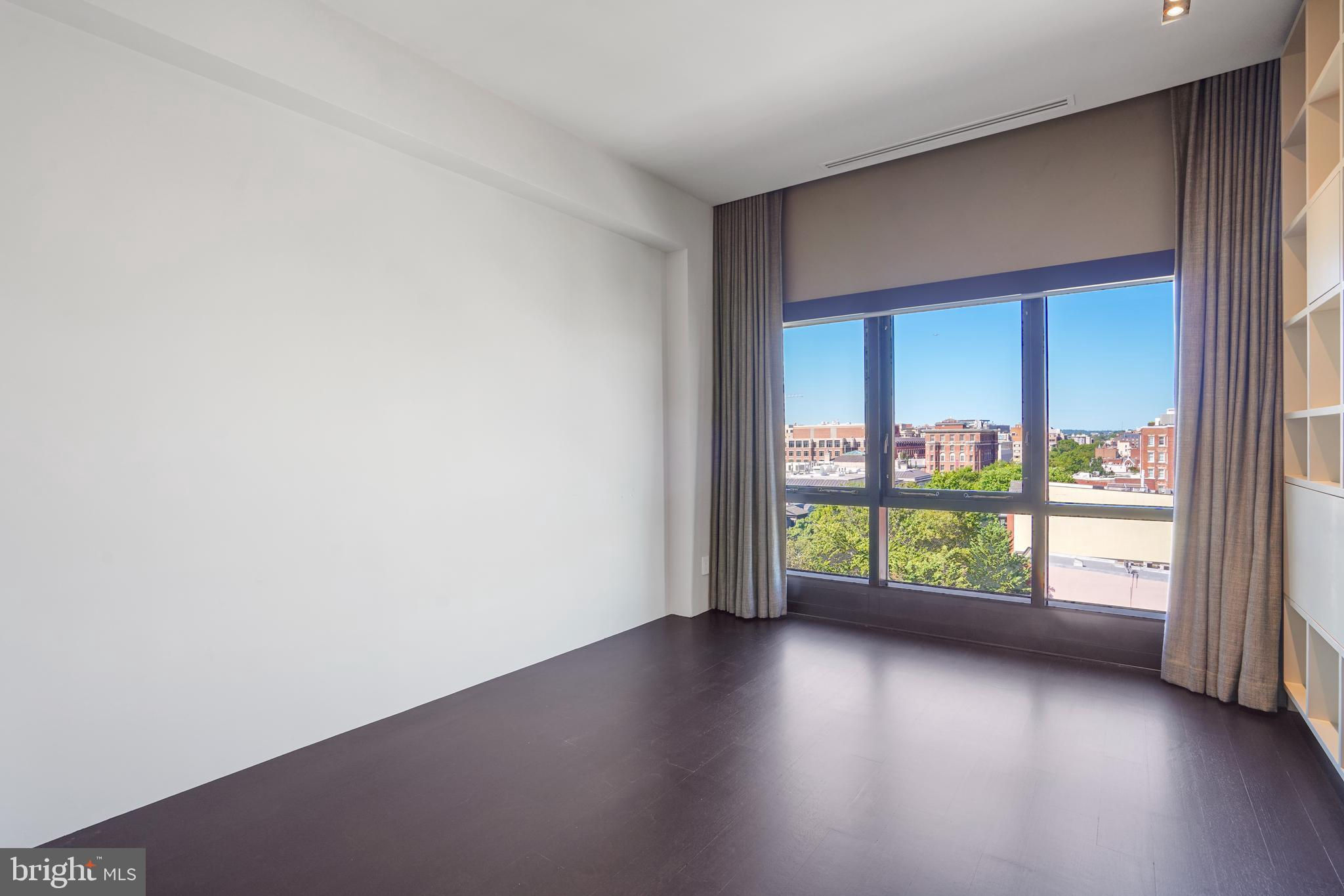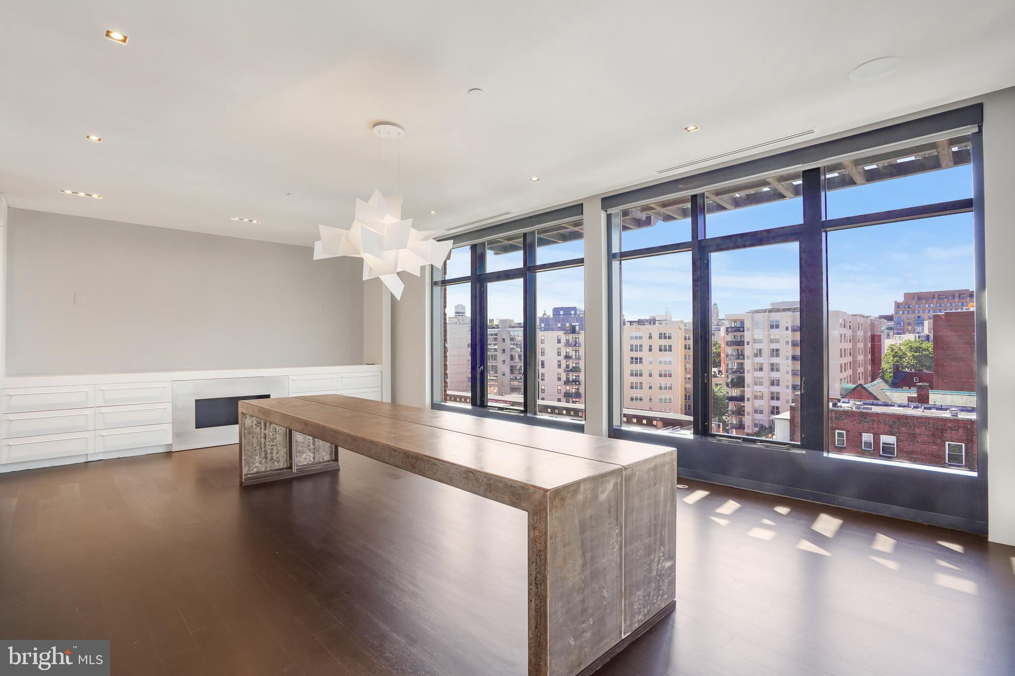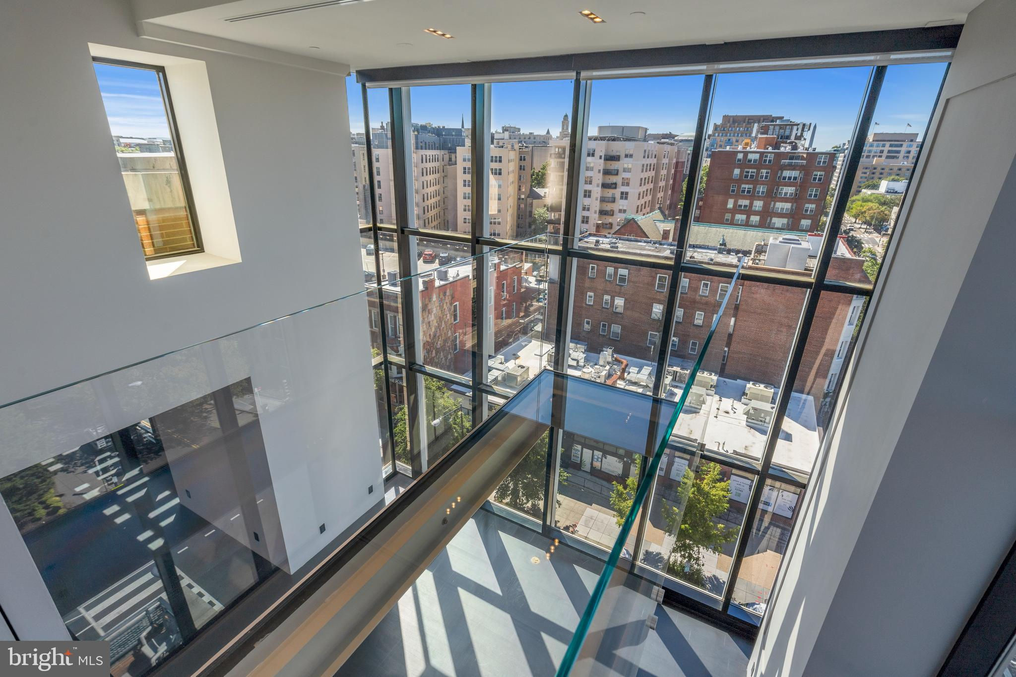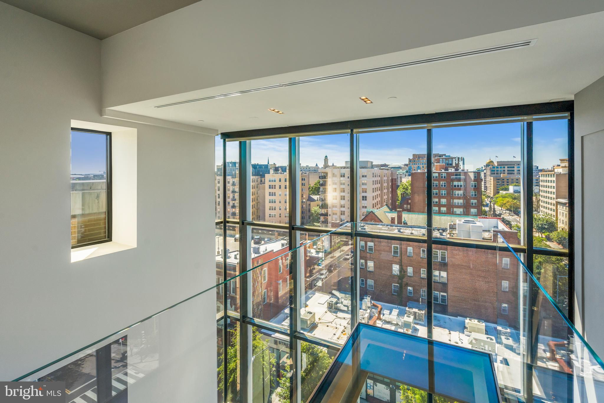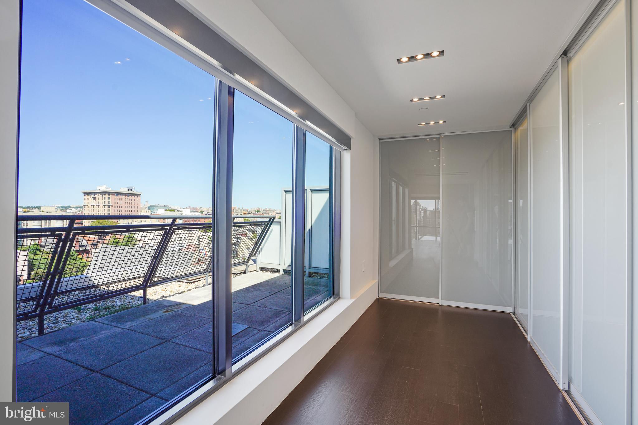 Located in the heart of Logan Circle just one block from bustling 14th Street this dramatic, premier 2 bedroom, 2 bathroom + DEN corner penthouse at the Metropole provides over 2,800 sqft of luxurious interior living space on two levels plus over 900 sqft of private outdoor terraces. Originally designed by architect Robert Gurney, the expansive main level with newly refinished hardwood floors throughout features an open living area with 21- foot high ceilings and spectacular floor-to-ceiling corner windows providing southern and western exposures for stunning sunsets and expansive city views. Open to the living area is a large and truly gourmet kitchen with high-end stainless- steel appliances including 2 wall ovens, 2 dishwashers, an extra-large Subzero refrigerator/freezer, gas cooktop, griddle and built-in deep fryer, an enormous amount of cabinet space and a 23-foot long island. Open to the kitchen is a stunning and spacious dining room with a wall of windows, a custom iron dining table, designer lighting fixture and a gas fireplace set within a built-in credenza with additional storage. A large den (with a window and closet) lies just beyond the main living area and can easily serve as a wonderful office space perfect to satisfy your work-at-home requirements. Next to the den is the second bedroom with custom murphy bed and built-ins and an adjacent marble Waterworks full bath with tub . Finally, on the main level is a stunning glass front temperature- controlled wine room and utility room with a brand new full-size washer/dryer. The second level leads to the private owners suite with a generously- sized bedroom featuring multiple windows for more spectacular views. An architectural feature, truly unique to the space, is a glass catwalk that juts out just beyond the bedroom overlooking the dramatic living space with its tremendous ceiling height, glass and views below. (Large pocket doors can close off the bedroom from the open area below) Flowing seamlessly and open to the bedroom is an elegant dressing area with plentiful closet space plus access to a large balcony. A marble Waterworks bathroom completes the luxurious experience of this perfect owners retreat. The second floor continues with a wet bar containing a dishwasher, wine fridge and storage cabinetry which is located conveniently before the entrance to a large private bi-level roof deck . Additional features of the unit include State-of-the-art technology with Control 4 system and automated Lutron solar shades on all windows. Three side-by-side garage parking spaces along with a large storage room are also included. The Metropole is a high -end boutique building providing an on-site concierge and outdoor common terrace space located just a few blocks from the Dupont Circle metro , one block from chic 14th St. with all of its shops, restaurants and the acclaimed Studio Theater and the gorgeous Logan Circle just another block away
