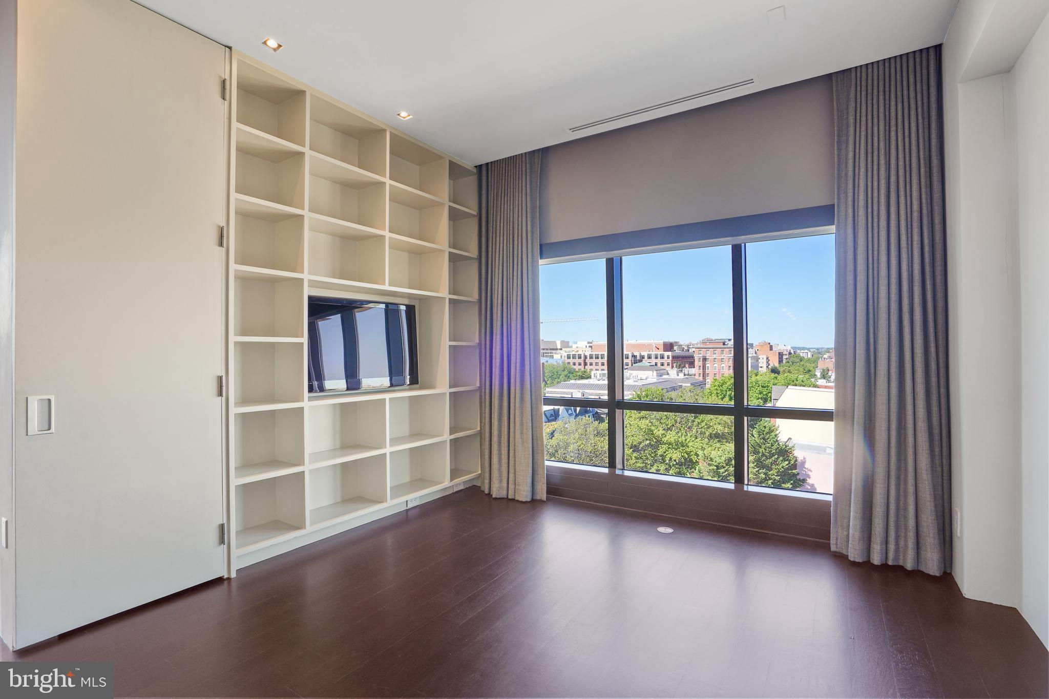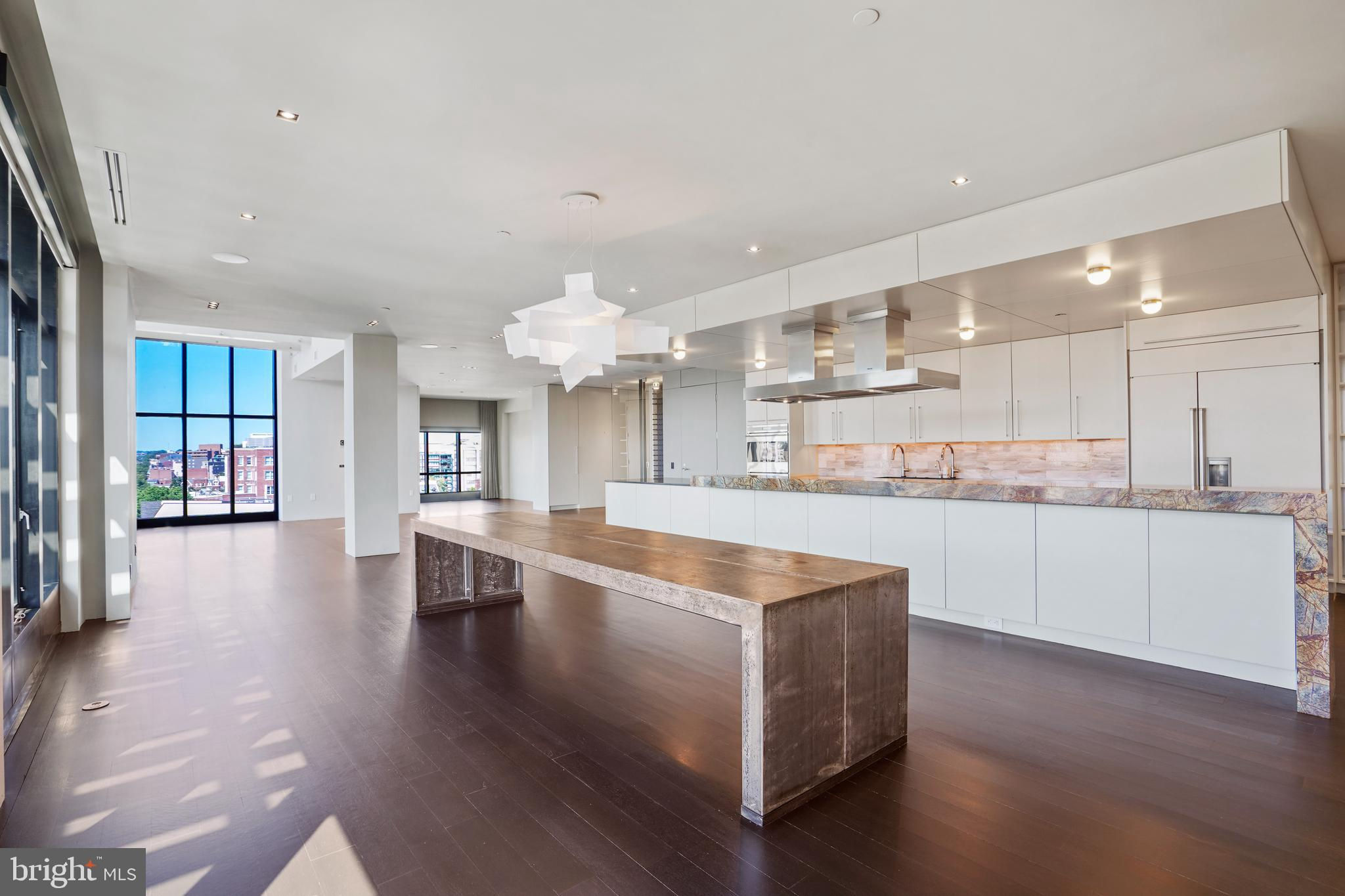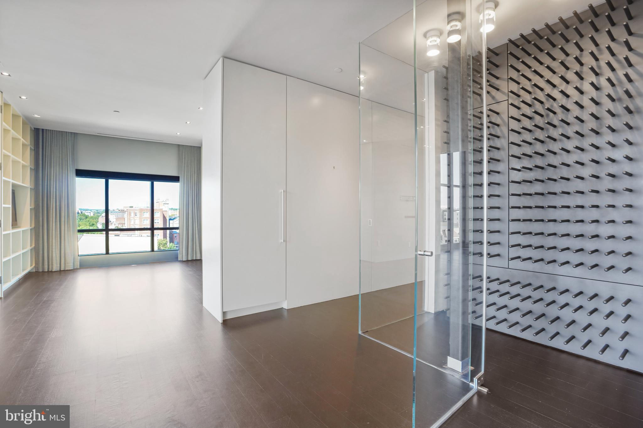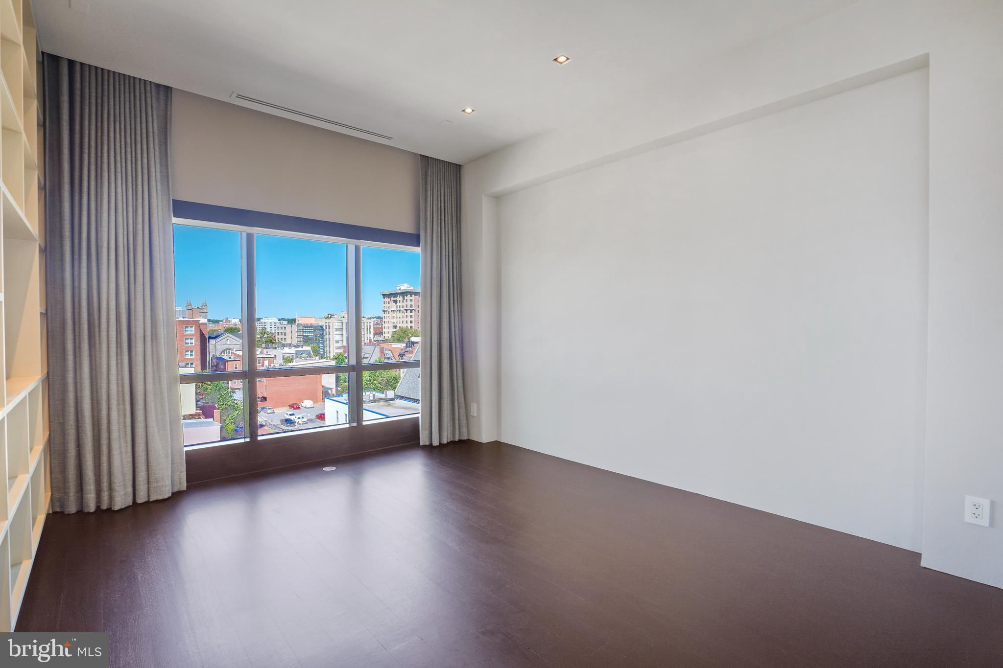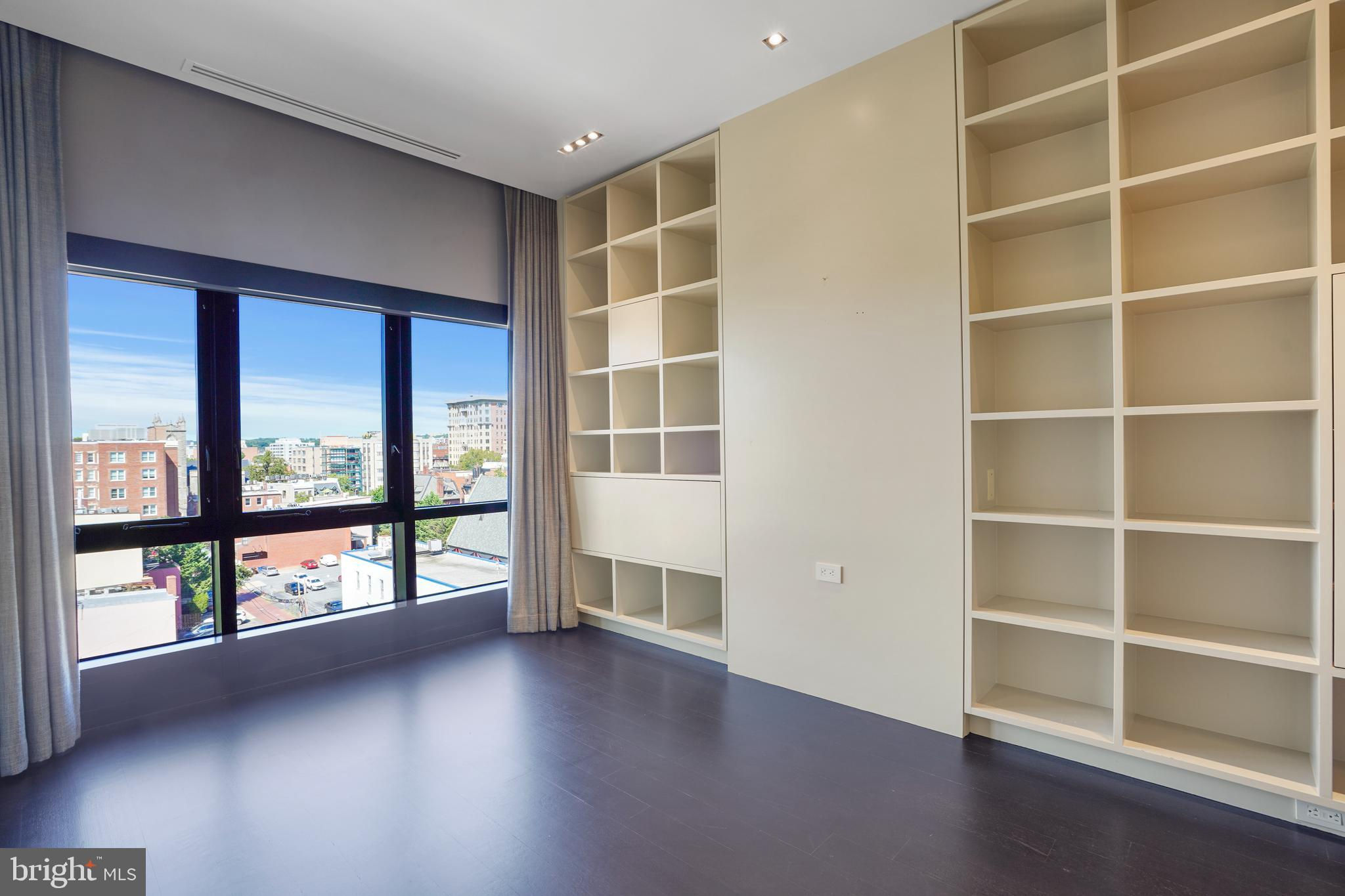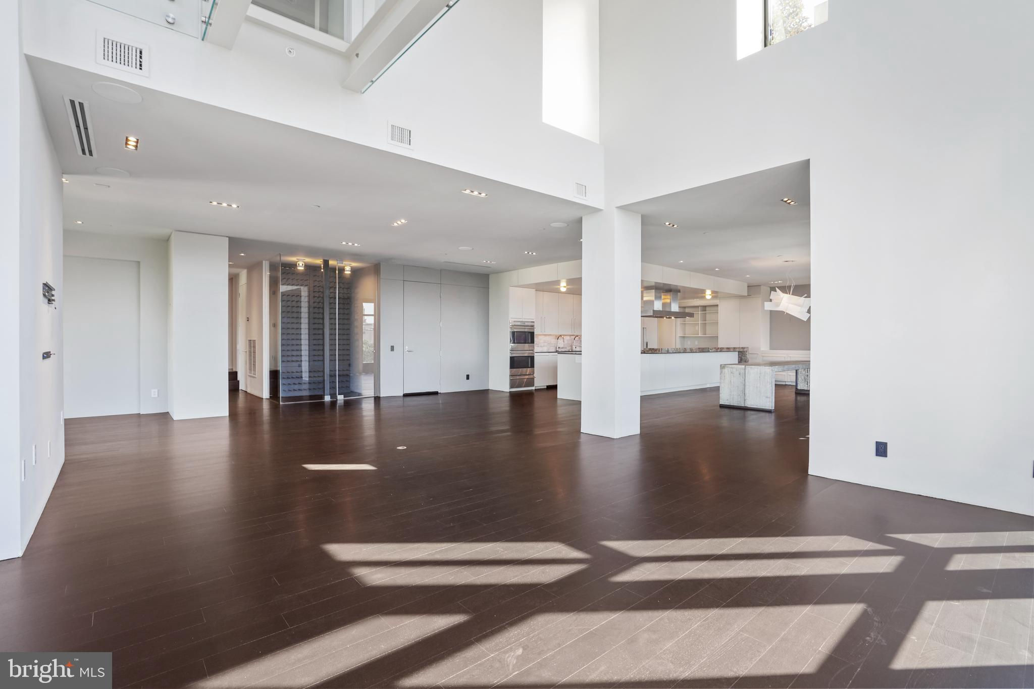 Located in the heart of Logan Circle just one block from bustling 14th Street this dramatic, premier 2 bedroom, 2 bathroom + DEN corner penthouse at the Metropole provides over 2,800 sqft of luxurious interior living space on two levels plus over 900 sqft of private outdoor terraces. Originally designed by architect Robert Gurney, the expansive main level with newly refinished hardwood floors throughout features an open living area with 21- foot high ceilings and spectacular floor-to-ceiling corner windows providing southern and western exposures for stunning sunsets and expansive city views. Open to the living area is a large and truly gourmet kitchen with high-end stainless- steel appliances including 2 wall ovens, 2 dishwashers, an extra-large Subzero refrigerator/freezer, gas cooktop, griddle and built-in deep fryer, an enormous amount of cabinet space and a 23-foot long island. Open to the kitchen is a stunning and spacious dining room with a wall of windows, a custom iron dining table, designer lighting fixture and a gas fireplace set within a built-in credenza with additional storage. A large den (with a window and closet) lies just beyond the main living area and can easily serve as a wonderful office space perfect to satisfy your work-at-home requirements. Next to the den is the second bedroom with custom murphy bed and built-ins and an adjacent marble Waterworks full bath with tub . Finally, on the main level is a stunning glass front temperature- controlled wine room and utility room with a brand new full-size washer/dryer. The second level leads to the private owners suite with a generously- sized bedroom featuring multiple windows for more spectacular views. An architectural feature, truly unique to the space, is a glass catwalk that juts out just beyond the bedroom overlooking the dramatic living space with its tremendous ceiling height, glass and views below. (Large pocket doors can close off the bedroom from the open area below) Flowing seamlessly and open to the bedroom is an elegant dressing area with plentiful closet space plus access to a large balcony. A marble Waterworks bathroom completes the luxurious experience of this perfect owners retreat. The second floor continues with a wet bar containing a dishwasher, wine fridge and storage cabinetry which is located conveniently before the entrance to a large private bi-level roof deck . Additional features of the unit include State-of-the-art technology with Control 4 system and automated Lutron solar shades on all windows. Three side-by-side garage parking spaces along with a large storage room are also included. The Metropole is a high -end boutique building providing an on-site concierge and outdoor common terrace space located just a few blocks from the Dupont Circle metro , one block from chic 14th St. with all of its shops, restaurants and the acclaimed Studio Theater and the gorgeous Logan Circle just another block away