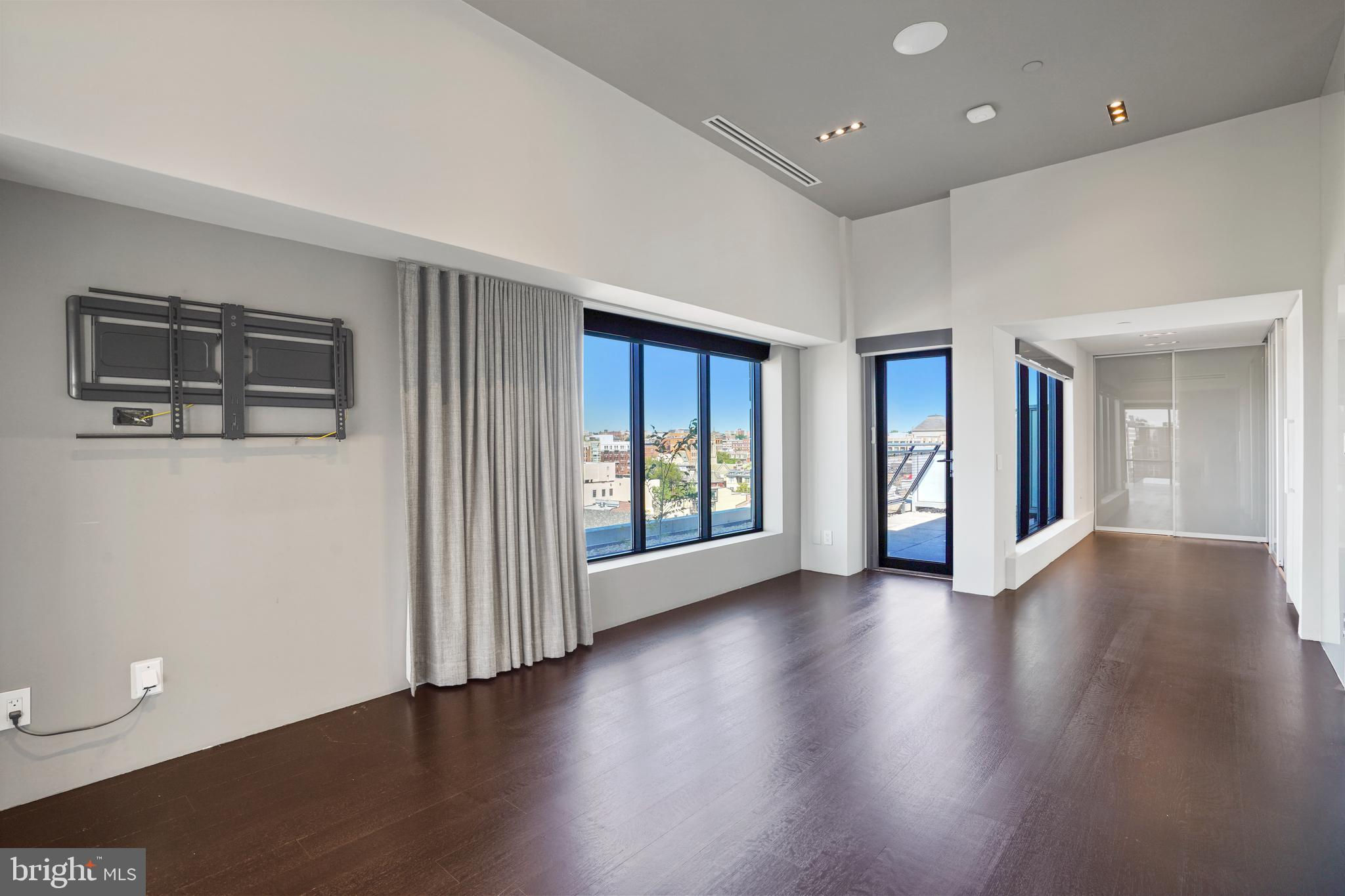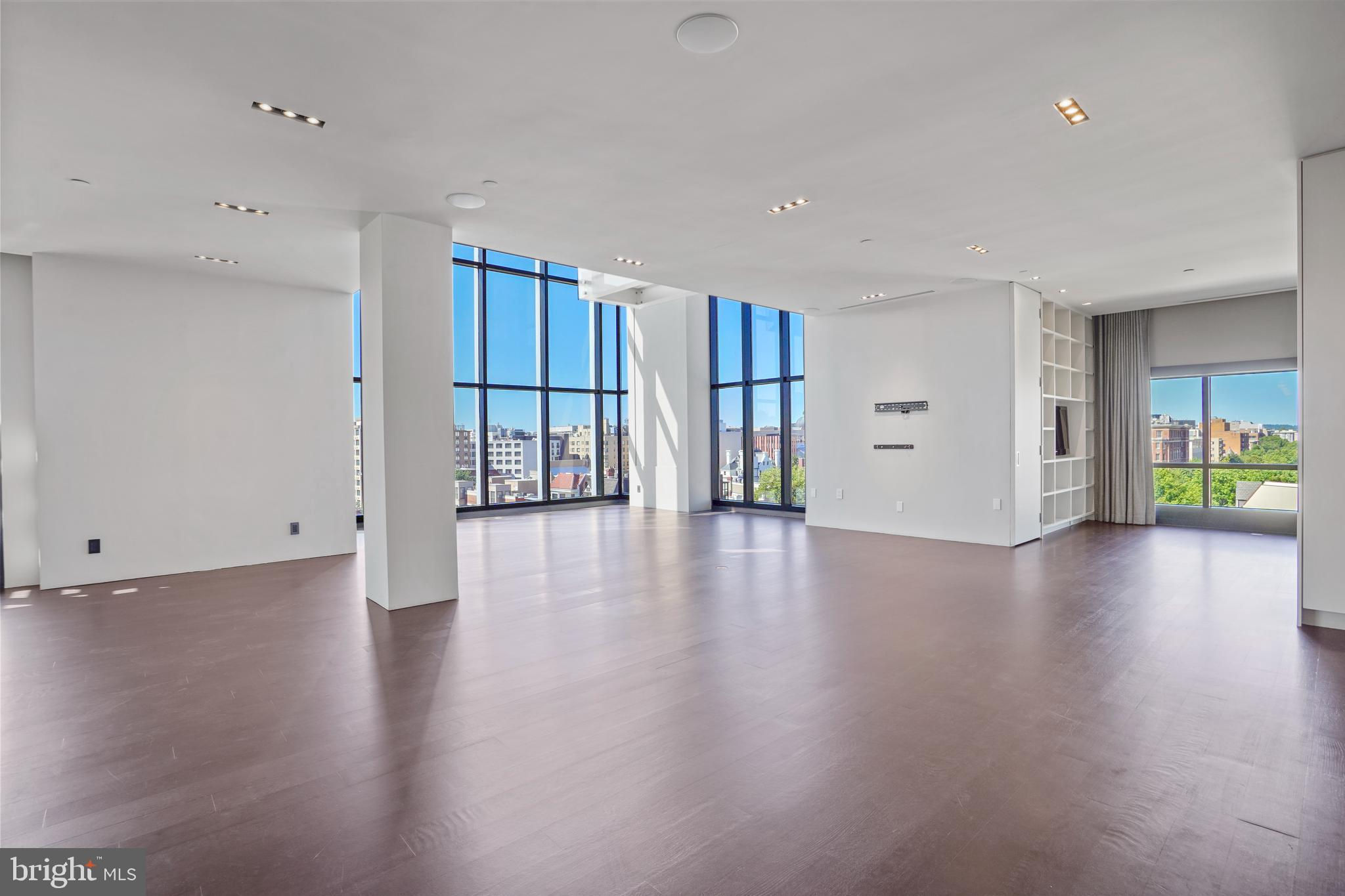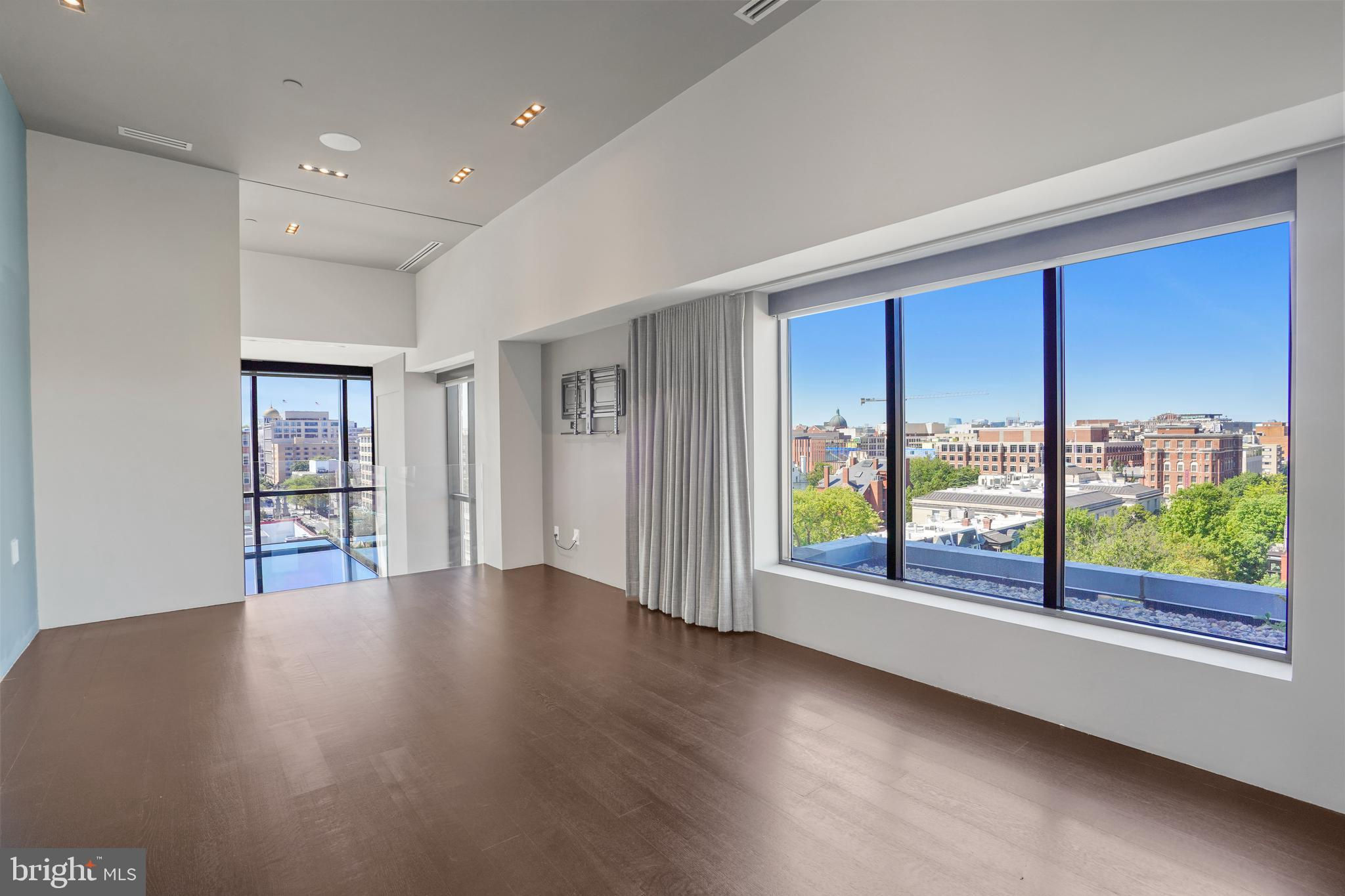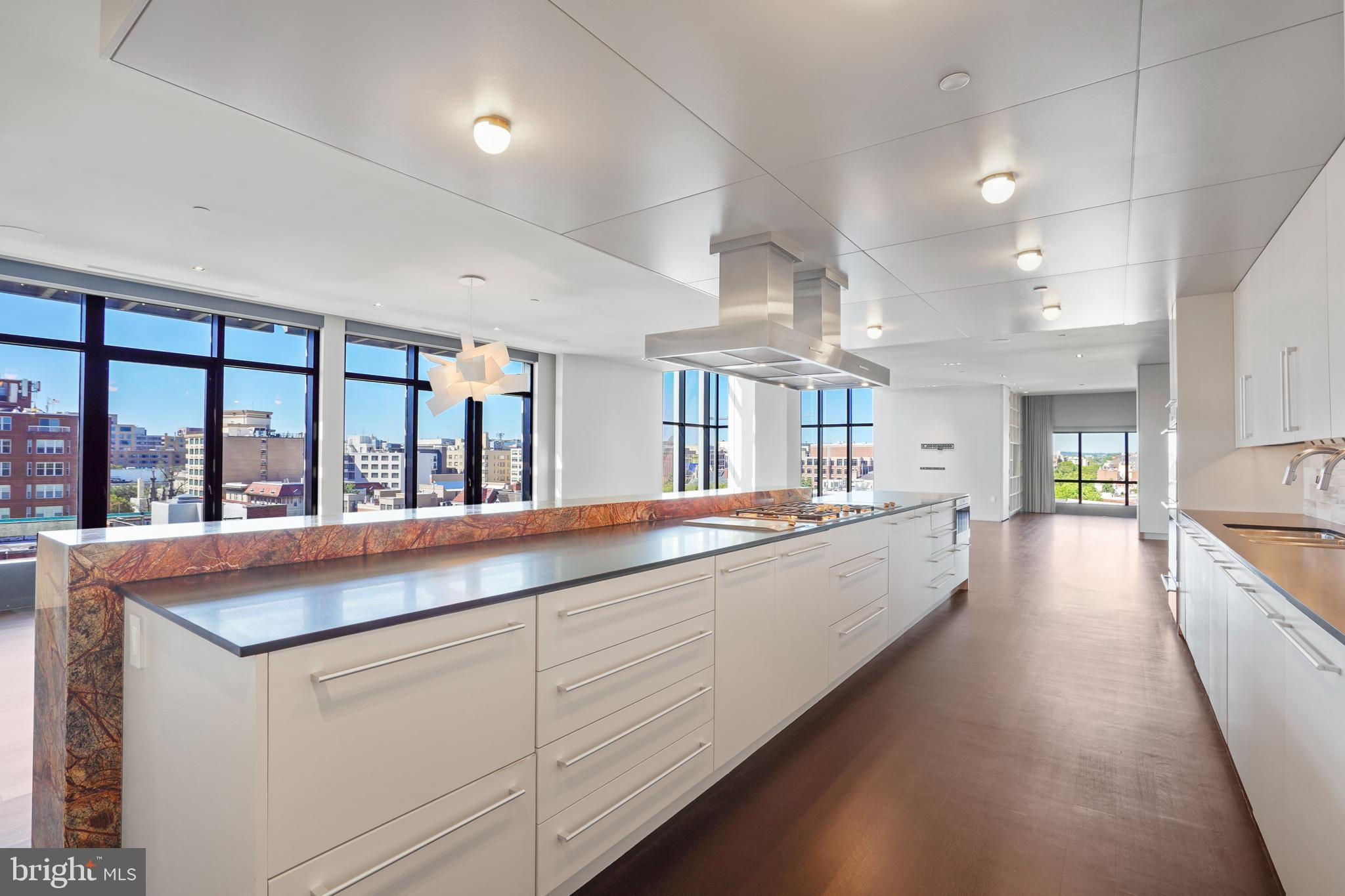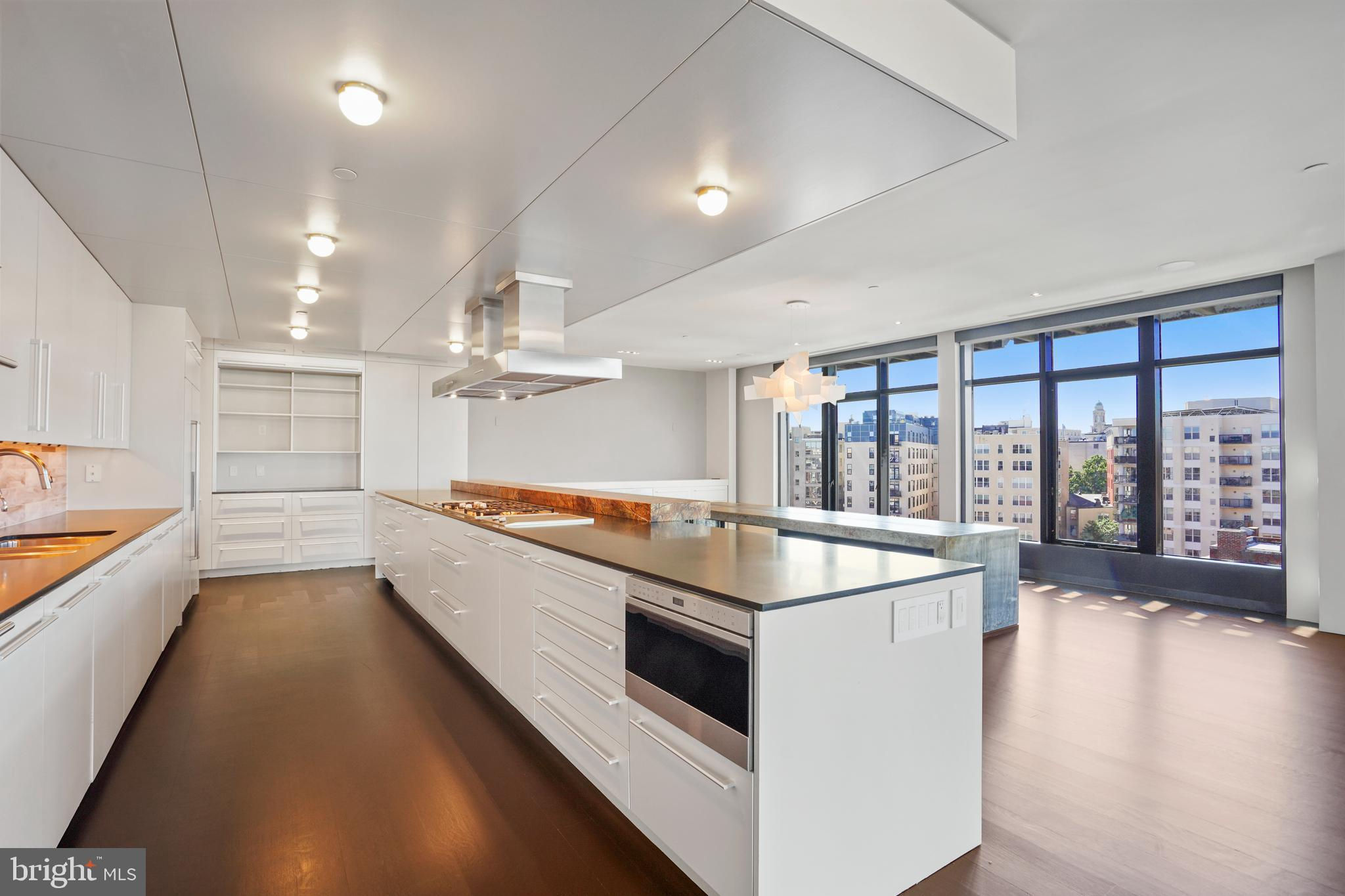 Located in the heart of Logan Circle just one block from bustling 14th Street this dramatic, premier 2 bedroom, 2 bathroom + DEN corner penthouse at the Metropole provides over 2,800 sqft of luxurious interior living space on two levels plus over 900 sqft of private outdoor terraces. Originally designed by architect Robert Gurney, the expansive main level with newly refinished hardwood floors throughout features an open living area with 21- foot high ceilings and spectacular floor-to-ceiling corner windows providing southern and western exposures for stunning sunsets and expansive city views. Open to the living area is a large and truly gourmet kitchen with high-end stainless- steel appliances including 2 wall ovens, 2 dishwashers, an extra-large Subzero refrigerator/freezer, gas cooktop, griddle and built-in deep fryer, an enormous amount of cabinet space and a 23-foot long island. Open to the kitchen is a stunning and spacious dining room with a wall of windows, a custom iron dining table, designer lighting fixture and a gas fireplace set within a built-in credenza with additional storage. A large den (with a window and closet) lies just beyond the main living area and can easily serve as a wonderful office space perfect to satisfy your work-at-home requirements. Next to the den is the second bedroom with custom murphy bed and built-ins and an adjacent marble Waterworks full bath with tub . Finally, on the main level is a stunning glass front temperature- controlled wine room and utility room with a brand new full-size washer/dryer. The second level leads to the private owners suite with a generously- sized bedroom featuring multiple windows for more spectacular views. An architectural feature, truly unique to the space, is a glass catwalk that juts out just beyond the bedroom overlooking the dramatic living space with its tremendous ceiling height, glass and views below. (Large pocket doors can close off the bedroom from the open area below) Flowing seamlessly and open to the bedroom is an elegant dressing area with plentiful closet space plus access to a large balcony. A marble Waterworks bathroom completes the luxurious experience of this perfect owners retreat. The second floor continues with a wet bar containing a dishwasher, wine fridge and storage cabinetry which is located conveniently before the entrance to a large private bi-level roof deck . Additional features of the unit include State-of-the-art technology with Control 4 system and automated Lutron solar shades on all windows. Three side-by-side garage parking spaces along with a large storage room are also included. The Metropole is a high -end boutique building providing an on-site concierge and outdoor common terrace space located just a few blocks from the Dupont Circle metro , one block from chic 14th St. with all of its shops, restaurants and the acclaimed Studio Theater and the gorgeous Logan Circle just another block away
