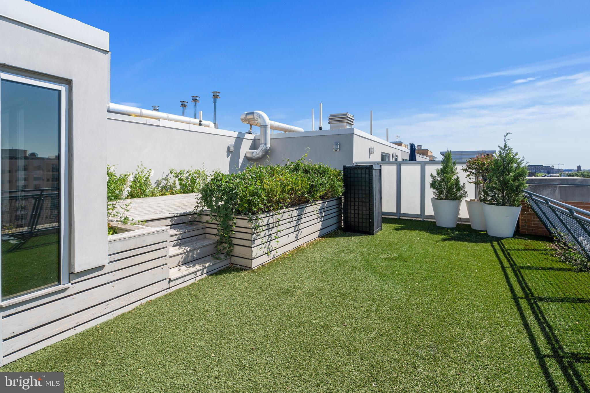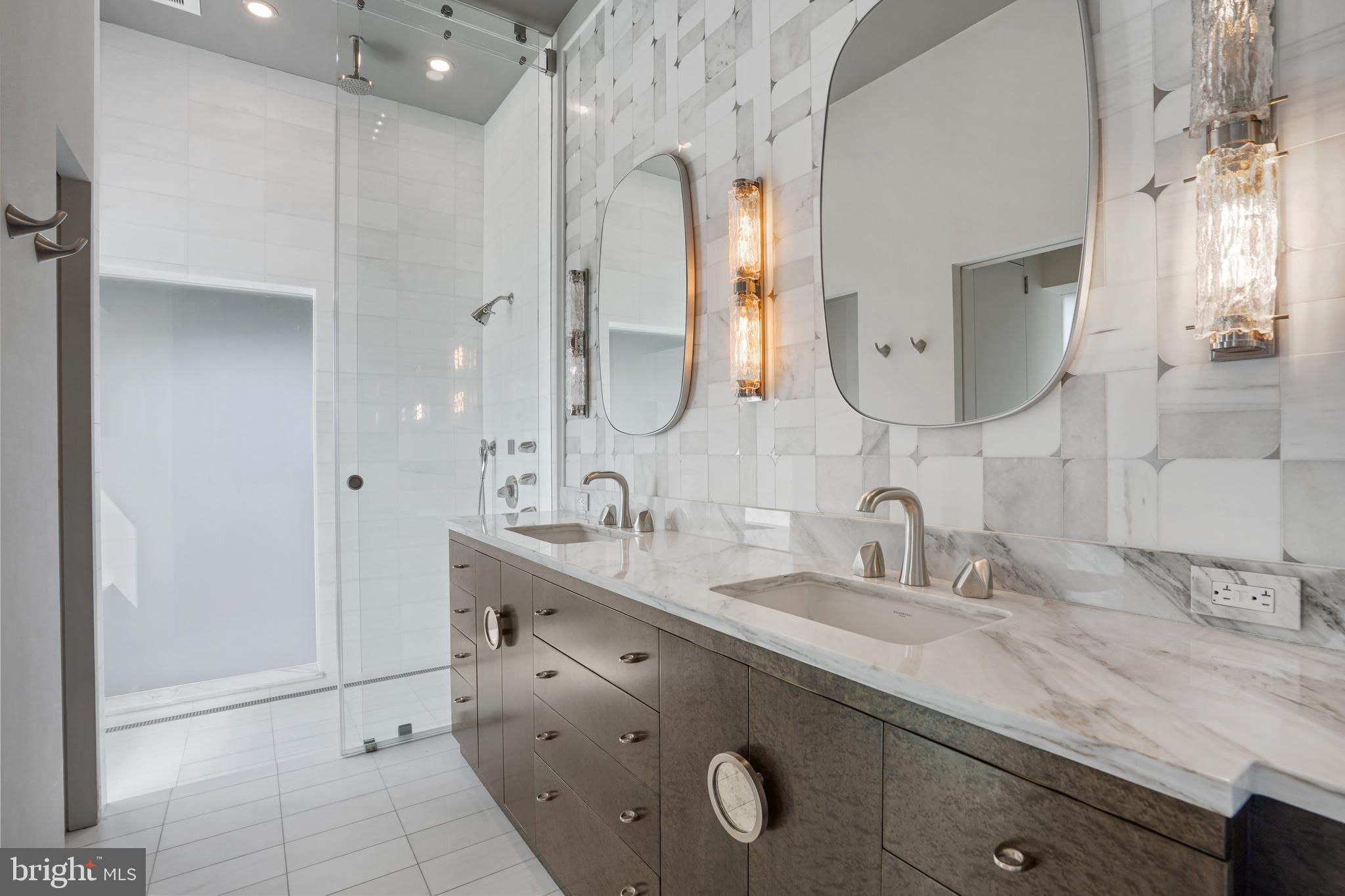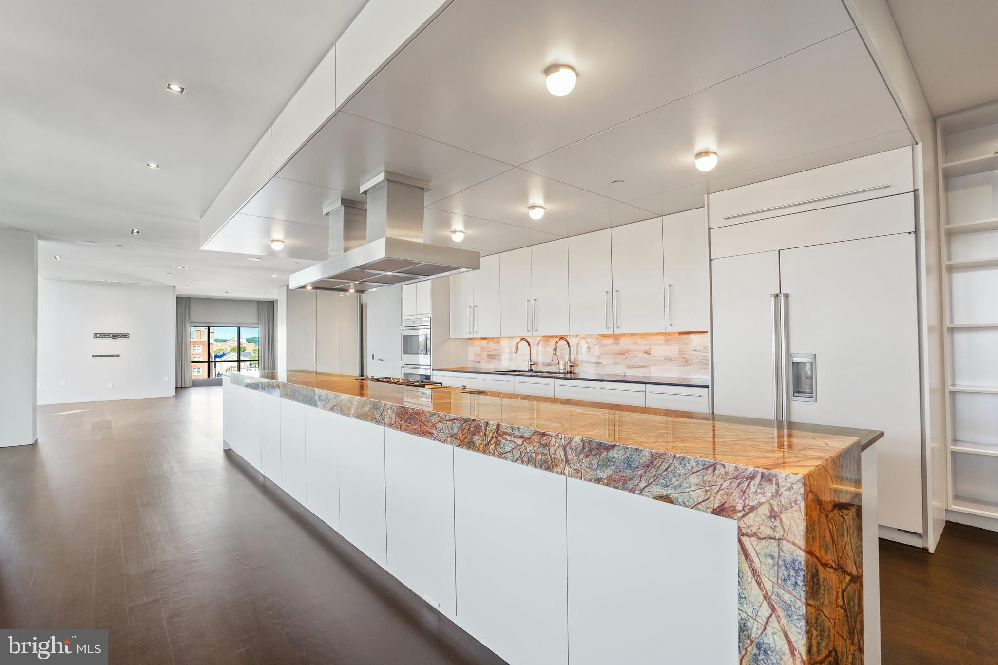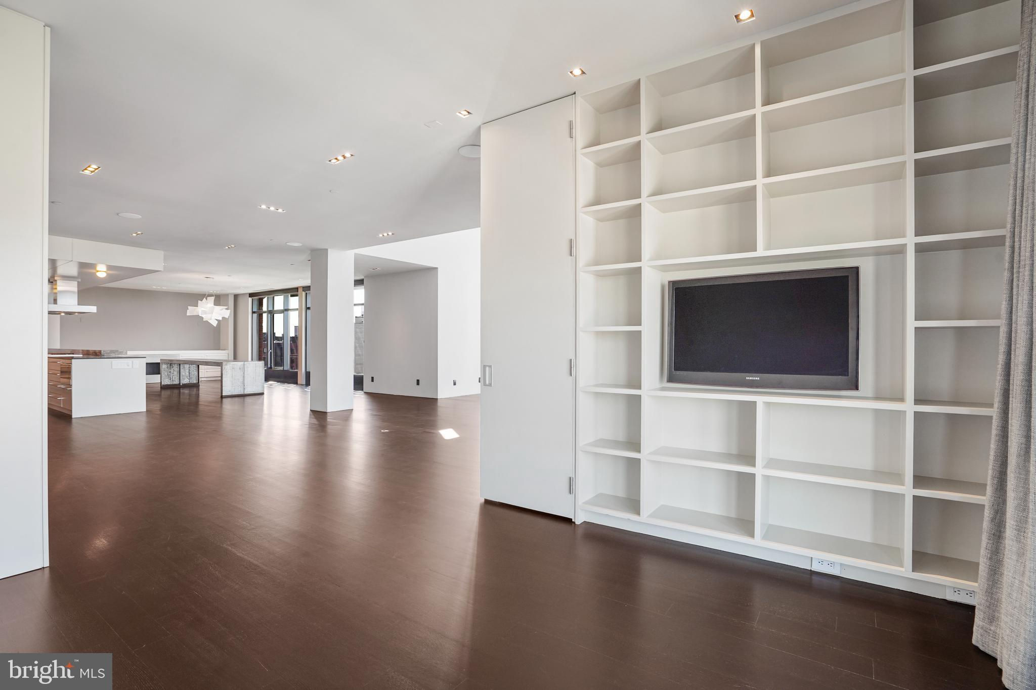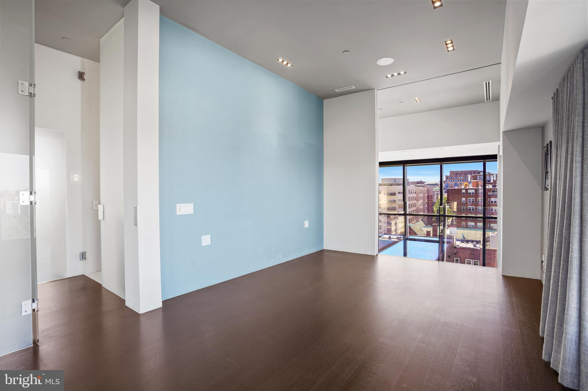 Located in the heart of Logan Circle just one block from bustling 14th Street this dramatic, premier 2 bedroom, 2 bathroom + DEN corner penthouse at the Metropole provides over 2,800 sqft of luxurious interior living space on two levels plus over 900 sqft of private outdoor terraces. Originally designed by architect Robert Gurney, the expansive main level with newly refinished hardwood floors throughout features an open living area with 21- foot high ceilings and spectacular floor-to-ceiling corner windows providing southern and western exposures for stunning sunsets and expansive city views. Open to the living area is a large and truly gourmet kitchen with high-end stainless- steel appliances including 2 wall ovens, 2 dishwashers, an extra-large Subzero refrigerator/freezer, gas cooktop, griddle and built-in deep fryer, an enormous amount of cabinet space and a 23-foot long island. Open to the kitchen is a stunning and spacious dining room with a wall of windows, a custom iron dining table, designer lighting fixture and a gas fireplace set within a built-in credenza with additional storage. A large den (with a window and closet) lies just beyond the main living area and can easily serve as a wonderful office space perfect to satisfy your work-at-home requirements. Next to the den is the second bedroom with custom murphy bed and built-ins and an adjacent marble Waterworks full bath with tub . Finally, on the main level is a stunning glass front temperature- controlled wine room and utility room with a brand new full-size washer/dryer. The second level leads to the private owners suite with a generously- sized bedroom featuring multiple windows for more spectacular views. An architectural feature, truly unique to the space, is a glass catwalk that juts out just beyond the bedroom overlooking the dramatic living space with its tremendous ceiling height, glass and views below. (Large pocket doors can close off the bedroom from the open area below) Flowing seamlessly and open to the bedroom is an elegant dressing area with plentiful closet space plus access to a large balcony. A marble Waterworks bathroom completes the luxurious experience of this perfect owners retreat. The second floor continues with a wet bar containing a dishwasher, wine fridge and storage cabinetry which is located conveniently before the entrance to a large private bi-level roof deck . Additional features of the unit include State-of-the-art technology with Control 4 system and automated Lutron solar shades on all windows. Three side-by-side garage parking spaces along with a large storage room are also included. The Metropole is a high -end boutique building providing an on-site concierge and outdoor common terrace space located just a few blocks from the Dupont Circle metro , one block from chic 14th St. with all of its shops, restaurants and the acclaimed Studio Theater and the gorgeous Logan Circle just another block away