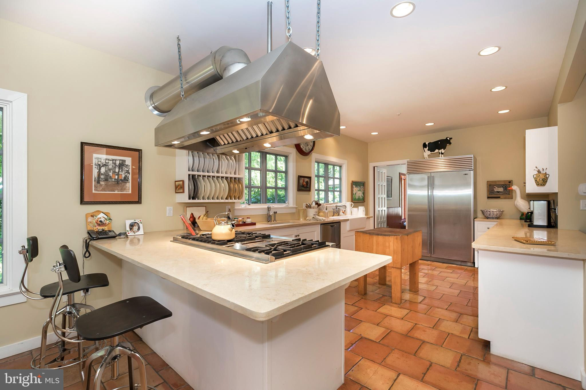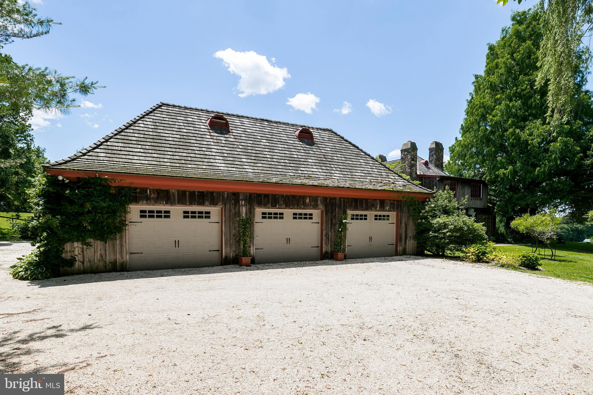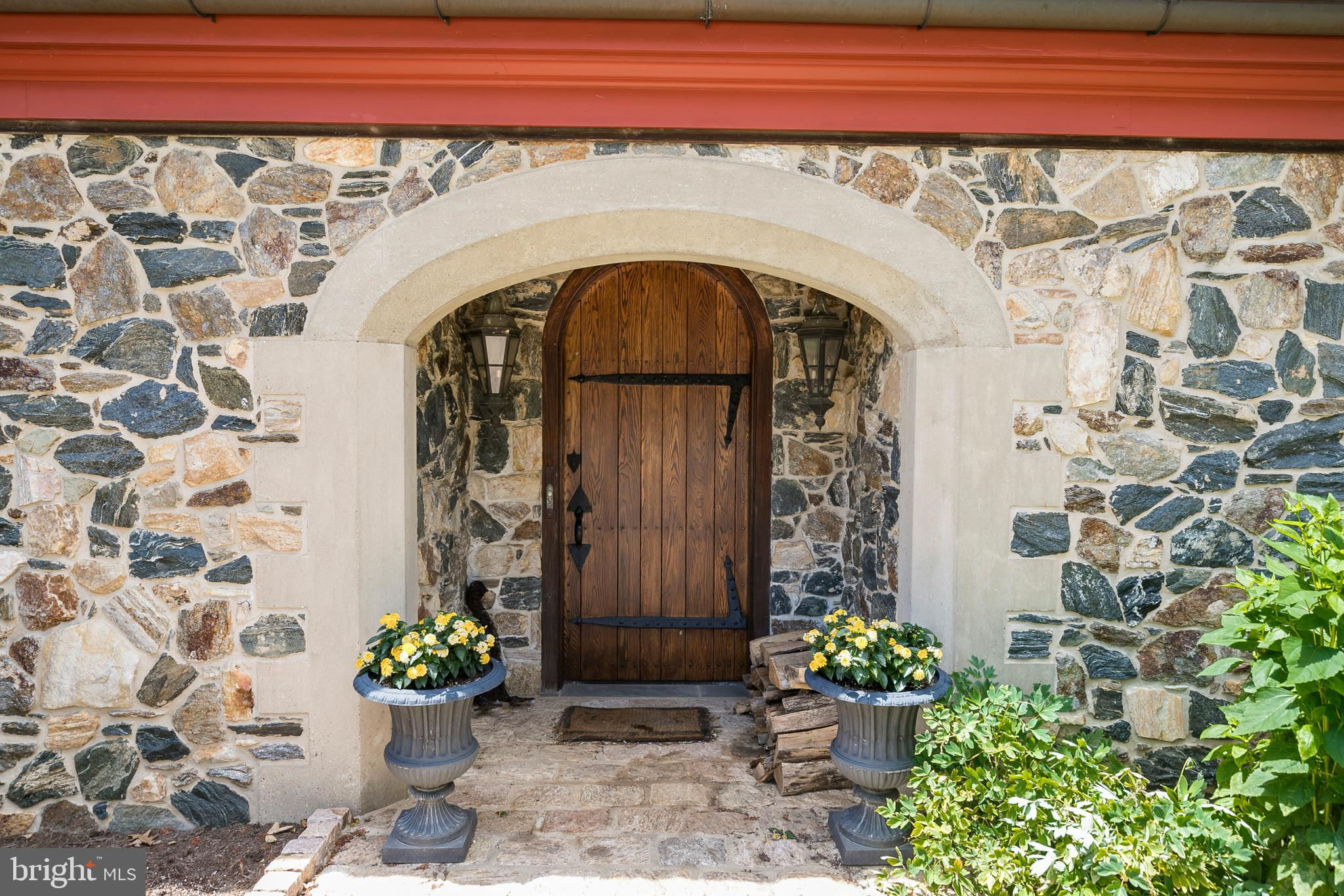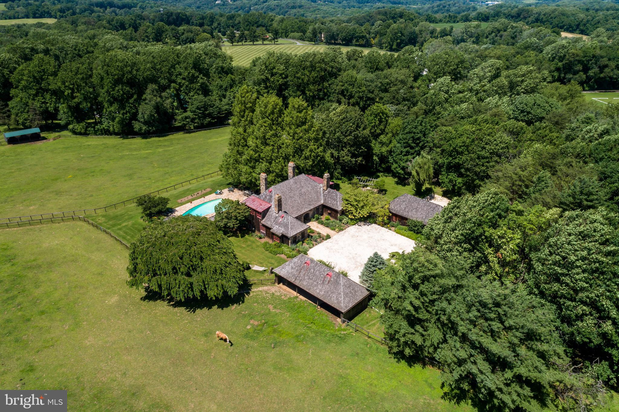 Four Chimneys Farm, Unionville, Pennsylvania Less than a mile from the quaint village of Unionville, in the Brandywine Valley of Pennsylvania, sits one of the most uniquely crafted homes in historic southern Chester County. Enter the property into a white gravel motor court to a U shaped courtyard framed by horse pastures, beautiful gardens and mature trees. The home, which was constructed in 1978 with reclaimed 18th century fieldstone and wooden beams from the original period farmhouse, is modeled after a French hunting lodge. An imported French mahogany door welcomes you into the 4,825 sq ft. homes’ entrance with a sunken great room featuring a massive fireplace; one of 4 working fireplaces which inspired the name Four Chimneys Farm. The stone interior walls and spectacular 30 foot beamed ceiling are a nod to the original historic Kane Farm that once occupied the land. Adjacent to the great room is a modern kitchen with Viking Range, Sub Zero refrigerator, two dishwashers and two sinks. The kitchen also contains a mud room/sitting area and a cozy breakfast bar. A second stunning stone fireplace is the centerpiece of a spacious dining room with a vaulted ceiling and views of both the courtyard and gardens. A wood paneled library offers a third fireplace and boasts a wet bar with views of one of the horse pastures. The first floor primary suite is a private retreat in itself. Relax by the fireplace, while taking in the expansive views of the swimming pool and terrace overlooking the 49+ acre farm. The master bath features a large soaking tub, purposely placed within view of the horse fields, and a sizable glass shower with modern fixtures. Dual spiral staircases lead to a second floor balcony, that connect two private guest wings with three bedrooms/two full baths-- all designed with classic marble for timeless appeal. Each bedroom commands unparalleled views of the surrounding countryside. The lower level of the house provides for practical office space, a wine cellar, storage and another half bath. Finally, there is an oversized three car garage, suitable for a car collector. The equestrian facility is comprising 8 fields, each with a turn out shed and automatic waterer, an outdoor regulation sized sand dressage arena, a 70’ by 200’ indoor arena (office or apartment space) and a 13 stall barn. There is a finished tack room,a heated wash stall and an attached farm manager/groom apartment. A large tractor/hay shed and tool building completes this turnkey equine center, which has it’s own entrance and driveway. The barn and house are on separate utilities, allowing the equestrian center to be leased as a turnkey professional operation. The property is suitable for professional competitors, fox hunting enthusiasts or pleasure riders looking to enjoy direct access to thousands of acres of open space, including 1300 acres adjacent through the Cheslen Preserve. In addition, the property is preserved under ACT 319 (Clean & Green) through the Brandywine Conservancy, resulting in very low taxes for an estate of this size. Four Chimneys Farm is perfectly located in the heart of Cheshire Hunt Country with easy access to Olympic level training programs as well as world class events at Plantation Field International, The Devon Horse Show and Fair Hill Training Center. For the non equestrian, the Brandywine Valley is well known for attractions such Longwood Gardens, the Brandywine River Museum and the wonderful communities of Kennett Square, West Chester and Wilmington, Delaware. The farm is located in the award winning Unionville Chadds Ford School District and is a short drive to regional railways and the Philadelphia international airport.