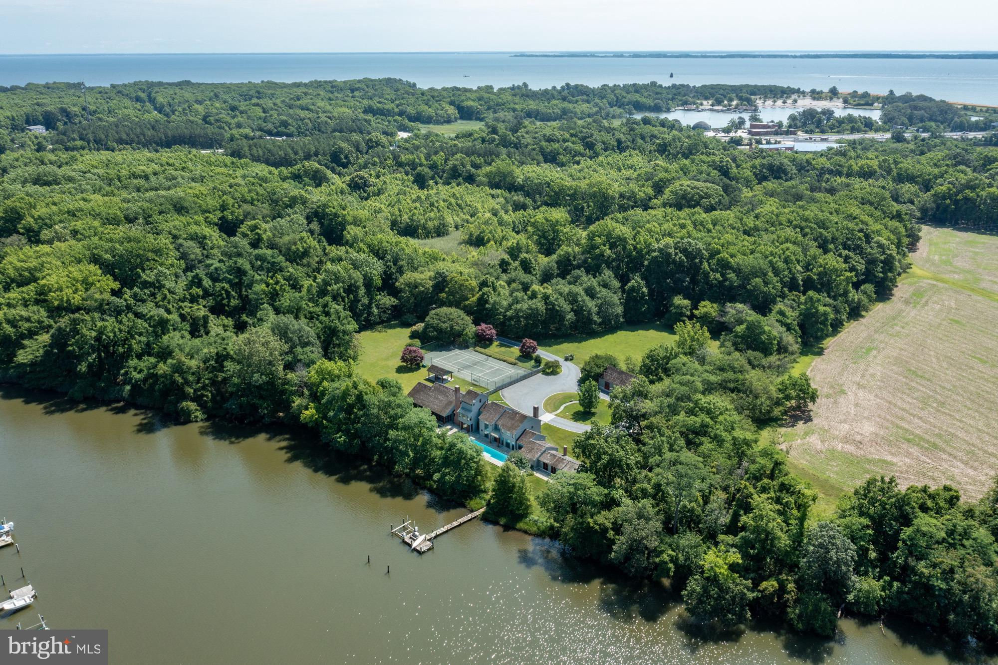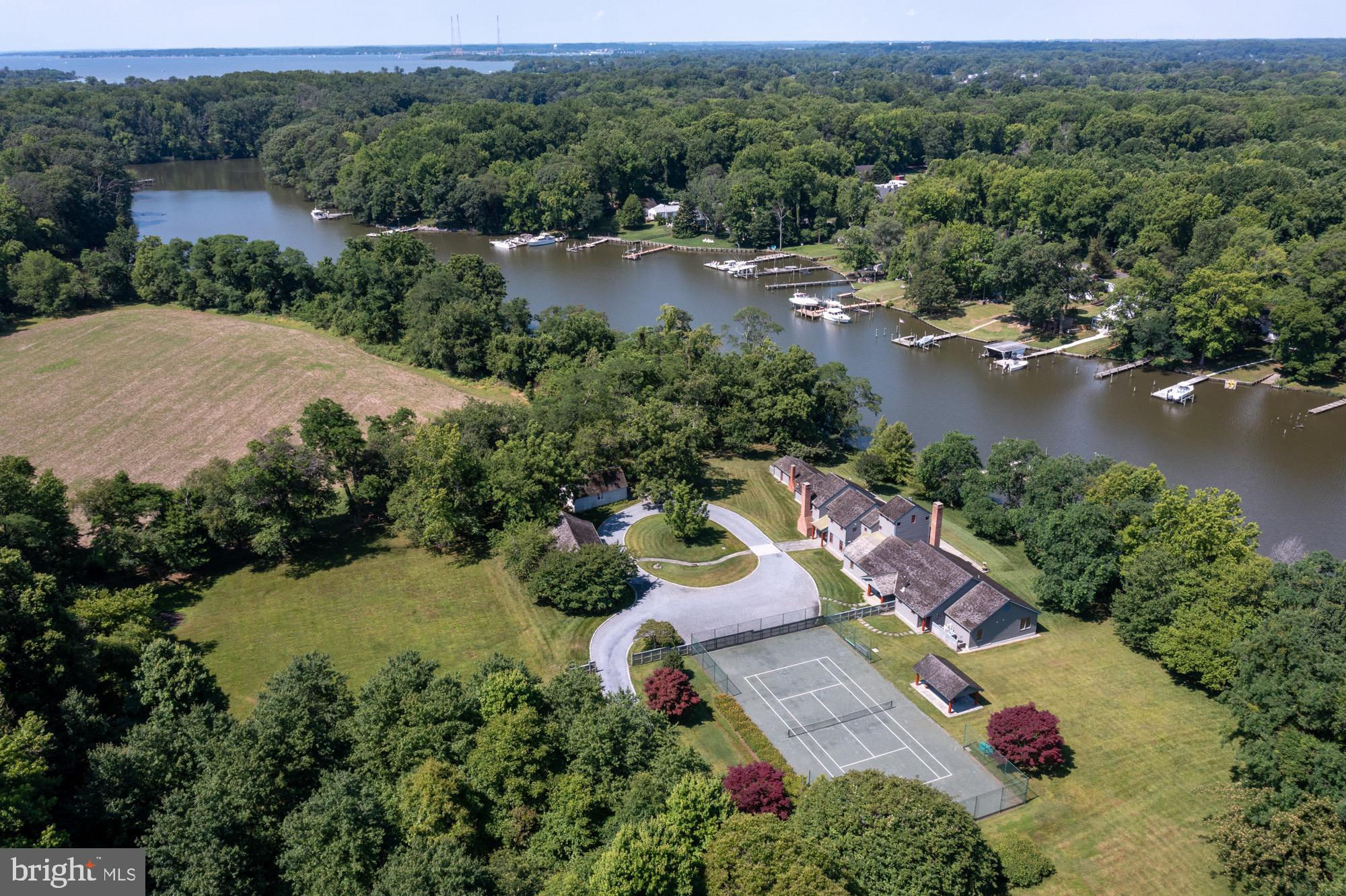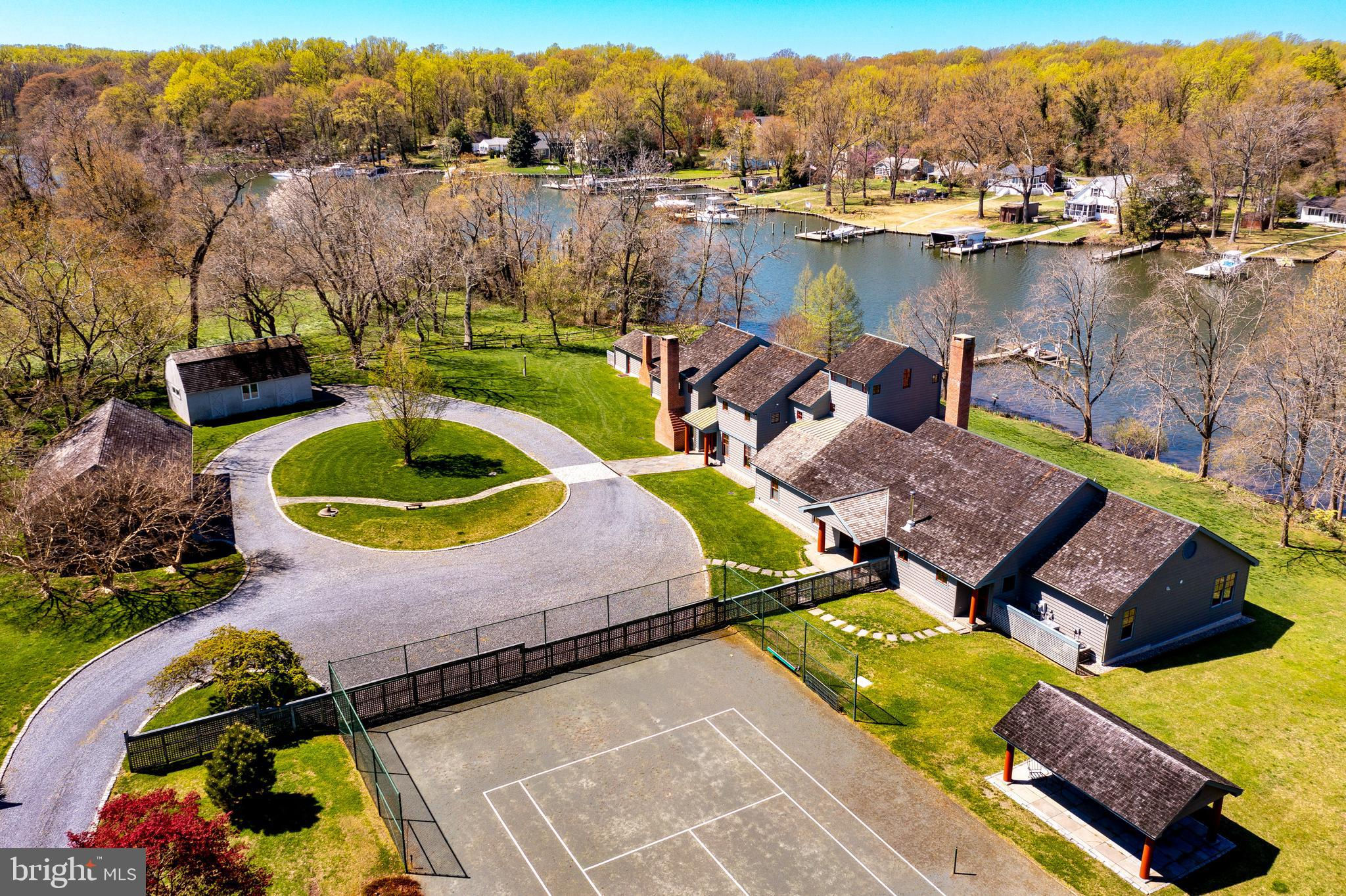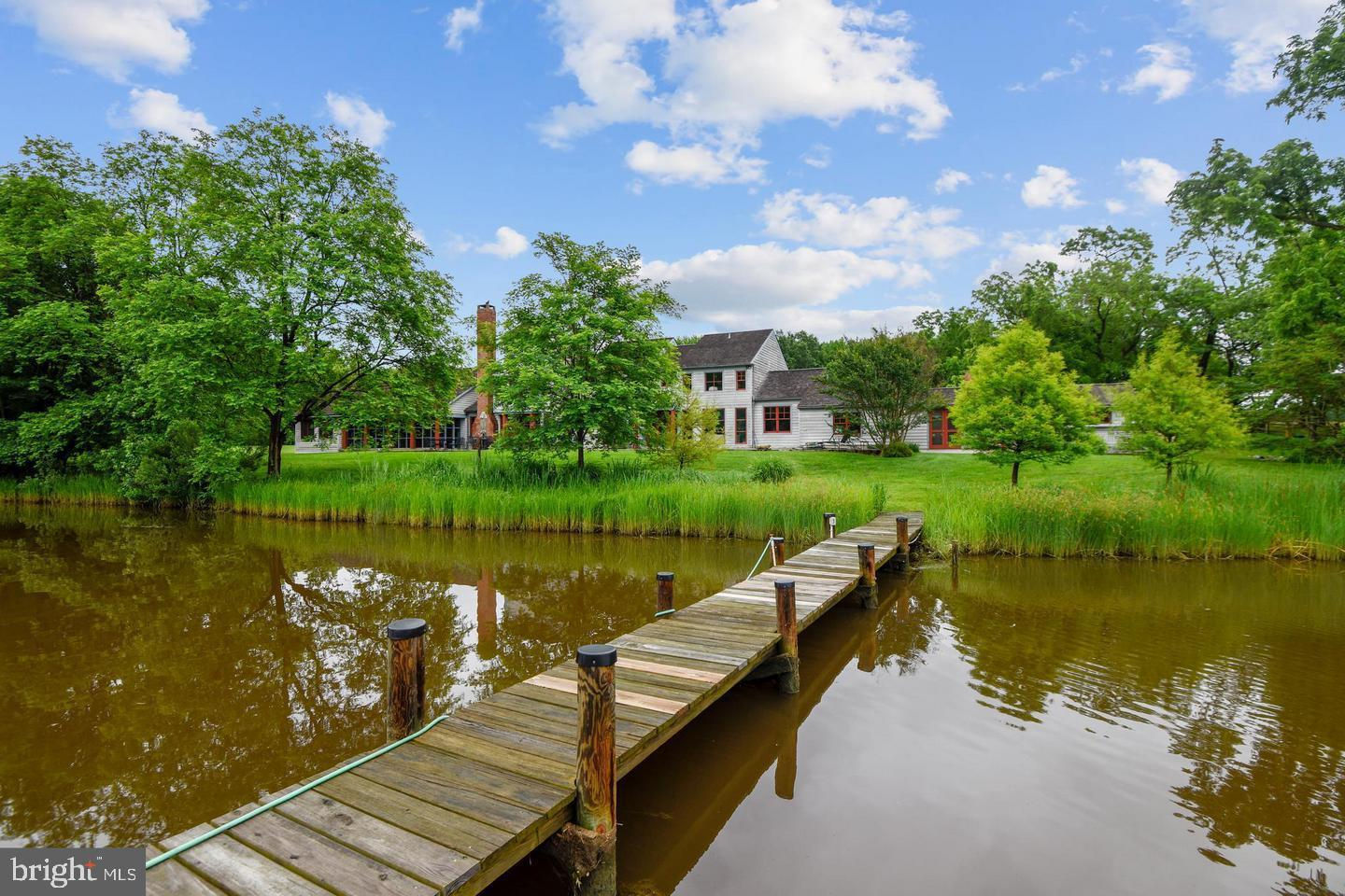 Aggressive price reduction of over $750,000. A beautiful property at a great new price. Private gated waterfront estate sited on 25 acres featuring 1,361 feet of water frontage on Meredith Creek and private pier. Rare waterside in-ground pool, clay tennis court & covered pavilion for spectators or a spot to rest between games.. Unique custom designed home with over 7,400 square feet of finished space with generous room sizes, custom windows & doors, elevator, 2 kitchens for great entertaining and pool side parties. 4 zone heating and cooling system ( all 4 zones replaced in the last two years). Radiant heating in parts of first floor and in the entire second floor. Second floor has hand sewn oak wood floors. Serene peaceful setting surrounded by pastures & mature trees. Beautiful farmland to plant your favorite crop or try some organic gardening. Enjoy watching the waterfowl from a bench at your private pier overlooking Meredith Creek. Large in-ground pool surrounded by flagstone for loads of seating areas looking out towards the creek. A heated & cooled 6 car garage was converted into a large office and workshop. Large circular driveway with ample parking for guests and family.