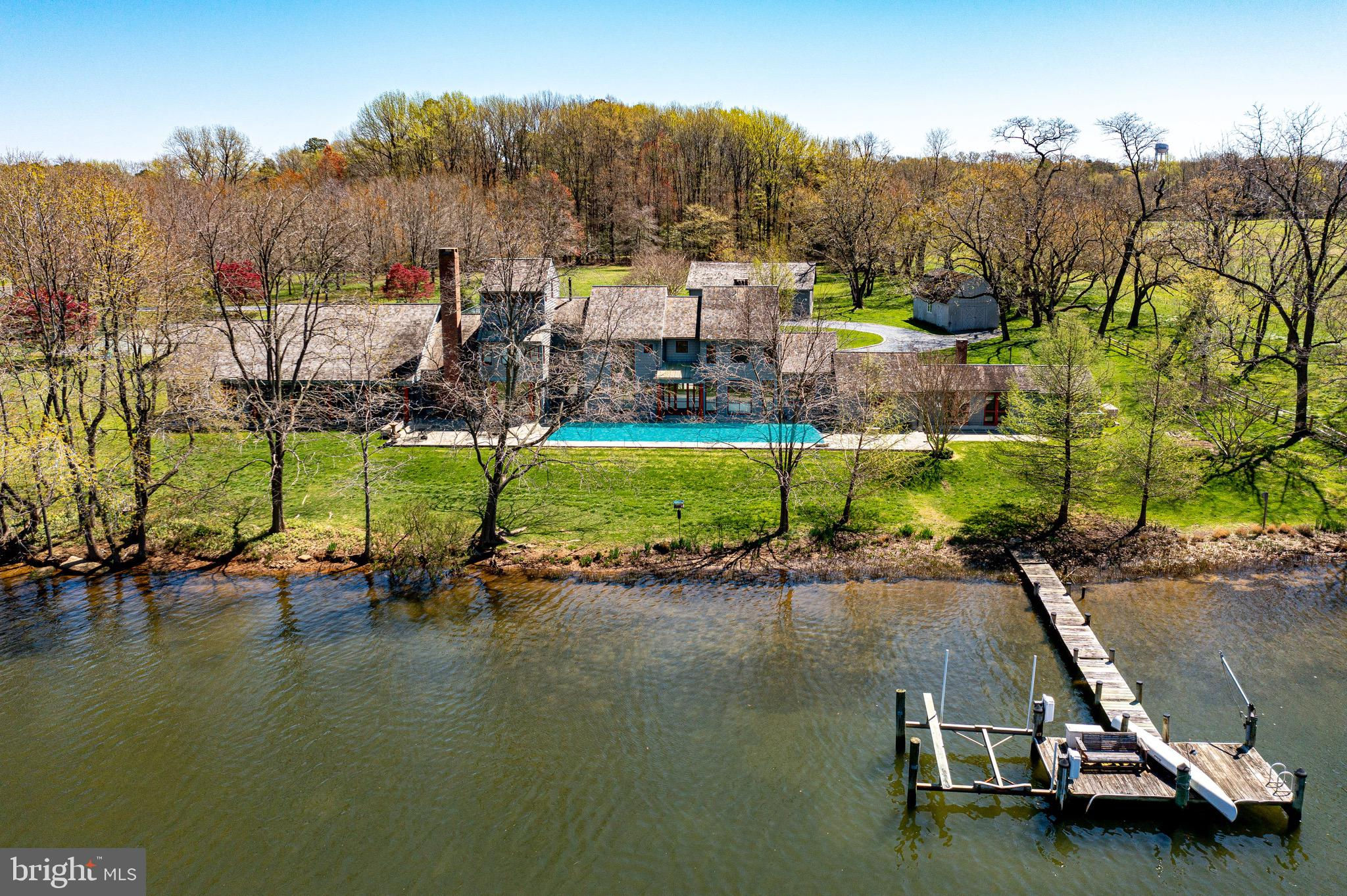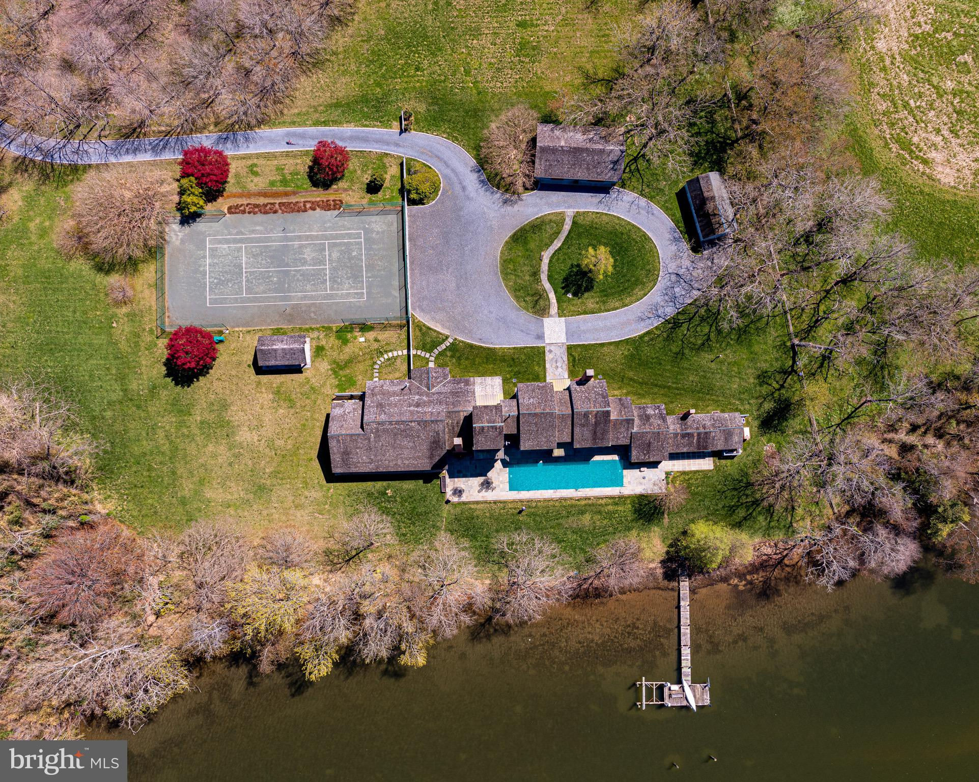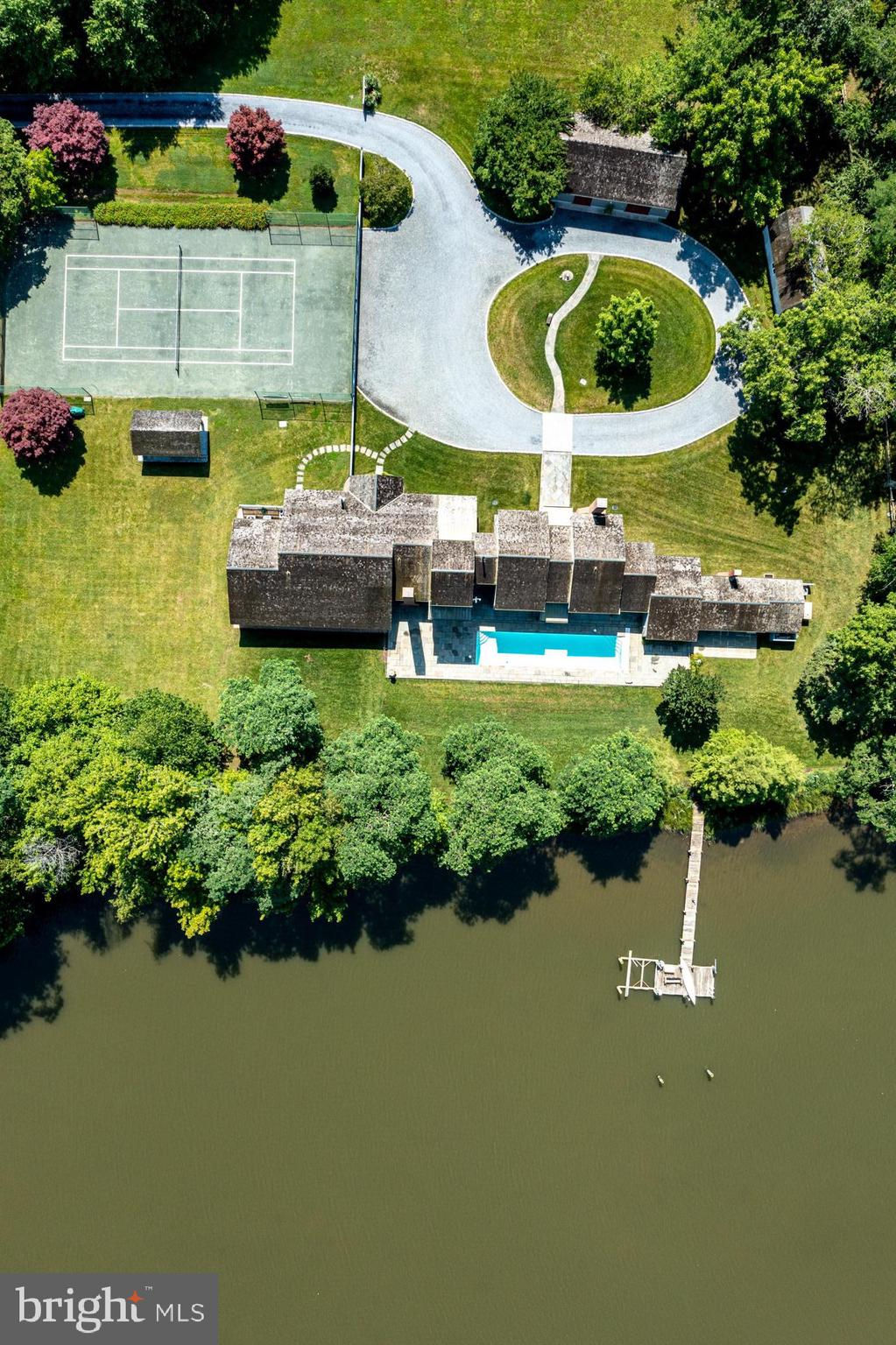 Aggressive price reduction of over $750,000. A wonderful property at a great price. Private gated residential waterfront retreat on over 25 acres suitable for horses or farming your favorite crops or organic gardening. About 5 acres used for residence and out buildings that creates a beautiful waterfront estate. Lovely custom home with over 7400 square feet of finished living space. 5 bedrooms, 6 1/2 baths, 2 kitchens, elevator and lovely water views from almost every room. 1300 feet of waterfront on Meredith Creek with private pier & bench to watch the waterfowl. Waterside swimming pool, large patios for entertaining and large screened porch. Tennis court with large pavilion for family and friends. See waterfront listing at residential listing site MDAA2057622