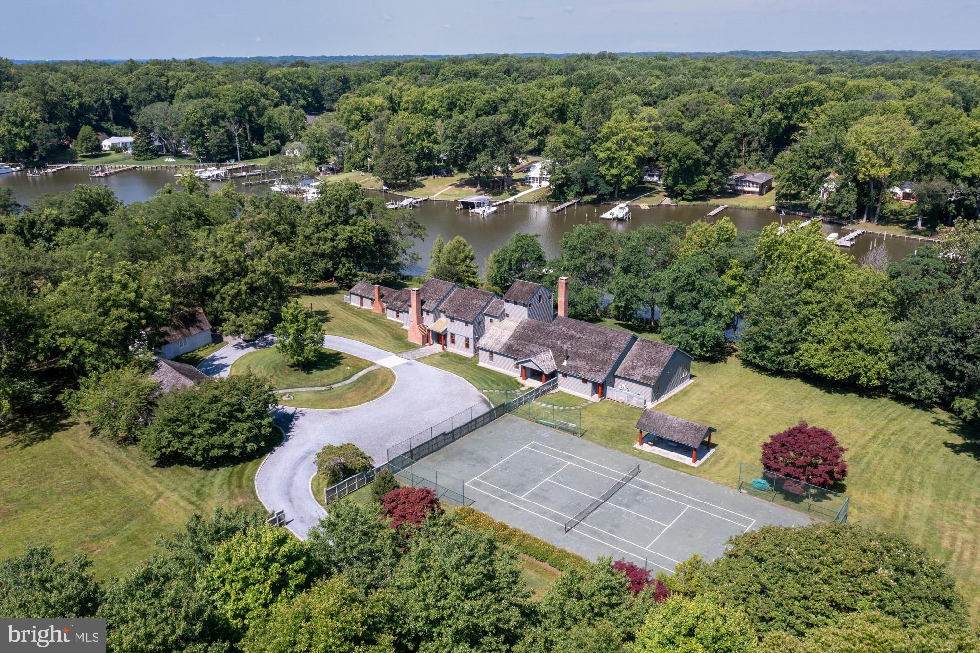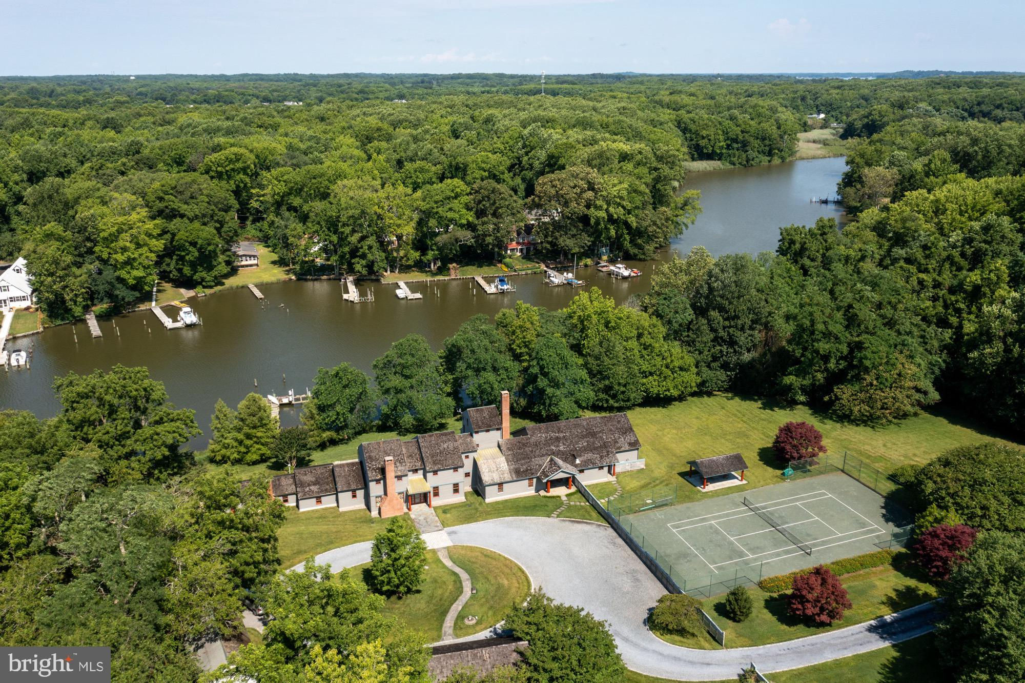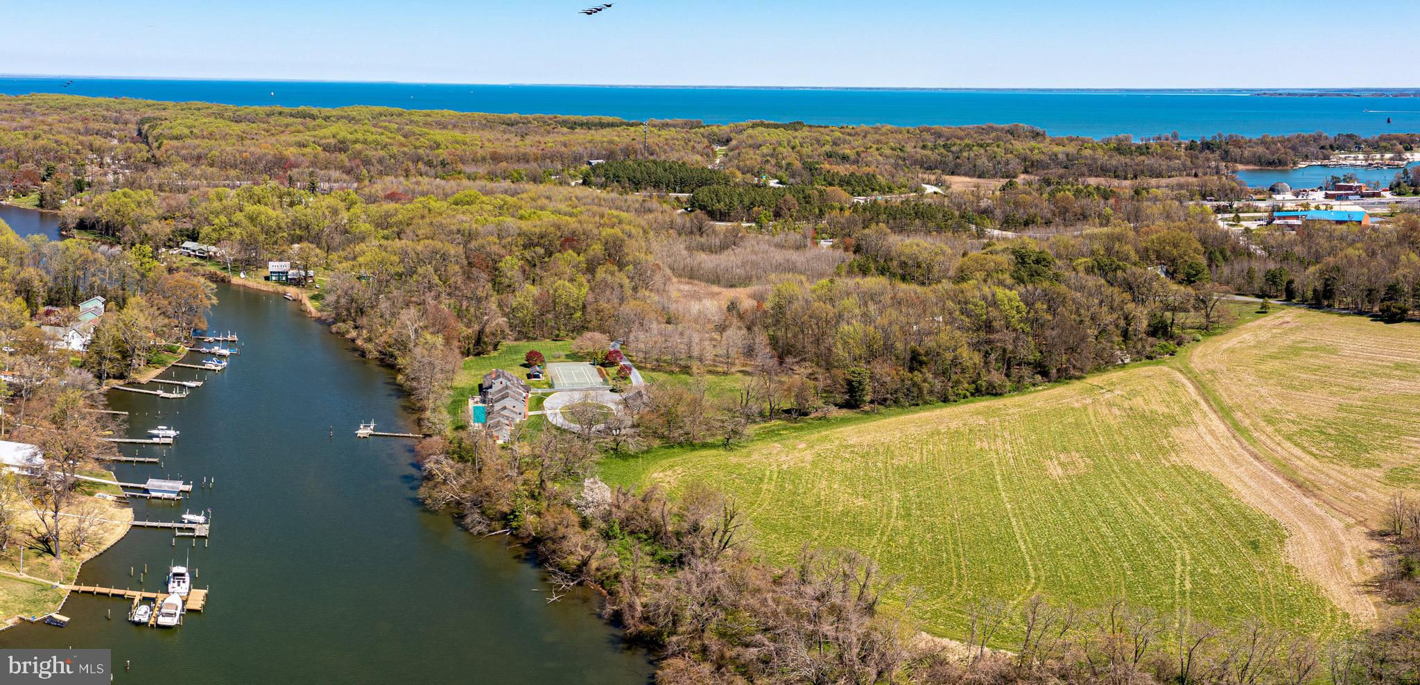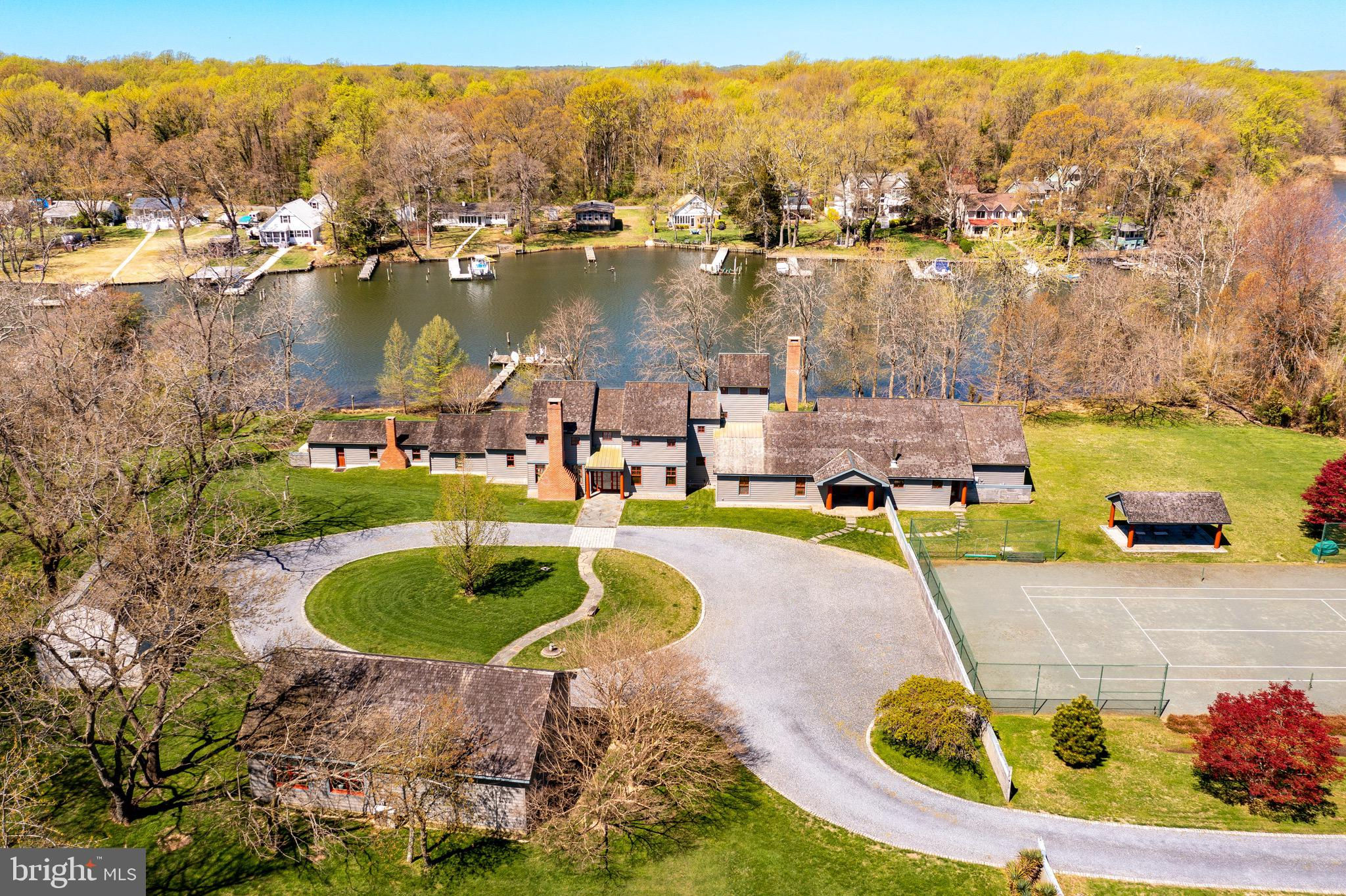 Aggressive price reduction of over $750,000. A wonderful property at a great price. Private gated residential waterfront retreat on over 25 acres suitable for horses or farming your favorite crops or organic gardening. About 5 acres used for residence and out buildings that creates a beautiful waterfront estate. Lovely custom home with over 7400 square feet of finished living space. 5 bedrooms, 6 1/2 baths, 2 kitchens, elevator and lovely water views from almost every room. 1300 feet of waterfront on Meredith Creek with private pier & bench to watch the waterfowl. Waterside swimming pool, large patios for entertaining and large screened porch. Tennis court with large pavilion for family and friends. See waterfront listing at residential listing site MDAA2057622