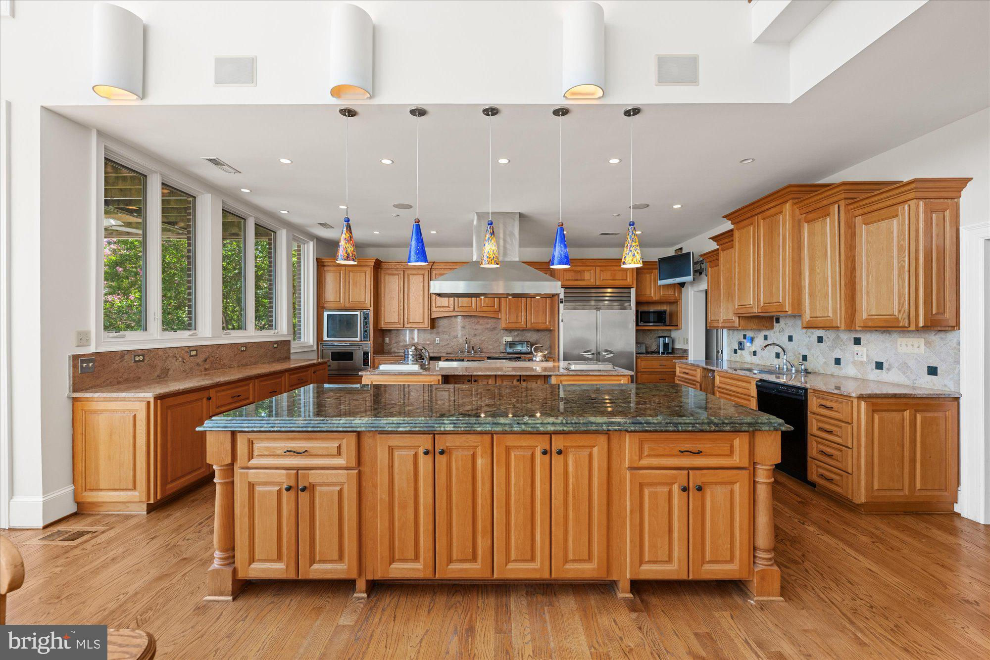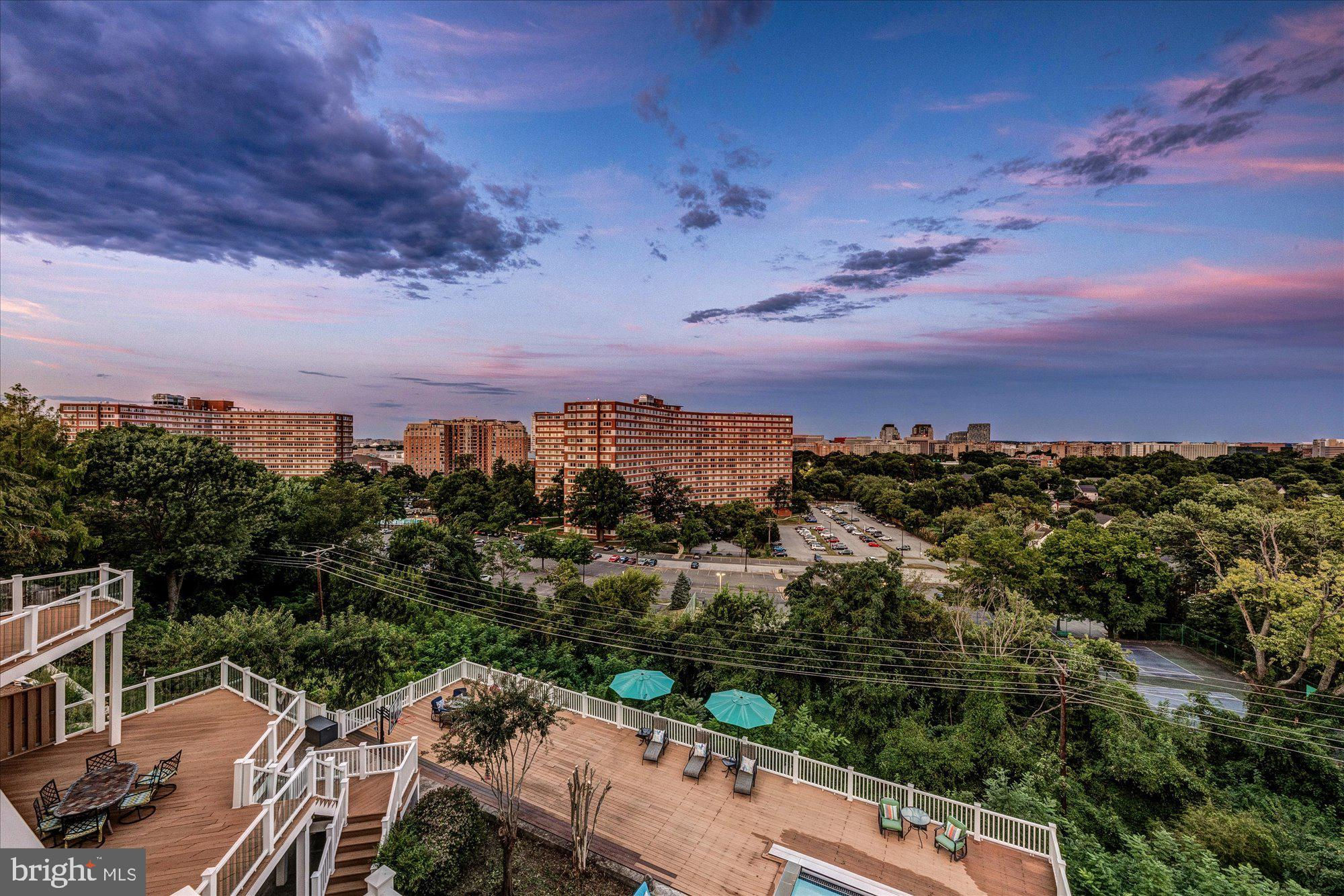 One-of-a-kind city and monument views from this custom-built home in the coveted Arlington Ridge neighborhood. Offering over 13,000 square feet and featuring 7 bedrooms, 8 full bathrooms, 3 half baths, numerous decks off each level and a spacious terrace with pool. An entertainer’s dream, the main level boasts an open, flowing floor plan and offers a wall of windows overlooking the expansive deck with dramatic city views. The kitchen boasts commercial-grade appliances (perfect for hosting large parties) dual islands, extensive storage and a walk-in pantry. The sun-filled family room has a two-story stone wood-burning fireplace. Just off the kitchen is a comfortable office featuring a two-sided gas fireplace shared with the wood paneled library. Tucked away behind the garage is a separate area with its own entrance, perfect for a home office, in-law or nanny suite and is complete with two living spaces, bedroom with full bath and powder room. Upstairs you’ll find the spacious primary suite with dramatic vaulted ceiling, wall of windows, gas fireplace, spa-like bath, dressing area, large walk-in closet and its own private deck. Four additional bedrooms (all ensuite), teen space, music room with second deck and laundry are also located on this level. On the top level you’ll find a versatile loft space with full bath, sun-loft with fireplace and city view deck with monument views. The walk-out lower level has a large recreation room, home gym area, theater, hobby room, climate-controlled wine-room and guest suite. The large terrace and deck offer numerous seating and dining areas and the beautiful heated pool. Arlington Ridge is ideally located for a quick trip downtown, shopping at Pentagon City/Pentagon Row/National Landing and is close to both Amazon HQ2 and Reagan National Airport.
