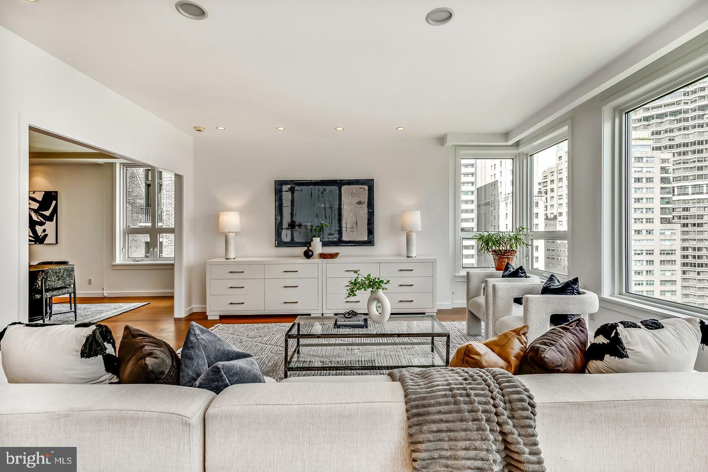 Make this luxurious, rarely offered high-floor residence at the iconic 1820 Rittenhouse Square your next home, and you will never want to move again. There is no reason to. You have made it! One of only 29 units, this boutique building is the ONLY building on the residential South side of the park WITH GARAGE PARKING. Boasting 3217 square feet of thoughtfully appointed space, this half-floor apartment has everything today's discriminating buyer is looking for. Showcasing three bedrooms, three full baths, and a powder room, this floor plan is one of the best in the city. Come off the elevator and enter your home from a generous double foyer that offers the owner the ability to showcase an unparalleled amount of artwork within its gallery setting. This sets the tone for the rest of the home, opening up to a spectacular duel living space boasting a discreetly hidden wet bar with refrigerator and ice maker, showcasing new floor-to-ceiling windows that span almost 50 feet of unparalleled and unobstructed Rittenhouse Square views and a corner view. There is nothing that compares to it. The cornered windowed dining room is gigantic and able to host any size family for a holiday or an event. Perfect for gracious entertaining. The vast and modern custom chef's kitchen, featuring a Sub-Zero fridge, stainless steel appliances, generous counter space, an ice maker, a beverage center, and a built-in breakfast table by the window, offers the perfect setting to cook and congregate, a rare find in apartment living. The gallery hallway leads you to a service entrance, a walk-in cedar closet, and a full-sized laundry room. Then two generous bedrooms share a Jack and Jill bath. The light-filled Primary is nothing short of spectacular. Full unobstructed Southern views command the space. Boasting two walk-in closets with dressing areas and two full bathrooms. The ultimate in luxury! Do not miss out on this one-of-a-kind residence on a sought-after high floor. They are rarely available.