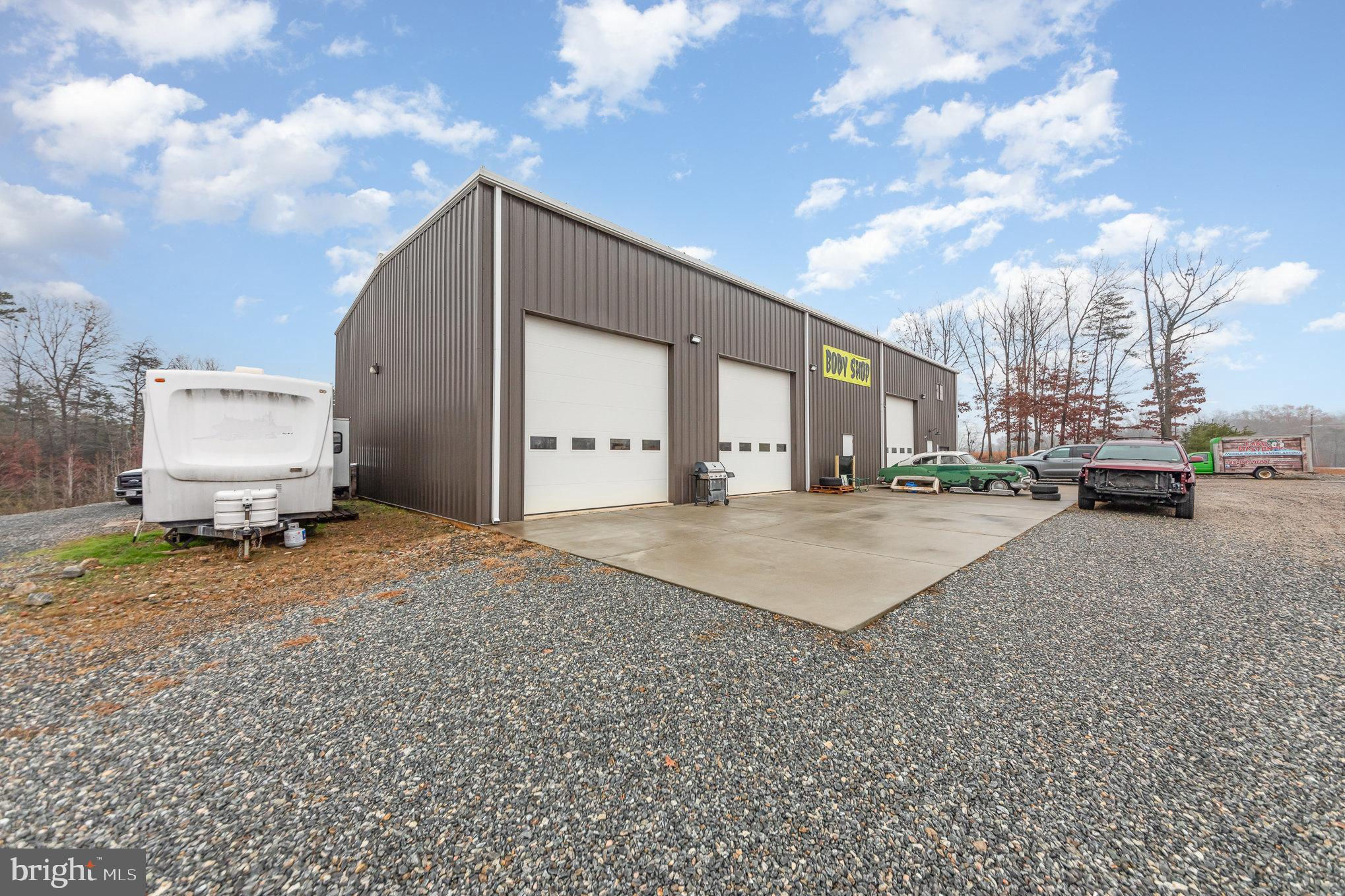 Prime Business Opportunity Close to Lake Anna and off of Rt 208 main roadway. Excellent 7500 Sq Ft Building with over 5000 Sq Ft of Warehouse/Workspace and over 1800+ Sq Ft of Office/Finished Space. This building has so much to offer! Currently used as an auto body shop, but could easily be converted into multiple businesses, warehouse use, trucking facility, office space or so much more. Reinforced concrete floors, 22 Ft Ceilings, 4 Truck Bays, Car Lift, LED Lighting, LVP and Tile Floors, Reception Area, Storage, 2 Bathrooms Including Full Owners Suite Upstairs, Multiple Offices, 400 Amp Service, 36 x 12 Pole Barn, Parking, and 1 Acre C-2 Space with Main Road Access. Less than 7 years old, this property could be used for many different business endeavors and is a great investment for a growing area close to downtown Lake Anna and minutes from the Marina.