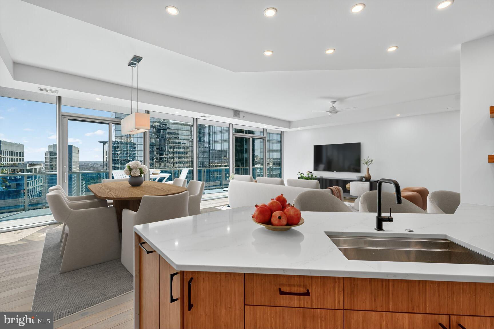 A rare opportunity to own a highly covetable residence perched on the 21st floor in one of the Washington area’s most prestigious addresses, this extraordinary three-bedroom, three-and-a-half bath residence includes a private elevator entry and showcases over $300,000 in meticulously curated finishes. The reimagined gourmet kitchen dazzles with custom cabinetry and countertops that are tastefully paired with a Miele six-burner gas cooktop and integrated Miele refrigeration. Designer lighting and exquisite custom millwork elevate the interiors, while a generous laundry room with extensive storage adds practicality. A true retreat, the primary suite boasts a magazine-worthy spa bathroom featuring an elegant freestanding soaking tub—while a serene private terrace frames sweeping views of the D.C. skyline, the Kennedy Center, and sunlit morning horizons. Additional highlights include soaring 11-foot ceilings, refined hardwood and marble flooring, multi-zone HVAC, and a private garage with parking for two vehicles with additional storage. Renowned for its signature curvilinear design, Turnberry Tower offers residents an unparalleled lifestyle with five-star amenities including 24-hour concierge with valet and security, a heated indoor pool with attendants, a state-of-the-art fitness and yoga studio, a private screening room, and an elegantly redesigned social lounge with catering kitchen. The epitome of modern luxury, this residence embodies the perfect blend of sophistication, comfort, and world-class amenities.