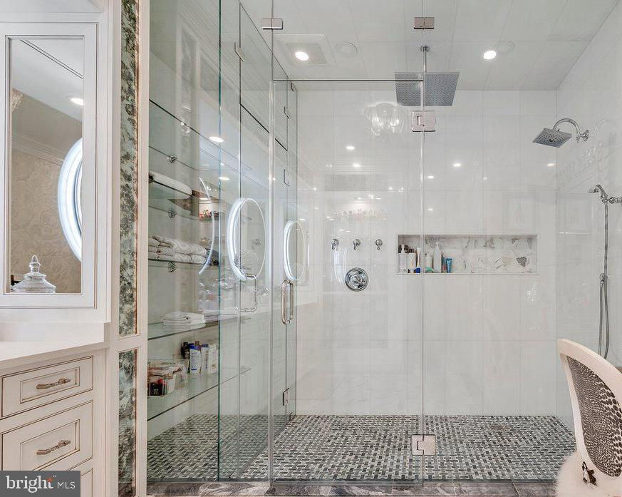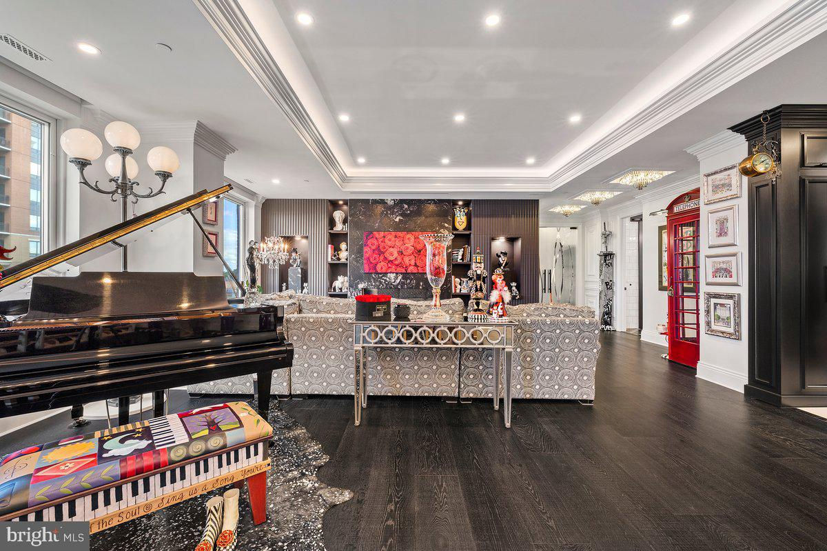 A rare opportunity at the Annapolis Town Center — two units combined into one stunning residence. This 4-bedroom, 3-bath luxury condo features expansive living spaces, two private balconies, and high-end custom finishes throughout. Enjoy the convenience of four garage parking spaces and two storage units, along with all the premier amenities of GrandView Condominiums. This one-of-a-kind residence showcases true custom design and craftsmanship throughout. All main living spaces and bedrooms feature Provenza hardwood flooring, while custom cabinetry and built-ins are designed by Woodworking by Design. The chef’s kitchen impresses with a dramatic Calacatta Lumanyx waterfall island, full-height backsplash, sparkling black perimeter counters, and seamless integration to a glass-front wine room. Smart-home living is elevated with a full Lutron system (including motorized shades), Sonos sound, and security by Petitbon. Designer stone selections carry into every space, from brushed titanium hearths and fireplace walls to quartz vanities, thresholds, and mosaic details in bathrooms and wine room. Sophisticated finishes, modern automation, and bespoke craftsmanship make this luxury condominium truly one of a kind.